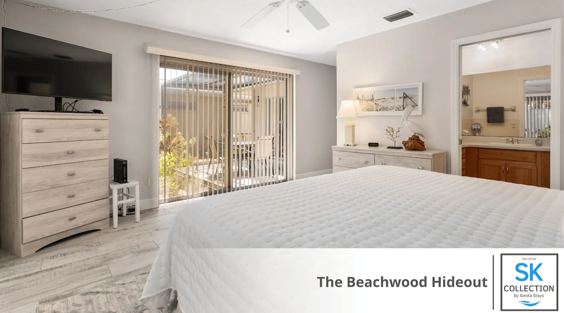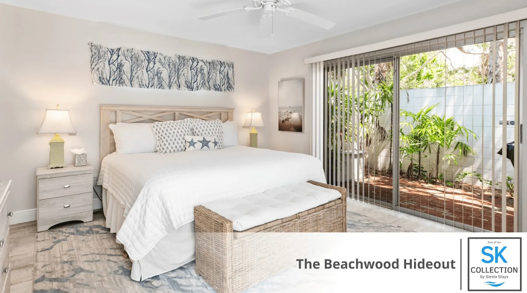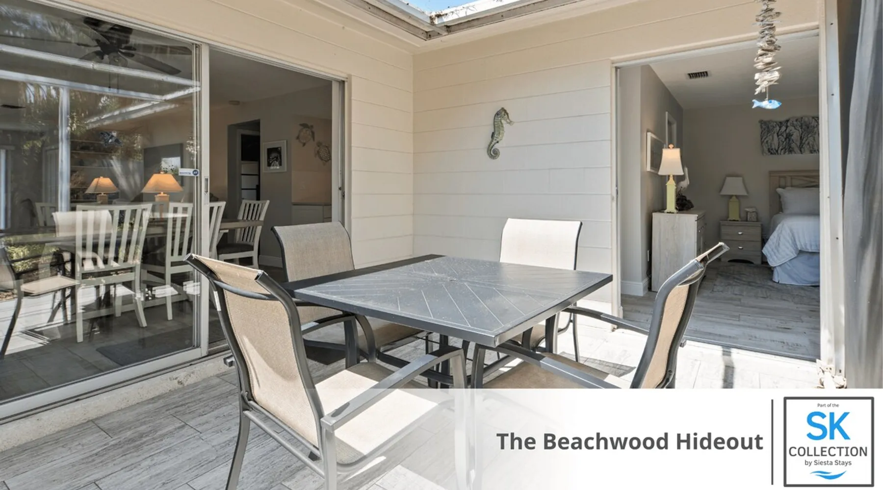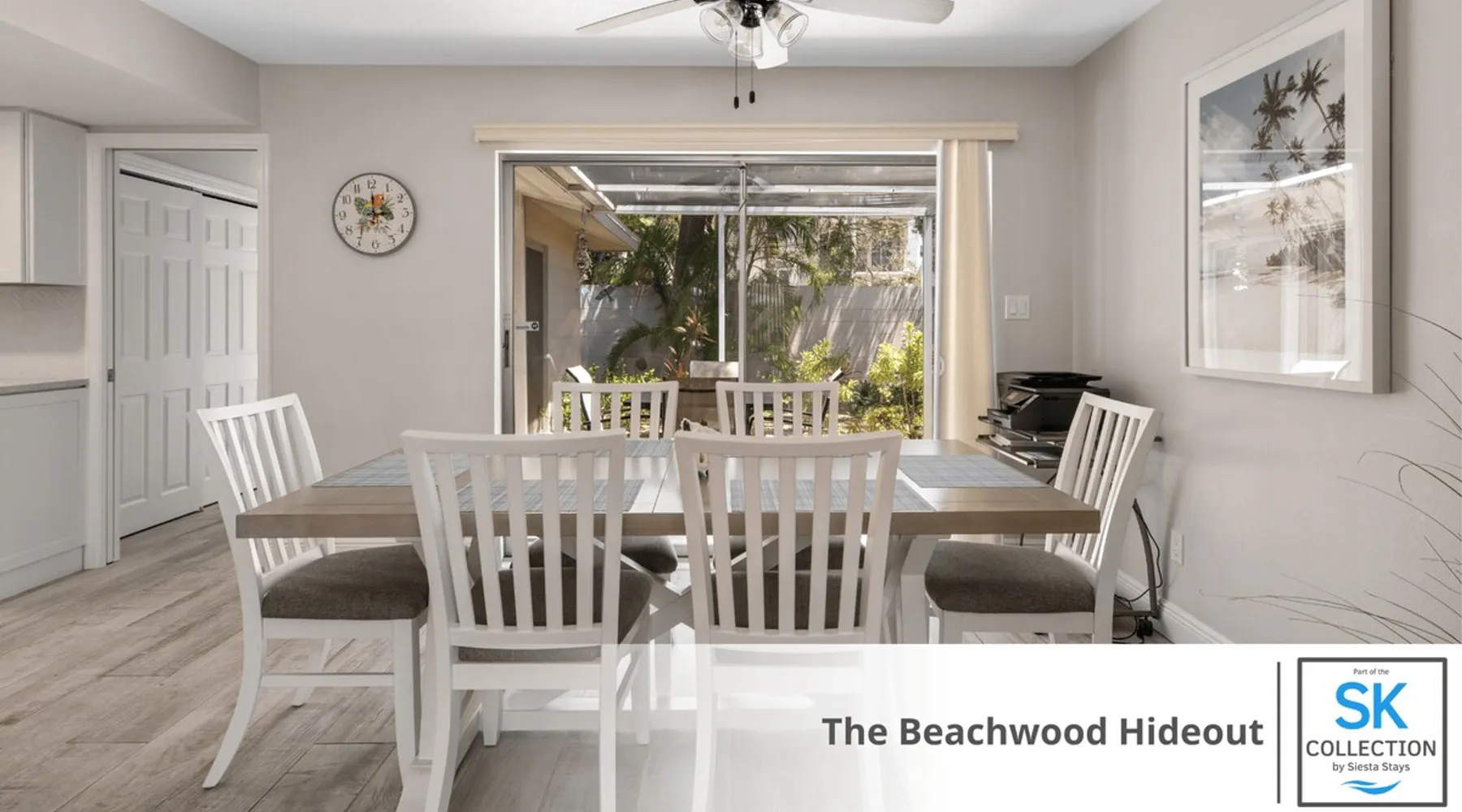 Winter season (Jan–Mar): 1-month minimum stays. Check-in/out on the 1st or last day of the month. Coastal chic 2BR/2BA condo with updated kitchen, screened patio, and deeded beach access. Heated pool at Aloha Kai, shuffleboard, kayak launch, and trolley stop 1 minute away. Sleeps 4 with king and twins. Beach chairs & towels included. Assigned parking and in-unit laundry. Two-day lead time and renter application required. Part of the SK Collection by Siesta Stays. The space Modern updated kitchen with full appliances Open living and dining area flowing to a screened patio for outdoor meals Two bedrooms with comfortable bedding arrangements Two full bathrooms In-unit washer and dryer for convenience Assigned parking space with parking pass required Deeded beach access within walking distance Heated outdoor pool, shuffleboard courts, and kayak/boat launch (kayak not included) Beach chairs and towels provided Quiet, well-maintained Provincial Gardens community with HOA quiet hours (8 PM–8 AM) Guest access Guests have access to the entire condo, including the updated kitchen, screened patio, in-unit washer and dryer, and assigned parking. Deeded beach access is steps away. The heated pool and shuffleboard courts are located across the street at Aloha Kai. Beach chairs and towels are provided for guest use. Kayak and boat launch access is available nearby. The trolley stop is a 1-minute walk for easy access to Siesta Key Village. Other things to note Beach towels and chairs are provided for guest convenience. Parking pass is provided and must be displayed for assigned parking. The complex enforces HOA quiet hours from 8 PM to 8 AM. No smoking is allowed anywhere within the complex. Two-day lead time required for all bookings. Property manager rental agreement required before arrival.