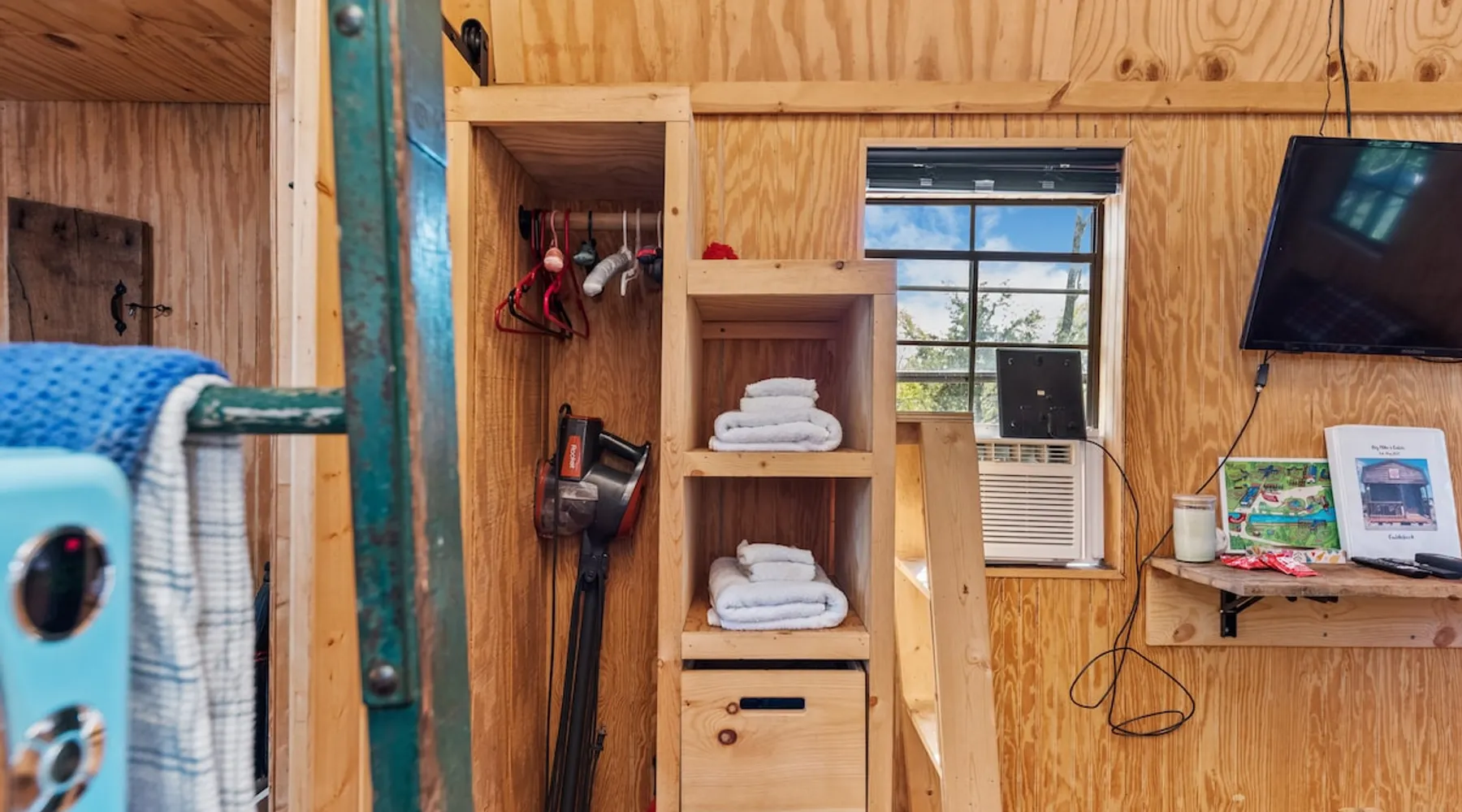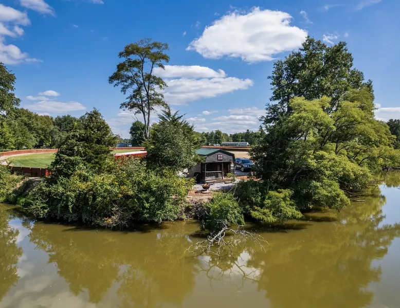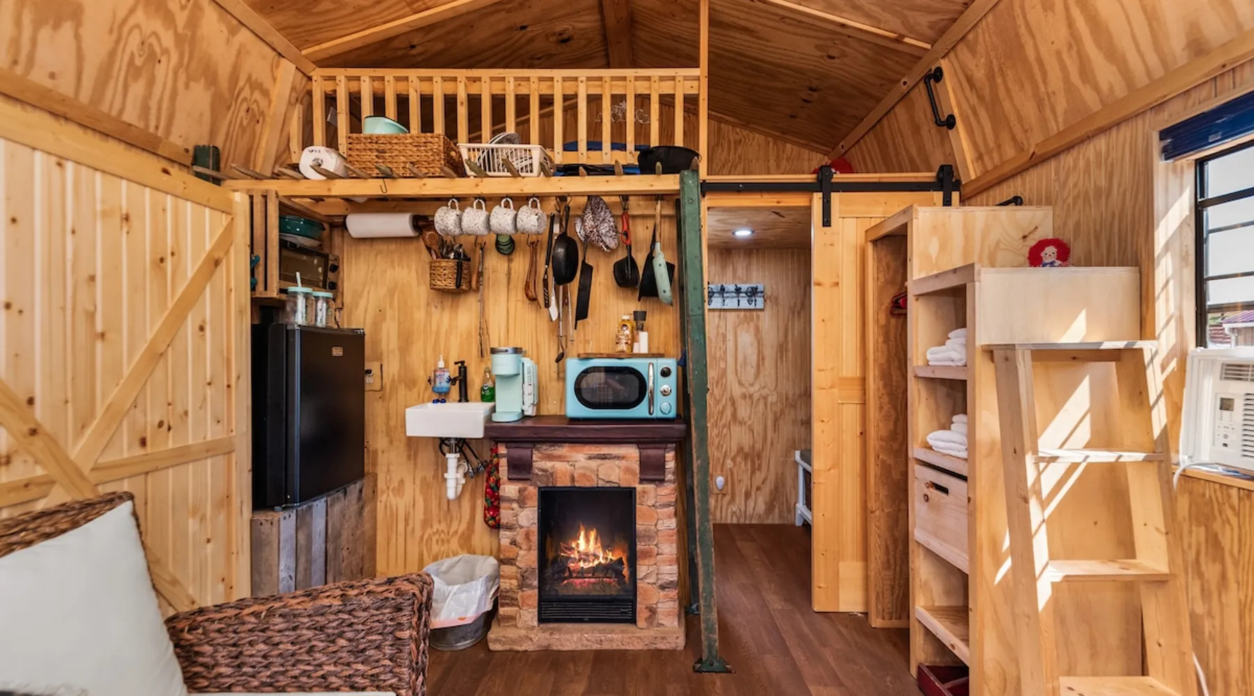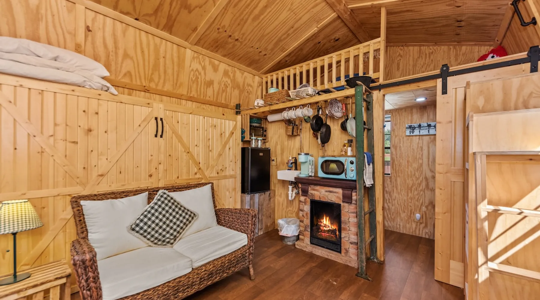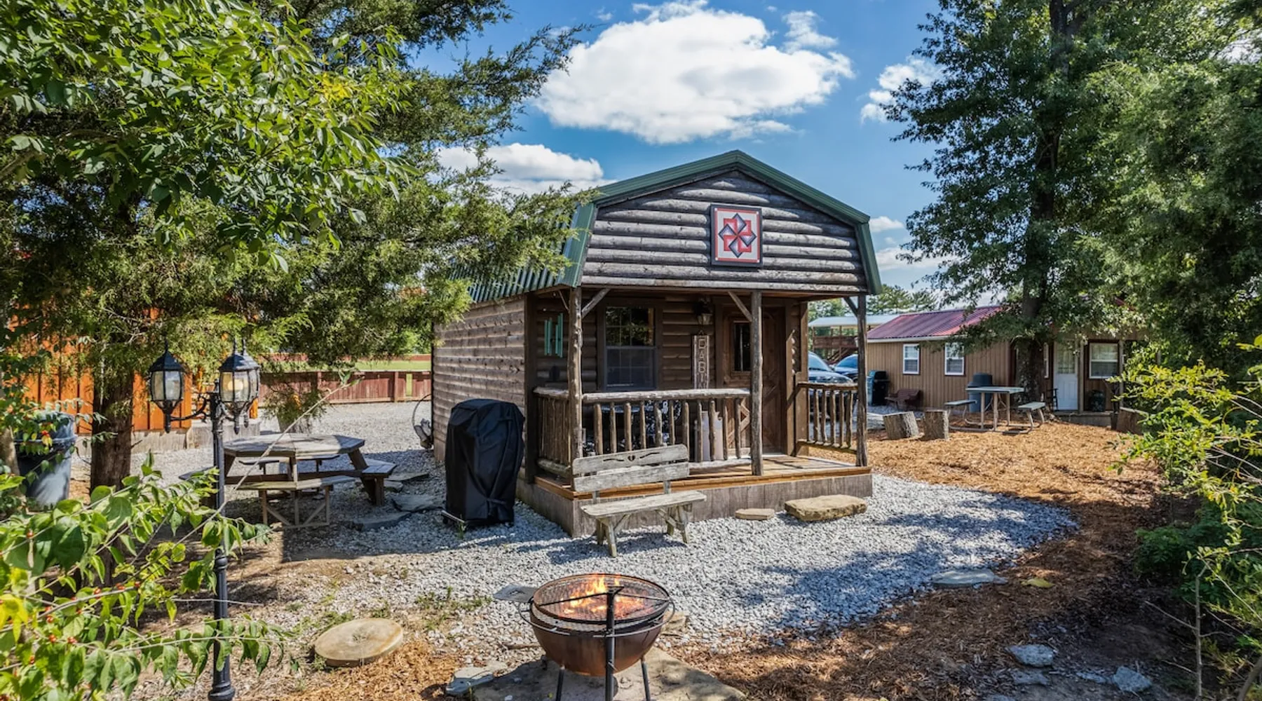 Housed by the brand new Flash Softball Diamonds. Sun rises and sunsets are spectacular. Amazing wildlife. Adorable Old Barn Decor. Outdoor cooking on cast iron fire pit w/upper grill, cast iron fry pans & dutch oven, & all cooking utensils to make an outdoor feast. Firewood provided. Refrigerator/freezer, microwave, toaster oven, Keurig coffee maker, air conditioner, smart tv, fireplace heater. The space Quaint barn decor includes 2 twin loft beds and custom made Murphy bed. A stone's throw away from the newly reopened Flash Softball diamonds. Guest access You will need to tuck your car right next to the cabin during ball games to protect it from any stray foul balls. Or park behind the outfield. Parking is at own risk. Other things to note Dogs are allowed but there is a $50 per pet charge. 2 dog limit.