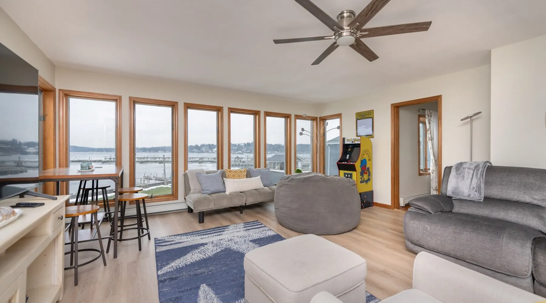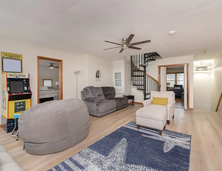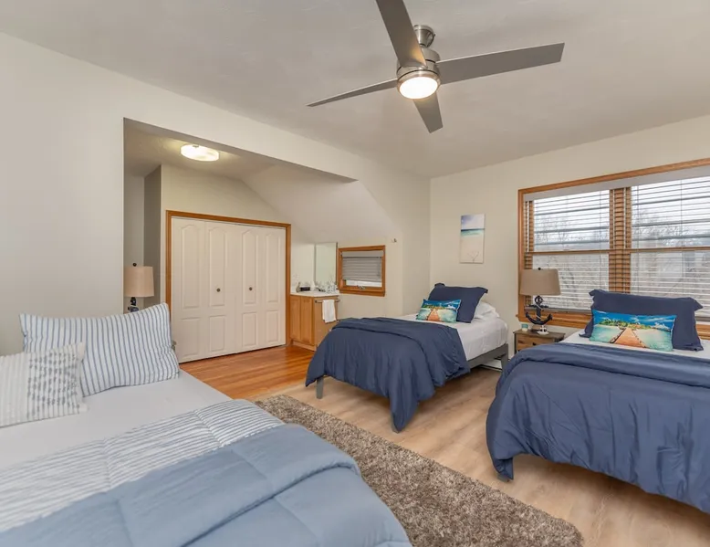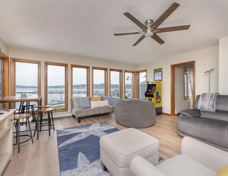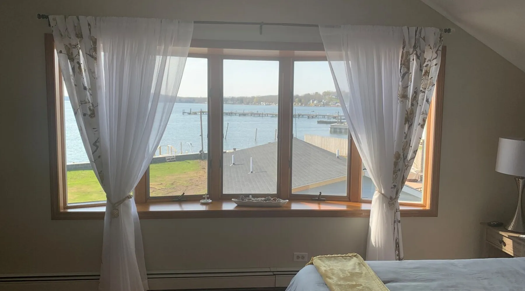 Welcome to the house on Sodus Bay where you and yours will make memories years to come. Our multi level home welcomes you and your guests providing enough room for gathering in open spaces and spacious rooms to retreat and relax. Start your day watching the sunrise from the open kitchen with a warm cup of joe and wind down the evening in our sunset view loft. Spend the day swimming or fishing off your private dock or at the beach just 1 mile away. The space Our guest house has a spacious back yard with a deck and a private dock for boats and skis. Enclosed porch , bar room, full stocked kitchen and 2 full bath rooms. There are 2 living rooms. The 2nd floor living room serves as an entertaining room w/games and a 65” tv. Desk and chair for working or school available. On the 3rd floor there is a cupola for meditating, reading or relaxing. Guest access Guest can go up to the cupola to meditate, read, relax or to simply have “me” time. Deck has outdoor furniture w/ awning. There are benches by the water to sit and enjoy the sun. Other things to note Grill rental $45 Quiet Hours between 10 pm-8 AM Parties not allowed- Pets need to be on leach when when outside Additional guest must be approved by host No smoking allowed No heavy objects or vehicles or camping trailers on grass Please do not allow pets on furniture. Pets must be crated when guest leaves the house. $125.00 pet fee per pet/per stay No heavy objects or vehicles or camping trailers on grass