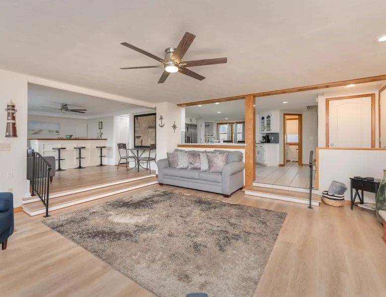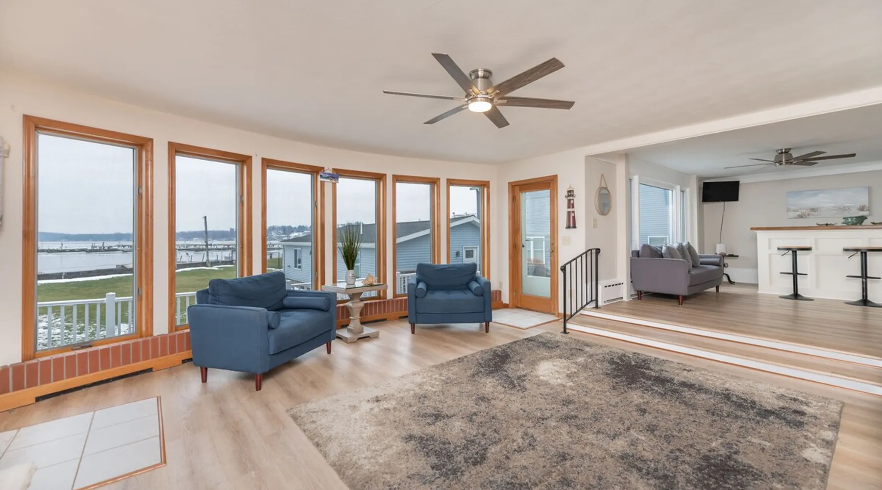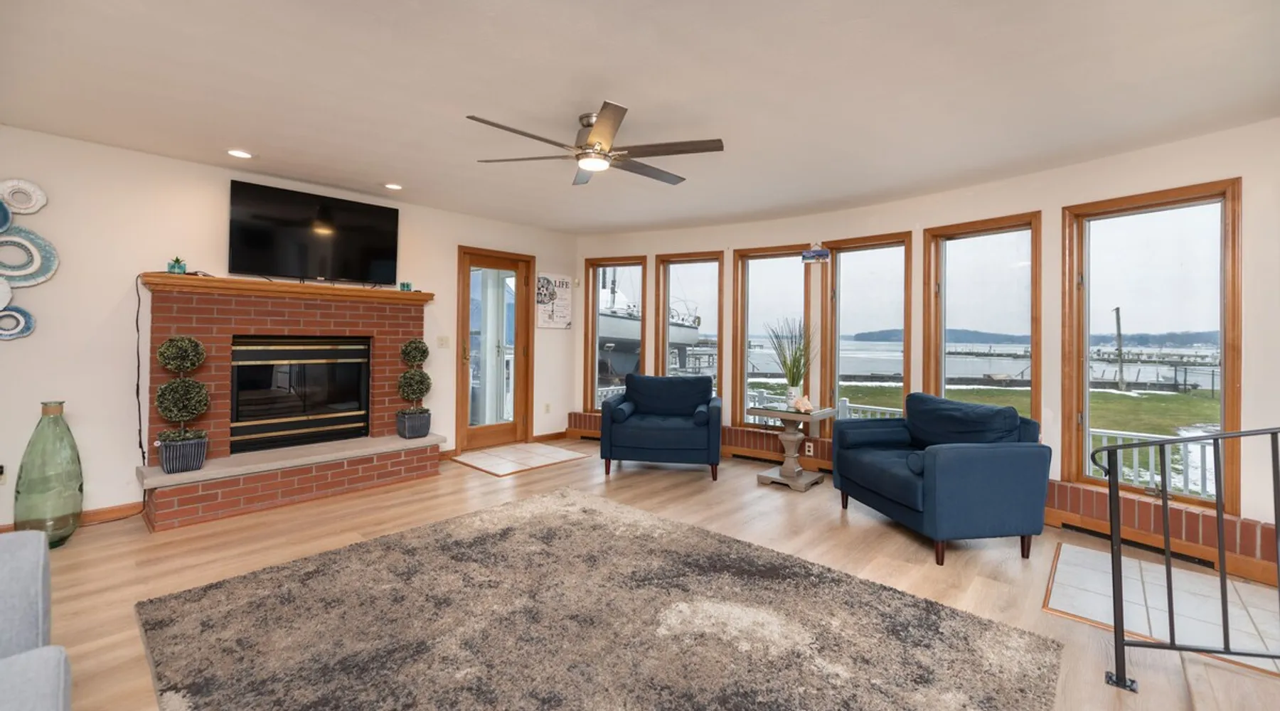 Welcome to the house on Sodus Bay where you and yours will make memories years to come. Our multi level home welcomes you and your guests providing enough room for gathering in open spaces and spacious rooms to retreat and relax. Start your day watching the sunrise from the open kitchen with a warm cup of joe and wind down the evening in our sunset view loft. Spend the day swimming or fishing off your private dock or at the beach just 1 mile away. The space Our guest house has a spacious back yard with a deck and a private dock for boats and skis. Enclosed porch , bar room, full stocked kitchen and 2 full bath rooms. There are 2 living rooms. The 2nd floor living room serves as an entertaining room w/games and a 65” tv. Desk and chair for working or school available. On the 3rd floor there is a cupola for meditating, reading or relaxing. Guest access Guest can go up to the cupola to meditate, read, relax or to simply have “me” time. Deck has outdoor furniture w/ awning. There are benches by the water to sit and enjoy the sun. Other things to note Grill rental $45 Quiet Hours between 10 pm-8 AM Parties not allowed- Pets need to be on leach when when outside Additional guest must be approved by host No smoking allowed No heavy objects or vehicles or camping trailers on grass Please do not allow pets on furniture. Pets must be crated when guest leaves the house. $125.00 pet fee per pet/per stay No heavy objects or vehicles or camping trailers on grass