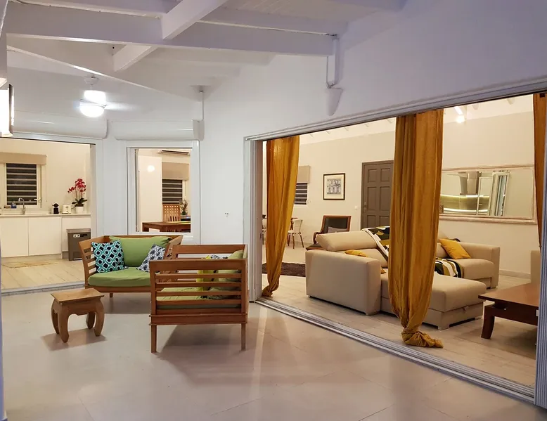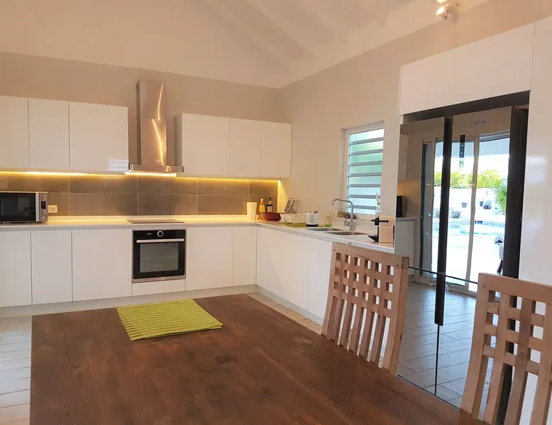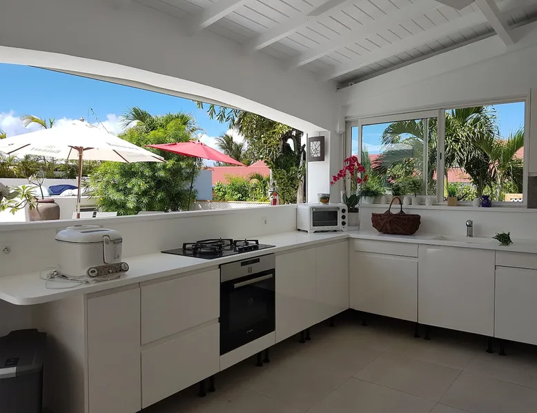 Villa located in the heart of Baie Orientale. Beautiful indoor and outdoor living space. Beautiful heart-shaped pool, superb terrace for perfect relaxation. The house is located a 5-minute walk from the beach. The space The single-story villa is a 5-minute walk from the beach of Baie Orientale and its many activities and restaurants. All rooms in the villa overlook the pool. Like a hacienda in the West Indies!! Each bedroom has its own TV, bathroom and toilet, the living room with the living room and kitchen have been designed and furnished for your comfort. A beautiful outdoor terrace with a second kitchen allows you to fully enjoy the outdoor space, dedicated to relaxation, sunbathing, and family fun. The house has many spaces that allow 2 or 3 couples to come with friends without living on top of each other. This is a real vacation home where everyone can enjoy it to the fullest!!! Other things to note The house has a water tank that will allow you to be permanently supplied despite city outages. The house has been fully renovated following Hurricane IRMA. The photos have therefore been updated.