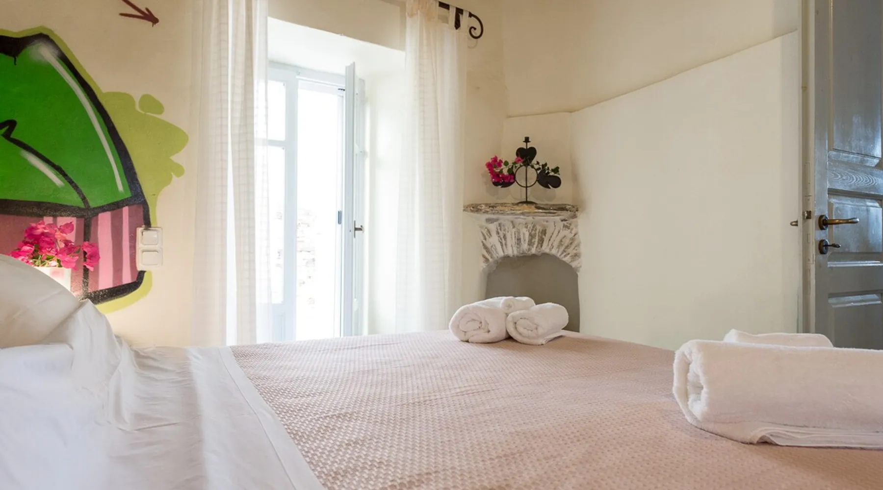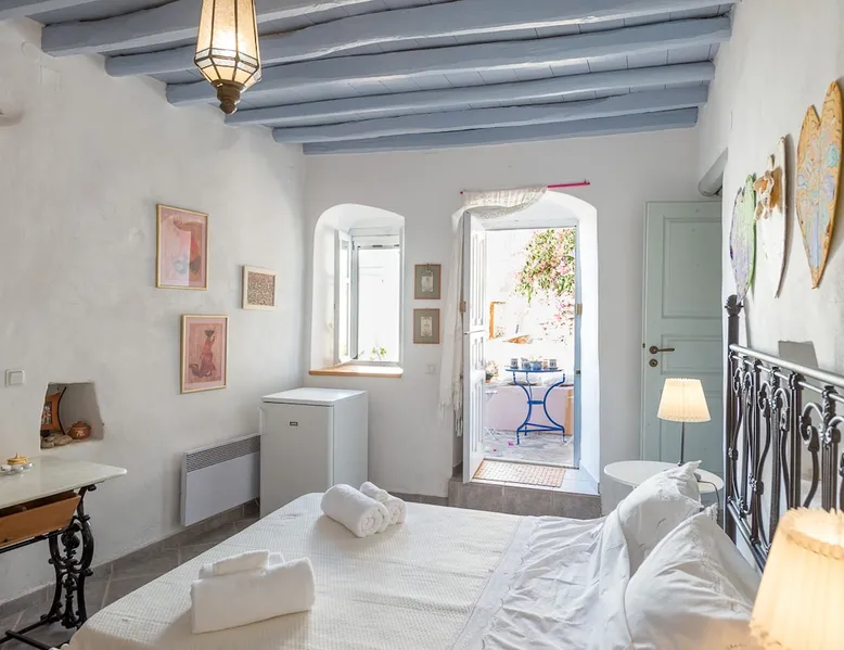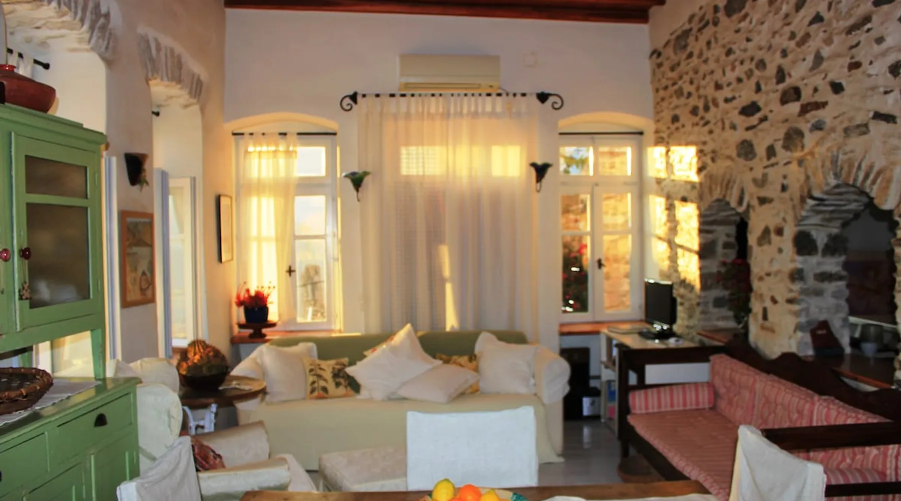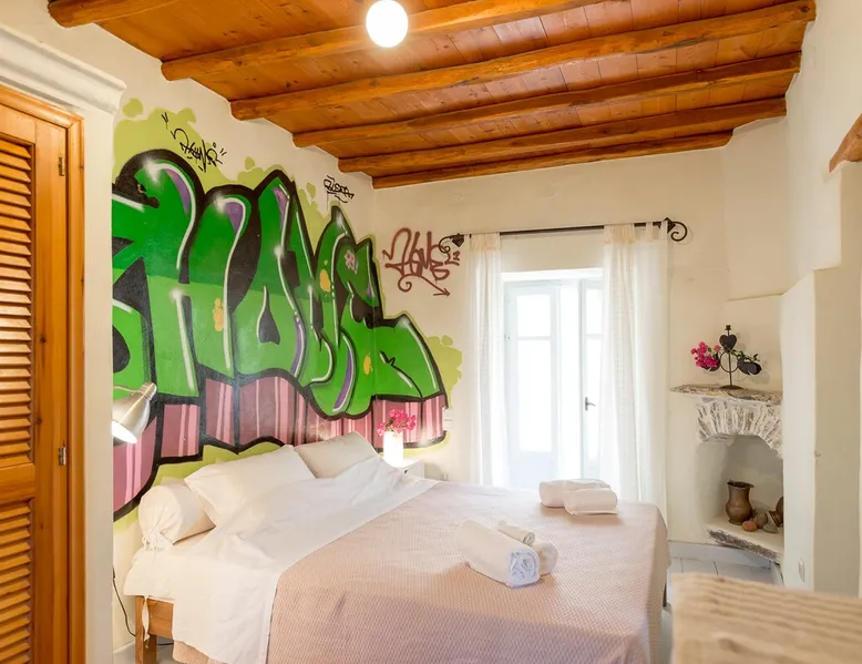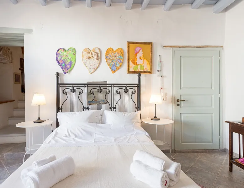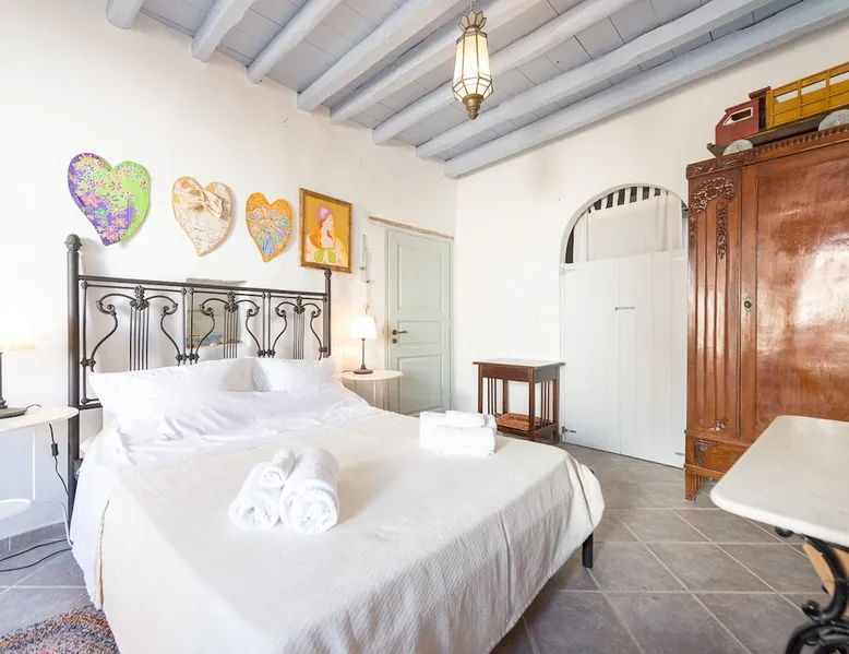 This 2floor traditional house dating from the late 19th century is located in Ano Syros, the medieval town of Syros which is blissfully free of motor vehicles. It is situated right on the Square of Markos Vamvakaris, next to Piazza, the main street of the settlement, along which there are restaurants, cafés, a grocery store and cozy shops selling handicrafts. The space This 2floor traditional house, dating from the late 19th century, is located in Ano Syros, the medieval town of the island of Syros. It is located right on the Markos Vamvakaris Square, 50 m. away from the Piazza, the main commercial street of the town, where the visitor can find restaurants, cafés, a grocery store and cozy handicrafts stores. There is a pharmacy close by the Kamara (URL HIDDEN) be noted that no vehicles are allowed in Ano Syros. This exceptional house (119m2), was renovated in 2003. It includes 2 bedrooms with one king size bed each, and one sofa double bed in the living room. There is one WC with shower on the first floor and one en suite bathroom on the ground floor bedroom. The kitchen is bright, comfortable and fully equipped while from the living room’s windows or the large terrace you can enjoy the view to the town of Ermoupolis, the port and the fantastic deep blue sea water, overlooking Tinos, Mykonos and Paros islands. The house is an excellent choice for families, couples on romantic getaways or a group of people up to 6 persons. Guest access Kamara entrance in Ano Syros is just 10min from town by mini bus. You can also get there by taxi, car or motorbike, choosing Portara entrance, in a 5min drive. In Portara there is a parking area and the house is in 200m distance. Other things to note Washing machine and dishwasher are available for use to our hosts. Prefer to drink bottled water. For hot water, turn on the water heater for 15 mins. Please do not forget to turn off water heater and air condition, saving energy and respecting the environment. Remember to lock the main entrance when you leave from the house. Please leave rubbish seperately in the trash cans on both entrances. We provide you with clean bed linens and towels. In case of long term reservations, bed linens and towels are available once a week. Registration details 00000217352