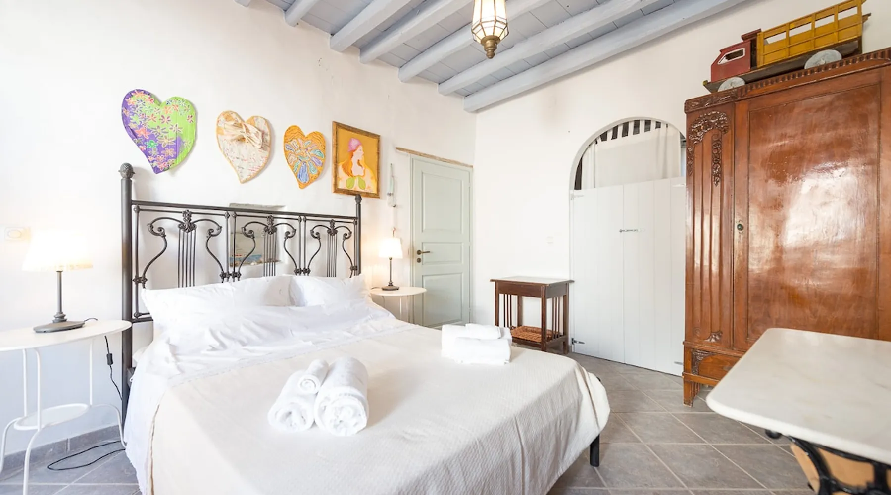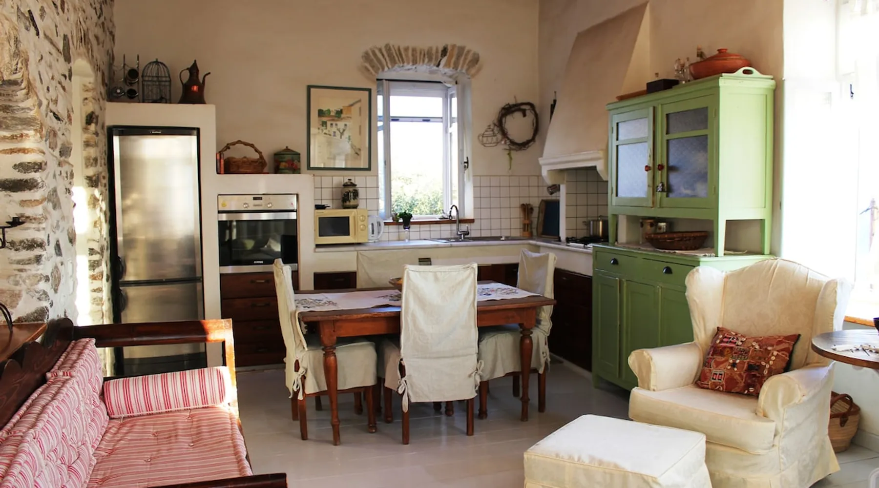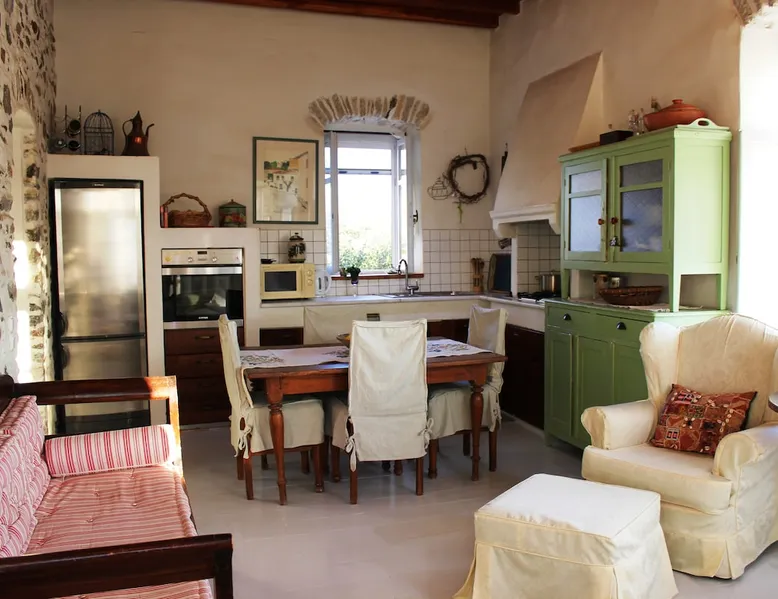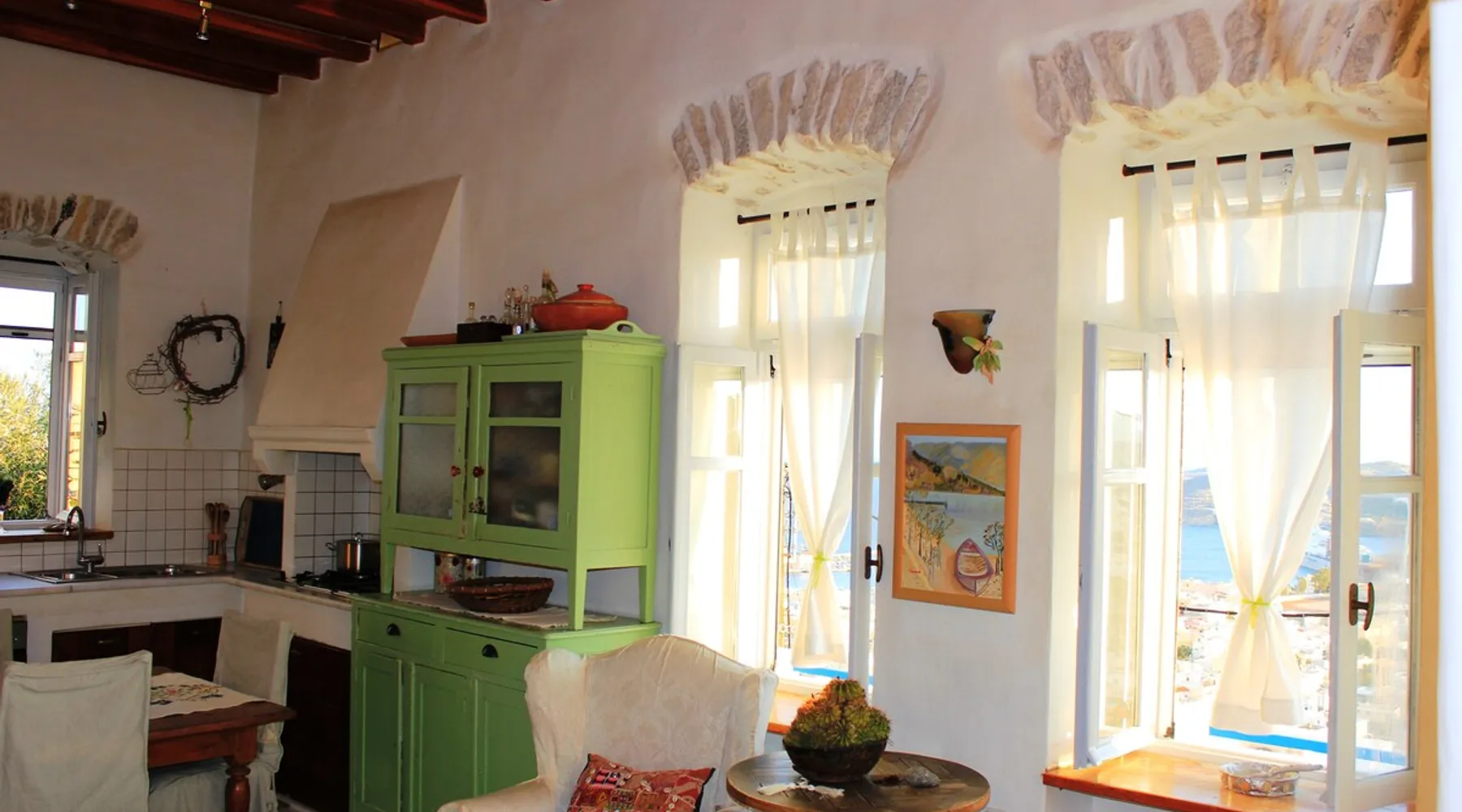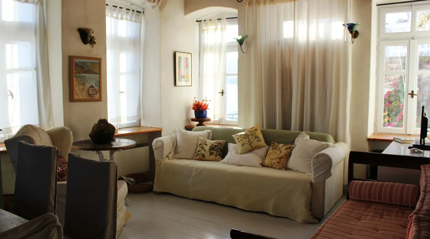This 2floor traditional house dating from the late 19th century is located in Ano Syros, the medieval town of Syros which is blissfully free of motor vehicles. It is situated right on the Square of Markos Vamvakaris, next to Piazza, the main street of the settlement, along which there are restaurants, cafés, a grocery store and cozy shops selling handicrafts. The space This 2floor traditional house, dating from the late 19th century, is located in Ano Syros, the medieval town of the island of Syros. It is located right on the Markos Vamvakaris Square, 50 m. away from the Piazza, the main commercial street of the town, where the visitor can find restaurants, cafés, a grocery store and cozy handicrafts stores. There is a pharmacy close by the Kamara (URL HIDDEN) be noted that no vehicles are allowed in Ano Syros. This exceptional house (119m2), was renovated in 2003. It includes 2 bedrooms with one king size bed each, and one sofa double bed in the living room. There is one WC with shower on the first floor and one en suite bathroom on the ground floor bedroom. The kitchen is bright, comfortable and fully equipped while from the living room’s windows or the large terrace you can enjoy the view to the town of Ermoupolis, the port and the fantastic deep blue sea water, overlooking Tinos, Mykonos and Paros islands. The house is an excellent choice for families, couples on romantic getaways or a group of people up to 6 persons. Guest access Kamara entrance in Ano Syros is just 10min from town by mini bus. You can also get there by taxi, car or motorbike, choosing Portara entrance, in a 5min drive. In Portara there is a parking area and the house is in 200m distance. Other things to note Washing machine and dishwasher are available for use to our hosts. Prefer to drink bottled water. For hot water, turn on the water heater for 15 mins. Please do not forget to turn off water heater and air condition, saving energy and respecting the environment. Remember to lock the main entrance when you leave from the house. Please leave rubbish seperately in the trash cans on both entrances. We provide you with clean bed linens and towels. In case of long term reservations, bed linens and towels are available once a week. Registration details 00000217352