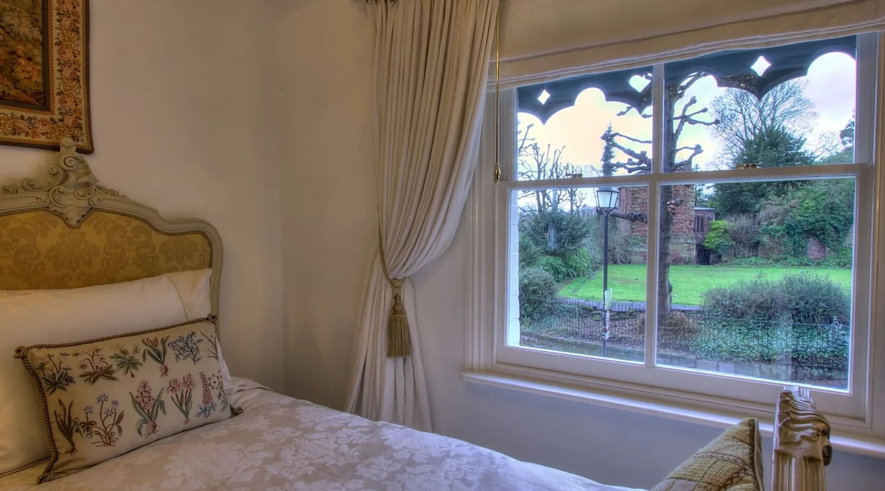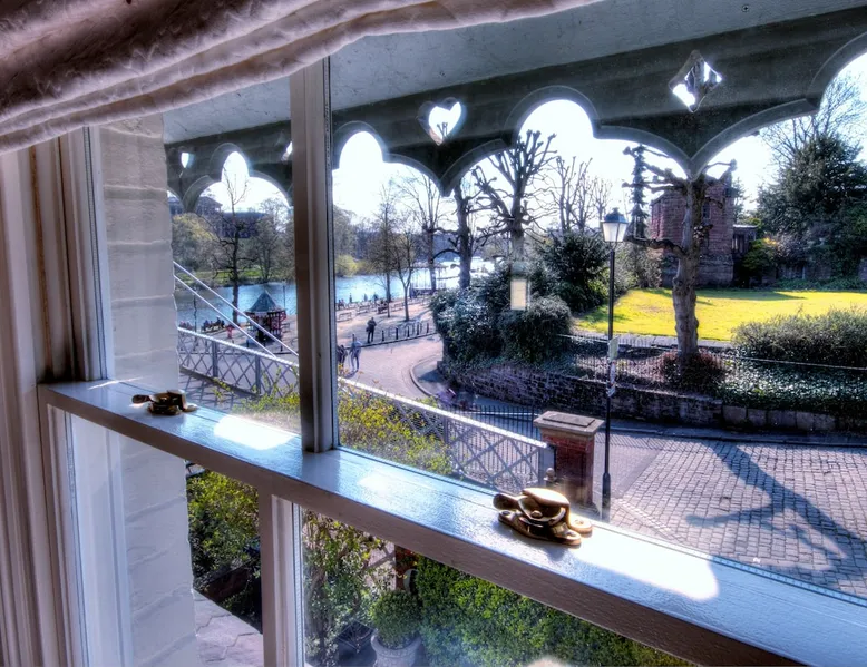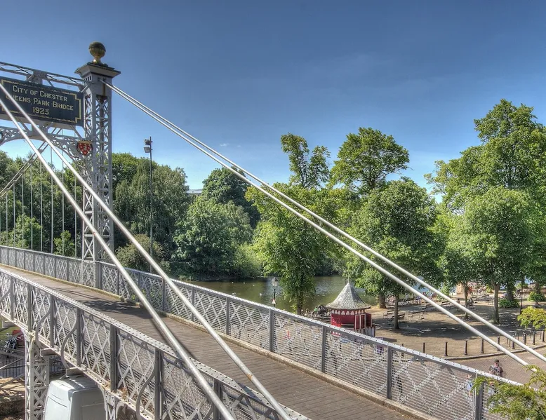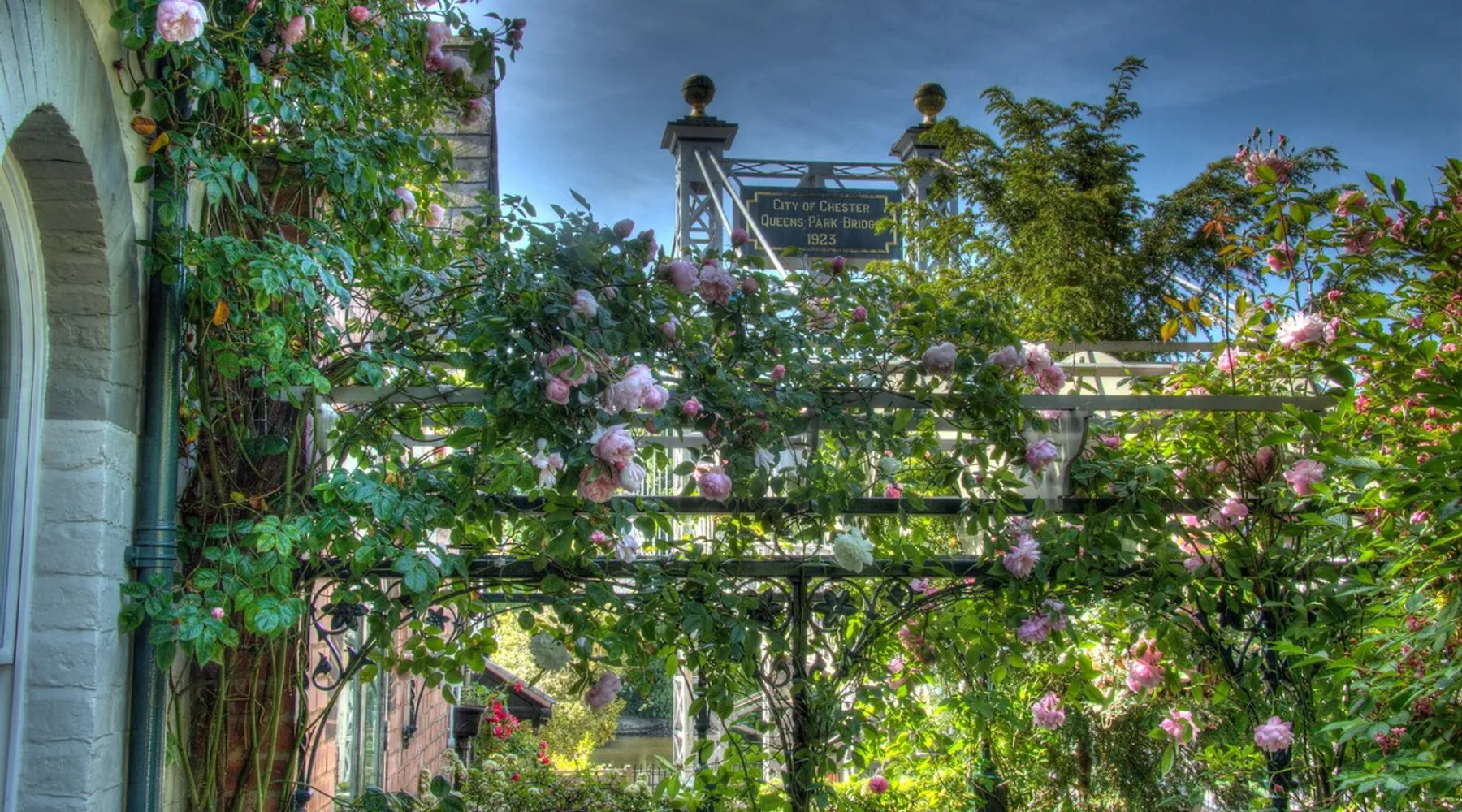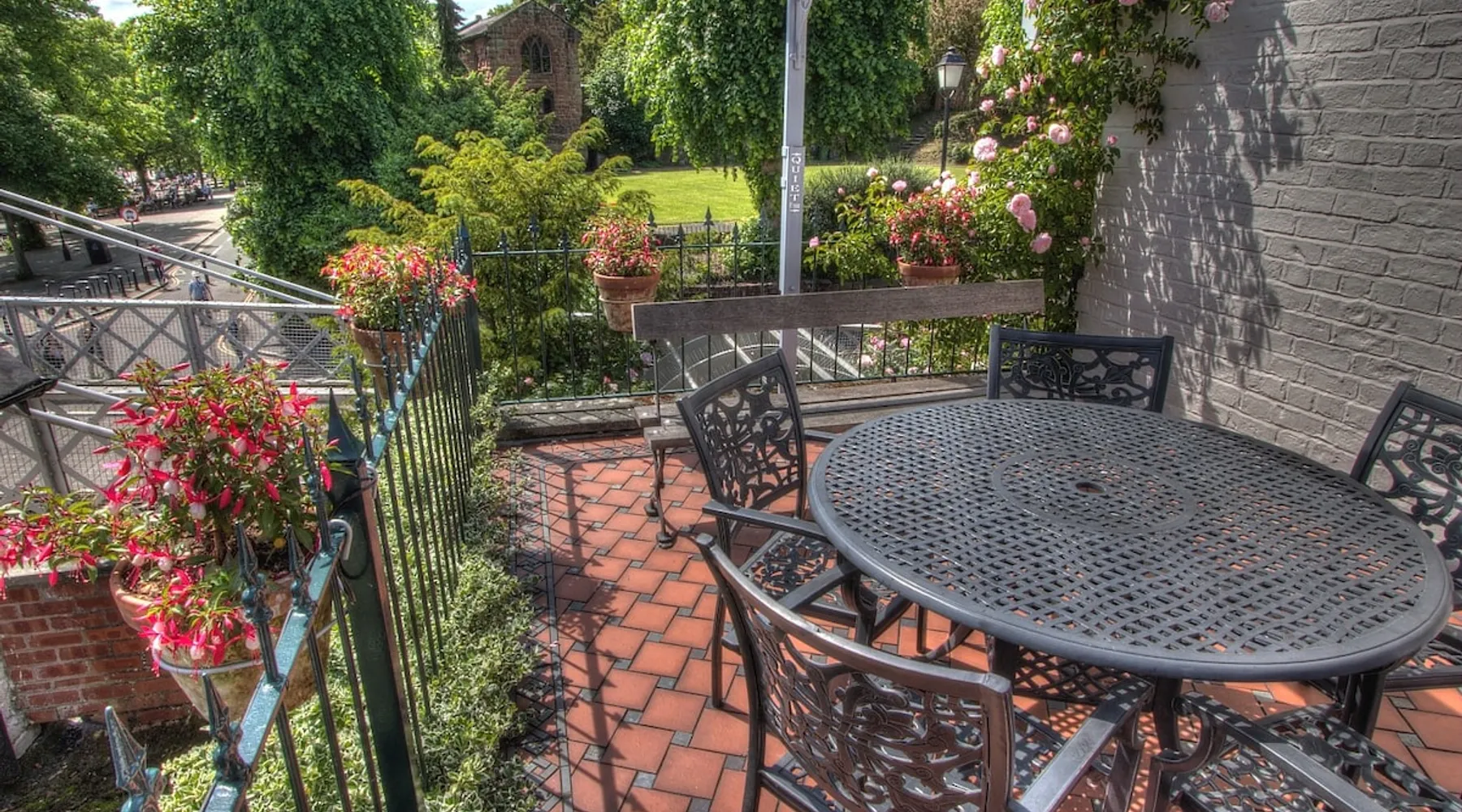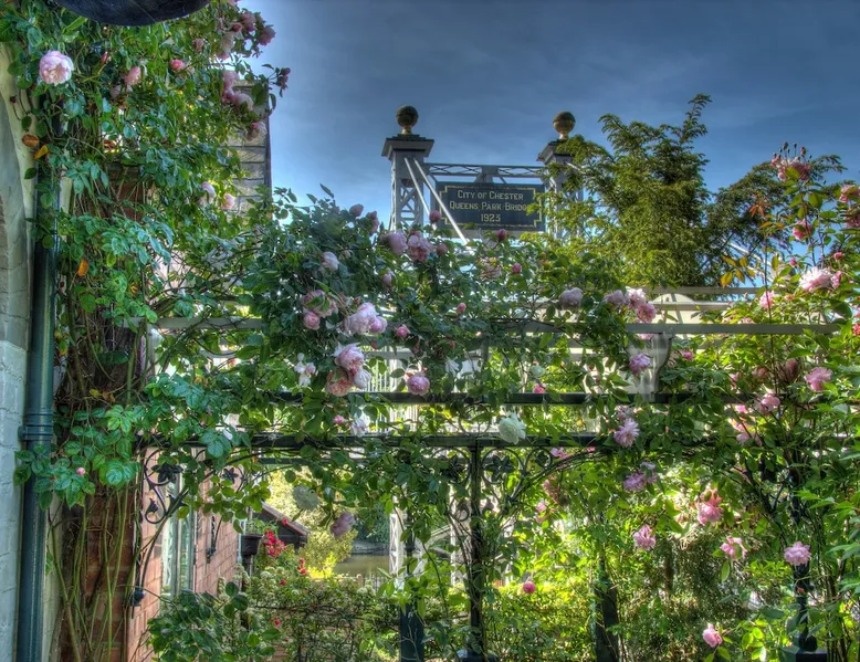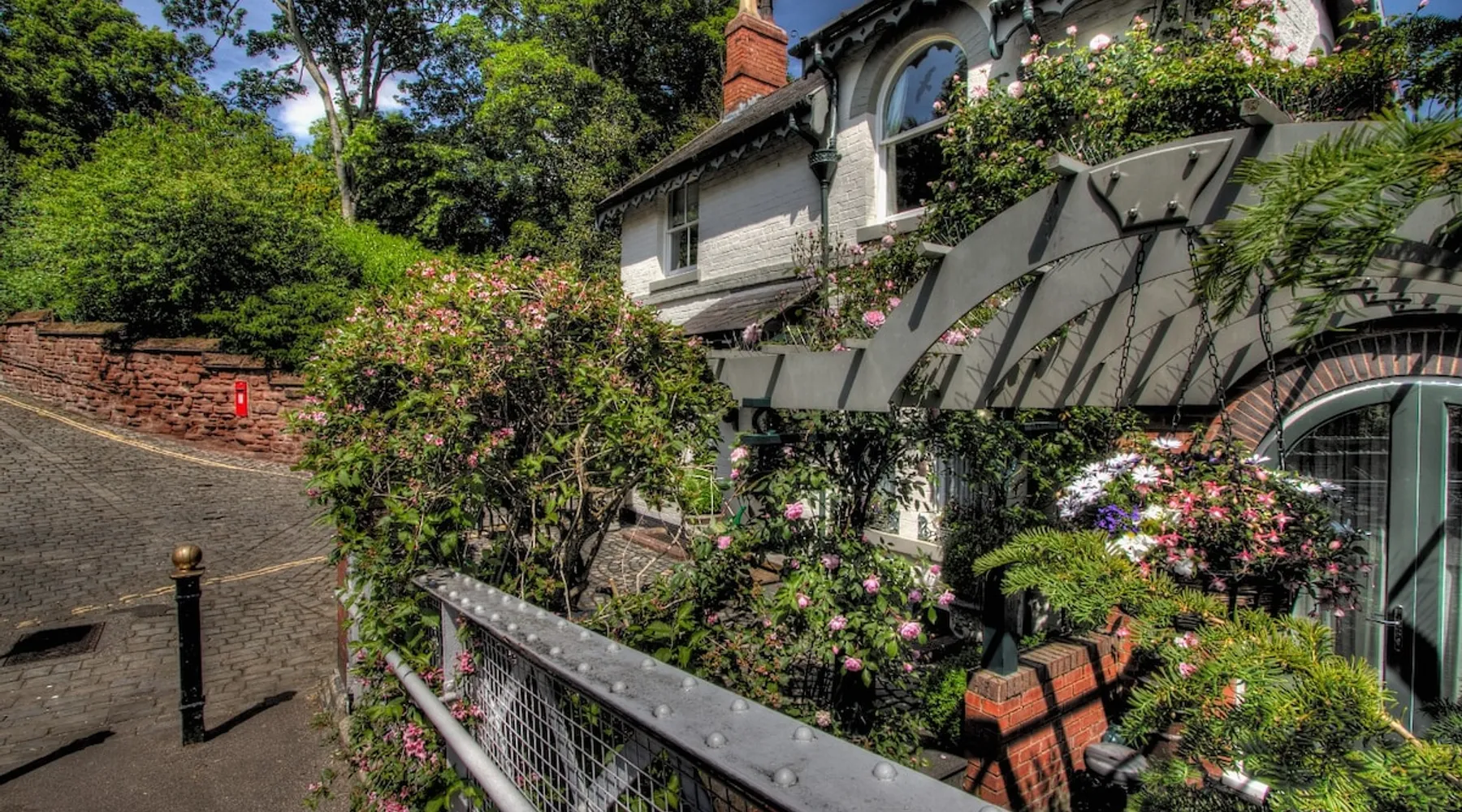 Located on the picturesque banks of the River Dee in the area of the city known as The Groves, one of the most attractive and popular tourist areas in the heart of Chester, Riverbridge Cottage is the holiday cottage to choose. This charming and characterful Victorian cottage is in a truly exceptional position set aside the entrance to the delightful pedestrian footbridge over the River Dee, opposite the gates to Grosvenor Park and the steps up to St John’s Church & City beyond (2 mins walk) The space Stunning views from the cottage across the vibrant Groves Riverside promenade area with its newly renovated bandstand and the cute ice cream kiosks. Historic views of the Old Dee Bridge, Anchorite’s Cell and St John’s Church from the cottage windows. As you enter via the gated courtyard and open the door to Riverbridge Cottage you know you are in for a treat. Lovingly renovated with considerable thought and care over a number of years and uniquely & lavishly furnished. The cottage is immediately welcoming. Set over 3 floors with the main living space upstairs to take full advantage of the splendid views. The delightful accommodation comprises of:- Bedroom 1:- An elegant master bedroom with two large arch top sash windows and impressively high ceiling set with a gleaming crystal chandelier above a kingsize double brass bedstead headed by a beautiful tapestry wall hanging. A comfy armchair also awaits you in the corner, a great place to read and relax. Bedroom 2:- A superb French-inspired twin room with a pair of ornate French beds headed by a French tapestry wall hanging and an amazing crystal chandelier. Also features a wonderful ornate mirror with candle sconces. This room boasts more amazing views. Bedroom 3:- French-inspired twin room with a pair of ornate French beds and button back reading chair. Two fabulous lounge sitting rooms:- Main lounge:- Elegantly furnished with triple aspect windows offering amazing views – great for people watching and relaxing. Also features access to the splendid rooftop terrace with patio furniture and sunshade. A great place to unwind. Lower floor lounge :- This room with interesting features includes an inglenook fireplace. A wonderful room to relax in. Reception room:- Welcoming ground floor reception room with two large arch top sash windows and an impressively high ceiling encircled with fascinating plaques. A feature fireplace with overmantle mirror. Door leading to entrance hall with hat & coat rack and features a Victorian tiled floor. Two separate bathrooms: Bathroom 1:- Ground floor bathroom with large walk-in mirrored shower, wash hand basin and WC. Bathroom 2:- Lower floor bathroom with large bathtub, shower cubicle, wash hand basin and WC. Kitchen/dining room:- The kitchen and dining area is a delightful feature of the cottage. Very well equipped with quality AEG appliances. The dining area features a large 6 seat dining table and chairs. Double patio doors open onto a walled furnished patio area with rose-covered ornate pergola, making a great outside space to relax in. Utility: Utility area with a washer-dryer, ironing facilities, sink & drainer and first aid cabinet. Further Information. > The cottage has free Wifi > Televisions to each of the two lounge rooms > Towels and bed linen is provided > Maximum occupancy is 6 adults > Minimum stay – 2 nights > No children under 5 years of age > No pets > No smoking > No stag or hen parties