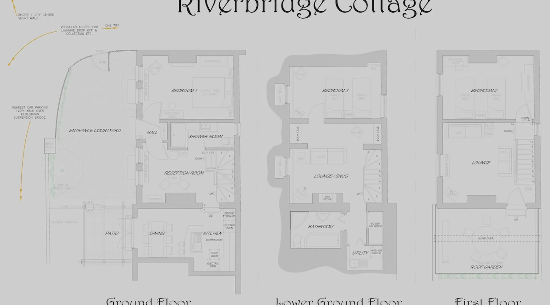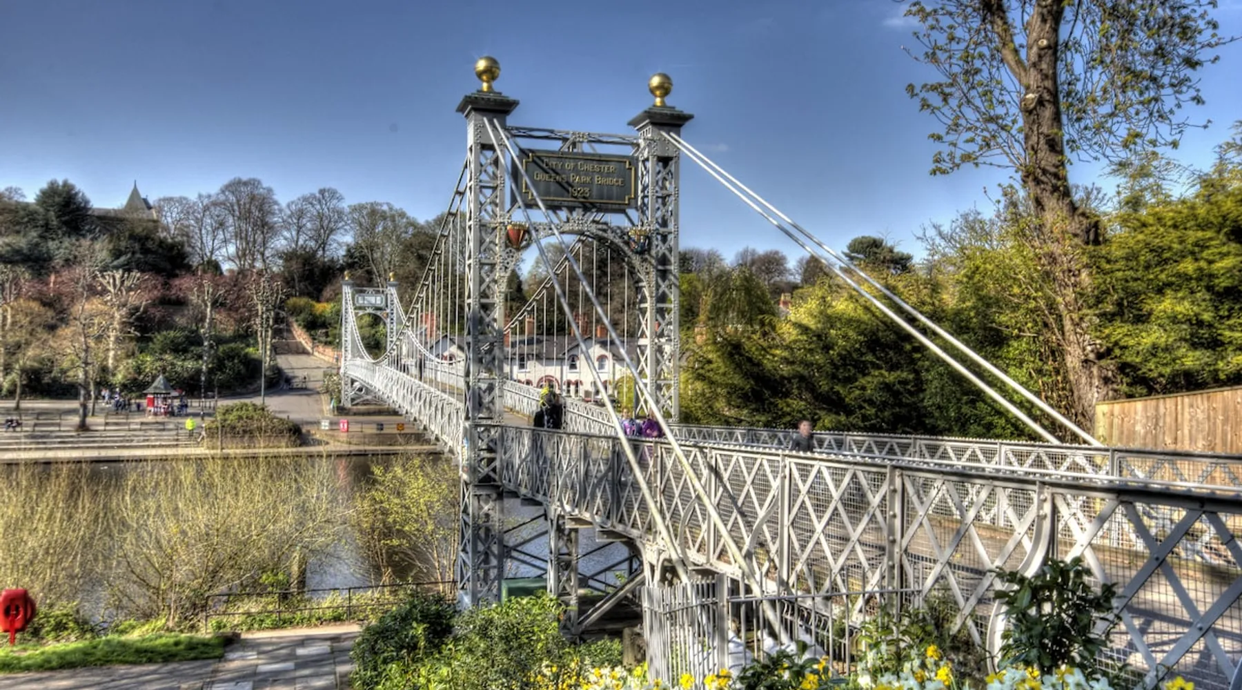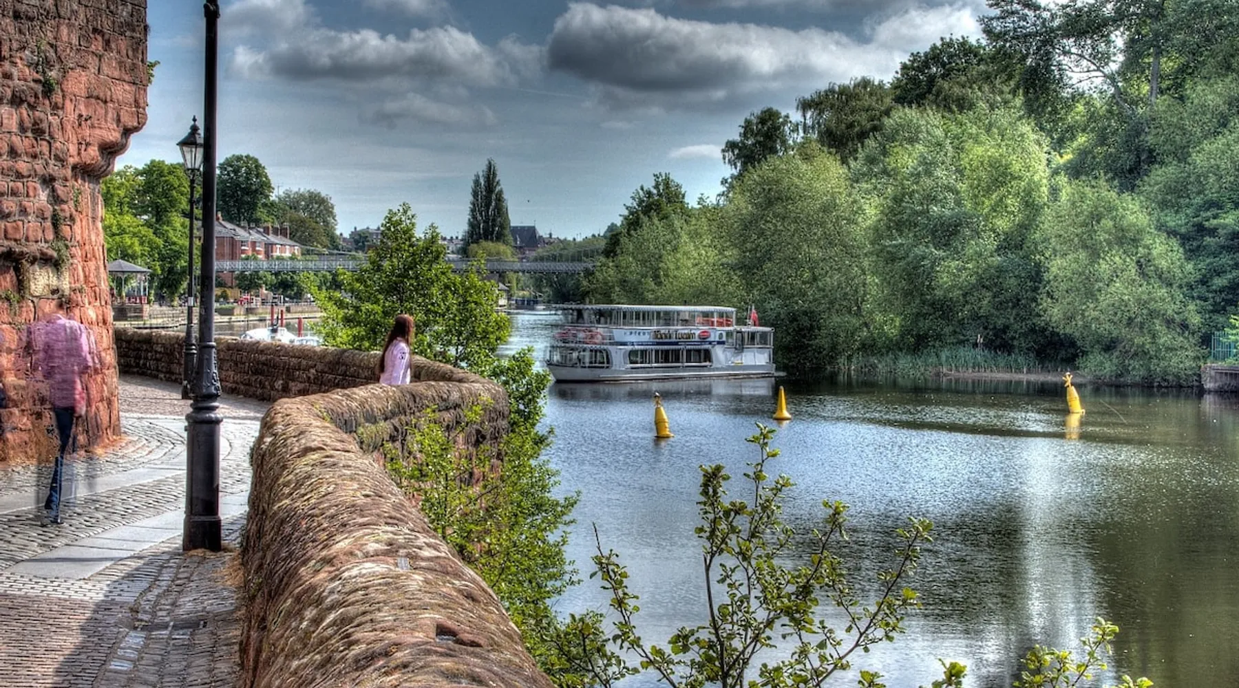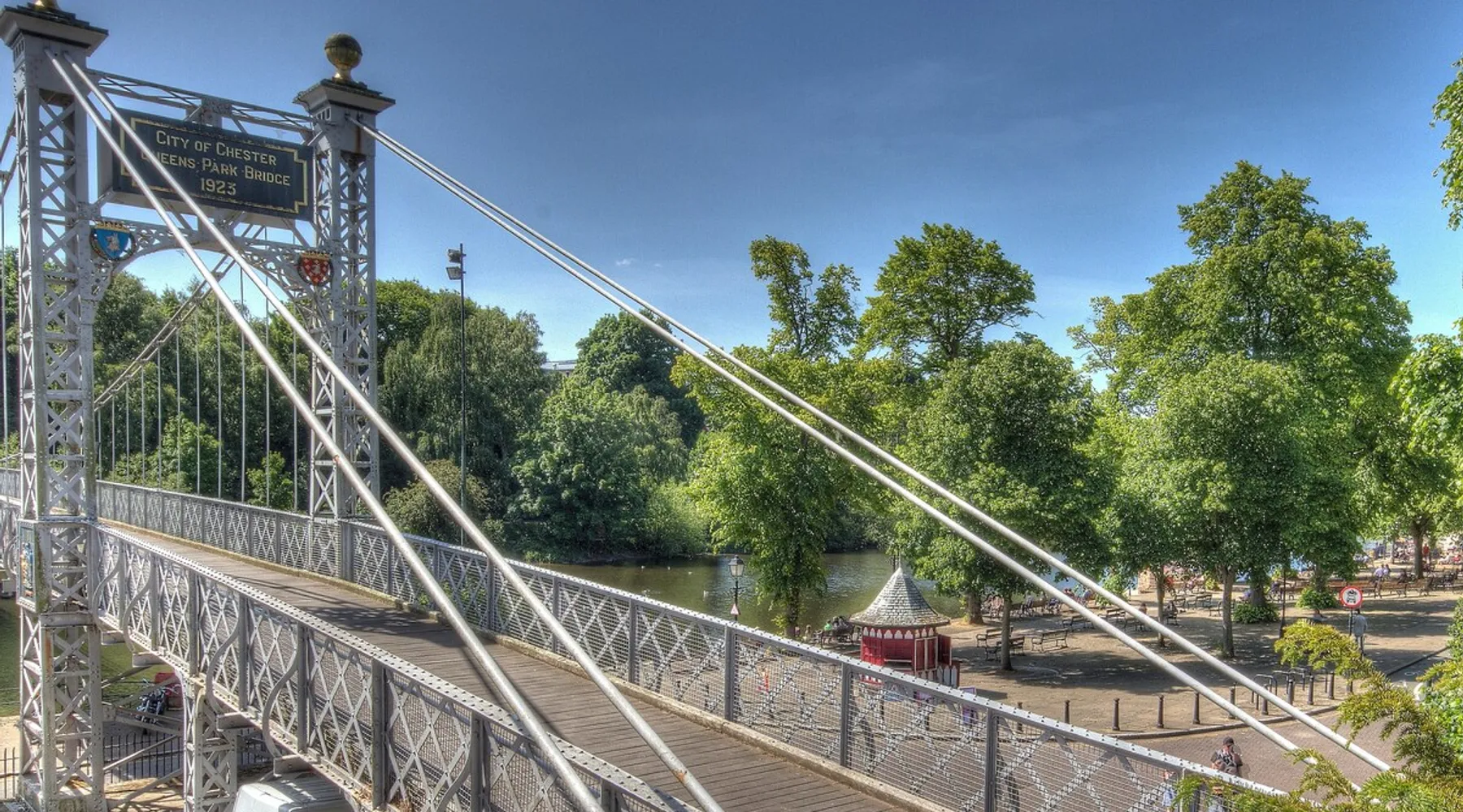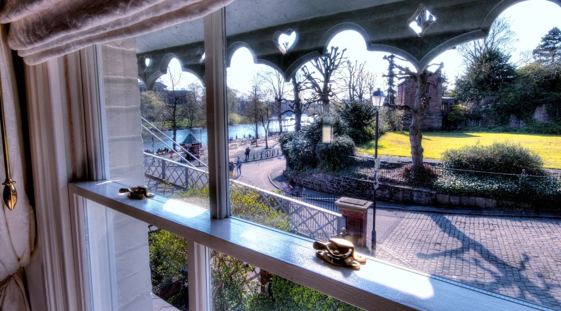Located on the picturesque banks of the River Dee in the area of the city known as The Groves, one of the most attractive and popular tourist areas in the heart of Chester, Riverbridge Cottage is the holiday cottage to choose. This charming and characterful Victorian cottage is in a truly exceptional position set aside the entrance to the delightful pedestrian footbridge over the River Dee, opposite the gates to Grosvenor Park and the steps up to St John’s Church & City beyond (2 mins walk) The space Stunning views from the cottage across the vibrant Groves Riverside promenade area with its newly renovated bandstand and the cute ice cream kiosks. Historic views of the Old Dee Bridge, Anchorite’s Cell and St John’s Church from the cottage windows. As you enter via the gated courtyard and open the door to Riverbridge Cottage you know you are in for a treat. Lovingly renovated with considerable thought and care over a number of years and uniquely & lavishly furnished. The cottage is immediately welcoming. Set over 3 floors with the main living space upstairs to take full advantage of the splendid views. The delightful accommodation comprises of:- Bedroom 1:- An elegant master bedroom with two large arch top sash windows and impressively high ceiling set with a gleaming crystal chandelier above a kingsize double brass bedstead headed by a beautiful tapestry wall hanging. A comfy armchair also awaits you in the corner, a great place to read and relax. Bedroom 2:- A superb French-inspired twin room with a pair of ornate French beds headed by a French tapestry wall hanging and an amazing crystal chandelier. Also features a wonderful ornate mirror with candle sconces. This room boasts more amazing views. Bedroom 3:- French-inspired twin room with a pair of ornate French beds and button back reading chair. Two fabulous lounge sitting rooms:- Main lounge:- Elegantly furnished with triple aspect windows offering amazing views – great for people watching and relaxing. Also features access to the splendid rooftop terrace with patio furniture and sunshade. A great place to unwind. Lower floor lounge :- This room with interesting features includes an inglenook fireplace. A wonderful room to relax in. Reception room:- Welcoming ground floor reception room with two large arch top sash windows and an impressively high ceiling encircled with fascinating plaques. A feature fireplace with overmantle mirror. Door leading to entrance hall with hat & coat rack and features a Victorian tiled floor. Two separate bathrooms: Bathroom 1:- Ground floor bathroom with large walk-in mirrored shower, wash hand basin and WC. Bathroom 2:- Lower floor bathroom with large bathtub, shower cubicle, wash hand basin and WC. Kitchen/dining room:- The kitchen and dining area is a delightful feature of the cottage. Very well equipped with quality AEG appliances. The dining area features a large 6 seat dining table and chairs. Double patio doors open onto a walled furnished patio area with rose-covered ornate pergola, making a great outside space to relax in. Utility: Utility area with a washer-dryer, ironing facilities, sink & drainer and first aid cabinet. Further Information. > The cottage has free Wifi > Televisions to each of the two lounge rooms > Towels and bed linen is provided > Maximum occupancy is 6 adults > Minimum stay – 2 nights > No children under 5 years of age > No pets > No smoking > No stag or hen parties