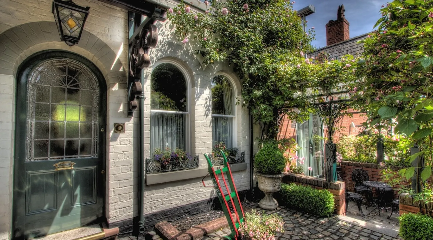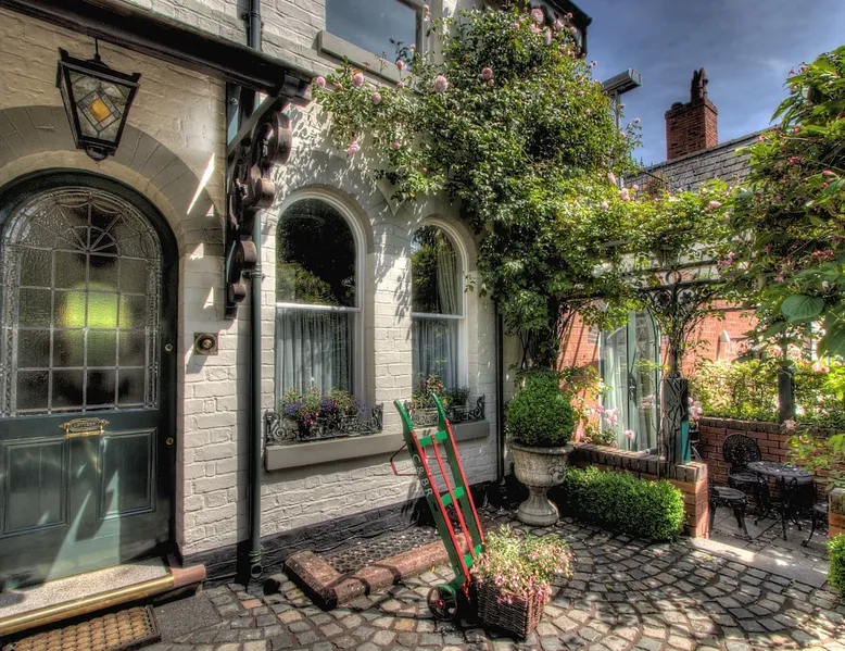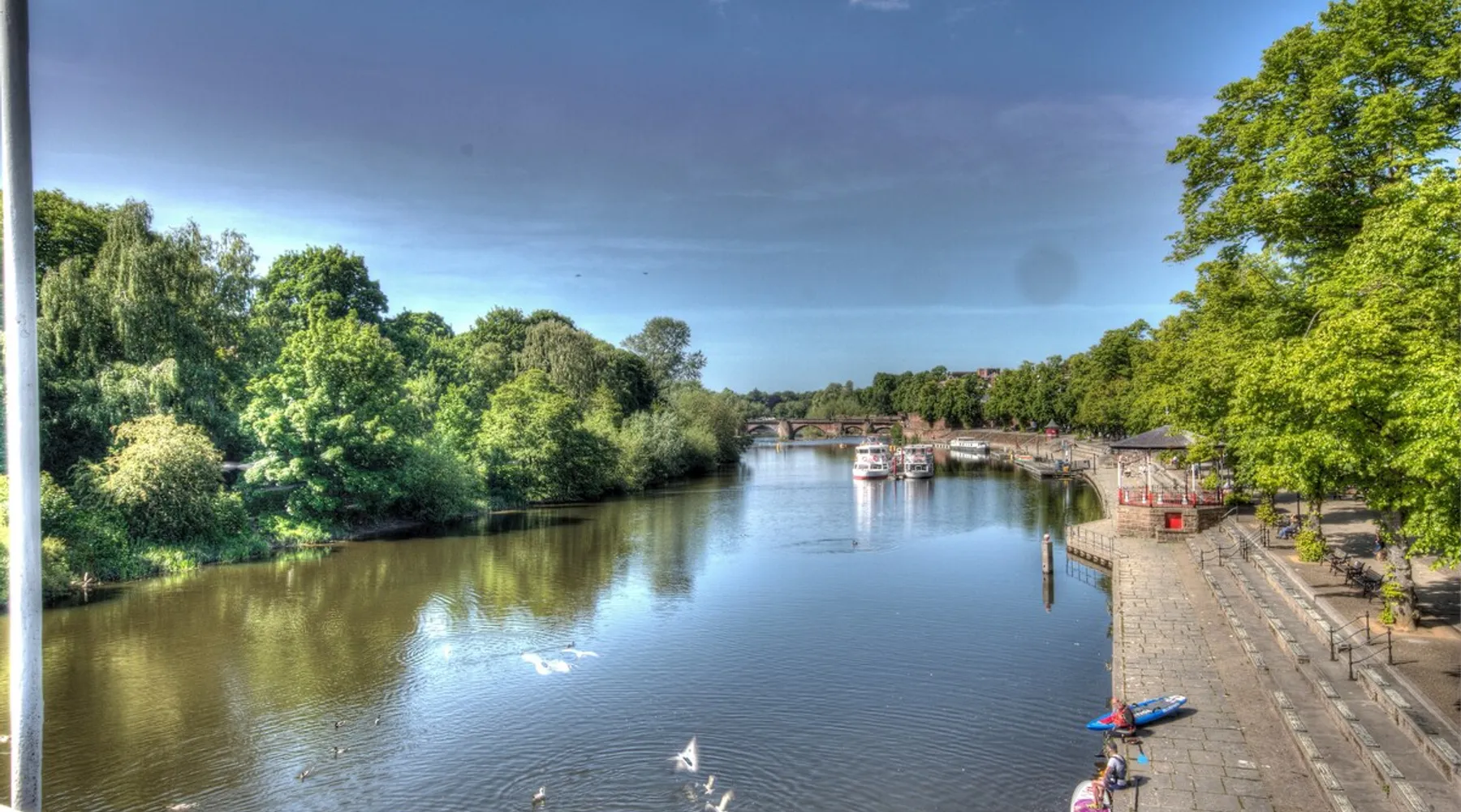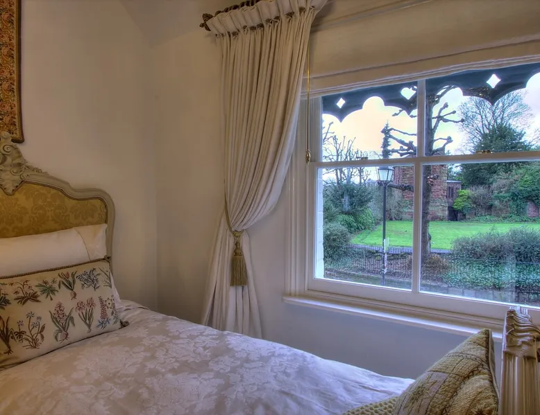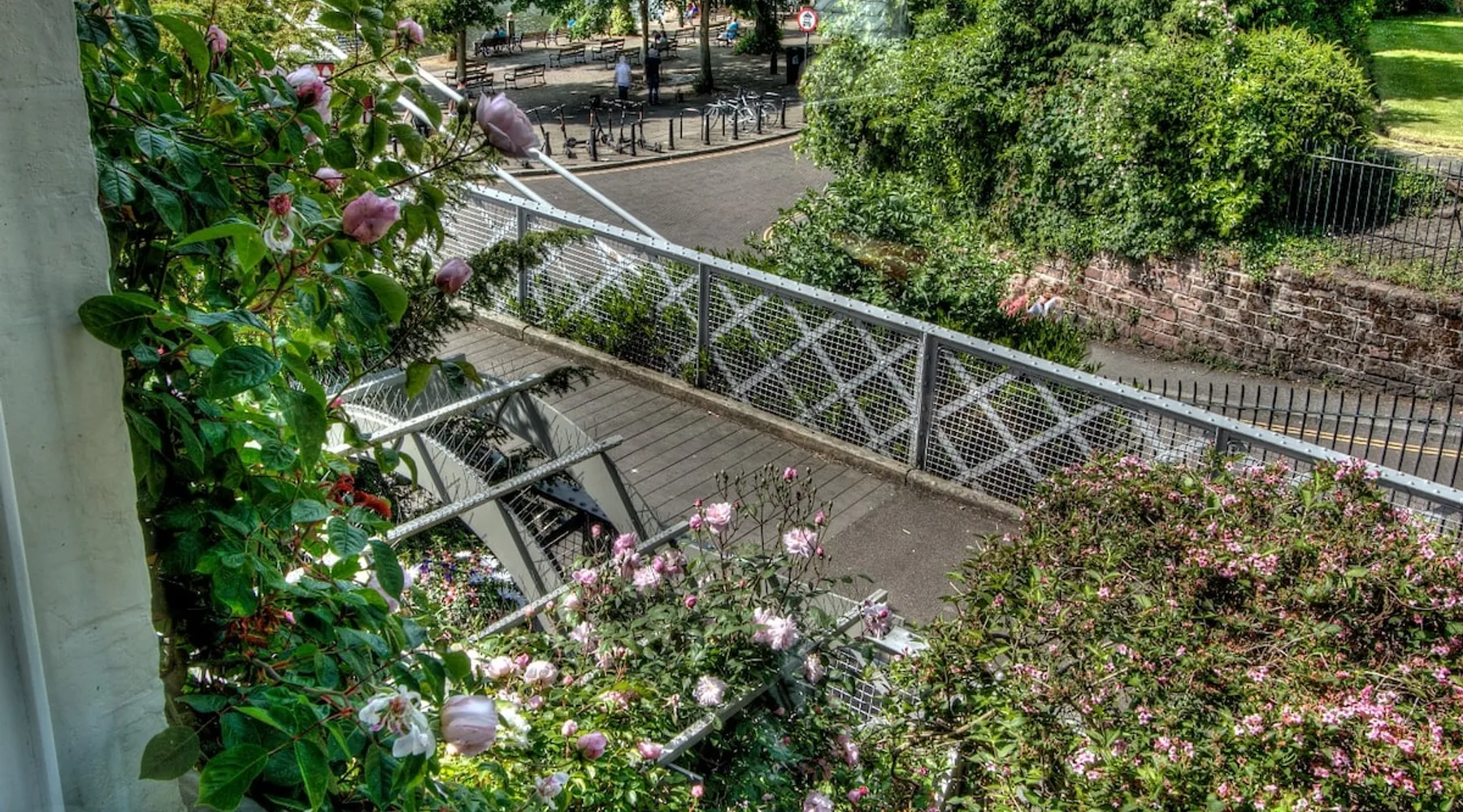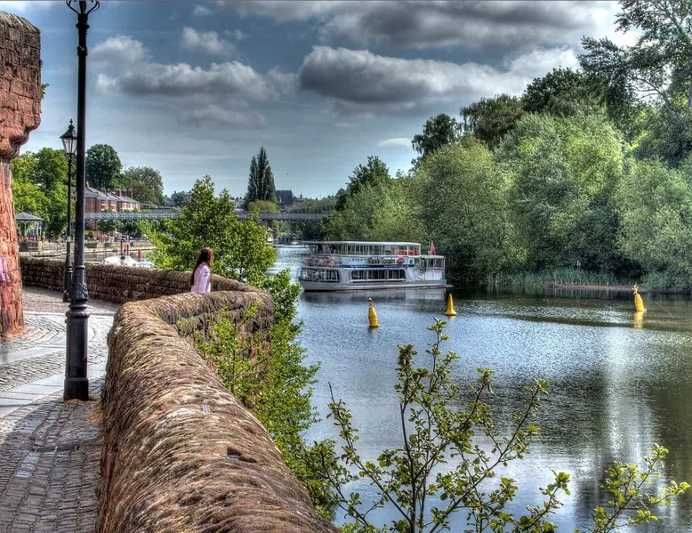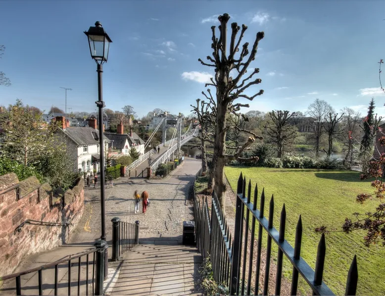 Located on the picturesque banks of the River Dee in the area of the city known as The Groves, one of the most attractive and popular tourist areas in the heart of Chester, Riverbridge Cottage is the holiday cottage to choose. This charming and characterful Victorian cottage is in a truly exceptional position set aside the entrance to the delightful pedestrian footbridge over the River Dee, opposite the gates to Grosvenor Park and the steps up to St John’s Church & City beyond (2 mins walk) The space Stunning views from the cottage across the vibrant Groves Riverside promenade area with its newly renovated bandstand and the cute ice cream kiosks. Historic views of the Old Dee Bridge, Anchorite’s Cell and St John’s Church from the cottage windows. As you enter via the gated courtyard and open the door to Riverbridge Cottage you know you are in for a treat. Lovingly renovated with considerable thought and care over a number of years and uniquely & lavishly furnished. The cottage is immediately welcoming. Set over 3 floors with the main living space upstairs to take full advantage of the splendid views. The delightful accommodation comprises of:- Bedroom 1:- An elegant master bedroom with two large arch top sash windows and impressively high ceiling set with a gleaming crystal chandelier above a kingsize double brass bedstead headed by a beautiful tapestry wall hanging. A comfy armchair also awaits you in the corner, a great place to read and relax. Bedroom 2:- A superb French-inspired twin room with a pair of ornate French beds headed by a French tapestry wall hanging and an amazing crystal chandelier. Also features a wonderful ornate mirror with candle sconces. This room boasts more amazing views. Bedroom 3:- French-inspired twin room with a pair of ornate French beds and button back reading chair. Two fabulous lounge sitting rooms:- Main lounge:- Elegantly furnished with triple aspect windows offering amazing views – great for people watching and relaxing. Also features access to the splendid rooftop terrace with patio furniture and sunshade. A great place to unwind. Lower floor lounge :- This room with interesting features includes an inglenook fireplace. A wonderful room to relax in. Reception room:- Welcoming ground floor reception room with two large arch top sash windows and an impressively high ceiling encircled with fascinating plaques. A feature fireplace with overmantle mirror. Door leading to entrance hall with hat & coat rack and features a Victorian tiled floor. Two separate bathrooms: Bathroom 1:- Ground floor bathroom with large walk-in mirrored shower, wash hand basin and WC. Bathroom 2:- Lower floor bathroom with large bathtub, shower cubicle, wash hand basin and WC. Kitchen/dining room:- The kitchen and dining area is a delightful feature of the cottage. Very well equipped with quality AEG appliances. The dining area features a large 6 seat dining table and chairs. Double patio doors open onto a walled furnished patio area with rose-covered ornate pergola, making a great outside space to relax in. Utility: Utility area with a washer-dryer, ironing facilities, sink & drainer and first aid cabinet. Further Information. > The cottage has free Wifi > Televisions to each of the two lounge rooms > Towels and bed linen is provided > Maximum occupancy is 6 adults > Minimum stay – 2 nights > No children under 5 years of age > No pets > No smoking > No stag or hen parties