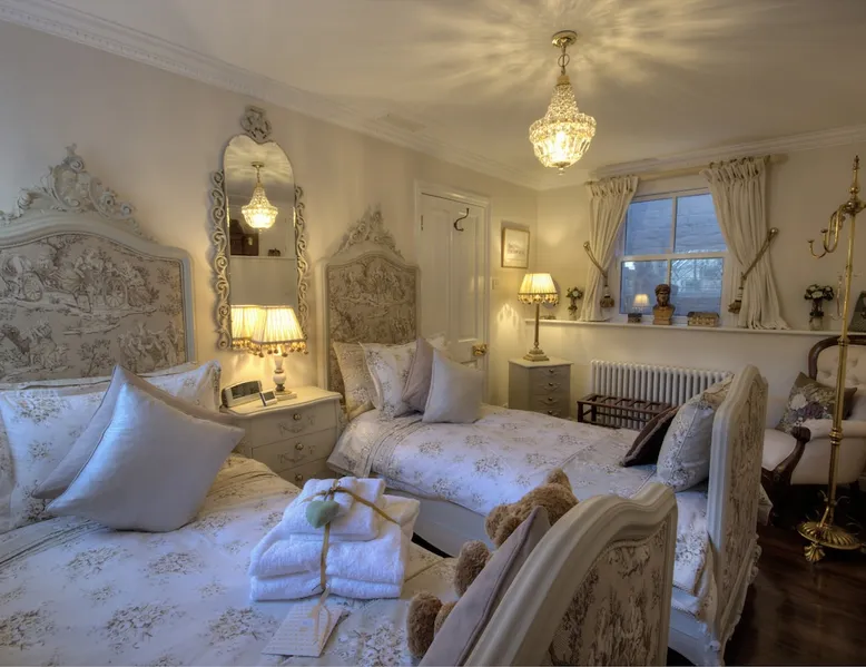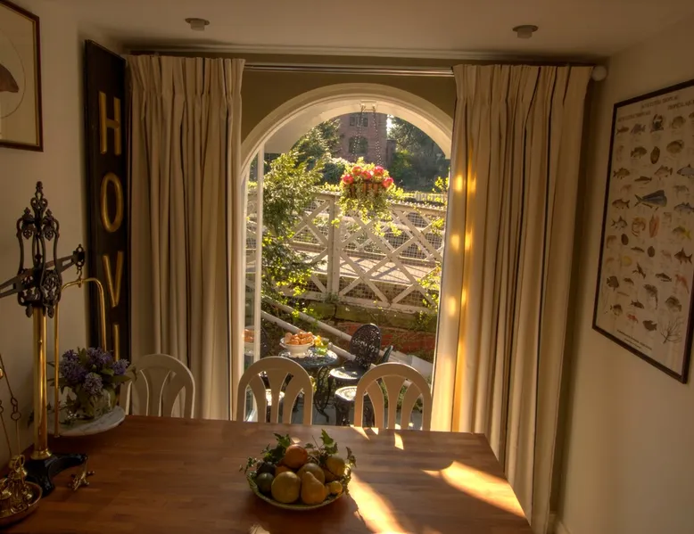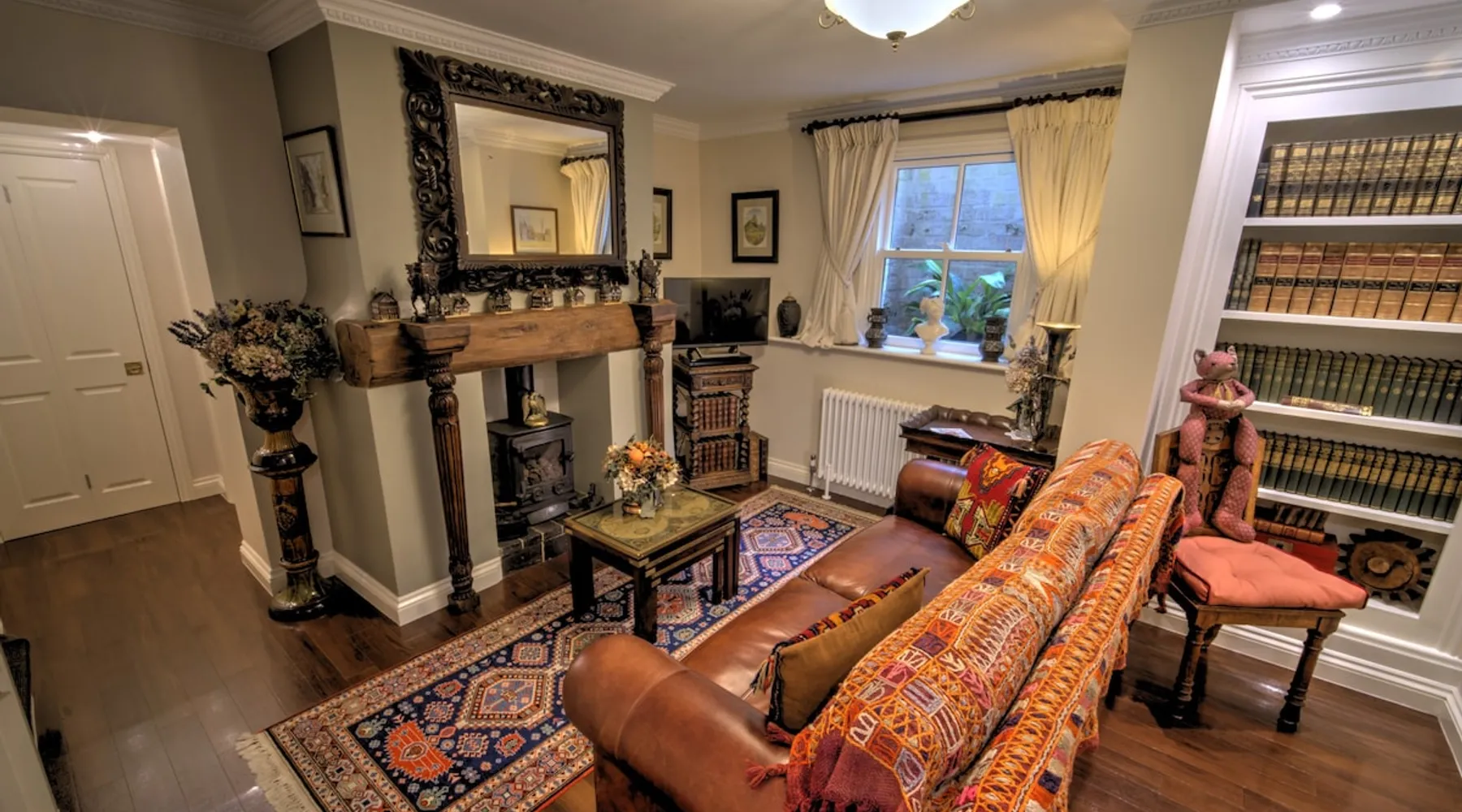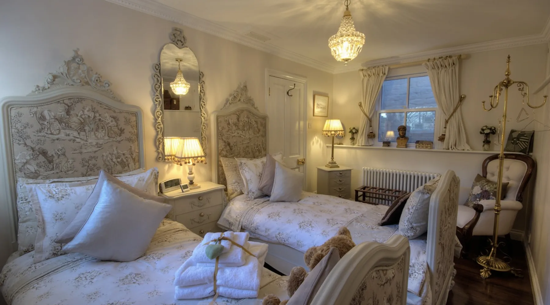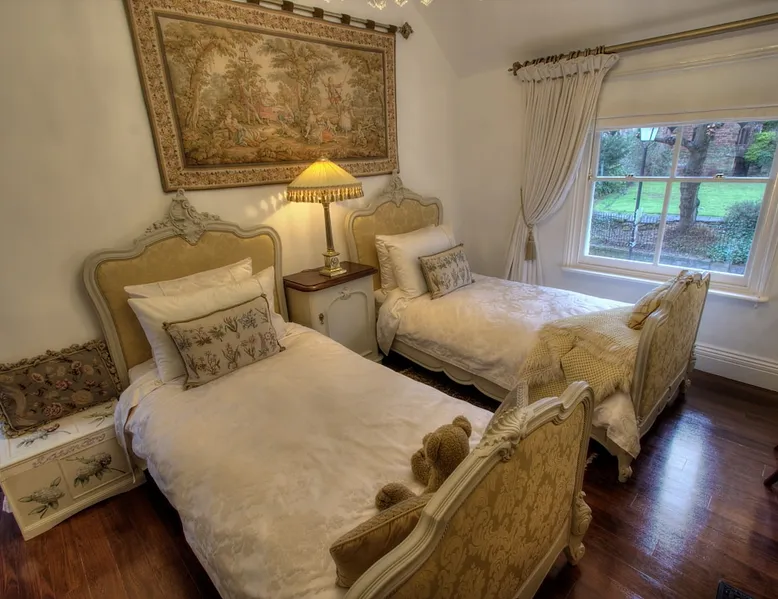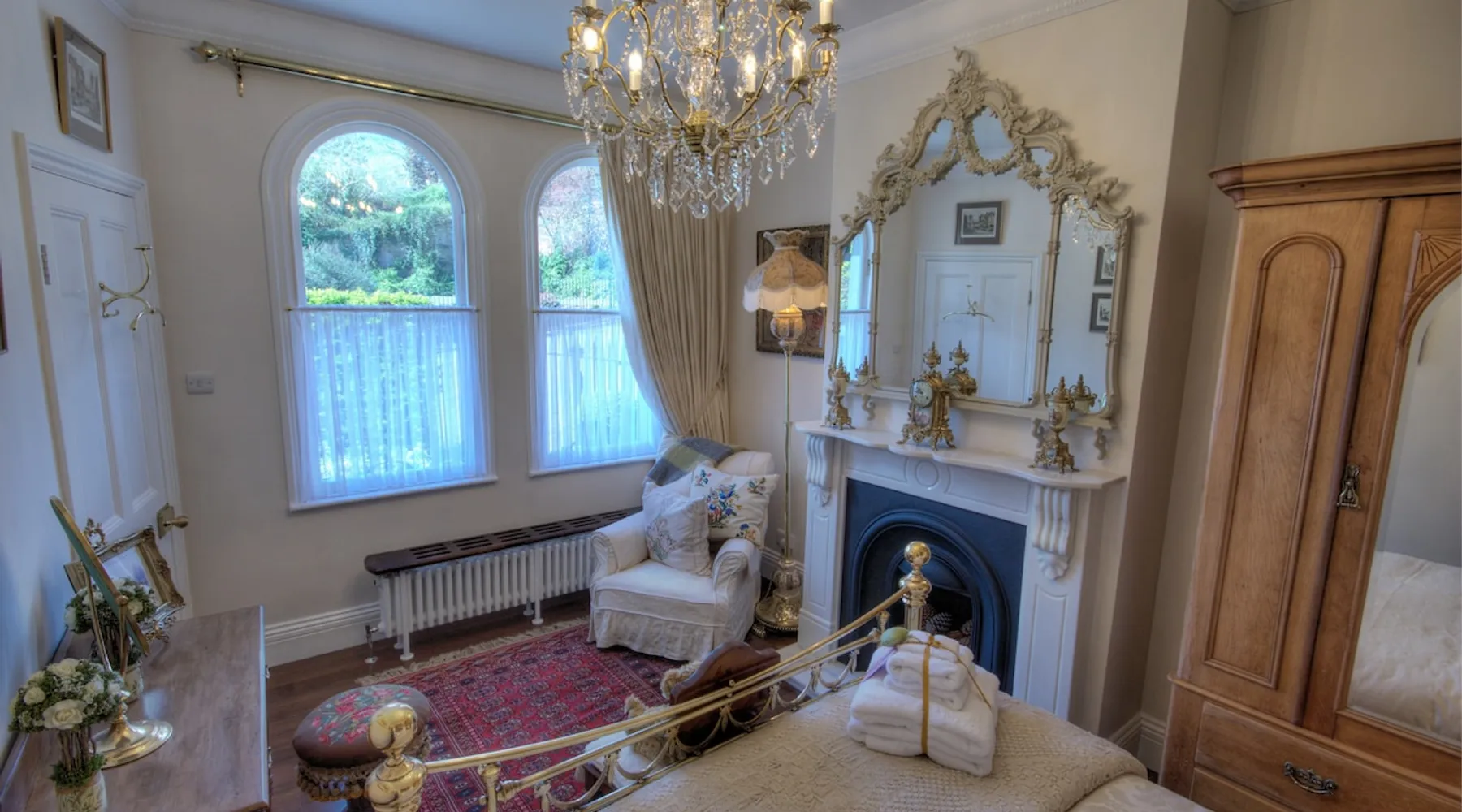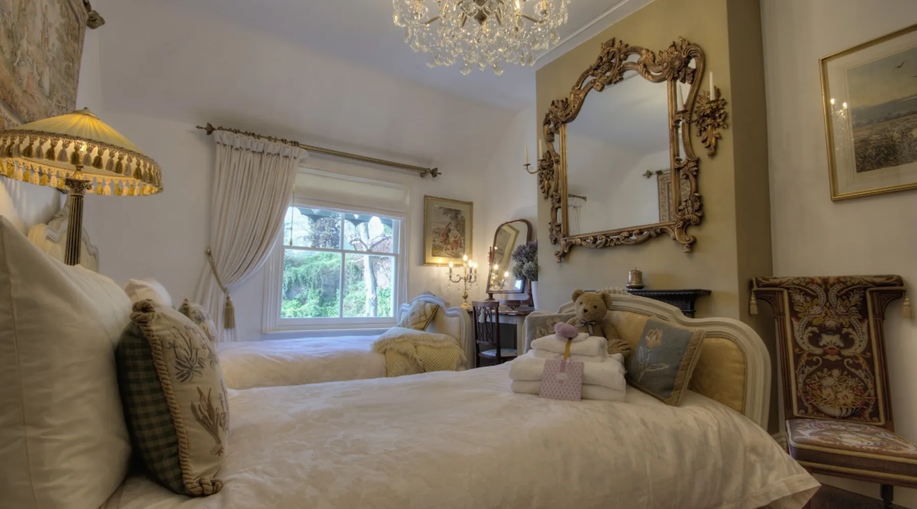 Located on the picturesque banks of the River Dee in the area of the city known as The Groves, one of the most attractive and popular tourist areas in the heart of Chester, Riverbridge Cottage is the holiday cottage to choose. This charming and characterful Victorian cottage is in a truly exceptional position set aside the entrance to the delightful pedestrian footbridge over the River Dee, opposite the gates to Grosvenor Park and the steps up to St John’s Church & City beyond (2 mins walk) The space Stunning views from the cottage across the vibrant Groves Riverside promenade area with its newly renovated bandstand and the cute ice cream kiosks. Historic views of the Old Dee Bridge, Anchorite’s Cell and St John’s Church from the cottage windows. As you enter via the gated courtyard and open the door to Riverbridge Cottage you know you are in for a treat. Lovingly renovated with considerable thought and care over a number of years and uniquely & lavishly furnished. The cottage is immediately welcoming. Set over 3 floors with the main living space upstairs to take full advantage of the splendid views. The delightful accommodation comprises of:- Bedroom 1:- An elegant master bedroom with two large arch top sash windows and impressively high ceiling set with a gleaming crystal chandelier above a kingsize double brass bedstead headed by a beautiful tapestry wall hanging. A comfy armchair also awaits you in the corner, a great place to read and relax. Bedroom 2:- A superb French-inspired twin room with a pair of ornate French beds headed by a French tapestry wall hanging and an amazing crystal chandelier. Also features a wonderful ornate mirror with candle sconces. This room boasts more amazing views. Bedroom 3:- French-inspired twin room with a pair of ornate French beds and button back reading chair. Two fabulous lounge sitting rooms:- Main lounge:- Elegantly furnished with triple aspect windows offering amazing views – great for people watching and relaxing. Also features access to the splendid rooftop terrace with patio furniture and sunshade. A great place to unwind. Lower floor lounge :- This room with interesting features includes an inglenook fireplace. A wonderful room to relax in. Reception room:- Welcoming ground floor reception room with two large arch top sash windows and an impressively high ceiling encircled with fascinating plaques. A feature fireplace with overmantle mirror. Door leading to entrance hall with hat & coat rack and features a Victorian tiled floor. Two separate bathrooms: Bathroom 1:- Ground floor bathroom with large walk-in mirrored shower, wash hand basin and WC. Bathroom 2:- Lower floor bathroom with large bathtub, shower cubicle, wash hand basin and WC. Kitchen/dining room:- The kitchen and dining area is a delightful feature of the cottage. Very well equipped with quality AEG appliances. The dining area features a large 6 seat dining table and chairs. Double patio doors open onto a walled furnished patio area with rose-covered ornate pergola, making a great outside space to relax in. Utility: Utility area with a washer-dryer, ironing facilities, sink & drainer and first aid cabinet. Further Information. > The cottage has free Wifi > Televisions to each of the two lounge rooms > Towels and bed linen is provided > Maximum occupancy is 6 adults > Minimum stay – 2 nights > No children under 5 years of age > No pets > No smoking > No stag or hen parties