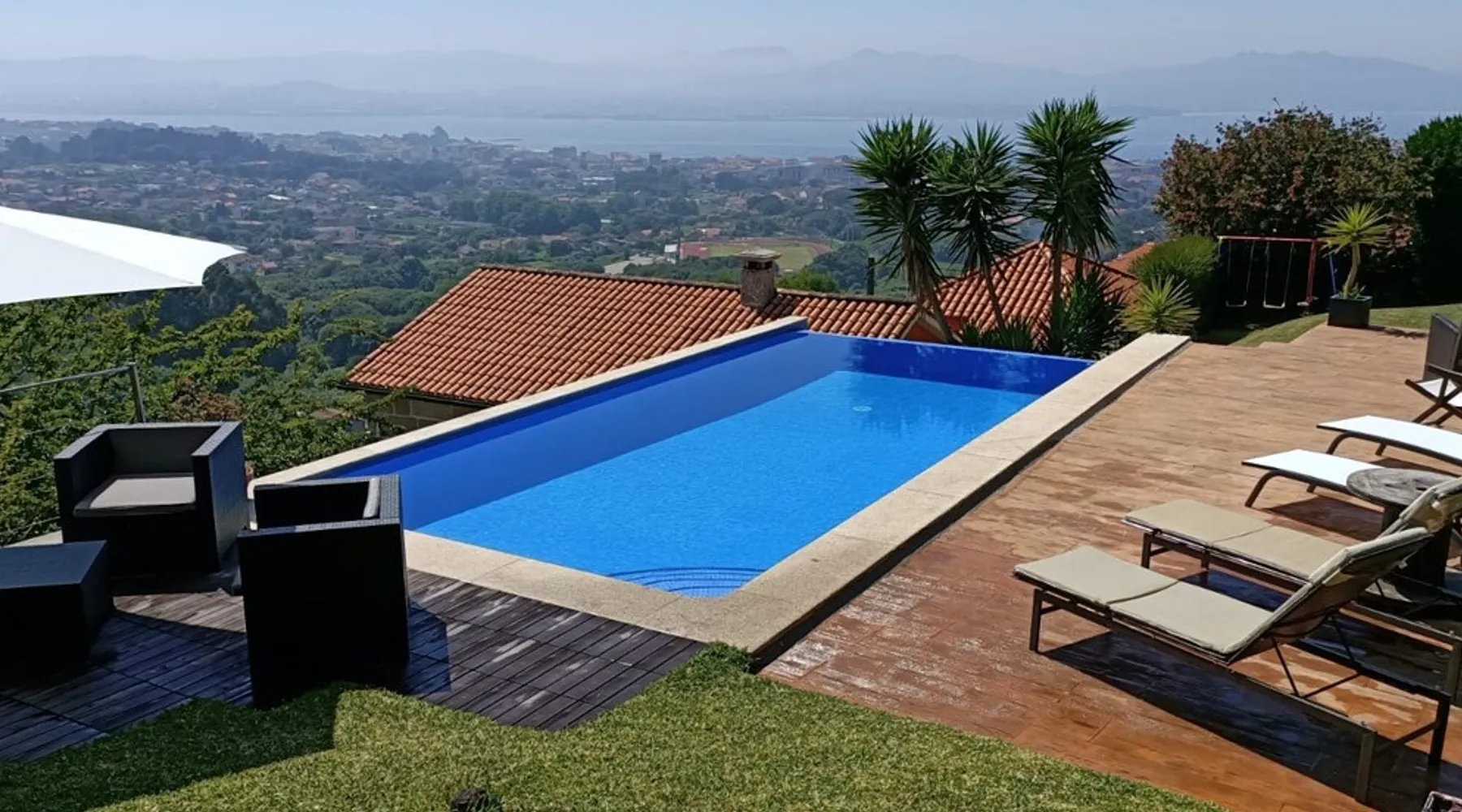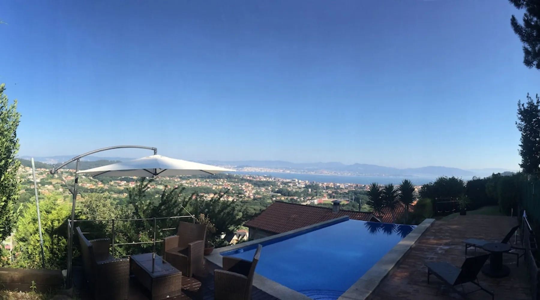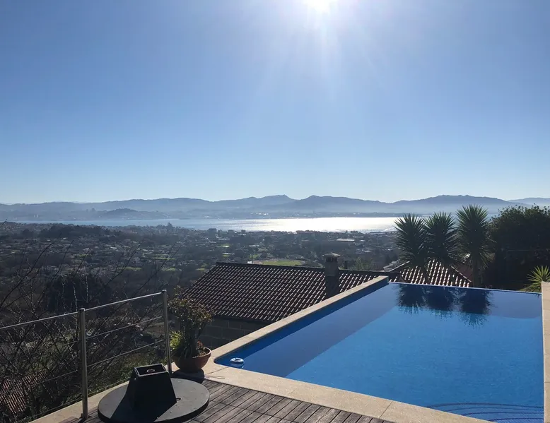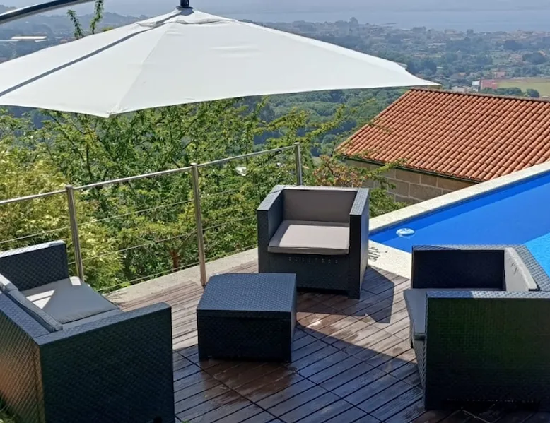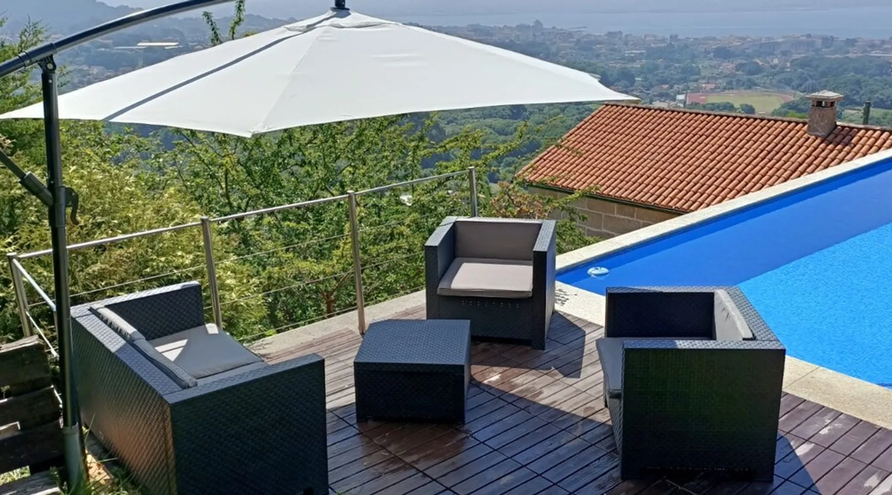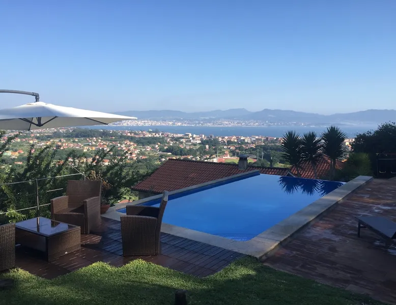Galician house recently restored with swimming pool located in a rural environment with more than 50 beautiful beaches at a distance of 5 km. The house consists of three bedrooms, 2 bathrooms and a toilet, one of them ensuite, garden, pool, playground for children and several terraces with spectacular views of the Vigo estuary and the Valley. Animals are allowed. The space The view is the most impressive thing the house has. It offers wonderful views of the Ria de Vigo, the city of Cangas and the valley. The house has numerous terraces where you can enjoy it. It also has spectacular views from the pool. Guest access The whole house is accessible to guests Other things to note The house in July and August is rented for a minimum of 7 days. Not available for guests with limited mobility. Registration No.: ESFCTU0000360220002922040000000000000000000PO 0011639 Tourist License No.: VUT-PO-001163 Registration Details VUT - PO 001163