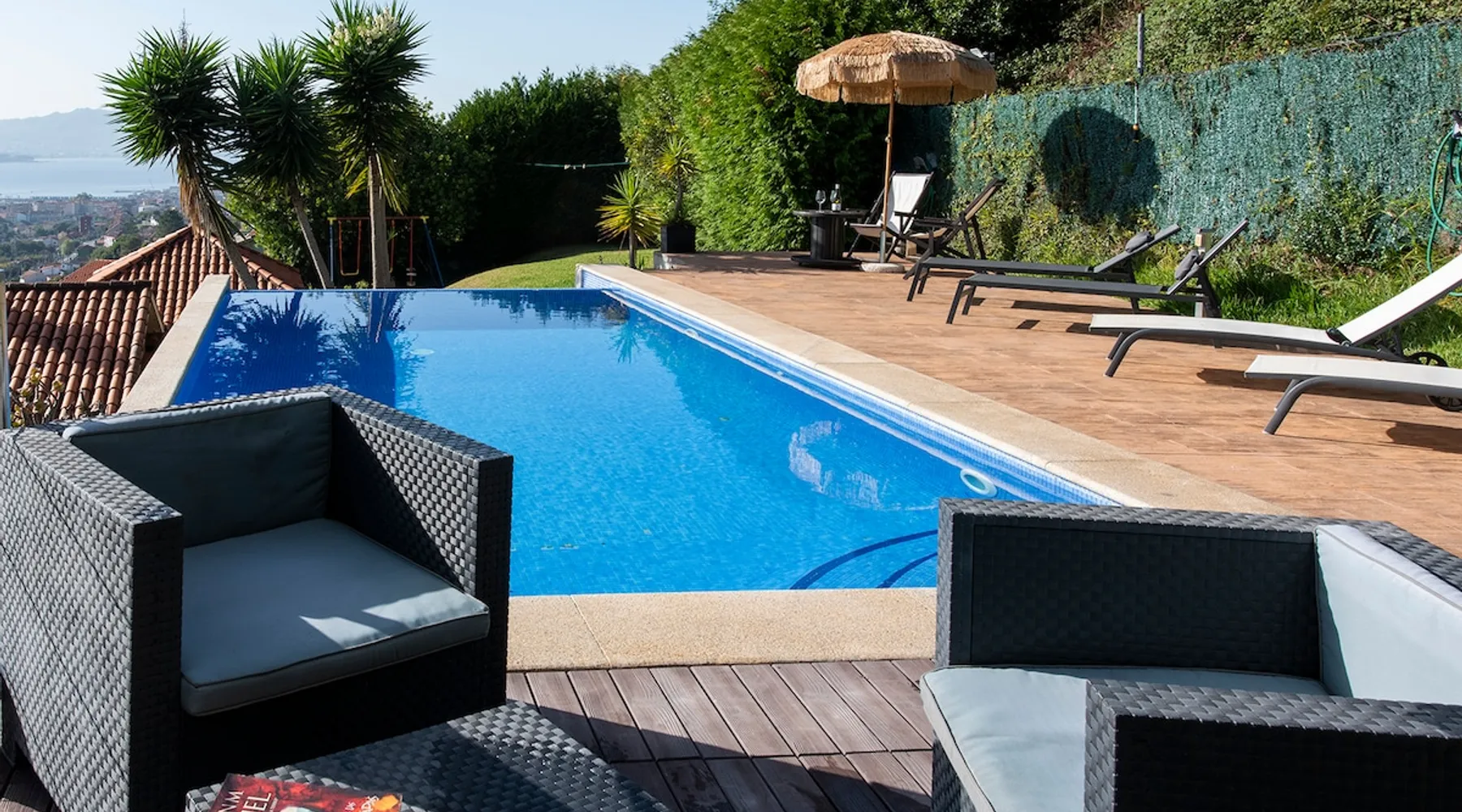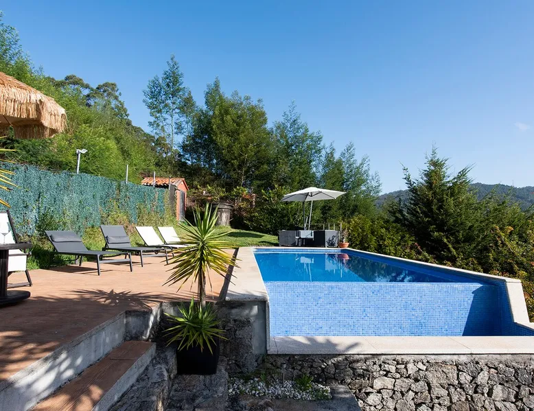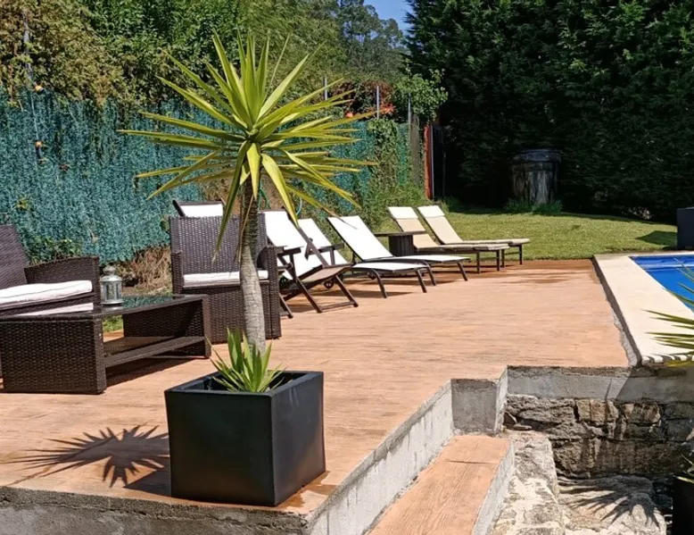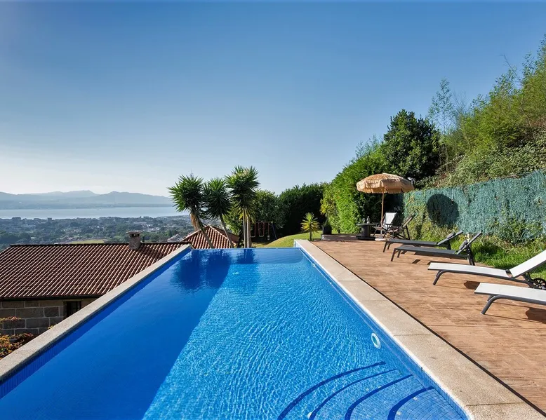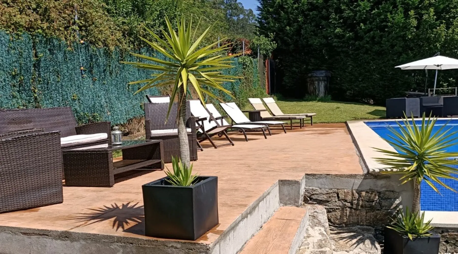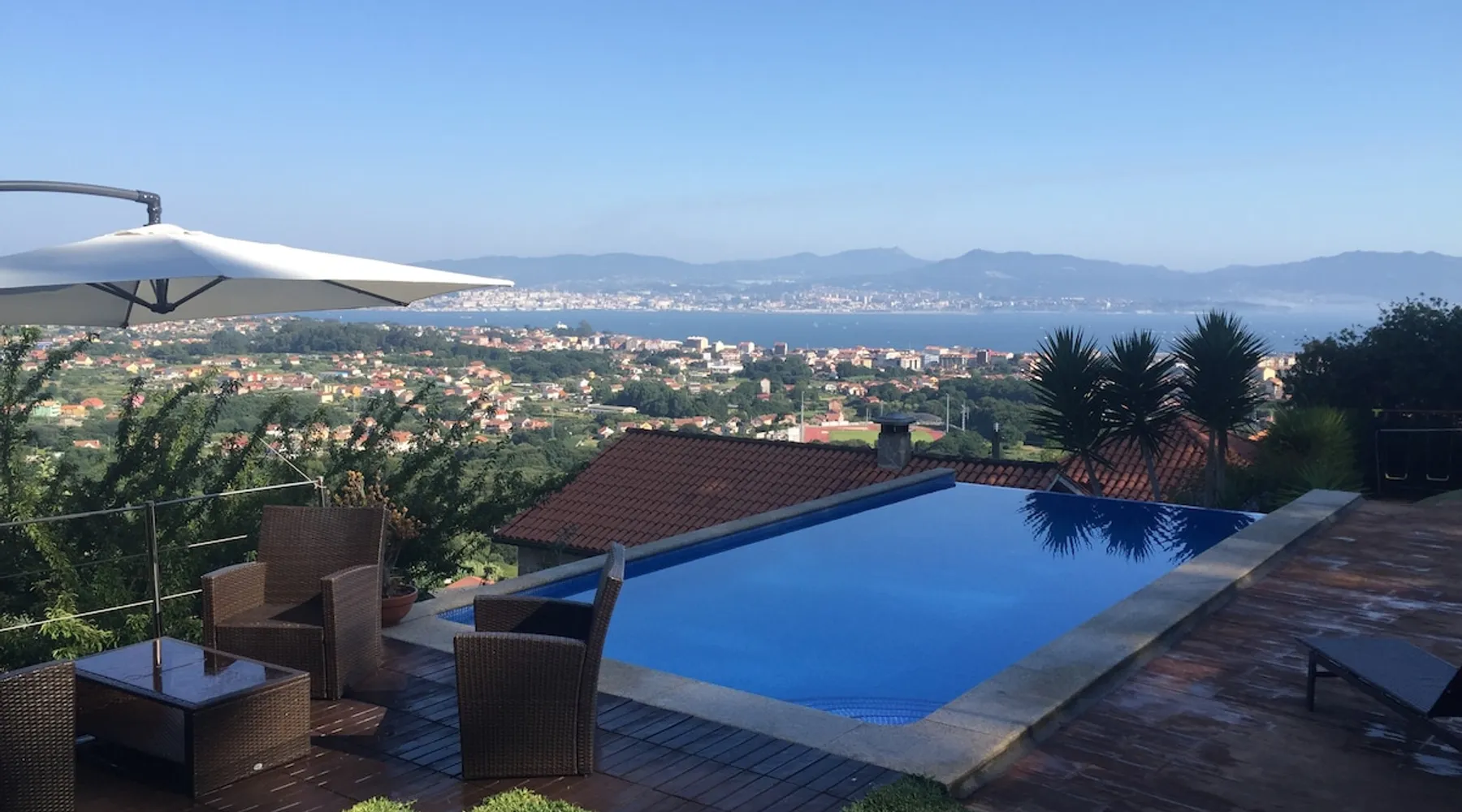 Galician house recently restored with swimming pool located in a rural environment with more than 50 beautiful beaches at a distance of 5 km. The house consists of three bedrooms, 2 bathrooms and a toilet, one of them ensuite, garden, pool, playground for children and several terraces with spectacular views of the Vigo estuary and the Valley. Animals are allowed. The space The view is the most impressive thing the house has. It offers wonderful views of the Ria de Vigo, the city of Cangas and the valley. The house has numerous terraces where you can enjoy it. It also has spectacular views from the pool. Guest access The whole house is accessible to guests Other things to note The house in July and August is rented for a minimum of 7 days. Not available for guests with limited mobility. Registration No.: ESFCTU0000360220002922040000000000000000000PO 0011639 Tourist License No.: VUT-PO-001163 Registration Details VUT - PO 001163