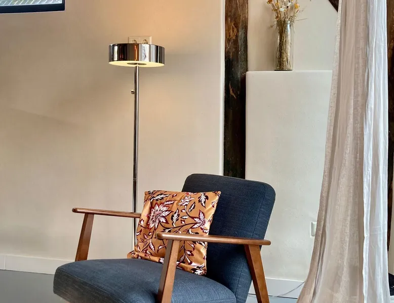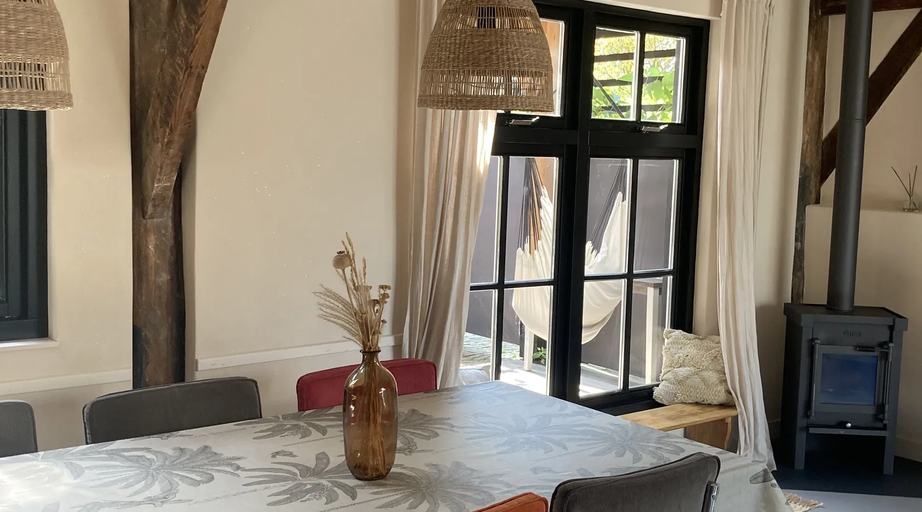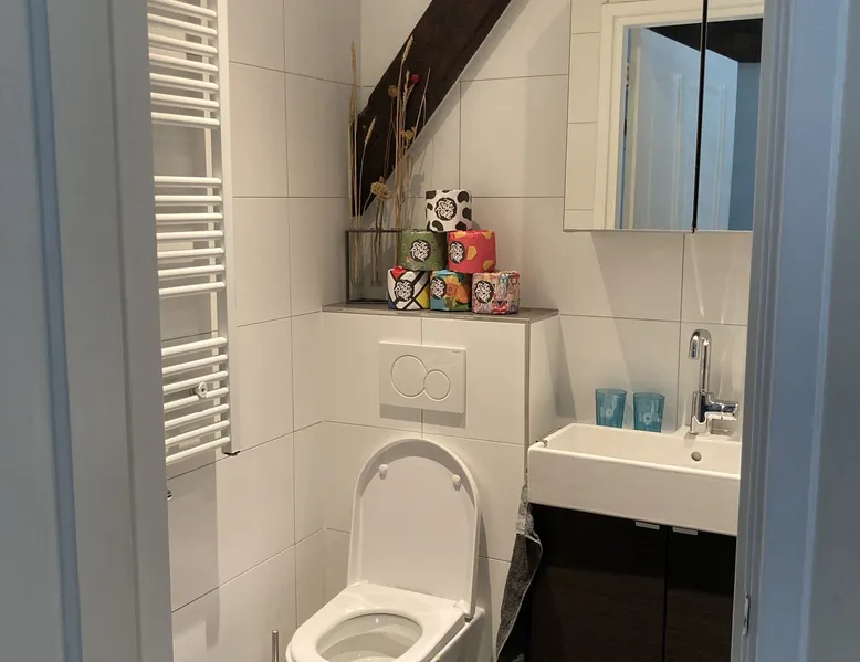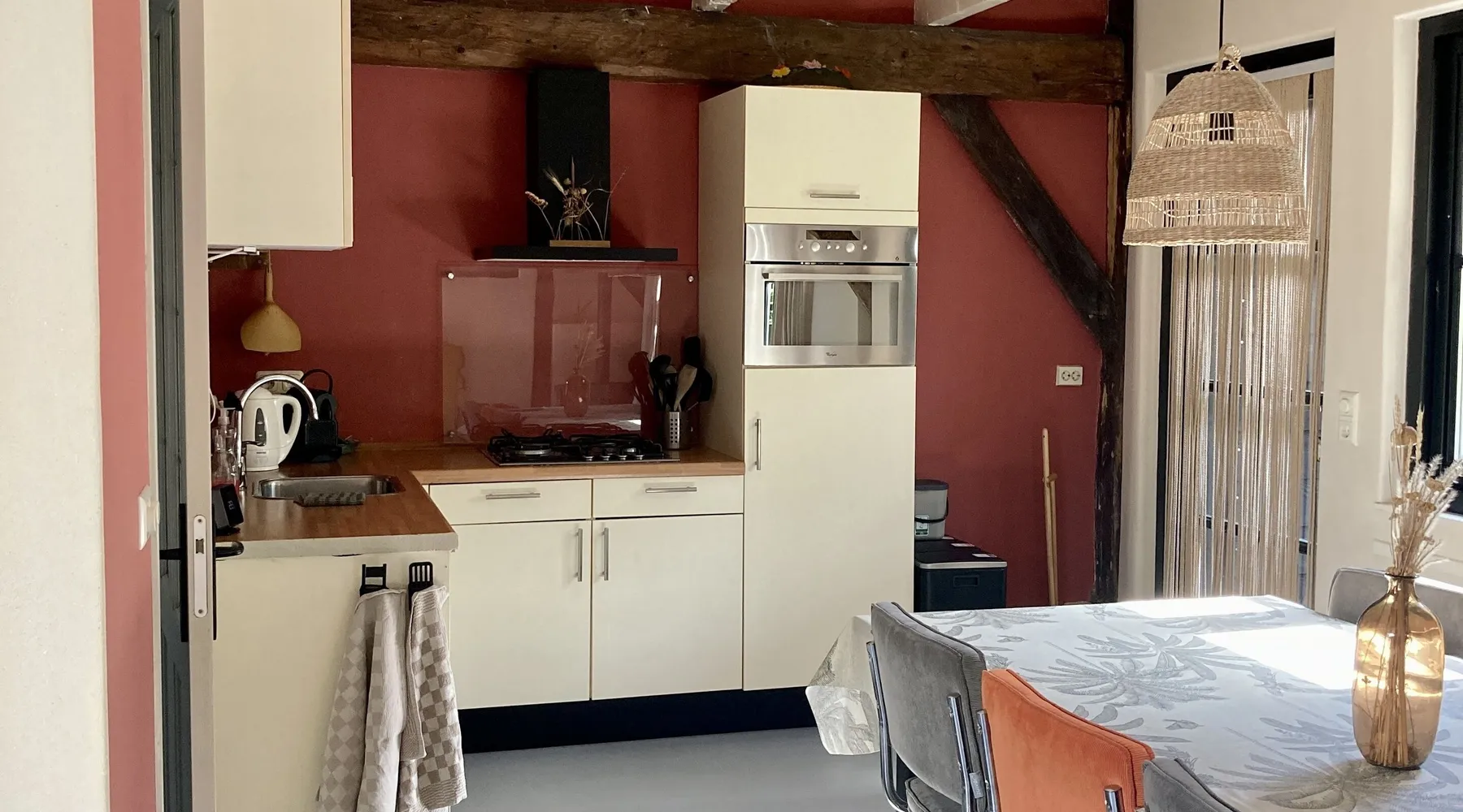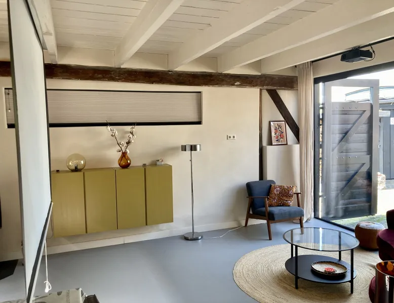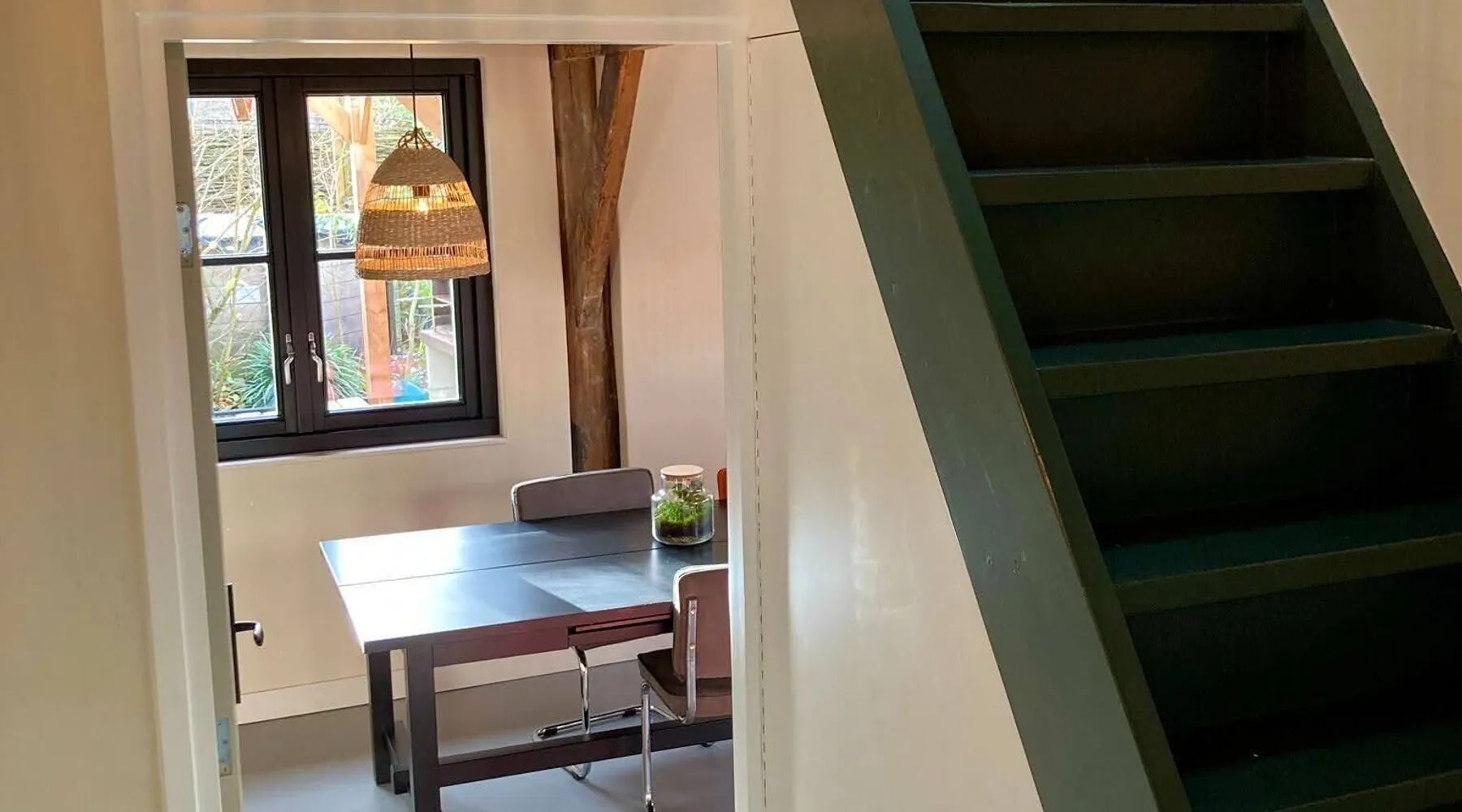Our guesthouse is located in an old barn that traditionally has been used by the blacksmith of the village. While you can still see the traditional structure with wooden beams the place has been modernized to current standards, including floorheating. The groundfloor consists of a new bathroom and an open, spacious living room with kitchen. You can step directly outside into the garden facing south, to enjoy a cup of tea or coffee in the sun. Children can play freely here. The topfloor of the building consists of 2 bed rooms. The place can host 4 people, but in case of more than 2 adults (so, 3 or 4 adults), please send a message first before booking.