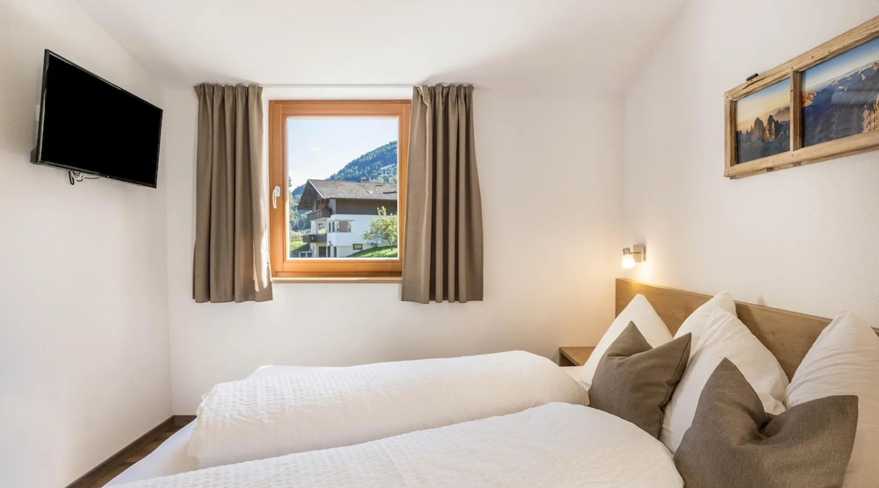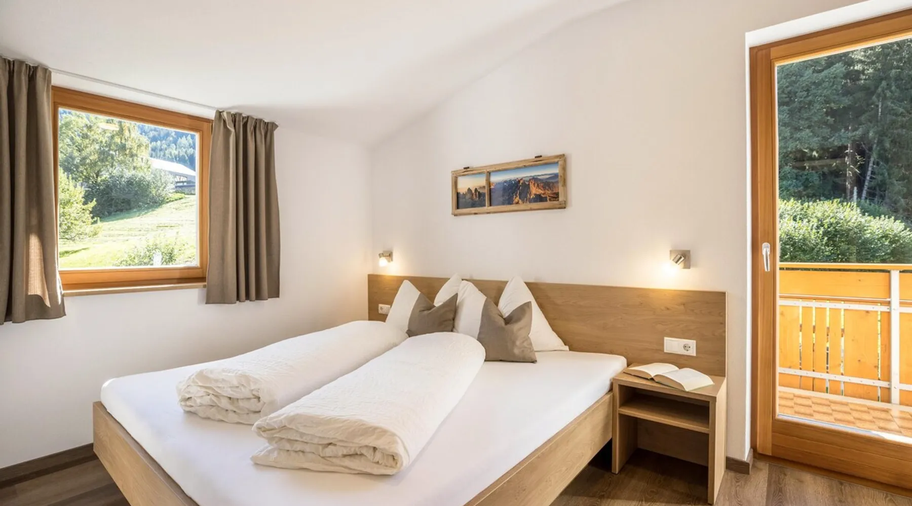 The holiday apartment Pramstaller Dolomites is located in Sankt Lorenzen/San Lorenzo di Sebato and impresses guests with its view of the mountain. The holiday apartment consists of a living room, a well-equipped kitchen with dishwasher, 2 bedrooms and 1 bathroom and can therefore accommodate 4 people. Additional amenities include Wi-Fi (suitable for video calls). A baby cot is available for an extra fee. Your private outdoor area includes a balcony. Other things to note The property has access to a shared outdoor area which includes a garden, garden furniture, a barbecue and a playground. Walking/driving distance to nearest restaurant: 2.18km. Walking/driving distance to nearest cafe: 4.04km. Walking/driving distance to nearest bar: 987m. Walking/driving distance to nearest supermarket: 3.72km. Walking/driving distance to beach: 9.16km Flusspark Ahr (St. Georgen Beach) Walking/driving distance to nearest bakery: 4.02km. Walking/driving distance to nearest skilift: 7.90km Ski resort Kronplatz Walking/driving distance to lake: 27.86km Wackerer See. Free parking is available on the property. Pets are not allowed. Air conditioning is not available. A washing machine is available on request for an extra charge. With the Holiday Pass you can use ski buses and trains all over South Tyrol for free. Ski storage is available. - Baby bed payment 10EUR per person per night Registration Details IT021081B4605XFMS3