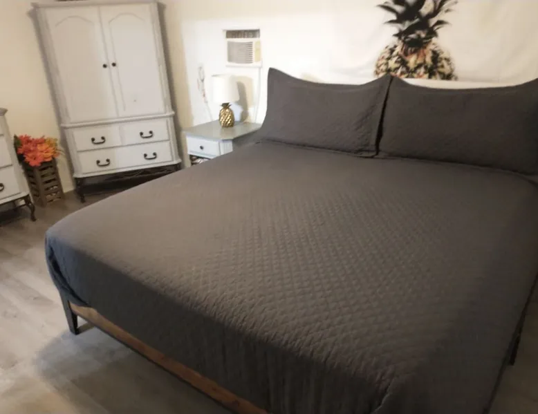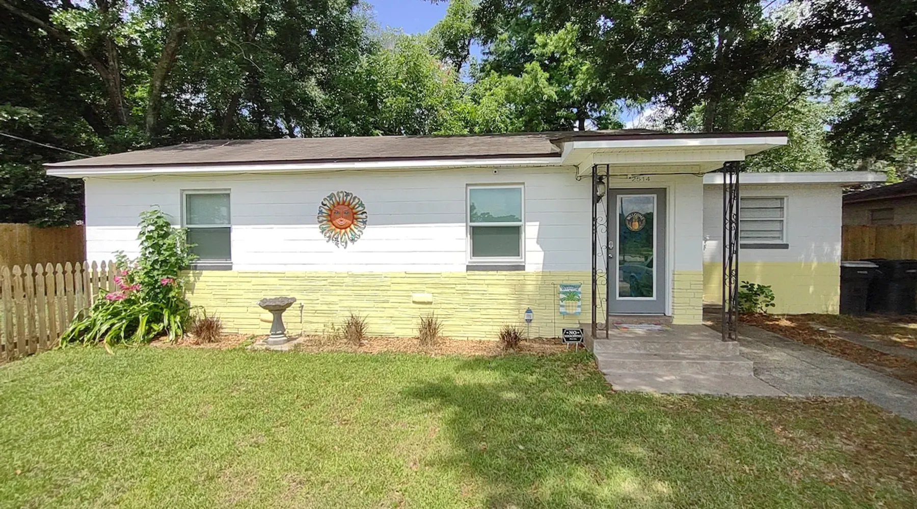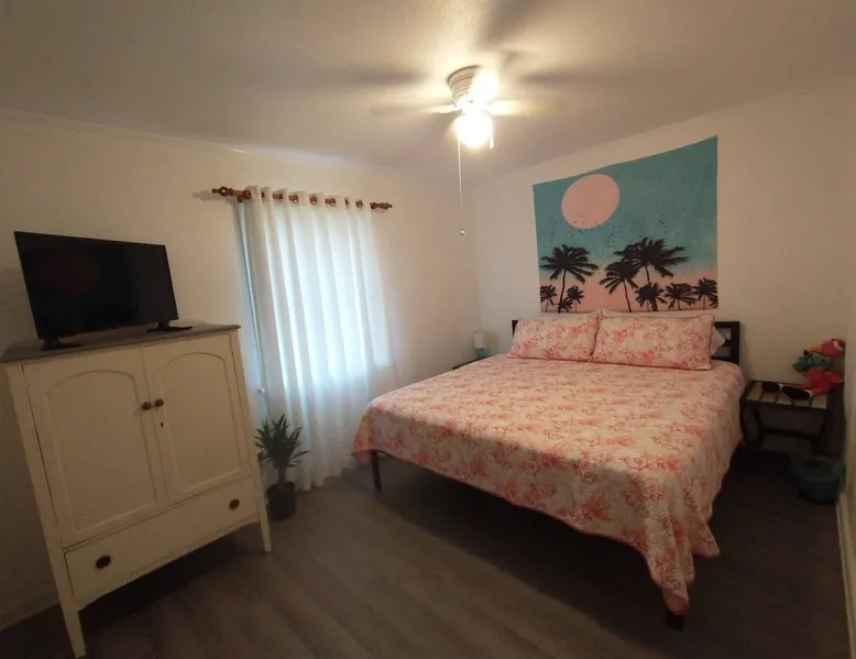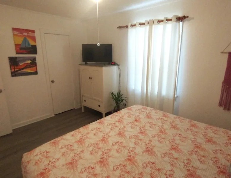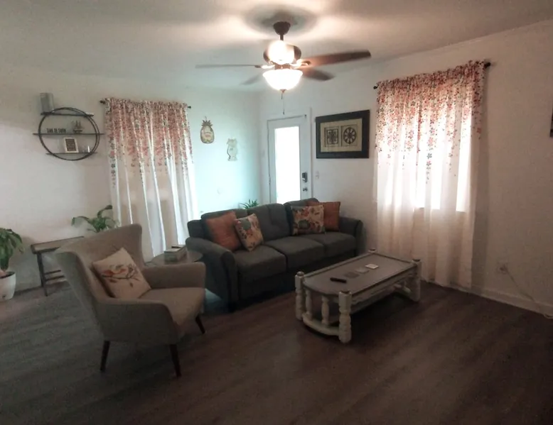No Cleaning Fee and We Cover the Guest's Service Fee! The home is close to everything, which makes it easy to plan your next visit. Only 5 minutes to downtown Pcola and ~15 to Pcola Beach. Gentrification is occurring and you'll see a mix of homes (new to updated to those not yet revitalized), but it is quiet and safe. Contactless check-in/out via electronic front door lock. Garbage/recycle cans on location. Free WiFi. Older construction, but clean home! Park on driveway. No smoking/vaping! The space **Guests who are new to ABB with no recorded trips, please be prepared to answer a few questions regarding the purpose of your stay prior to stay approval due to some recent scam issues.** Now available for 1+ month extended stays. Fully furnished 3BR/1BA with bonus utility room. All utilities included (cap $400). — far below typical hotel or corporate housing rates. Now to the good stuff! :) Entire Home! Host is not on site! No Cleaning Fee at Pineapple House and we cover ABB's guest service fee! We just ask that you are kind to the home and leave it neat and orderly; we'll still take the same great care getting the home ready for the next guest. :) Pineapple House is over 60 years old and, though greatly cared for, shows its age in some places. Expect to find some loving wear, quaint aging and charming patina both inside and outside. It is a block-built home, which was once the rage in Florida as they can generally withstand up to 250mph wind, though they don't tend to have the same aesthetic appeal as a traditional stick built home, therefore requiring a little more creativity with colors. :) The home boasts three bedrooms and one full bath. Two bedrooms have king beds and one has a full bed. One of the king beds is lower to the floor to make access easy and it is more firm, while the other king is taller and has an additional mattress pad making it very cushioned (some have said like sleeping on a cloud). The home has central heat and air conditioning, though the largest bedroom also has an additional wall AC unit to make it extra cold. The living room and bedrooms have TVs, though you will need to use your own login credentials for access to Prime, Netflix, Hulu, etc. We do have the Tubi app installed and The Roku Channel, which have news stations and movies available with no logon needed. No cable is provided. There is a washer and dryer in the home for your use, though you will need to supply your own detergent. There is a toaster and single serve Keurig coffee maker in the kitchen, as well as all of the typical pots/pans needed to make a home meal. Spare linens for the beds are in the linen closet when booking longer than 2 night stays, as well as bath/beach/hand towels and washcloths. The dining table can seat 4 and is located in the kitchen. The back porch is covered and has solar lights that automatically come on at dusk and stay lit for a reasonable amount of time typical for most people to sit out and enjoy. There are 5 chairs and a small table on the back porch. 5 minutes to downtown Pensacola and 15-20 minutes (depending on traffic) to Pensacola Beach. We hope you enjoy your stay. Guest access From Pace Blvd, head West down St Mary St, then turn left (heading South) onto Q St. 2514 N Q St is approximately 1.25 blocks down on the left. Parking is in the driveway to the right of the home. Other things to note The following notes are common questions we receive, so we figured we'd provide some answers here. This list will likely grow as we receive additional questions. A Lease and Deposit Will Be Required! 1) I have a prescription for medical marijuana, what are your rules? No smoking/vaping in or around the home! If you have a prescription for medicinal purposes that are in the vape/smoke form, please do it far from the entry doors/windows. If you are a smoker, please do so by the street, then properly extinguish the butt and dispose of it in the outside waste container. 2) Do you provide an additional discount for military/first responders? While we truly honor our military and first responders, we are unable to provide additional discounts beyond what is currently advertised; we are already one of the most price efficient hosts in the area, plus we don't charge for cleaning and cover the ABB service charge. 3) Why don't you charge a cleaning fee like others? We feel that guests who aren't charged a cleaning fee will help us out by keeping the home as tidy as possible. We still pay our cleaning team a fair wage, but that comes out of our pocket based on the hours put into the home. The cleaner the home, the less we pay, and therefore we can keep the overall cost of the home down for our guests. 4) Are there any TVs in the home, and if so, what channels are provided? A TV is provided in the living room and each king bedroom; they are FireTVs with Tubi and The Roku Channel (no account needed), as well as Netflix, Amazon, etc available for you to log in with your existing account credentials. Cable/antenna is not provided at this time, though Tubi has news, movies, etc, which are similar to cable television. 5) How close is the home to the beach? ~20 minutes. The airport? ~10 minutes. Downtown Pensacola? ~5 minutes. 6) How's the noise level? The home is across the street from an elementary school, where buses do arrive early morning and mid afternoon on school days, though aren't generally noticeable. Occasionally the school will have extracurricular activities that might be observed/heard, but do not impede the overall use of Pineapple House and don't tend to run late. Neighbors do have dogs, though are fenced and generally taken inside their homes at night. 7) Where do I place my garbage? We have waste bins in each bedroom and the bathroom for regular garbage. We also have a garbage bin and recycle bin in the kitchen inside of a cabinet. The primary cans, garbage (green top) and recycle (grey top), are to the right of the home. Garbage/recycle pickup is on Thursdays, so we will