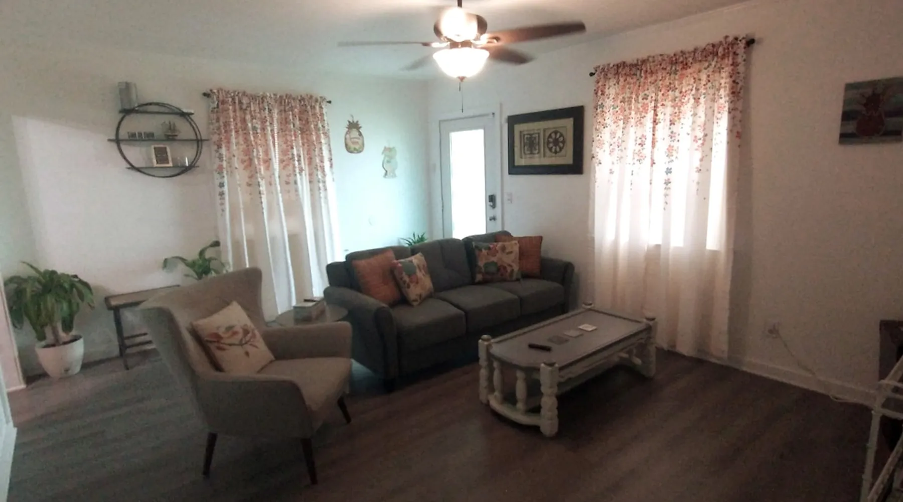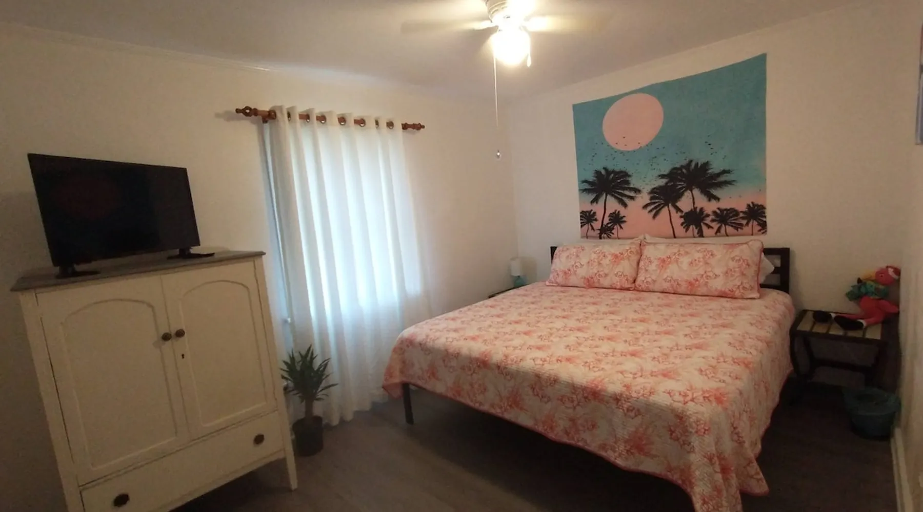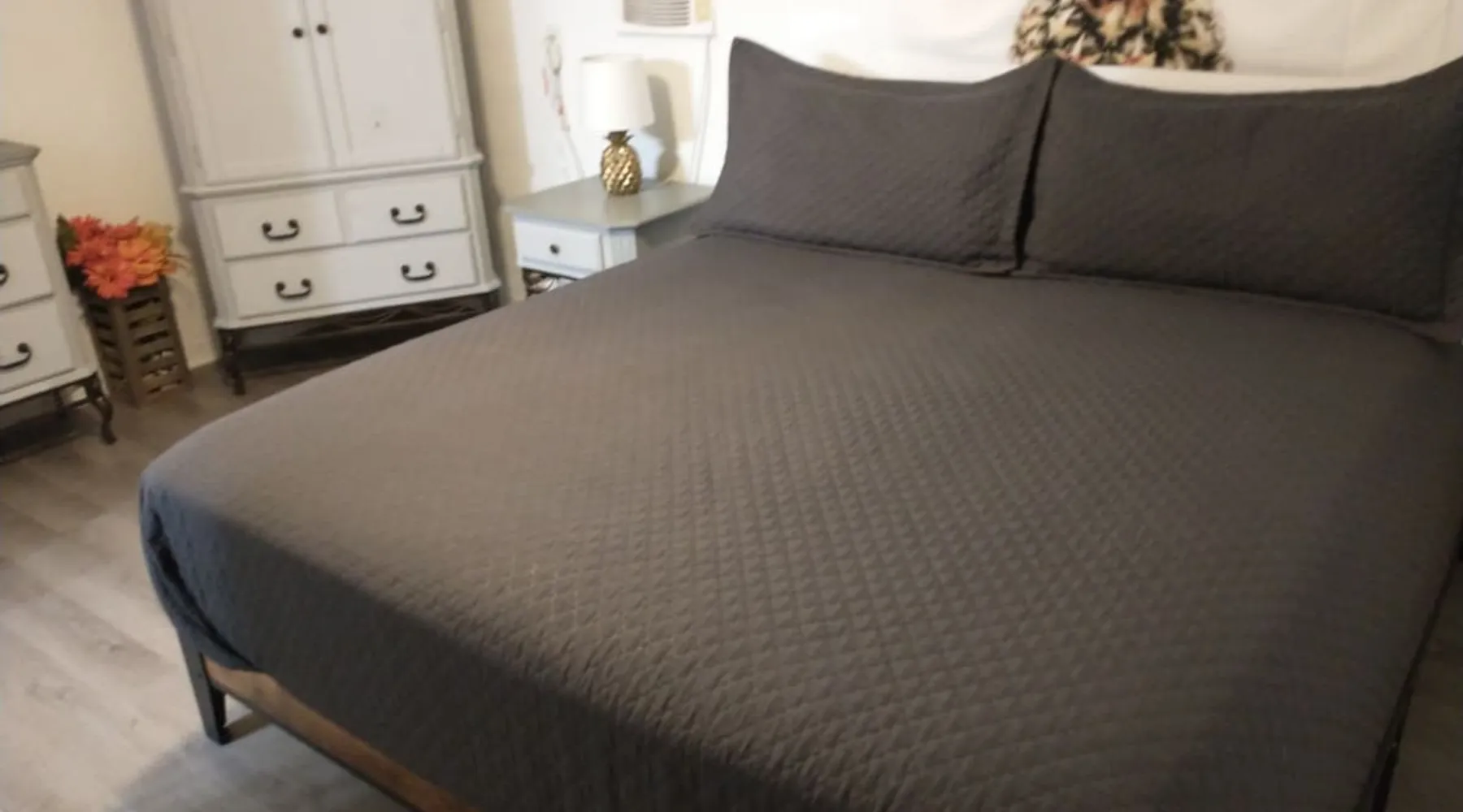 No Cleaning Fee and We Cover the Guest's Service Fee! The home is close to everything, which makes it easy to plan your next visit. Only 5 minutes to downtown Pcola and ~15 to Pcola Beach. Gentrification is occurring and you'll see a mix of homes (new to updated to those not yet revitalized), but it is quiet and safe. Contactless check-in/out via electronic front door lock. Garbage/recycle cans on location. Free WiFi. Older construction, but clean home! Park on driveway. No smoking/vaping! The space **Guests who are new to ABB with no recorded trips, please be prepared to answer a few questions regarding the purpose of your stay prior to stay approval due to some recent scam issues.** Now available for 1+ month extended stays. Fully furnished 3BR/1BA with bonus utility room. All utilities included (cap $400). — far below typical hotel or corporate housing rates. Now to the good stuff! :) Entire Home! Host is not on site! No Cleaning Fee at Pineapple House and we cover ABB's guest service fee! We just ask that you are kind to the home and leave it neat and orderly; we'll still take the same great care getting the home ready for the next guest. :) Pineapple House is over 60 years old and, though greatly cared for, shows its age in some places. Expect to find some loving wear, quaint aging and charming patina both inside and outside. It is a block-built home, which was once the rage in Florida as they can generally withstand up to 250mph wind, though they don't tend to have the same aesthetic appeal as a traditional stick built home, therefore requiring a little more creativity with colors. :) The home boasts three bedrooms and one full bath. Two bedrooms have king beds and one has a full bed. One of the king beds is lower to the floor to make access easy and it is more firm, while the other king is taller and has an additional mattress pad making it very cushioned (some have said like sleeping on a cloud). The home has central heat and air conditioning, though the largest bedroom also has an additional wall AC unit to make it extra cold. The living room and bedrooms have TVs, though you will need to use your own login credentials for access to Prime, Netflix, Hulu, etc. We do have the Tubi app installed and The Roku Channel, which have news stations and movies available with no logon needed. No cable is provided. There is a washer and dryer in the home for your use, though you will need to supply your own detergent. There is a toaster and single serve Keurig coffee maker in the kitchen, as well as all of the typical pots/pans needed to make a home meal. Spare linens for the beds are in the linen closet when booking longer than 2 night stays, as well as bath/beach/hand towels and washcloths. The dining table can seat 4 and is located in the kitchen. The back porch is covered and has solar lights that automatically come on at dusk and stay lit for a reasonable amount of time typical for most people to sit out and enjoy. There are 5 chairs and a small table on the back porch. 5 minutes to downtown Pensacola and 15-20 minutes (depending on traffic) to Pensacola Beach. We hope you enjoy your stay. Guest access From Pace Blvd, head West down St Mary St, then turn left (heading South) onto Q St. 2514 N Q St is approximately 1.25 blocks down on the left. Parking is in the driveway to the right of the home. Other things to note The following notes are common questions we receive, so we figured we'd provide some answers here. This list will likely grow as we receive additional questions. A Lease and Deposit Will Be Required! 1) I have a prescription for medical marijuana, what are your rules? No smoking/vaping in or around the home! If you have a prescription for medicinal purposes that are in the vape/smoke form, please do it far from the entry doors/windows. If you are a smoker, please do so by the street, then properly extinguish the butt and dispose of it in the outside waste container. 2) Do you provide an additional discount for military/first responders? While we truly honor our military and first responders, we are unable to provide additional discounts beyond what is currently advertised; we are already one of the most price efficient hosts in the area, plus we don't charge for cleaning and cover the ABB service charge. 3) Why don't you charge a cleaning fee like others? We feel that guests who aren't charged a cleaning fee will help us out by keeping the home as tidy as possible. We still pay our cleaning team a fair wage, but that comes out of our pocket based on the hours put into the home. The cleaner the home, the less we pay, and therefore we can keep the overall cost of the home down for our guests. 4) Are there any TVs in the home, and if so, what channels are provided? A TV is provided in the living room and each king bedroom; they are FireTVs with Tubi and The Roku Channel (no account needed), as well as Netflix, Amazon, etc available for you to log in with your existing account credentials. Cable/antenna is not provided at this time, though Tubi has news, movies, etc, which are similar to cable television. 5) How close is the home to the beach? ~20 minutes. The airport? ~10 minutes. Downtown Pensacola? ~5 minutes. 6) How's the noise level? The home is across the street from an elementary school, where buses do arrive early morning and mid afternoon on school days, though aren't generally noticeable. Occasionally the school will have extracurricular activities that might be observed/heard, but do not impede the overall use of Pineapple House and don't tend to run late. Neighbors do have dogs, though are fenced and generally taken inside their homes at night. 7) Where do I place my garbage? We have waste bins in each bedroom and the bathroom for regular garbage. We also have a garbage bin and recycle bin in the kitchen inside of a cabinet. The primary cans, garbage (green top) and recycle (grey top), are to the right of the home. Garbage/recycle pickup is on Thursdays, so we will
