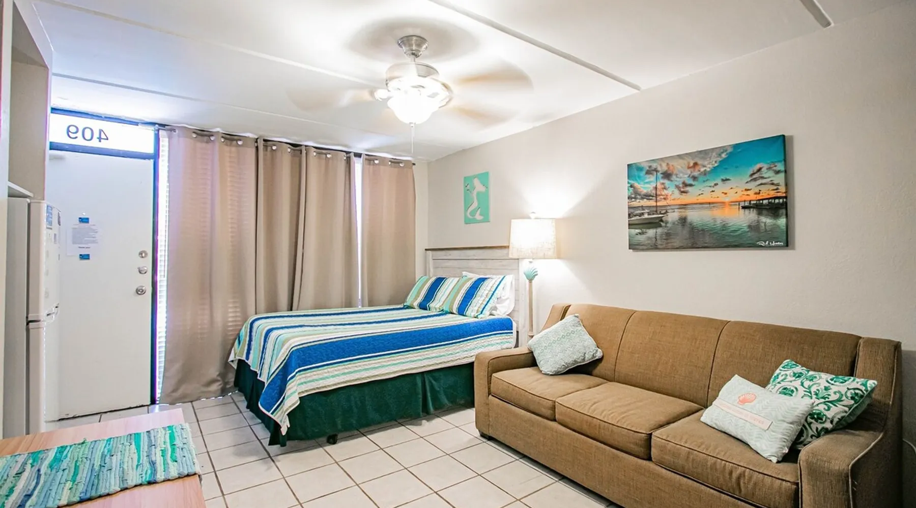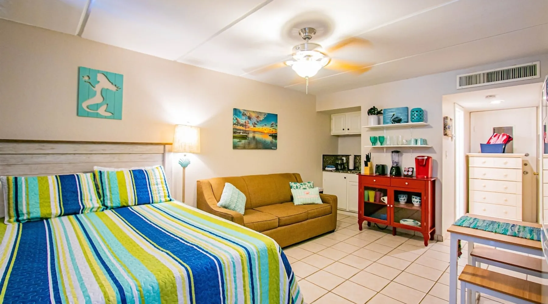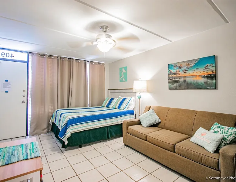 Studio 409 for YOUR Beach Getaway! STUDIO for 4 people: queen bed & sofa bed. Fully equipped kitchen has fridge, microwave, blender, pots, pans, cooking utensils, plenty of room w/living space, large TV, Streaming TV, WI-FI, closets/drawers & more! Located across the street from the beach, close to restaurants, shops & bars. 2nd floor, no elevator. One pet allowed, max of 25 lbs with a $100 pet fee. Vista Del Mar is centrally located in the entertainment district. This 3 story condo complex is located across the street from the beach. Our condo is located on the 2nd floor (no elevator). Just outside your door you can enjoy the sunrise in the morning and the sunsets in the evening. Complex features gated outdoor swimming pool area with BBQ grill. Friendly onsite maintenance manager is there daily to make sure the complex is looking great. Entrance to open parking area is on the next street over (Tarpon St) you will see a sign a sign that says Vista Del Mar. Parking permit is required. We will need the full description of your car to avoid hefty towing fees. So close to the beach and entertainment district. Only ONE (1 car) allowed to park on premises with a Parking Pass displayed on its dashboard. The remaining vehicles have to park in the island's public parking. Please be notified of towing enforced. While visiting the pool, please wear the wristbands. IMPORTANT: You are booking a private beach home. As much as we like to please your every need, we DO NOT work as hotels do. We are not a 24/7 service. Any overnight requests, other than REAL emergencies, will be taken care of the next day. If there is an emergency that threatens a person’s life, please call 911. VAYK GEAR is a premier BEACH Equipment Rental Company offering top-of-the-line gear for your perfect beach day. You may receive an email from them regarding a credit from Blue Ocean Vacation Rentals for the rental of your preferred beach equipment. Visit their website to select from a wide range of high-quality beach gear to make the most of your beach getaway. The owners of Vista del Mar #409 welcome you to their beach home! While staying here, we ask that you follow a few requests that will make everyone’s stay more enjoyable and keep the property looking good year after year. 1. Parking ~ is limited to 1 vehicle. Parking pass enforced. Vehicles must be licensed, operable and registered to the occupants. Unauthorized vehicles will be towed at the owners’ expense. 2. Occupancy ~ Maximum capacity per unit is NO MORE than 4 guests. There must be at least one adult 21 years of age or older, registered, present and residing in the unit through the duration of the tenancy. 3. Pets ~ One small dog is allowed with a non-refundable cleaning fee of $100/dog. Access to property will not be permitted until payment is collected. The knowledge or trace of unauthorized pets will mean a fine of $400. 4. Noise ~ Loud noise of any sort; music, loud talking, boom boxes, etc. is not allowed. 5. Garbage and Tidiness ~ Garbage should all be disposed of in the dumpster located on the east side of the building facing Pompano St. Please DO NOT dispose of cigarette butts, cans, candy wrappers, trash on the ground. We work hard to make certain the property looks good when you check in. Please help us keep it that way by picking up any litter before you leave. 6. Pool ~ Please know that only the booked guests are allowed in the pool area. Wristbands are enforced and rhe complex does not allow parties. Wash ALL sand from your body BEFORE entering our pool. The pool equipment cannot handle sand from the beach and causes damage and equipment failure. Please DO NOT leave your children unattended and observe pool hours. 7. BBQ ~ BBQ pit is included. Please clean it after each use. Thanks! 8. Once booked, we will send a custom Rental Agreement for you to complete and send back to us. Without this agreement we will not be able to host you. 9. Wristbands are mandatory while in the pool area. Important: All our vacation properties come with a "starter kit" including several items such as hotel style soaps, shampoo, dishwashing soap, new sponge, toilet paper, paper towels, trash bags, etc. Once these items are gone, please visit the local supermarket to replenish your needs. Note: The owners of this property will allow Spring Breakers under the strict rules of the premises. Break the rules and be evicted without a refund. Check in is easy and available 24 hours a day with a smart lock on the entrance door. The smart keypad door code will be provided to the guest about 48-24 hours before arrival. Hosts will be available for check-in assistance up until 10 pm, we ask that guests arriving late please let us know via text. Service Animals need to be with the person they service 24/7. Service Animals cannot be left alone in the property. A service animal left alone in the property is not a service animal and will be penalized with a $400 fee. Child's highchair & pack & play on request at $25/each, billed on a separate invoice. For special requests outside our scope of work, please message us to get our Concierge's contact. Date changes might be granted depending on the date of the change for a $100 change fee plus any difference in price. Cancellations on nightly bookings are only refunded totally if cancellation occurs within 30+ days prior to arrival. Credit Card fees may apply. This will NOT apply for monthly discounted bookings. We highly recommend the purchase of your choice of Travel Insurance to try to recuperate cancellation penalties. Checkout instructions Gather used towels Throw trash away Turn things off Leave beds unmade. Wash & dry all dishes & utensils. Empty refrigerator, clean up spills. Set AC to 78 Leave property neat with furniture in original order. Close all blinds, all doors and windows. Please leave all items we provided. We charge for missing items. Gather all your belongings, we cannot be responsible for items left behind. PLEASE LEAVE BEH