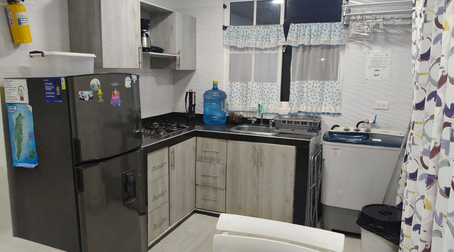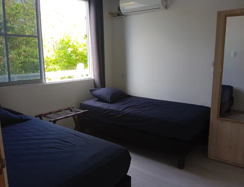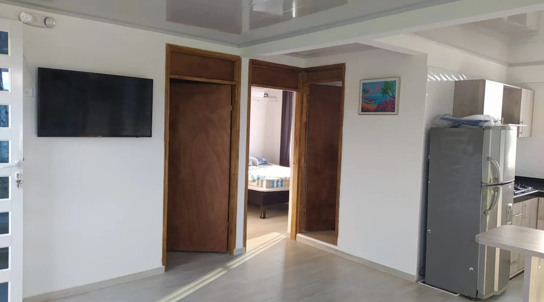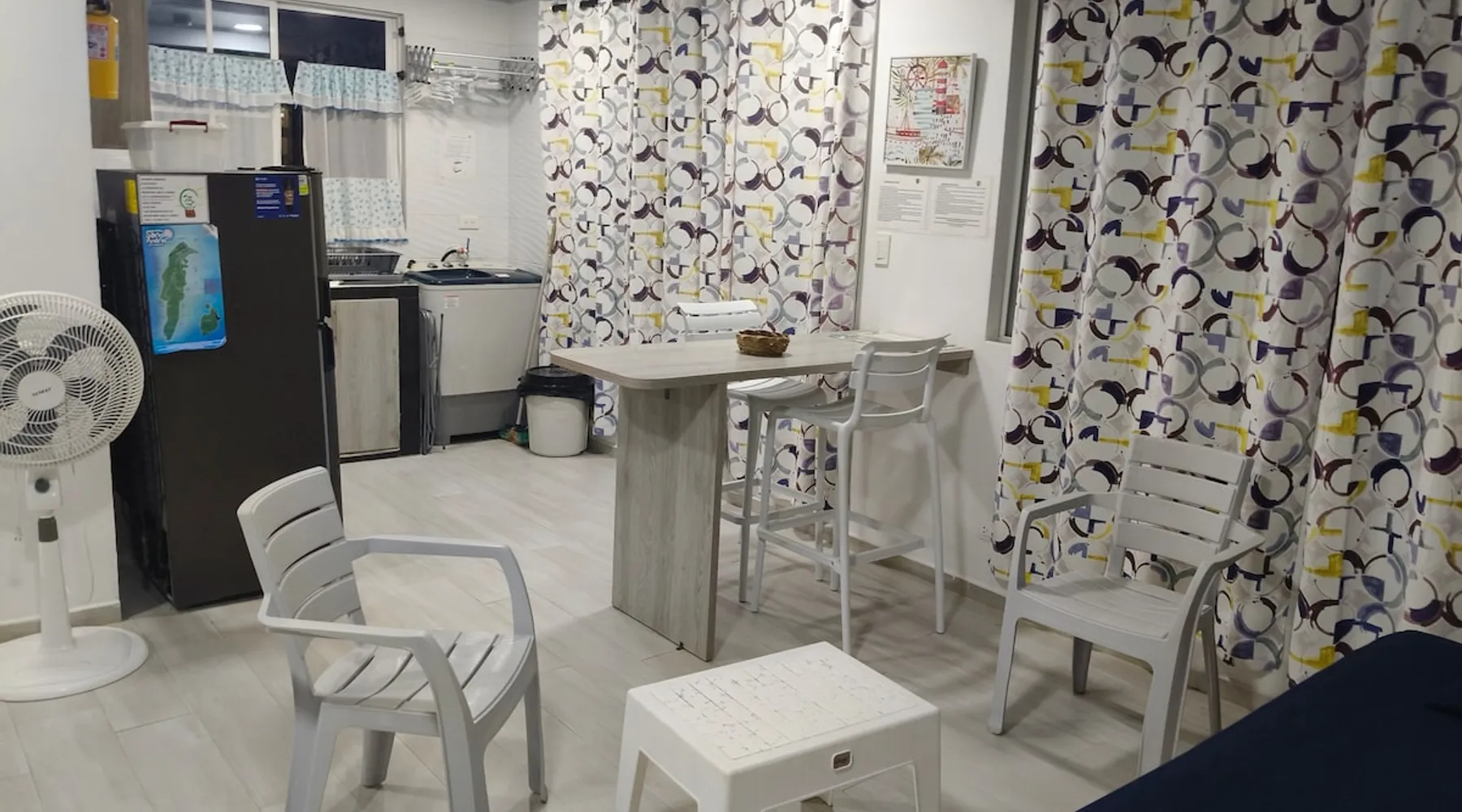 A 60 square meter tourist apartment located in a residential area with a large courtyard of quiet and safe green areas where you will enjoy total privacy, ideal to enjoy as a couple or as a family. The apartment is on the second floor with a separate entrance equipped with everything you need for long and short trips, close to the beaches of San Luis, a 3-5 minute walk away with easy access to public transportation, shops, ATMs, typical restaurants. The space The apartment is not on the edge of the street, which makes it a very quiet place to rest. It is on the second floor with: Two bedrooms: each bedroom has a double bed and a single bed plus a closet, iron, air conditioning, and an optional fan. Dining room: equipped with Smart TV, free WiFi, sofa with 2 single beds, air conditioning, and fan. A kitchenette: cooking and cleaning utensils, a refrigerator, and a coffee maker. Semi-automatic washing machine with dryer. A separate bathroom. green areas. Guest access Guests have access to everything that corresponds to the apartment, such as garden terrace and parking. Other things to note Guests will be provided with information on the island's various activities, such as tours, car rentals, and addresses. In addition, they are given a small tour of the apartment area so that they can find their way around the different nearby sites. Registration details 99531