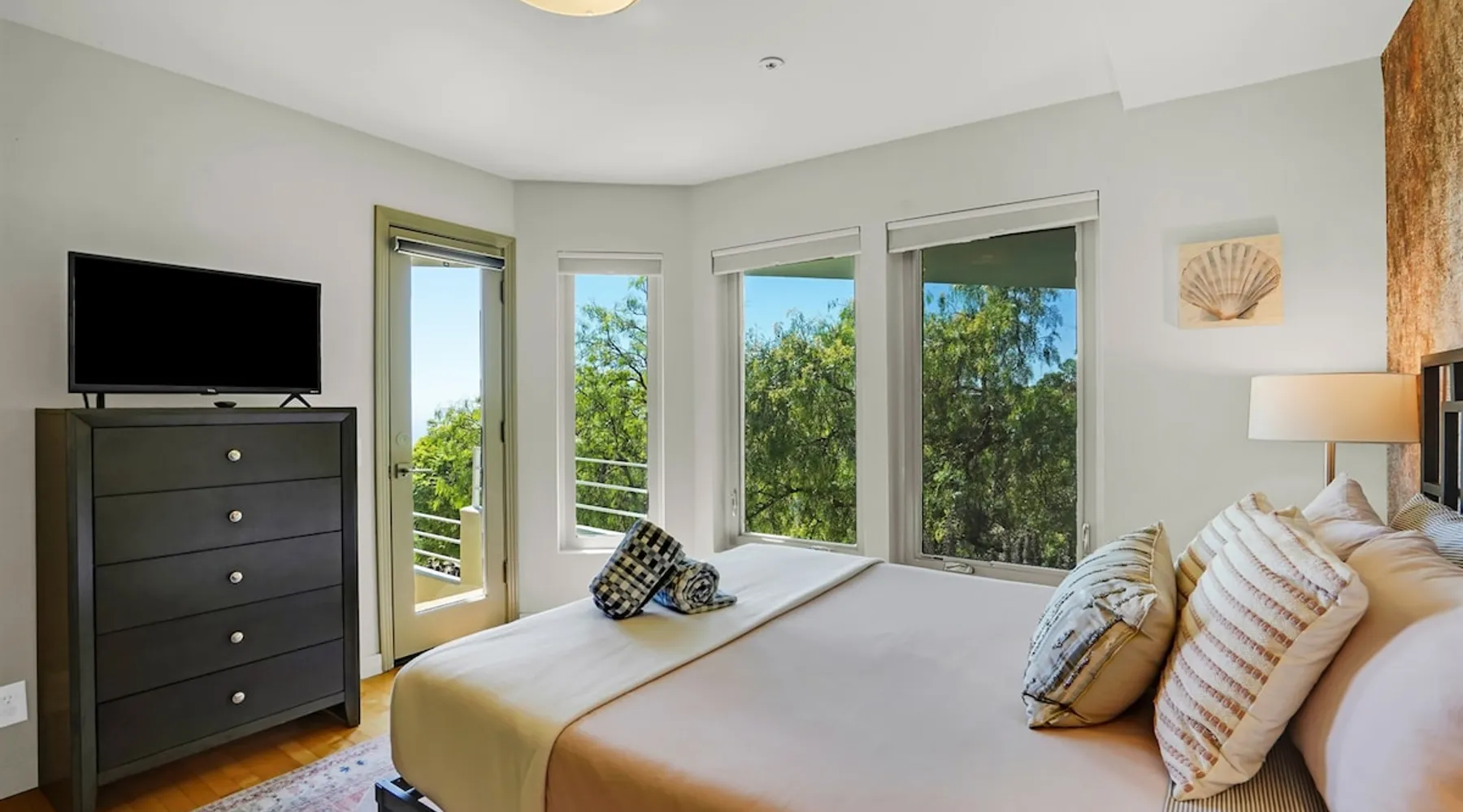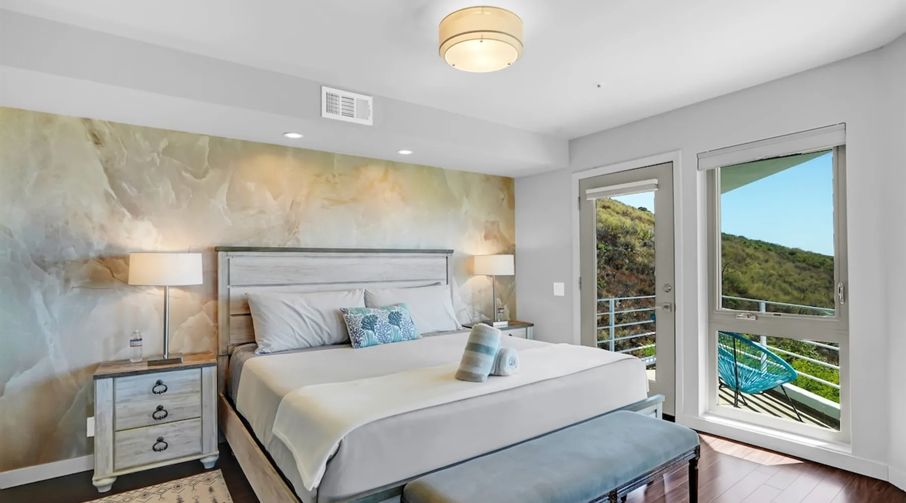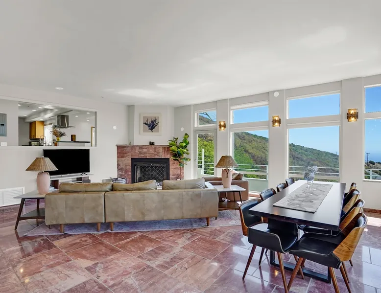 Welcome to Island in the Sky in Malibu and Chic Beach Vacations! Awaken to stunning panoramic views every morning in this architectural masterpiece. Enjoy water vistas from almost every room for a truly immersive coastal experience. Choose tranquility in nature or explore Santa Barbara and Malibu, thanks to our prime location in rural West Malibu in the beautiful Santa Monica Mountain Range. Loaded with amenities, our pet and baby-friendly house ensures all family members are well-cared for. The space Welcome to your dream retreat in the Santa Monica Mountain Range, where modern luxury meets the tranquility of nature. This architectural masterpiece, located in rural West Malibu, offers breathtaking water views from almost every room and the perfect blend of privacy and adventure. Whether you're sipping coffee on the wrap-around balcony or exploring nearby Santa Barbara and Malibu, this home is designed to provide a truly immersive coastal experience for families, friends, and pets alike. WHY THIS HOME? ✔ Unbeatable Location: Situated just north of Neptune’s Net in serene Deer Creek Canyon, this home offers easy access to hiking trails, beaches, and wineries. ✔ Panoramic Views: Wake up to stunning vistas of the Pacific Ocean and surrounding mountains from nearly every room. ✔ Family- & Pet-Friendly: Fully equipped with baby gear, a pet station, and spacious rooms to accommodate everyone. ✔ Luxury Living: Marble floors, soaring ceilings, and elegant furnishings create a sophisticated yet inviting atmosphere. ✔ Adventure at Your Doorstep: Minutes from Deer Creek Beach, hiking trails, and popular attractions like Zuma Beach and Sycamore Canyon. THE SPACE ★ Living Areas ★ Main Living Room: Featuring pink marble floors, 18’ ceilings, a gas fireplace, and floor-to-ceiling windows for endless ocean views. Step onto the wrap-around balcony to enjoy stunning sunsets or relax in the evening breeze. Upstairs Living Room: Unwind on electric reclining sofas while streaming your favorite shows on Roku or Fire TV. Need to work? The upstairs office is equipped with a desk, chair, and printer to keep you connected. ★ Bedrooms & Bathrooms ★ This spacious home comfortably sleeps up to 12 guests, offering privacy and luxury for everyone. Third Floor: King Bedroom: Walk-in closet, ensuite bathroom with soaking tub, and private balcony. Queen Bedroom: Walk-in closet, ensuite bathroom, and balcony. Main Floor: Queen Bedroom: Adjacent to a full bathroom. Two-Twins Bedroom: Perfect for kids or additional guests. Additional Sleeping Options: Two futons in the video den and a ground-floor sofa sleeper. ✔ Ensuite Bathrooms: Double vanities, roll-in showers, and deep soaking tubs for ultimate relaxation. ★ Chef’s Kitchen & Dining ★ Cook and dine in style in the fully loaded kitchen with a 36” gas range, stainless steel appliances, and essentials like spices, olive oil, and coffee pods. Main Dining Area: Elegant table for 10 near the grand windows, perfect for family dinners. Kitchen Dining Area: A second dining table for 8, offering expansive views while you eat. ★ Outdoor Spaces ★ Reconnect with nature in the home’s multiple outdoor areas. Wrap-Around Balcony: Perfect for morning coffee or evening cocktails with ocean and mountain views. Rear Enclosed Patio: Fire pit table, dining for 8-10, and BBQ for al fresco meals. Game Room Level: Ping pong, foosball, and additional lounging space. Nearby Activities ★ Outdoor Adventures ★ Hike the trails of Serrano Valley, Boney Mountain, and Sandstone Peak. Explore the shores of Deer Creek Beach, Leo Carrillo Beach, and Zuma Beach – just minutes away. Enjoy water activities like surfing, paddleboarding, and boogie boarding. ★ Cultural & Culinary Delights ★ Visit the historic Adamson House for a glimpse into Malibu’s history. Indulge in wine tastings at nearby wineries or shop at the Camarillo Outlets for luxury deals. ★ Family Fun ★ Explore the marine life at Leo Carrillo State Park Tide Pools. Pack a picnic and enjoy Sycamore Canyon Beach, complete with tables and scenic views. GUEST PERKS ✔ Baby-Friendly: Crib, high chair, baby bath, and more. ✔ Pet Station: Water bowls, blankets, waste bags, and a take-home leash for your furry friend. ✔ Beach Gear: Wagon, chairs, boogie boards, and umbrellas make beach trips easy. ✔ Complimentary Essentials: Kitchen staples, toiletries, and laundry detergent included. ✔ High-Speed Wi-Fi: Perfect for remote work or streaming. What Guests Are Saying 🌟 “The views are absolutely breathtaking! We loved waking up to the ocean and ending the day with sunsets from the balcony. The house was spotless and had everything we needed.” – Kelly, September 2024 🌟 “Perfect for our family reunion! The location was ideal for hiking and beach days, and the house had plenty of space for everyone to relax and connect. Highly recommend!” – Jared, August 2024 🌟 "Breath taking views, if you are looking for seclusion this is the perfect home!" Britanny September 2024 Book Your Coastal Escape Today! From its stunning architectural design to its prime location near beaches and trails, this rural Malibu retreat is perfect for families, couples, or friends seeking luxury and tranquility. Whether you’re relaxing by the fire pit, exploring nearby attractions, or soaking up the views from the balcony, this home promises a vacation like no other. Reserve your dates now and start your unforgettable coastal adventure! Guest access ✹ GENERAL: Guests can enjoy private access to the entire home. ✹ COMPLIMENTARY ESSENTIALS: We provide guests with a starter pack of Kitchen essentials including spices, olive oil, vinegar and more. Also bathroom essentials like shampoo, conditioner, and body wash. Plus detergent for your clothes. ✹ BABY GEAR: We have tried to make this house as baby-proof as possible. Some things like the spiral staircase are not possible. We have provided a crib, changing 