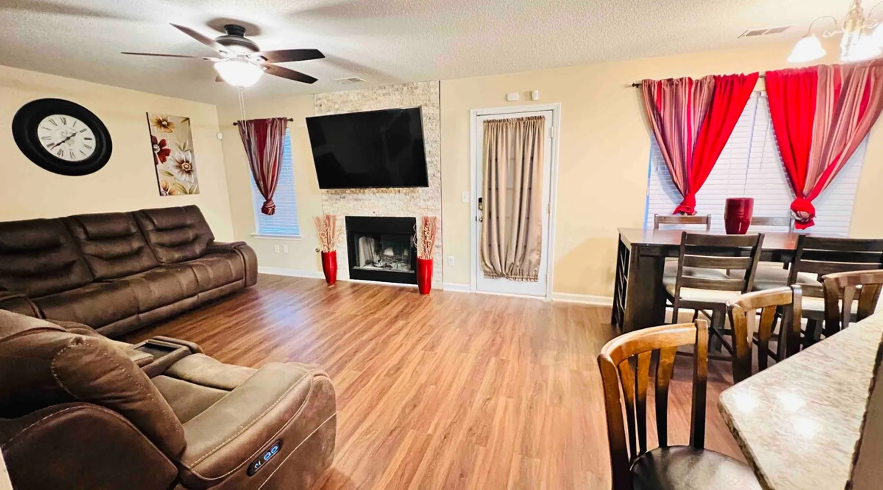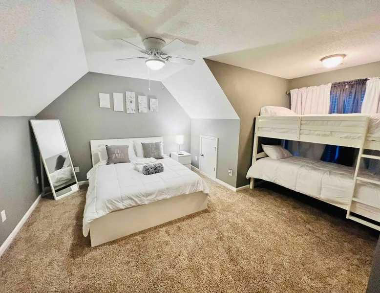 Your family will be close to everything when you stay at this centrally-located home. It is conveniently located 5 mins away from I-75 and 30 mins from Downtown Atlanta. It is also surrounded by many great restaurants, shopping centers like Tanger Outlet and kid friendly establishments like Dave & Buster's. Wether you want to enjoy yourself in the city or cook on the grill and watch the kids play in the backyard. This will surely be a home away from home. *Every bedroom has a TV in it.*