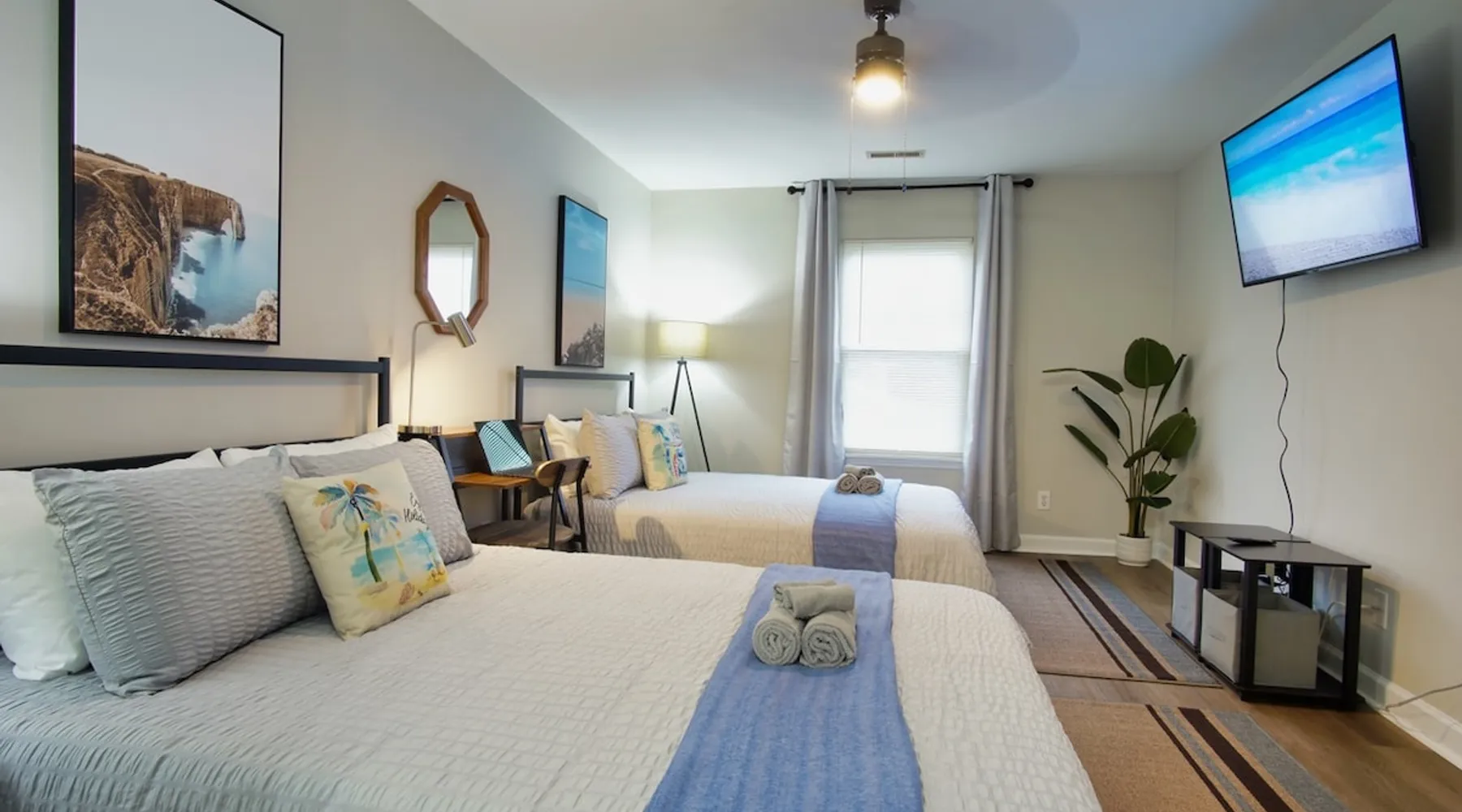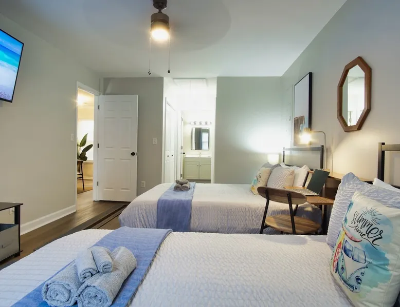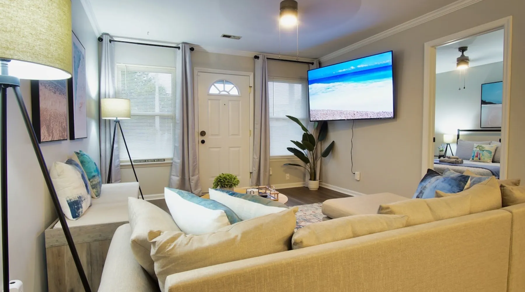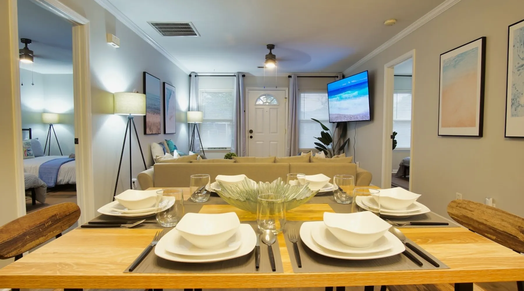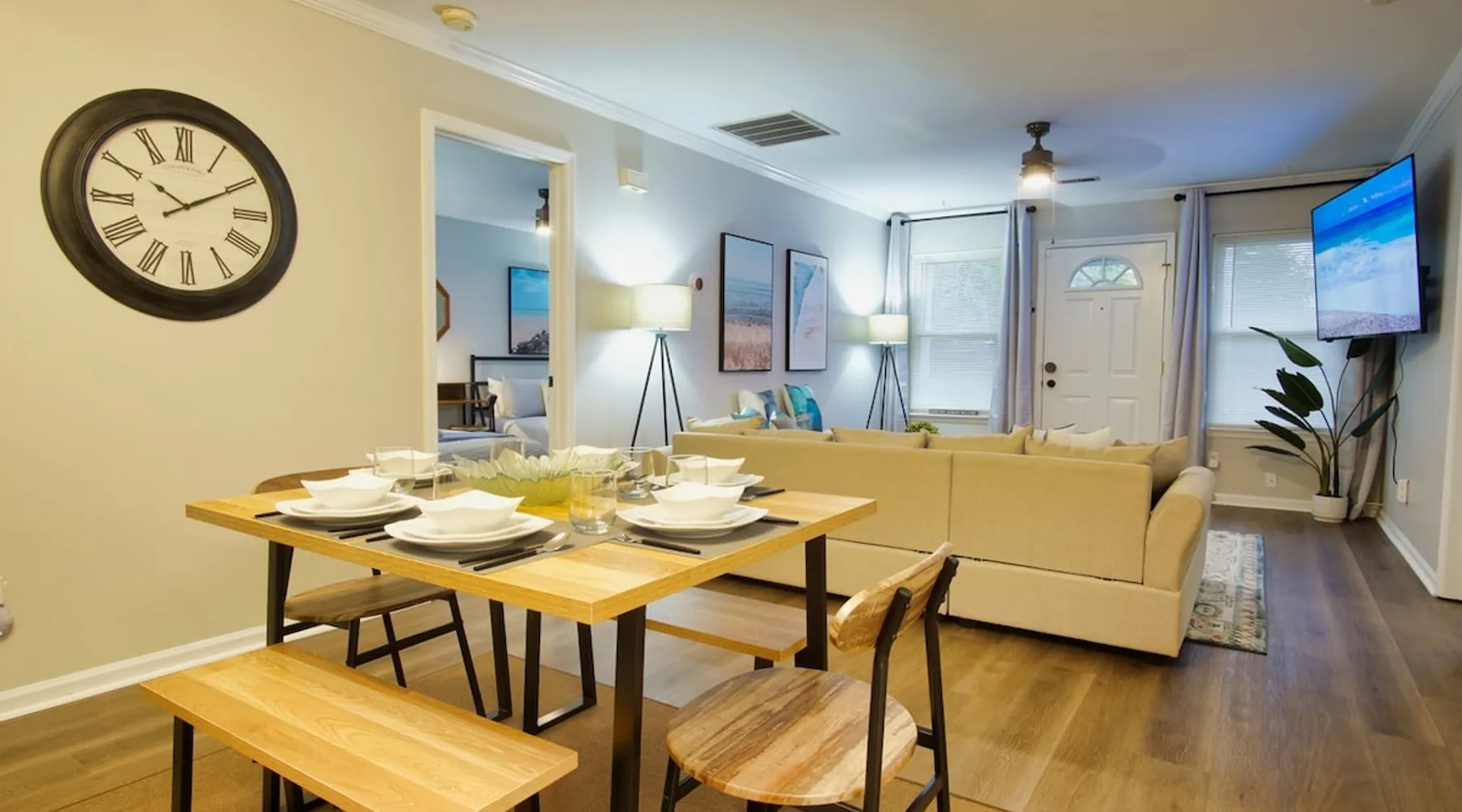 Your personal seaside escape awaits. Centrally situated in the laidback Crescent Beach community of North Myrtle Beach, this charming 2 bedroom and 2 bathroom (both ensuite) single-level home offers a prime location to nearby amenities and attractions for all visitors to the Grand Strand. The home’s modern style and efficient and accessible open floor plan are perfect for small families or couples looking to explore all the best that the Myrtle Beach area has to offer The space UPDATED & OPEN LAYOUT | FAMILY/SENIOR FRIENDLY | 1,008 SQ FT Welcome to Bungalow Bliss! A short 5 minute walk to the pristine sands of Crescent Beach, Bungalow Bliss offers a relaxing escape after spending a day along the water or wrapping up 18 holes at a local golf course. Come to Bungalow Bliss and prepare your favorite meal in the fully equipped kitchen and enjoy it in the dining area. Prefer to dine al fresco? Grill the fresh catch of the day while eating out on the patio. Opting to spend a night out on the town? Great eateries are just around the corner to suit every craving or spend the evening with all the vibrant entertainment of Barefoot Landing, all just a short drive away. Popular attractions like the Myrtle Beach Boardwalk and Broadway at the Beach are also with driving distance. For those seeking a low key evening indoors, settle in and enjoy movie night or binge watch a favorite show on one of home's 3 smart TVs. Looking to unplug and unwind? Take turns playing with family and friends choosing amongst a selection of board games. When ready to turn in, relax the night away in one of the 2 bedrooms, both with the convenience of en-suite bathrooms. Whatever you decide, sleep the night away and wake up refreshed for a new adventure along the Carolina coast. New memories to be made await you at Bungalow Bliss! Guest access Bungalow Bliss will be exclusive to you and your guests during your stay. This property provides secure, keyless entry with an August Smart Lock; so, no keys to lose or to return! You can lock and unlock the door by using a personal entry code issued to you for the duration of your stay. Other things to note Our home is located in a quiet residential neighborhood. Please be respectful of our community and neighbors. Parties, events, or large gatherings are strictly prohibited. In addition, excessive noise at any time is never allowed and quiet hours are in place every day between 10 p.m. and 8 a.m. This home is not suitable for large groups or those with more than 2 vehicles. The house is one of three sharing a common parking lot. Those found violating parking rules or community’s policies that disturb our neighbors are subject to having their reservation cancelled and being escorted from the property. The location of our home affords close proximity to all conveniences and amenities. While it is not beachfront, it is just a short 5 minute walk to the beach. The sleeping arrangements at our home can accommodate up to 6 guests with 2 queen beds in the primary bedroom and a queen bed in the guest bedroom. We welcome responsible and responsive guests over the age of 21. Any and all persons staying or visiting the property must be 18 years of age or older unless accompanied by a parent or a legal guardian. A copy of the guest's government issued ID must be shared with the host upon a confirmed reservation. This is for safety and security purposes and is strictly required in order to stay at our home. Pets allowed with restrictions and additional fees (please see house rules). If a guest cancels a reservation, all eligible refunds will be governed by the cancellation policy agreed upon at time of booking. No refunds outside of the cancellation policy will be possible unless a mandatory evacuation is ordered for the area. Thus, it is highly recommended that all guests purchase trip cancellation/interruption insurance. In the event that a guest cannot make a trip due to a family emergency, illness, bad weather, flight/rental car cancellation, job loss, COVID-19 ban/restriction, etc., the guest should seek reimbursement through their travel insurance. Mother Nature’s creatures both great and small also reside in the area in which our home is situated. Specifically, the occurrence of "palmetto bugs" are very common throughout all homes in the Grand Strand/Myrtle Beach area. Understanding how disconcerting it may be for our guests to find these critters in our home, please know that we hold a high standard for cleanliness and take all efforts to try to keep Mother Nature's creatures at bay. We subscribe to regularly scheduled pest control services so our guests can have an enjoyable stay. Despite measures we have taken to keep the home free of such events, it is not uncommon to have a stray visitor come into the house through an open door or window even if left ajar for a brief moment. While we cannot be held responsible for encounters with pests or wildlife inside or outside the home, if notified immediately of such an occurrence, arrangements can be made to accordingly try to address the issue. No refunds will be offered for these encounters.