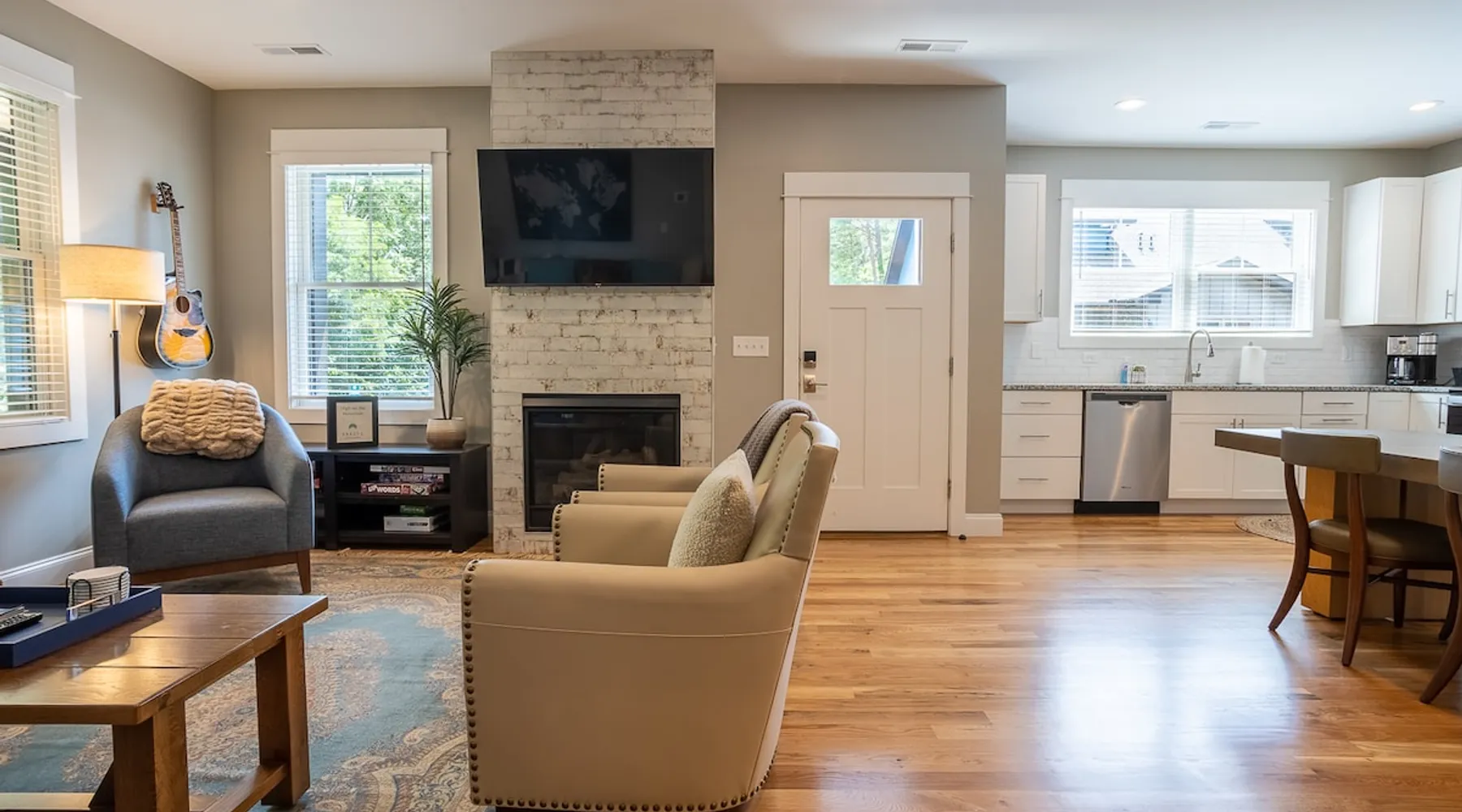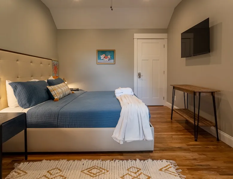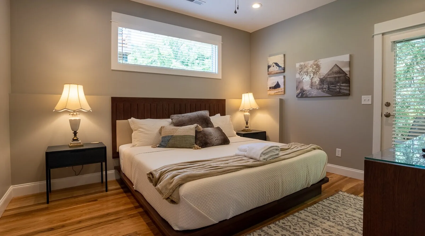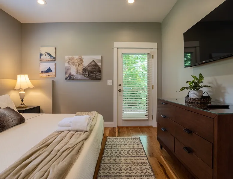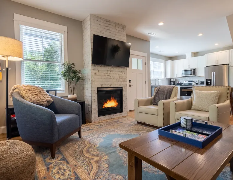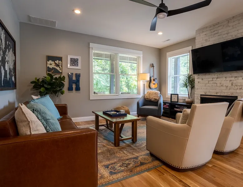 Get ready to be welcomed by High on the Mountain, one of ten beautifully constructed villas located in the enclave of The Fold at Reynolds Mountain. Quickly becoming a premier location for travelers coming to one of the most sought after travel destinations. Come enjoy the comforts of home in this newly built (2022), luxurious 4-bedroom property. The space The location couldn’t be better as you are walking distance to shops, restaurants and more! You’re also just a 10-minute drive to downtown Asheville to experience all it has to offer! Upon entering, you will be surrounded with high-end finishes, coupled with eclectic and handsome décor. The cozy living space is made for gathering and creating fond memories, which includes a gas fireplace and smart tv. The kitchen features stainless steel appliances, with everything you need to entertain your group. The chef of the group will be right at home! The 4 guest rooms include thoughtful décor, new king beds to ensure comfortable rest, privacy and your own smart tv. End each day by heading out to your private patio for a soak in the hot tub after a day hiking and exploring. Once you experience High on the Mountain, you will want to return again and again! Exclusive Special: When you book High on the Mountain you will receive a special code for discounted tickets to the Biltmore Estate! Contact us for more info. Home Truths: - Sleeps in beds: 8; Max Occupancy: 8 - We provide linens for all beds; other occupancy will require guests providing their own linens - Parking for 2 vehicles and designated overflow parking available - Internet Speed: Download - 600Mbps Upload - 35Mbps We openly share our Cleaning Fees in a manner of full disclosure, as we think this is the most honest and forthright approach with respect to our guests. Our Cleaning Fees are backed by our Clean Guarantee, which reflects the highest level of standards, pristine environments for our guests, and a level of clean that surpasses any other vacation homes; we literally guarantee it! Quiet Policy: Please note that the home is located in a very quiet community. Parties, loud noise and unruly behavior are absolutely prohibited, and guests are expected to respect the neighbors and the peace this mountain retreat area affords. Pets: This home is dog friendly. There is a non-refundable Pet Fee of $130 with a limit of 2 dogs per booking party. Early Check In and/or Late Check Out may be possible, depending on cleaning schedules and other reservations. If it is possible, there may be an additional fee that would be determined based on the time that you wish to check in or out and the seasonal rates. Please inquire for details regarding payment, the cancellation policy, military discounts, and trip insurance. Note: Reservations over 30 days are subject for review prior to acceptance. A separate rental agreement will be required for 90+ day stays. Last Minute Bookings: Reservations made within 7 days of check-in require additional documentation before confirmation.