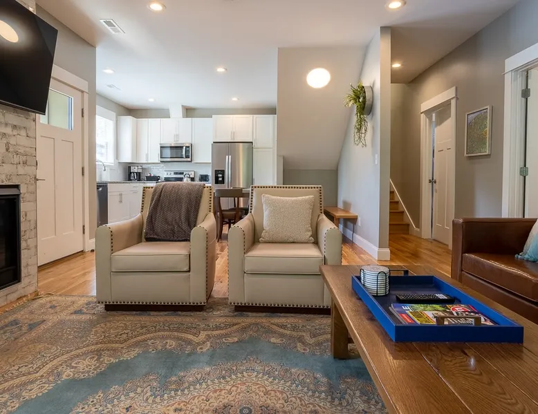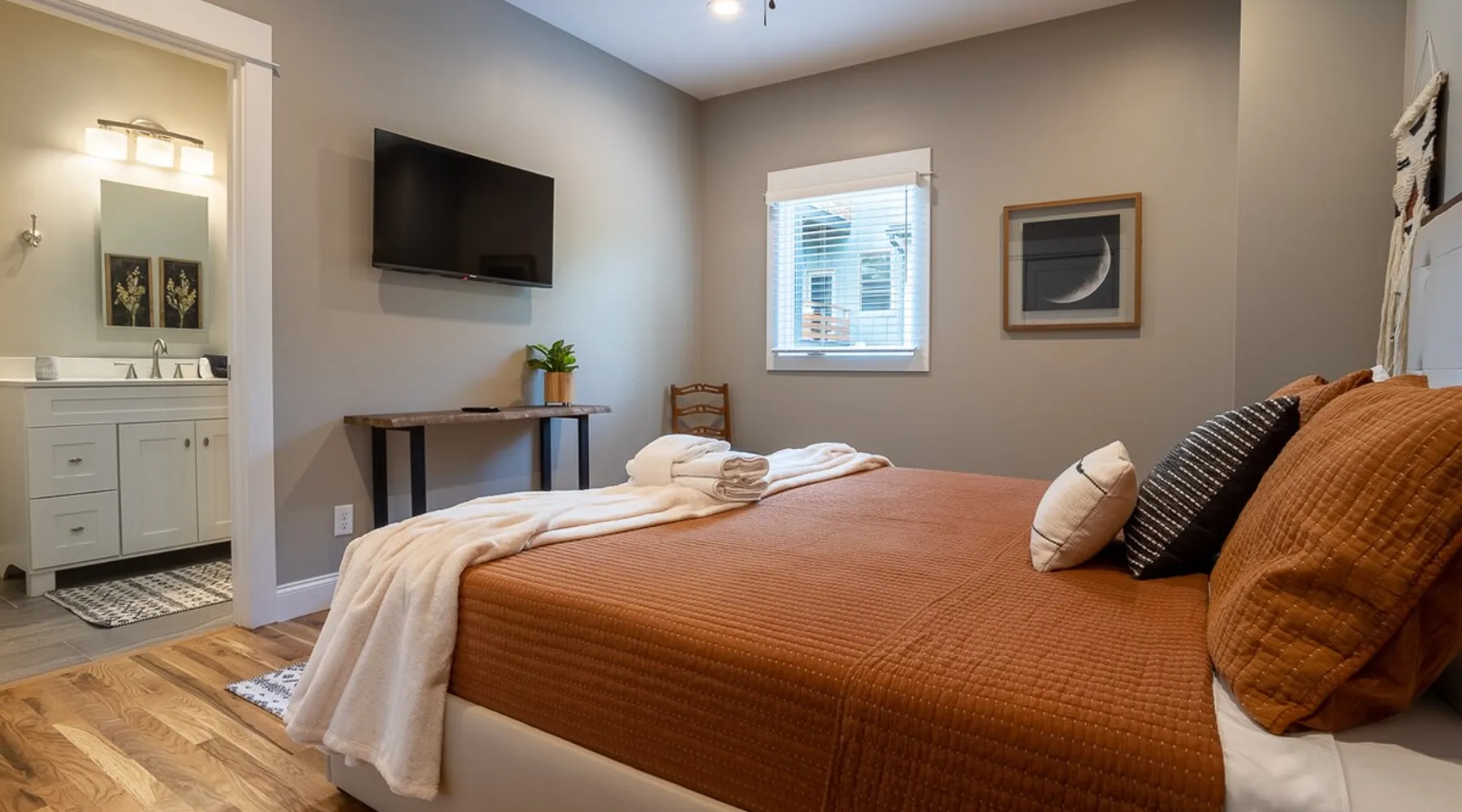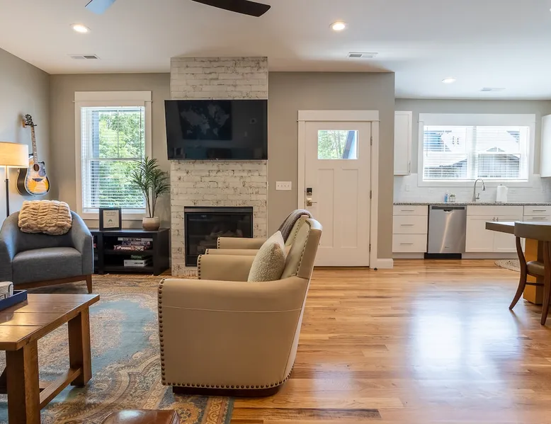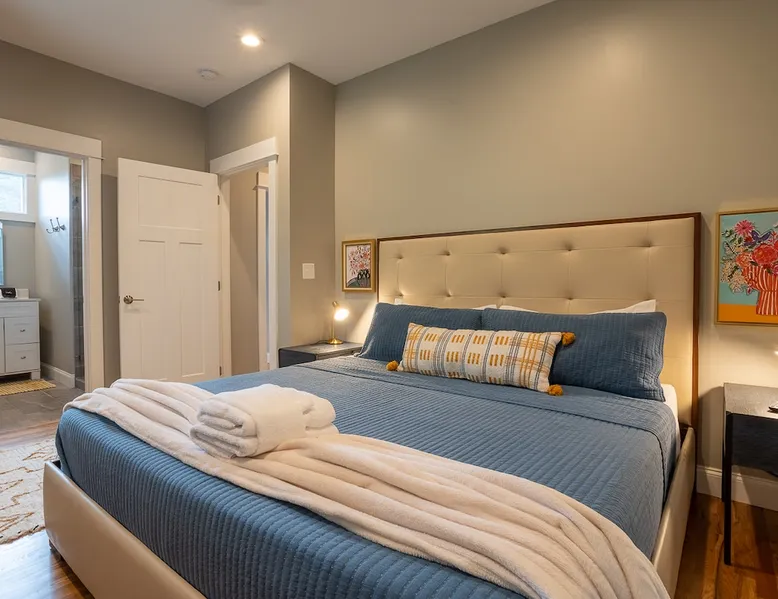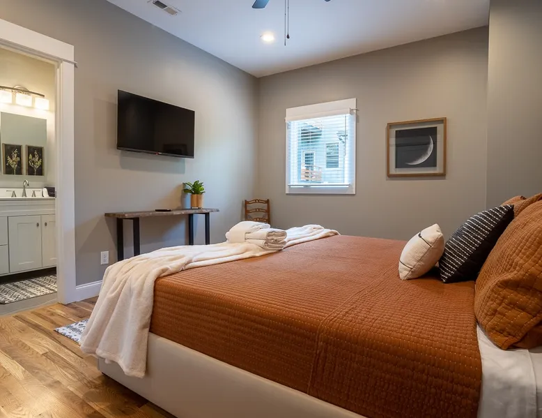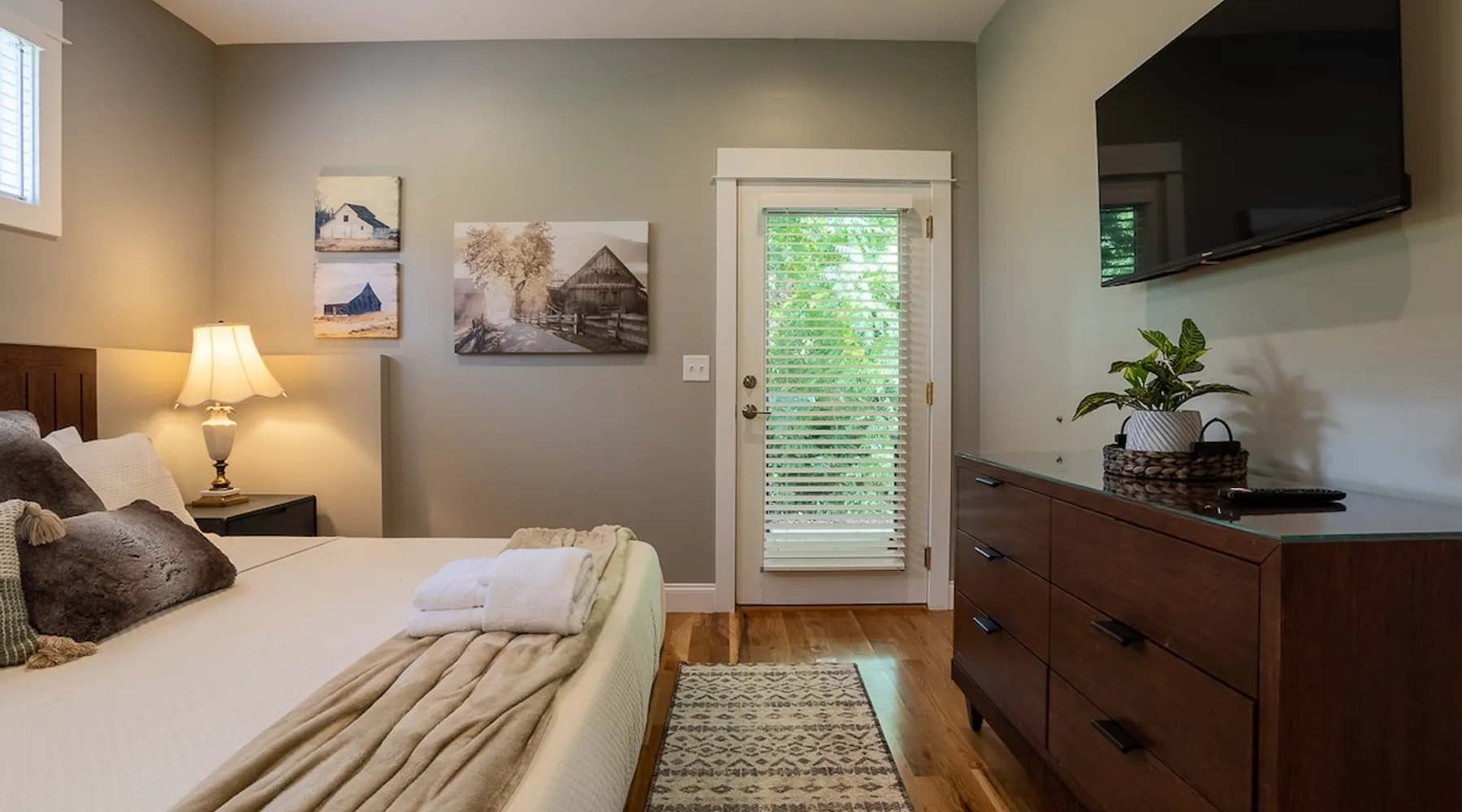 Get ready to be welcomed by High on the Mountain, one of ten beautifully constructed villas located in the enclave of The Fold at Reynolds Mountain. Quickly becoming a premier location for travelers coming to one of the most sought after travel destinations. Come enjoy the comforts of home in this newly built (2022), luxurious 4-bedroom property. The space The location couldn’t be better as you are walking distance to shops, restaurants and more! You’re also just a 10-minute drive to downtown Asheville to experience all it has to offer! Upon entering, you will be surrounded with high-end finishes, coupled with eclectic and handsome décor. The cozy living space is made for gathering and creating fond memories, which includes a gas fireplace and smart tv. The kitchen features stainless steel appliances, with everything you need to entertain your group. The chef of the group will be right at home! The 4 guest rooms include thoughtful décor, new king beds to ensure comfortable rest, privacy and your own smart tv. End each day by heading out to your private patio for a soak in the hot tub after a day hiking and exploring. Once you experience High on the Mountain, you will want to return again and again! Exclusive Special: When you book High on the Mountain you will receive a special code for discounted tickets to the Biltmore Estate! Contact us for more info. Home Truths: - Sleeps in beds: 8; Max Occupancy: 8 - We provide linens for all beds; other occupancy will require guests providing their own linens - Parking for 2 vehicles and designated overflow parking available - Internet Speed: Download - 600Mbps Upload - 35Mbps We openly share our Cleaning Fees in a manner of full disclosure, as we think this is the most honest and forthright approach with respect to our guests. Our Cleaning Fees are backed by our Clean Guarantee, which reflects the highest level of standards, pristine environments for our guests, and a level of clean that surpasses any other vacation homes; we literally guarantee it! Quiet Policy: Please note that the home is located in a very quiet community. Parties, loud noise and unruly behavior are absolutely prohibited, and guests are expected to respect the neighbors and the peace this mountain retreat area affords. Pets: This home is dog friendly. There is a non-refundable Pet Fee of $130 with a limit of 2 dogs per booking party. Early Check In and/or Late Check Out may be possible, depending on cleaning schedules and other reservations. If it is possible, there may be an additional fee that would be determined based on the time that you wish to check in or out and the seasonal rates. Please inquire for details regarding payment, the cancellation policy, military discounts, and trip insurance. Note: Reservations over 30 days are subject for review prior to acceptance. A separate rental agreement will be required for 90+ day stays. Last Minute Bookings: Reservations made within 7 days of check-in require additional documentation before confirmation.