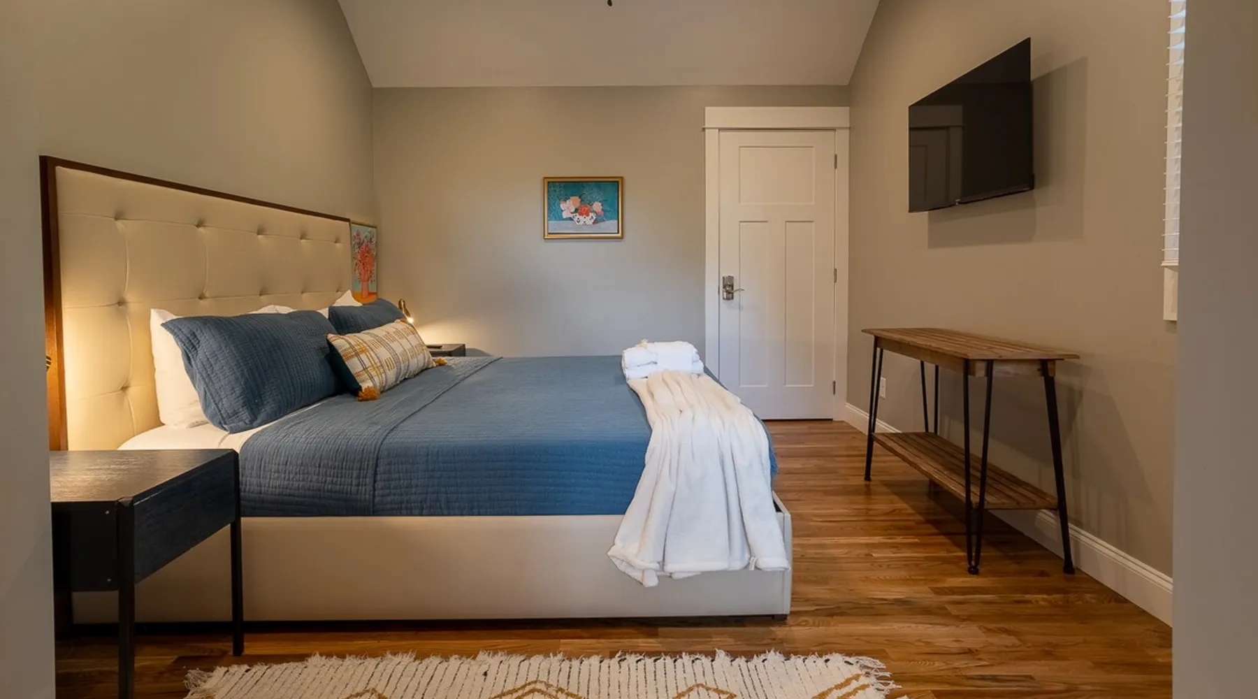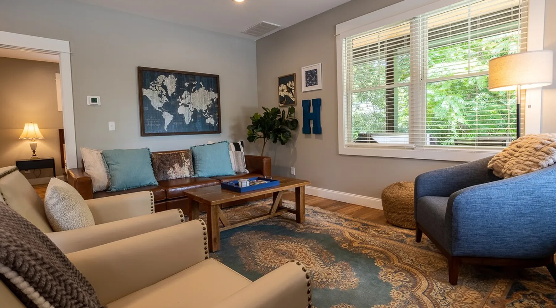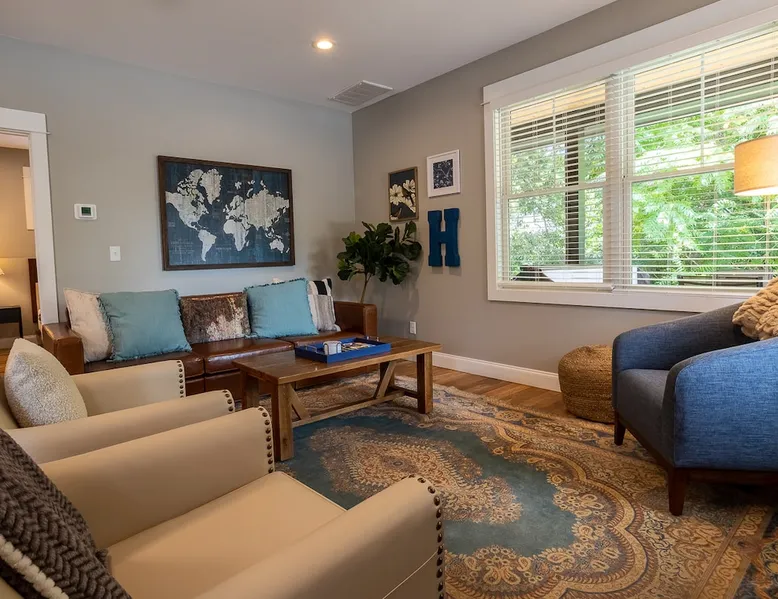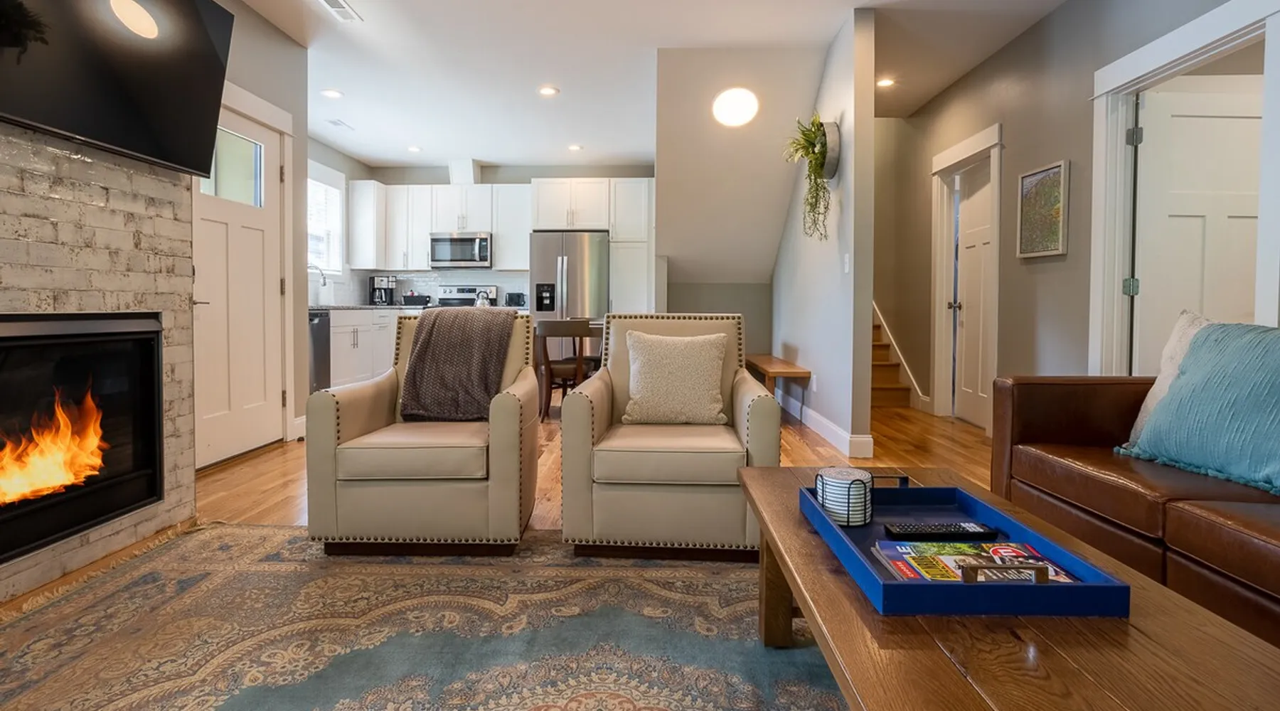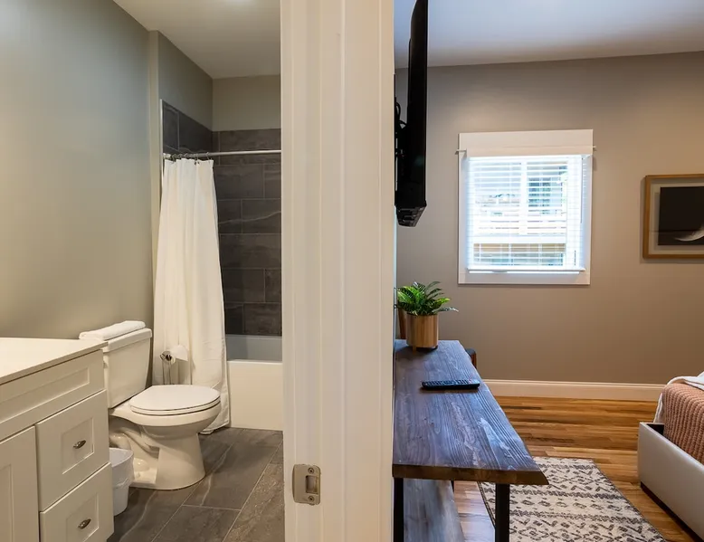 Get ready to be welcomed by High on the Mountain, one of ten beautifully constructed villas located in the enclave of The Fold at Reynolds Mountain. Quickly becoming a premier location for travelers coming to one of the most sought after travel destinations. Come enjoy the comforts of home in this newly built (2022), luxurious 4-bedroom property. The space The location couldn’t be better as you are walking distance to shops, restaurants and more! You’re also just a 10-minute drive to downtown Asheville to experience all it has to offer! Upon entering, you will be surrounded with high-end finishes, coupled with eclectic and handsome décor. The cozy living space is made for gathering and creating fond memories, which includes a gas fireplace and smart tv. The kitchen features stainless steel appliances, with everything you need to entertain your group. The chef of the group will be right at home! The 4 guest rooms include thoughtful décor, new king beds to ensure comfortable rest, privacy and your own smart tv. End each day by heading out to your private patio for a soak in the hot tub after a day hiking and exploring. Once you experience High on the Mountain, you will want to return again and again! Exclusive Special: When you book High on the Mountain you will receive a special code for discounted tickets to the Biltmore Estate! Contact us for more info. Home Truths: - Sleeps in beds: 8; Max Occupancy: 8 - We provide linens for all beds; other occupancy will require guests providing their own linens - Parking for 2 vehicles and designated overflow parking available - Internet Speed: Download - 600Mbps Upload - 35Mbps We openly share our Cleaning Fees in a manner of full disclosure, as we think this is the most honest and forthright approach with respect to our guests. Our Cleaning Fees are backed by our Clean Guarantee, which reflects the highest level of standards, pristine environments for our guests, and a level of clean that surpasses any other vacation homes; we literally guarantee it! Quiet Policy: Please note that the home is located in a very quiet community. Parties, loud noise and unruly behavior are absolutely prohibited, and guests are expected to respect the neighbors and the peace this mountain retreat area affords. Pets: This home is dog friendly. There is a non-refundable Pet Fee of $130 with a limit of 2 dogs per booking party. Early Check In and/or Late Check Out may be possible, depending on cleaning schedules and other reservations. If it is possible, there may be an additional fee that would be determined based on the time that you wish to check in or out and the seasonal rates. Please inquire for details regarding payment, the cancellation policy, military discounts, and trip insurance. Note: Reservations over 30 days are subject for review prior to acceptance. A separate rental agreement will be required for 90+ day stays. Last Minute Bookings: Reservations made within 7 days of check-in require additional documentation before confirmation.