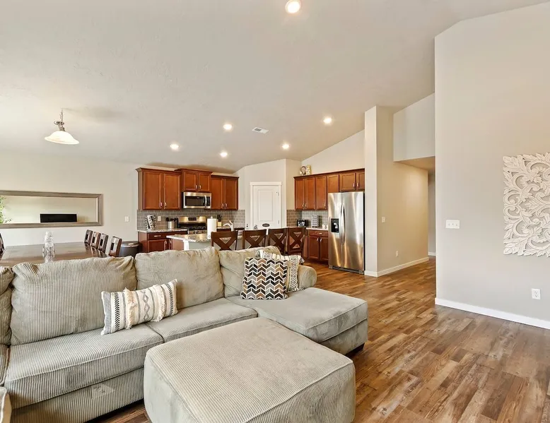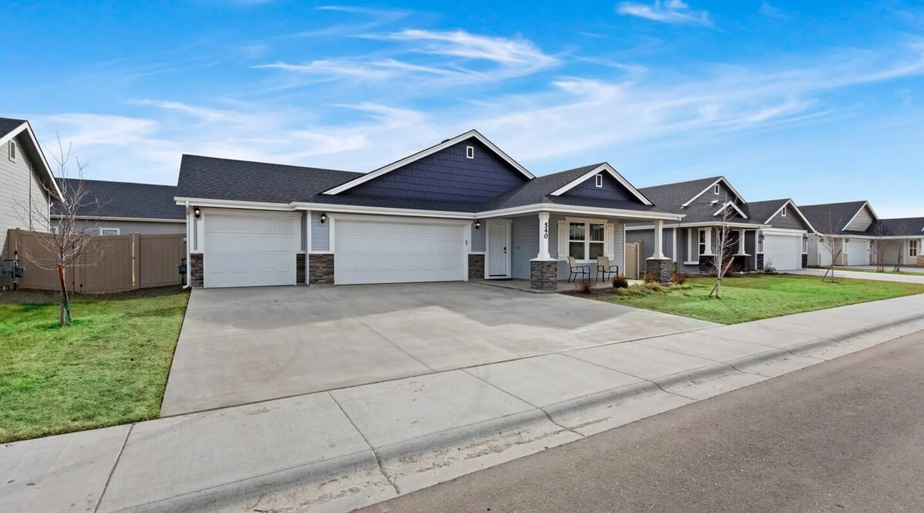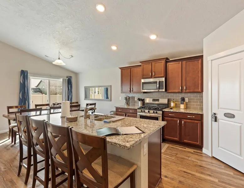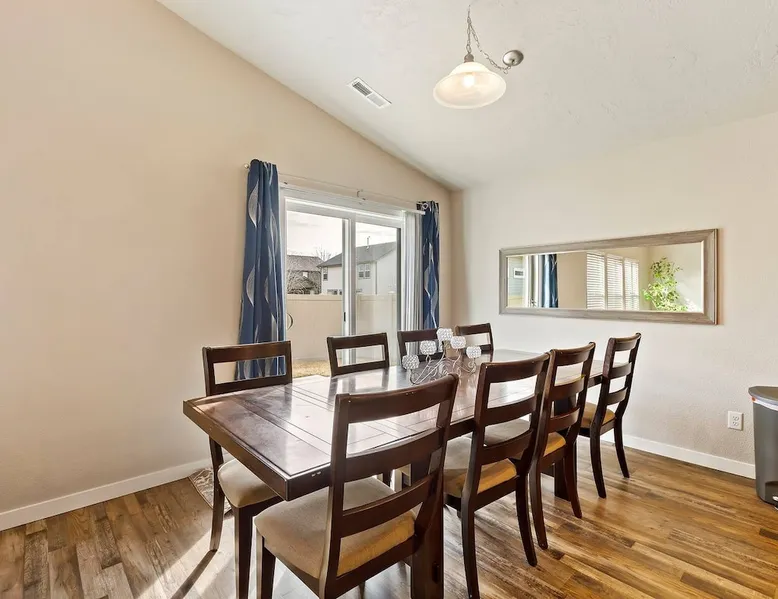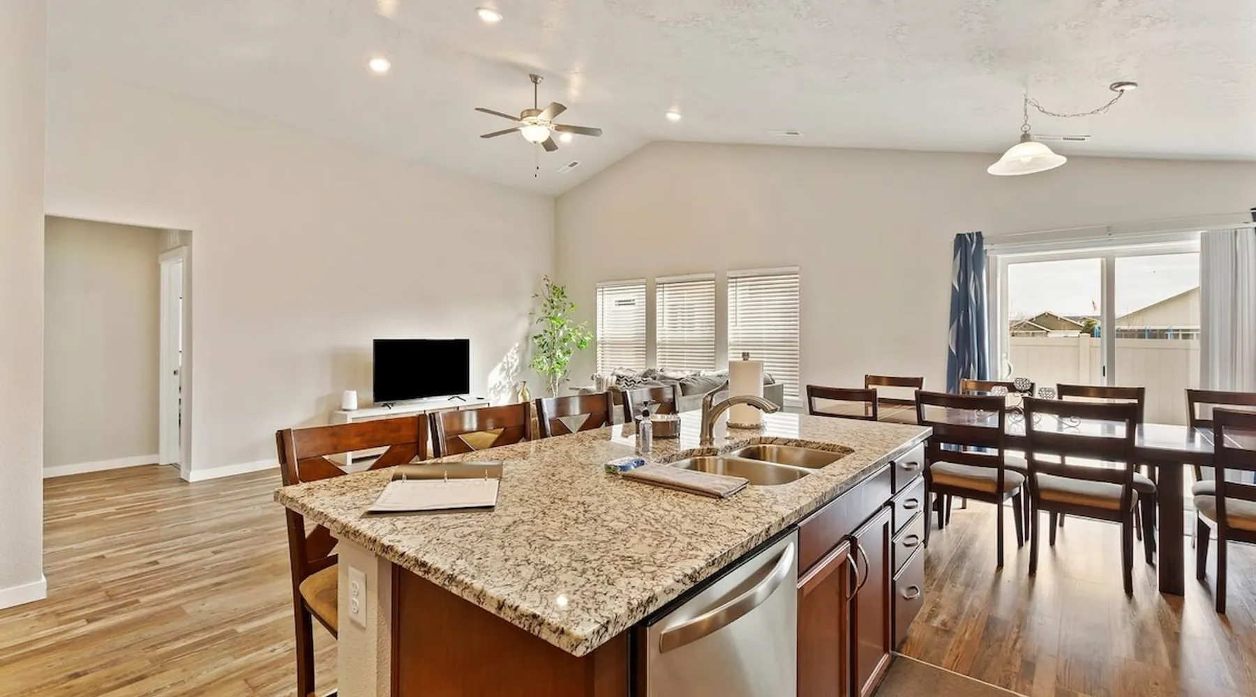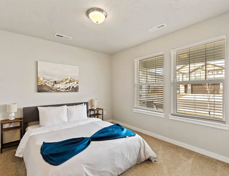 In the beautiful, safe walkable community of Star, Idaho! Feel welcomed in our wonderfully designed, new construction home with a fun refreshed style close to everything. 5 minutes walk to Albertsons with Starbucks, 20-minute walk to downtown Star, and very close to grocery/liquor stores, shopping, hospitals, and lots of entertainment. You will truly feel at your home away from home! The space ~What People Love~ We have tried our best to make you feel as welcome and relaxed as possible while you're on vacation. Here are what most people say that they love about the home: • Central location • Quiet Family-Friendly Neighborhood • Luxury sheets/towels • Proximity to shopping/entertainment You will also find many conveniences included in the home: • Fully stocked kitchen • High-speed Wi-Fi • Washer/Dryer • Comfortable memory foam beds Details and Descriptions: This rental has enough room for the family to spread out with 1900 sq/feet of comfortable living space. Living Room: Relax on the comfortable couch furnished with a beautiful smart 4K 55" TV equipped with built-in Roku so you can ensure that you are caught on all of your favorite movies and TV shows. Kitchen: The kitchen is stocked with utensils, pots, pans, a coffee station (coffee, tea, creamer, and sugar), a full spice rack, knives, dishwasher, and all the appliances you will need to enjoy your vacation. Please note there is no access to the kitchen pantry. However, there are empty cabinets to store food! Laundry Room: There is a washer and dryer with laundry soap and dryer sheets available for your convenience. Bedroom 1: The master bedroom w/ ensuite has an inviting, relaxing King-sized bed. For your convenience, there is a pack and play crib along with a large 4K Roku TV for all your streaming needs. Bedroom 2: The second guest bedroom has a comfortable queen-sized bed with 32' smart TV. Bedroom 3: The third guest bedroom has a double-sized bunk bed to make sure everyone has a place to sleep with 32' smart TV. Bedroom 4: The fourth guest bedroom as a comfortable queen-sized bed with 32' smart TV. Bathrooms: Each bathroom has a full shower, is fully stocked with salon-grade shampoo, conditioner and body wash. Dark make-up washcloths are present for your convenience. The guest bathroom has a shower/tub combo. WiFi: Very fast High-Speed WiFi available throughout. Backyard: Relax under the sun, or watch the kids run around the fenced large, open backyard. There is also a large common area close to the house that anyone is welcome to use! Parking: There is plenty of parking available. Two cars may fit in the garage and there is also street parking available in front of the house. ~Restrictions~ • We do not rent to groups under the age of 25 • Parties are not allowed • No pets allowed Guest access You have access to the entire property and common areas throughout the subdivision