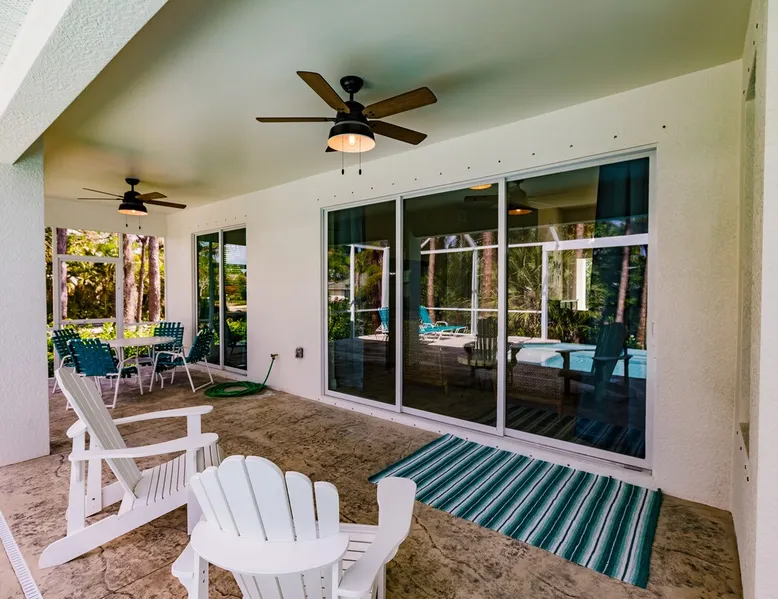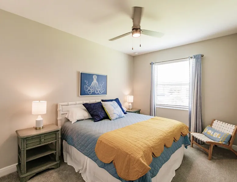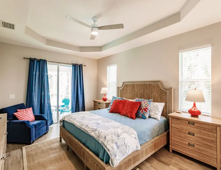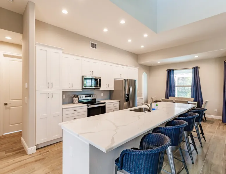 This modern coastal newly built 2300 sq ft home located 1.3 miles from Bonita Beach. It is a spacious beach retreat with 3 gorgeous bedrooms complete with their own private bathrooms, an enclosed pool/deck area, and an open concept living area fit with an entertainer's kitchen. For even more fun, you can book our sister home across the street with the exact same layout. The space Experience an unforgettable Bonita Springs getaway in this newly built one level, three bedroom home that sleeps 10 in beds. Perfect for families and snowbirds, the home is well-appointed with all the amenities and essentials to keep you comfortable and entertained for an extended stay. While the fully enclosed pool and patio set in private lush green gardens might be the highlight, the great open floor plan with oversized kitchen and living area is sure to impress as well. Read the reviews... you won't be disappointed. Inside, you'll find the home beautifully decorated with tasteful furnishings and fixtures. The oversized island kitchen comes well-appointed with stainless steel appliances, storage pantries and all the utensils you need to make at-home meals a breeze. Eat together inside or out on the patio - two tables inside the house and two tables outside making it easy for the whole house to sit down to a meal. Four barstool seats at the island counter make for fun entertaining. The large, flatscreen smart TVs (3) are perfect for movie nights or streaming your favorite shows. While the home layout is very open, you also get to enjoy private bedrooms that each have separate entry and their own bathrooms. The master bathroom includes a king sized bed, TV, luxurious oversized walk in shower with rain head, large walk in closet and private access to the pool deck. Enjoy another guest bedroom with king bed and private bathroom with walk in shower. The bunk room is perfect for kids or groups of adults, with two twin beds plus twin loft beds that are sturdy to handle adults as well as its own bathroom with bath tub. When it's time to explore, take advantage of the home's great access to beaches, shopping, and restaurants! Two adult-sized bikes are available for easy beach cruising! Popular Barefoot Beach, is just a two-mile bike ride away. Things to Know Free high-speed WiFi Full Kitchen Private washer/dryer Pool equipment provided 2 adult bikes available for use Snowbird-friendly! Parking Notes: There is free parking for 4 vehicles. Two vehicles can fit into the garage and two on the driveway. Parking is not allowed on the street or grass. For larger groups needing additional accommodations check out our house directly across the street with the same layout and amenities at airbnb listing number 11324105. Guest access Easy keyless door code entry available 24/7. Other things to note For larger groups needing additional accommodations check out our house directly across the street with the same layout and amenities at airbnb listing number 11324105.