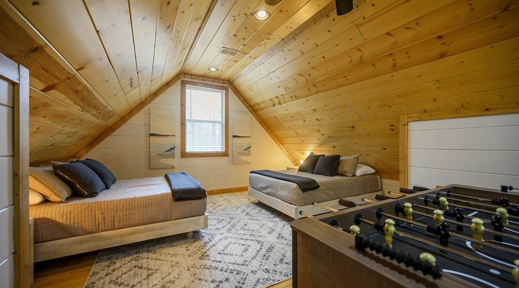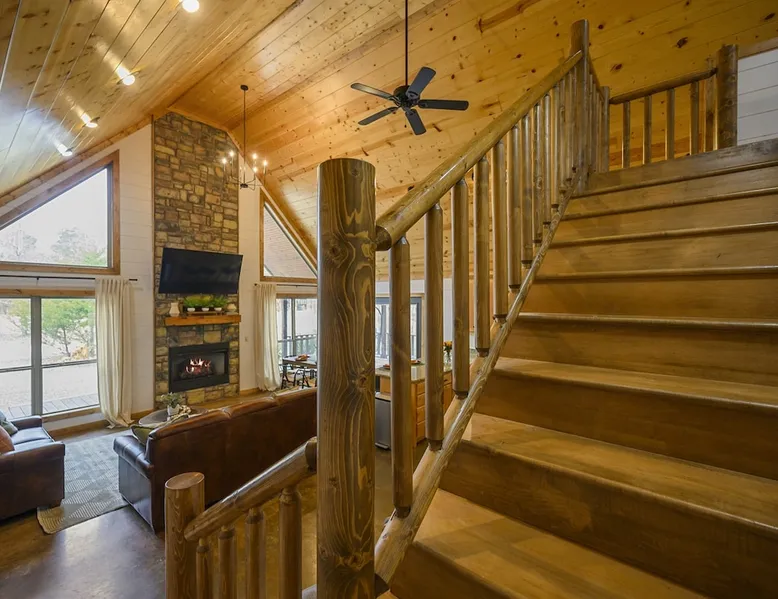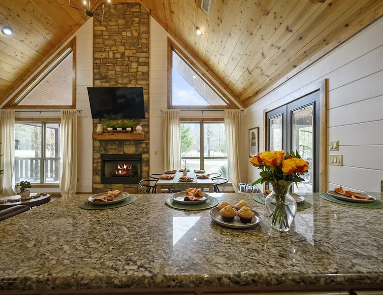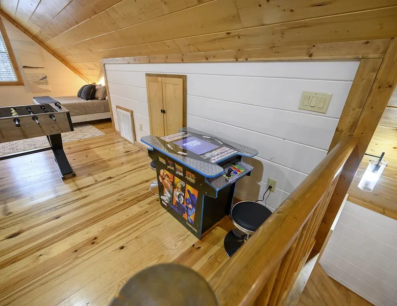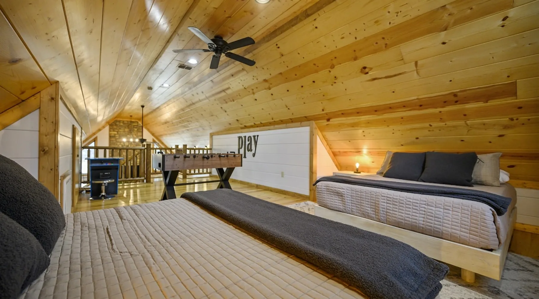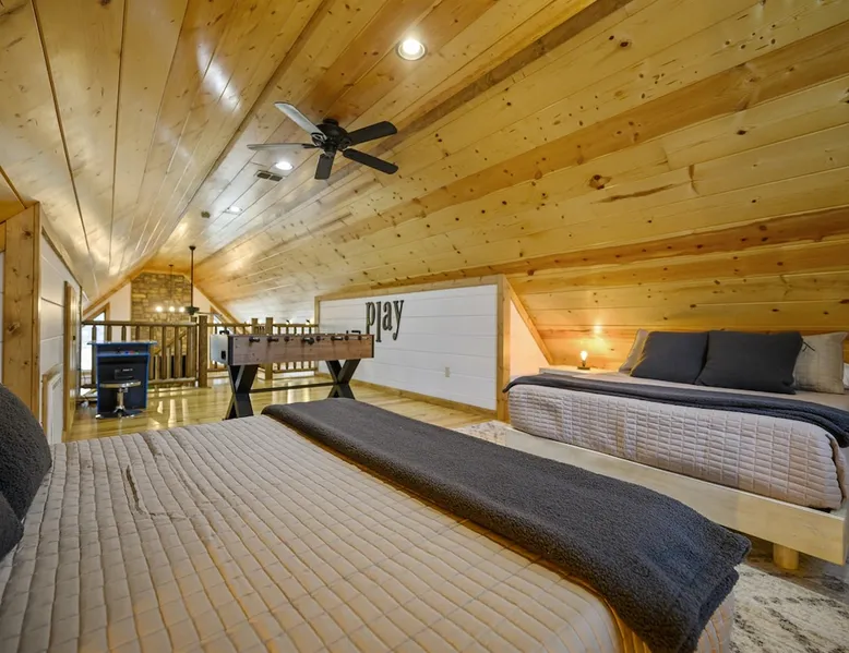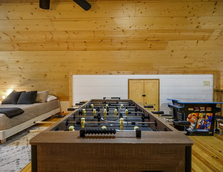 Escape to 🧇 Waffle Ridge (hosted by @pinpointstays), conveniently located right at the heart of Hochatown. With 1,800 square feet of spacious comfort, our cabin offers a delightful blend of tasteful modern finishes while keeping the personality of a cabin amongst nature. It serves as the perfect home base, no matter what you have planned during your stay here. Easy flat paved roads leading up to the cabin with a location that simply cannot be beaten! The space Don't forget to click the ❤️ in the upper right hand corner so you can easily refer back to this listing while you search for the perfect stay. As you step inside, you'll be greeted by a warm and inviting ambiance, where every detail has been carefully crafted to create an unforgettable experience. The cabin boasts two bedrooms, including a master en-suite full bathroom that provides a private sanctuary for relaxation. A spacious loft with 2 full sized beds adds an extra touch of versatility, ensuring ample space for everyone in your family or group. But it's not just the interior that will captivate your senses. Step outside, and you'll discover a world of outdoor wonders amongst our tall pine trees. Our cabin is a true haven for families, with a delightful child playground set, private hot tub, horseshoe pit, corn hole, hammocks, and a fire pit with swings. Embrace the spirit of fun and laughter as you indulge in these outdoor amenities, creating memories that will last a lifetime. Rainy days are no match for the excitement that awaits indoors. Challenge your friends and family to a thrilling game of foosball, load up a classic game in the arcade, or engage in friendly competition with an array of board games. There's never a dull moment here – the possibilities for entertainment are endless. Nestled in the heart of Hochatown, our cabin offers the perfect balance of tranquility and convenience. Whether you're seeking adventure or simply yearning for a peaceful getaway, you'll find it all within reach. Explore the natural wonders of the surrounding area, immerse yourself in the local culture, or savor the exquisite cuisine at nearby restaurants. All within minutes away! At our cabin, your comfort is our top priority. Unwind in the cozy living spaces, create culinary delights in the fully equipped kitchen, and relish in the joy of togetherness on the spacious deck. Our cabin effortlessly combines the comforts of home with the allure of an enchanting retreat. ❤️ FAMILY FRIENDLY ▪️ Crib/pack and play ▪️ Baby gate ▪️ Foosball table ▪️ Roku on all TVs 💤 SLEEPING ARRANGEMENT 🛏 Bedroom 1: King ensuite with full bathroom (sleeps 2) - main floor 🛏 Bedroom 2: King bed (sleeps 2) - main floor 🛏 Loft: 2 Full beds (sleeps 4) -upstairs 🚽 BATHROOMS 🚿 Bathroom 1: Full bathroom w/ stand-up shower. Located inside Bedroom 1 on main level 🚿 Bathroom 2: Full bathroom w/ stand-up shower and tub combination. Located in hallway on main level 🧑🍳 KITCHEN AND DINING ▪️ We welcome you to fully utilize all the stainless steel appliances (stove with oven, microwave, dishwasher, fridge) to fix yourself a meal ▪️ All types of cookware and utensils are thoughtfully provided to ensure you’re well prepared ahead for any recipes. Basic spices are also available ▪️ Wake up and start your morning the right way with a dedicated coffee bar with a Keurig duo (K-Cup pods, ground coffee, and tea provided) ▪️ Brand new granite countertops giving you enough space to stay in for the night to cook a family dinner ▪️ Spacious indoor and outdoor dining tables comfortably seats 6 each, so no one is left out! ▪️ Outdoor propane gas grill ✨ AMENITIES AND ENTERTAINMENT ▪️ Fast, reliable, and free wifi ▪️ We love providing all guests with paper towels, dish soap, dishwasher pods, trash bags, toilet paper, hand soap, laundry pods, and many more consumables ▪️ Washer & dryer with laundry pods provided ▪️ Feeling like you need a yoga session or want to do a quick workout? Get active with our yoga mats ▪️ Fresh bath and bed linens are provided (including hot tub towels) - save space in your luggage as you will not need to pack them! Beach towels also provided for the hot tub ▪️ A bit in the mood to be competitive? Start up a board game with the family! ▪️ Are you a fan of fireplaces? The fireplace can be enjoyed from Oct to Mar. Nothing beats getting toasty while relaxing with a bottle of wine and a good ole movie to unwind from a full day of fun 🚗 PARKING ▪️ Our lot is huge! It can fit more than 4+ passenger cars, RVs, ATVs, and even big trailer with boats Guest access ✨ You will have private use to the entire cabin and all its amenities during your stay ❤️ Other things to note The drive to this cabin is on all flat and paved roads. No hilly, windy, and curvy mountain roads! Please remember you're staying in a home, not a hotel. Please treat the space with respect. If any problems arise, we will do our best to take action as soon as possible. Guests are required to sign a Rental Agreement and upload a copy of their ID upon booking. (Airbnb policy: https://www.airbnb.com/help/article/465). In addition, a security deposit hold (not a charge) of $500 is required and will be automatically reserved for the booking. The automatic reserve is conducted by putting a hold on the Guest's credit card, exactly 2 day(s) prior to the arrival date. (Airbnb policy: https://www.airbnb.com/help/article/140)