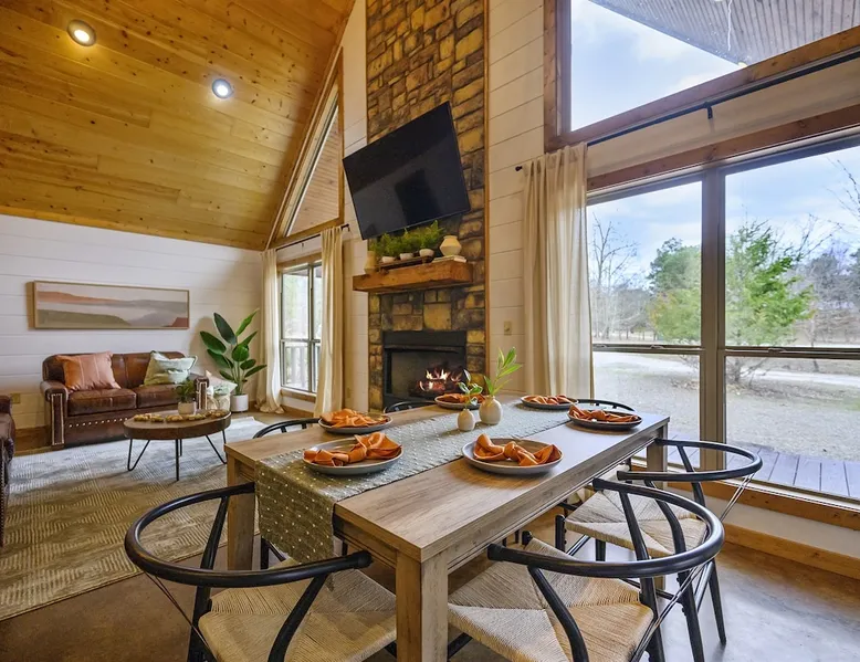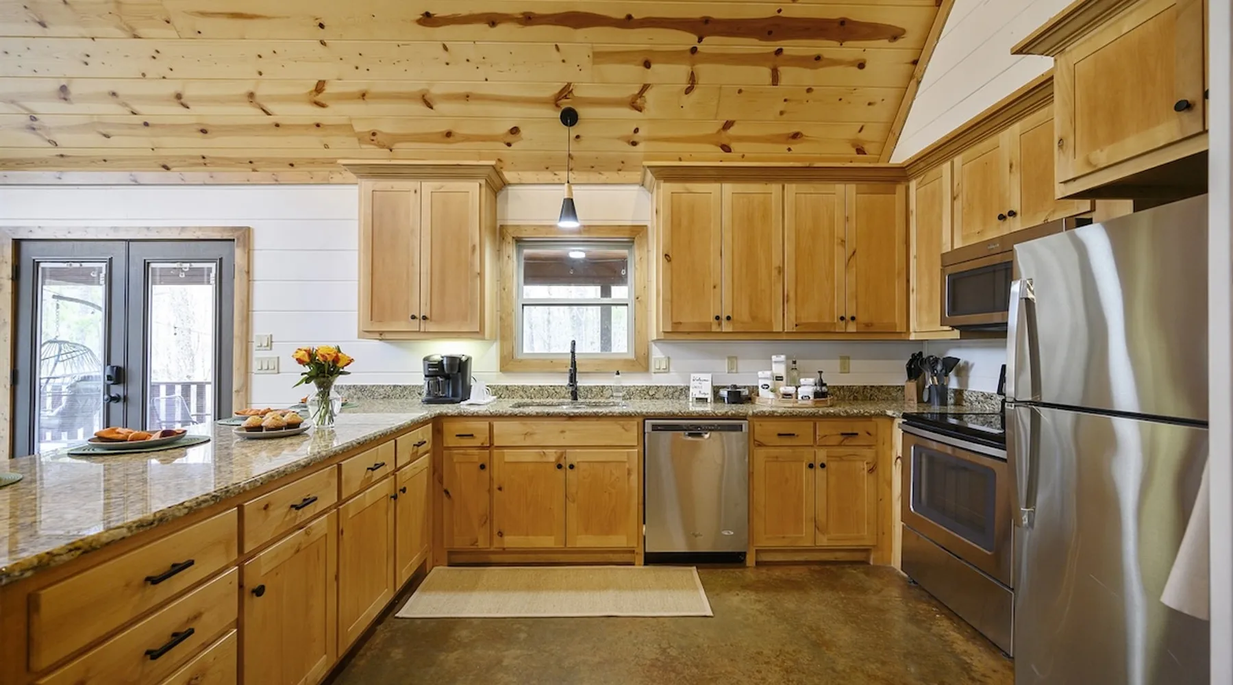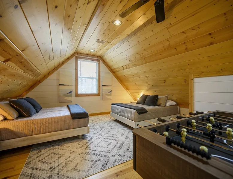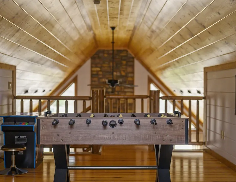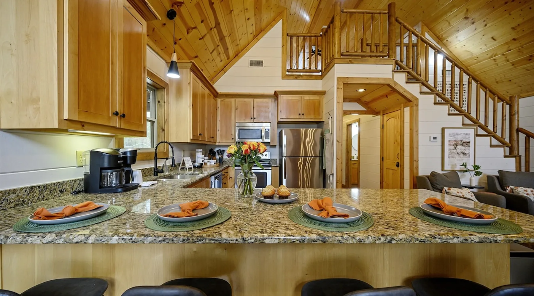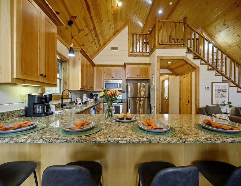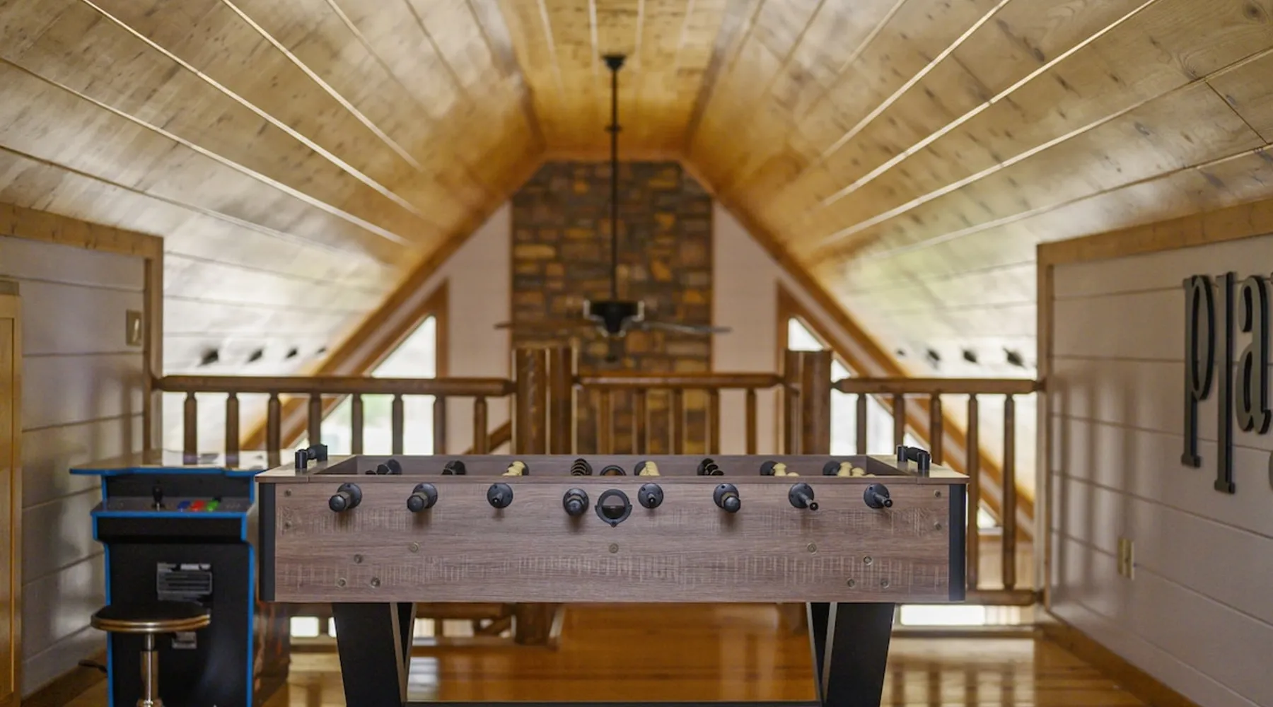 Escape to 🧇 Waffle Ridge (hosted by @pinpointstays), conveniently located right at the heart of Hochatown. With 1,800 square feet of spacious comfort, our cabin offers a delightful blend of tasteful modern finishes while keeping the personality of a cabin amongst nature. It serves as the perfect home base, no matter what you have planned during your stay here. Easy flat paved roads leading up to the cabin with a location that simply cannot be beaten! The space Don't forget to click the ❤️ in the upper right hand corner so you can easily refer back to this listing while you search for the perfect stay. As you step inside, you'll be greeted by a warm and inviting ambiance, where every detail has been carefully crafted to create an unforgettable experience. The cabin boasts two bedrooms, including a master en-suite full bathroom that provides a private sanctuary for relaxation. A spacious loft with 2 full sized beds adds an extra touch of versatility, ensuring ample space for everyone in your family or group. But it's not just the interior that will captivate your senses. Step outside, and you'll discover a world of outdoor wonders amongst our tall pine trees. Our cabin is a true haven for families, with a delightful child playground set, private hot tub, horseshoe pit, corn hole, hammocks, and a fire pit with swings. Embrace the spirit of fun and laughter as you indulge in these outdoor amenities, creating memories that will last a lifetime. Rainy days are no match for the excitement that awaits indoors. Challenge your friends and family to a thrilling game of foosball, load up a classic game in the arcade, or engage in friendly competition with an array of board games. There's never a dull moment here – the possibilities for entertainment are endless. Nestled in the heart of Hochatown, our cabin offers the perfect balance of tranquility and convenience. Whether you're seeking adventure or simply yearning for a peaceful getaway, you'll find it all within reach. Explore the natural wonders of the surrounding area, immerse yourself in the local culture, or savor the exquisite cuisine at nearby restaurants. All within minutes away! At our cabin, your comfort is our top priority. Unwind in the cozy living spaces, create culinary delights in the fully equipped kitchen, and relish in the joy of togetherness on the spacious deck. Our cabin effortlessly combines the comforts of home with the allure of an enchanting retreat. ❤️ FAMILY FRIENDLY ▪️ Crib/pack and play ▪️ Baby gate ▪️ Foosball table ▪️ Roku on all TVs 💤 SLEEPING ARRANGEMENT 🛏 Bedroom 1: King ensuite with full bathroom (sleeps 2) - main floor 🛏 Bedroom 2: King bed (sleeps 2) - main floor 🛏 Loft: 2 Full beds (sleeps 4) -upstairs 🚽 BATHROOMS 🚿 Bathroom 1: Full bathroom w/ stand-up shower. Located inside Bedroom 1 on main level 🚿 Bathroom 2: Full bathroom w/ stand-up shower and tub combination. Located in hallway on main level 🧑🍳 KITCHEN AND DINING ▪️ We welcome you to fully utilize all the stainless steel appliances (stove with oven, microwave, dishwasher, fridge) to fix yourself a meal ▪️ All types of cookware and utensils are thoughtfully provided to ensure you’re well prepared ahead for any recipes. Basic spices are also available ▪️ Wake up and start your morning the right way with a dedicated coffee bar with a Keurig duo (K-Cup pods, ground coffee, and tea provided) ▪️ Brand new granite countertops giving you enough space to stay in for the night to cook a family dinner ▪️ Spacious indoor and outdoor dining tables comfortably seats 6 each, so no one is left out! ▪️ Outdoor propane gas grill ✨ AMENITIES AND ENTERTAINMENT ▪️ Fast, reliable, and free wifi ▪️ We love providing all guests with paper towels, dish soap, dishwasher pods, trash bags, toilet paper, hand soap, laundry pods, and many more consumables ▪️ Washer & dryer with laundry pods provided ▪️ Feeling like you need a yoga session or want to do a quick workout? Get active with our yoga mats ▪️ Fresh bath and bed linens are provided (including hot tub towels) - save space in your luggage as you will not need to pack them! Beach towels also provided for the hot tub ▪️ A bit in the mood to be competitive? Start up a board game with the family! ▪️ Are you a fan of fireplaces? The fireplace can be enjoyed from Oct to Mar. Nothing beats getting toasty while relaxing with a bottle of wine and a good ole movie to unwind from a full day of fun 🚗 PARKING ▪️ Our lot is huge! It can fit more than 4+ passenger cars, RVs, ATVs, and even big trailer with boats Guest access ✨ You will have private use to the entire cabin and all its amenities during your stay ❤️ Other things to note The drive to this cabin is on all flat and paved roads. No hilly, windy, and curvy mountain roads! Please remember you're staying in a home, not a hotel. Please treat the space with respect. If any problems arise, we will do our best to take action as soon as possible. Guests are required to sign a Rental Agreement and upload a copy of their ID upon booking. (Airbnb policy: https://www.airbnb.com/help/article/465). In addition, a security deposit hold (not a charge) of $500 is required and will be automatically reserved for the booking. The automatic reserve is conducted by putting a hold on the Guest's credit card, exactly 2 day(s) prior to the arrival date. (Airbnb policy: https://www.airbnb.com/help/article/140)