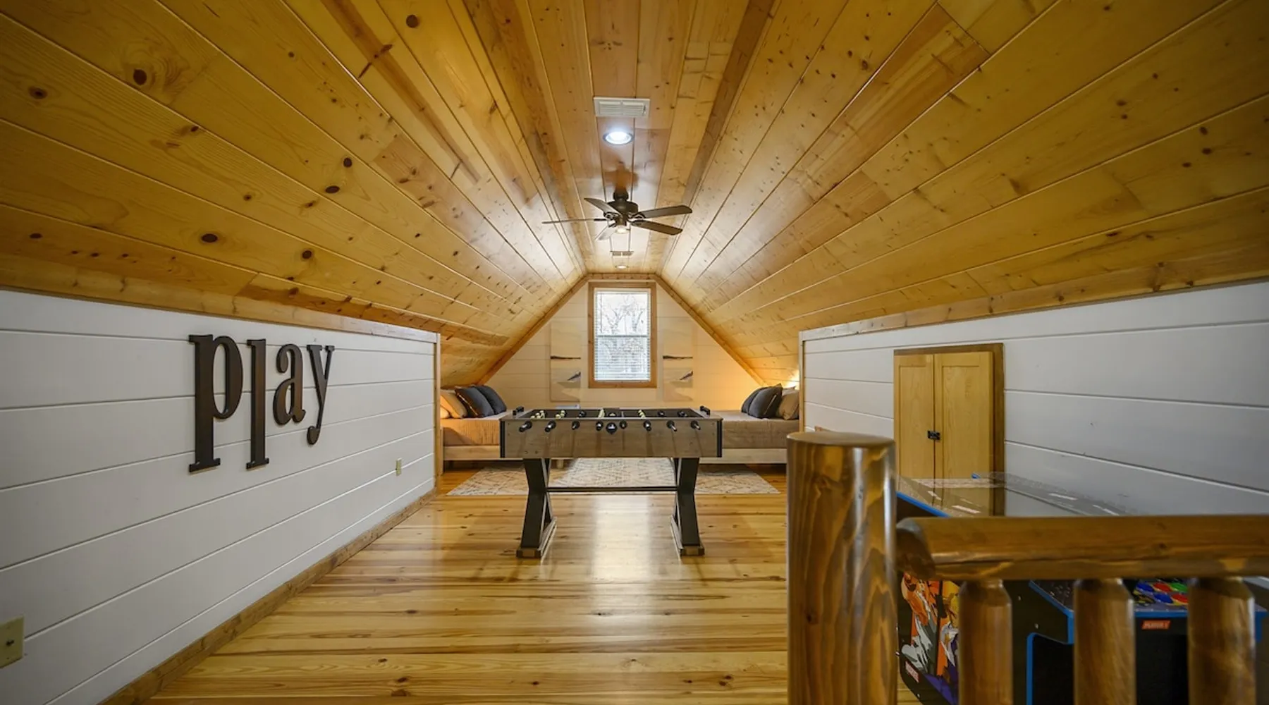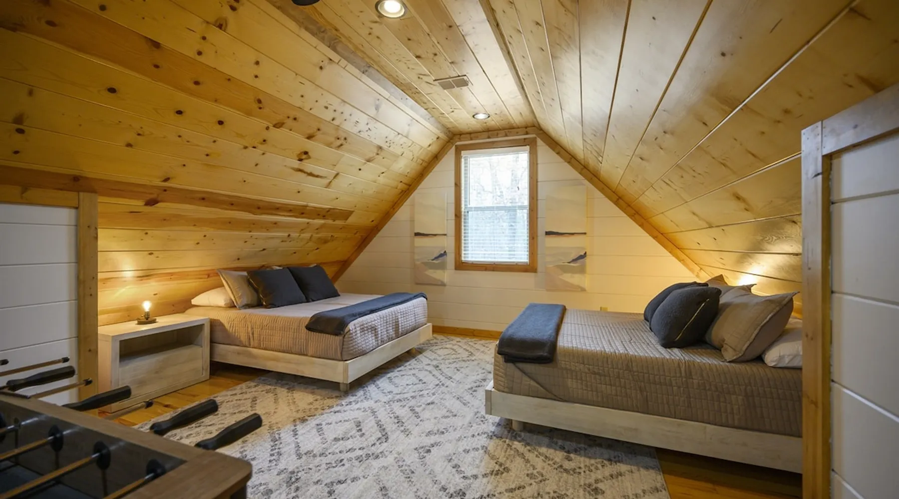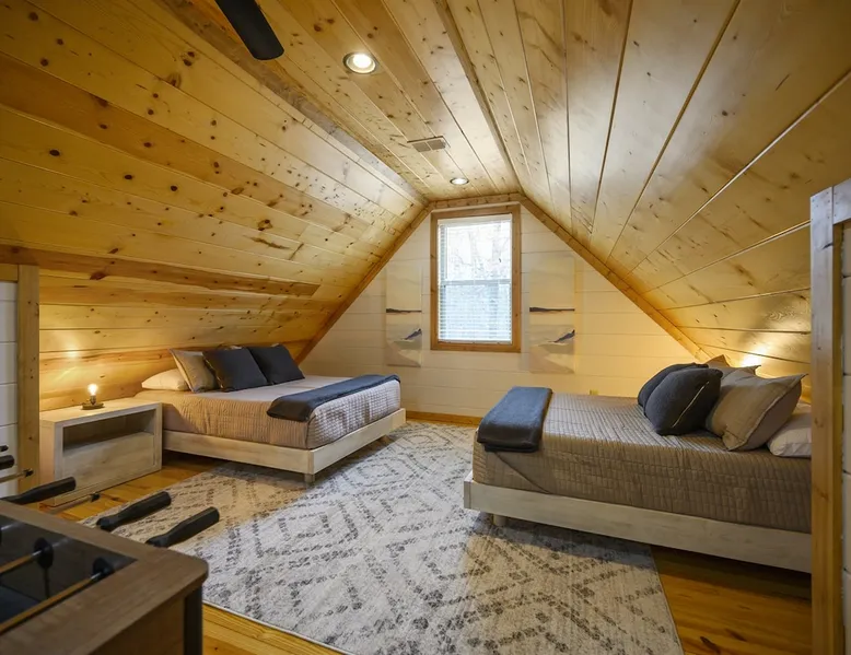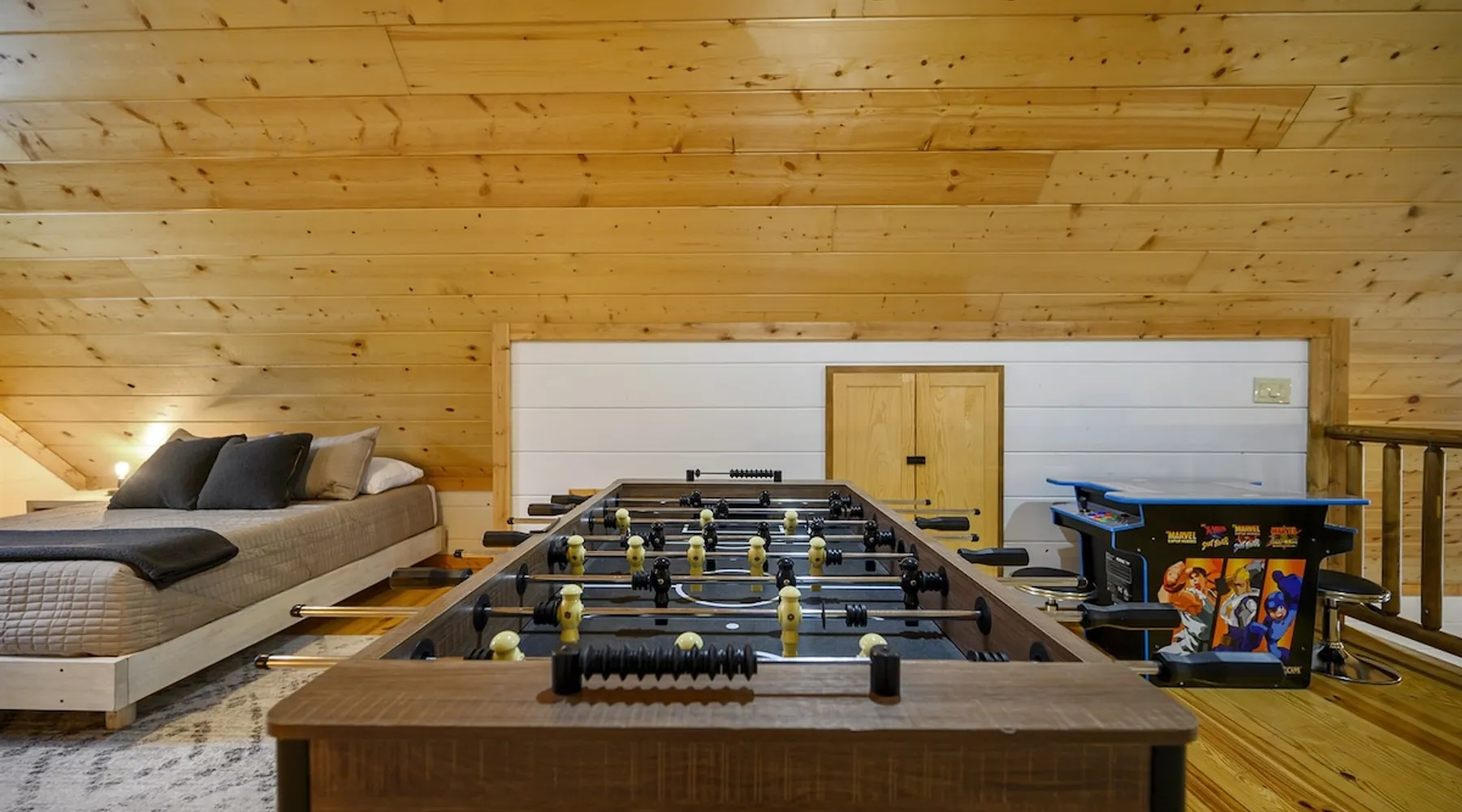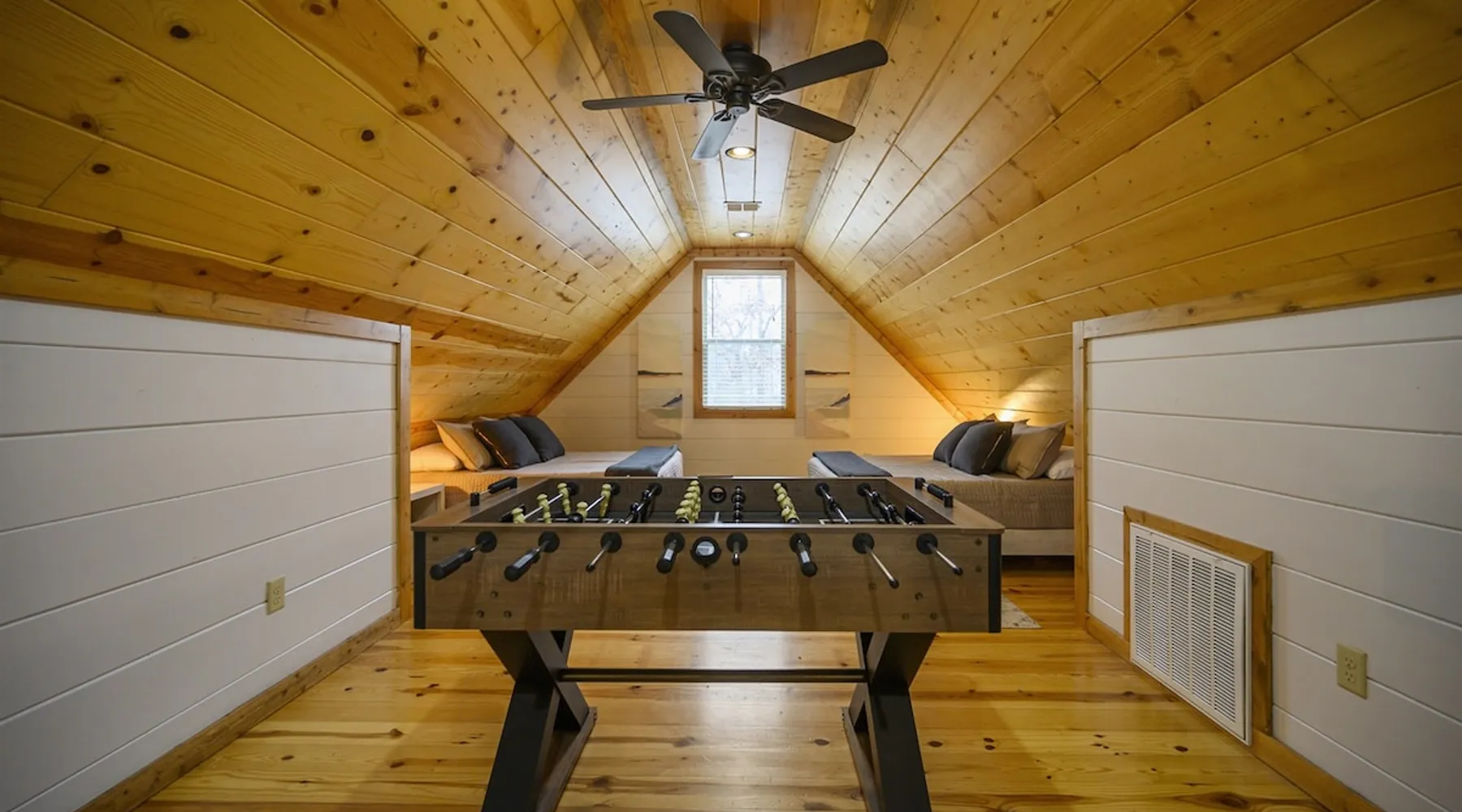 Escape to 🧇 Waffle Ridge (hosted by @pinpointstays), conveniently located right at the heart of Hochatown. With 1,800 square feet of spacious comfort, our cabin offers a delightful blend of tasteful modern finishes while keeping the personality of a cabin amongst nature. It serves as the perfect home base, no matter what you have planned during your stay here. Easy flat paved roads leading up to the cabin with a location that simply cannot be beaten! The space Don't forget to click the ❤️ in the upper right hand corner so you can easily refer back to this listing while you search for the perfect stay. As you step inside, you'll be greeted by a warm and inviting ambiance, where every detail has been carefully crafted to create an unforgettable experience. The cabin boasts two bedrooms, including a master en-suite full bathroom that provides a private sanctuary for relaxation. A spacious loft with 2 full sized beds adds an extra touch of versatility, ensuring ample space for everyone in your family or group. But it's not just the interior that will captivate your senses. Step outside, and you'll discover a world of outdoor wonders amongst our tall pine trees. Our cabin is a true haven for families, with a delightful child playground set, private hot tub, horseshoe pit, corn hole, hammocks, and a fire pit with swings. Embrace the spirit of fun and laughter as you indulge in these outdoor amenities, creating memories that will last a lifetime. Rainy days are no match for the excitement that awaits indoors. Challenge your friends and family to a thrilling game of foosball, load up a classic game in the arcade, or engage in friendly competition with an array of board games. There's never a dull moment here – the possibilities for entertainment are endless. Nestled in the heart of Hochatown, our cabin offers the perfect balance of tranquility and convenience. Whether you're seeking adventure or simply yearning for a peaceful getaway, you'll find it all within reach. Explore the natural wonders of the surrounding area, immerse yourself in the local culture, or savor the exquisite cuisine at nearby restaurants. All within minutes away! At our cabin, your comfort is our top priority. Unwind in the cozy living spaces, create culinary delights in the fully equipped kitchen, and relish in the joy of togetherness on the spacious deck. Our cabin effortlessly combines the comforts of home with the allure of an enchanting retreat. ❤️ FAMILY FRIENDLY ▪️ Crib/pack and play ▪️ Baby gate ▪️ Foosball table ▪️ Roku on all TVs 💤 SLEEPING ARRANGEMENT 🛏 Bedroom 1: King ensuite with full bathroom (sleeps 2) - main floor 🛏 Bedroom 2: King bed (sleeps 2) - main floor 🛏 Loft: 2 Full beds (sleeps 4) -upstairs 🚽 BATHROOMS 🚿 Bathroom 1: Full bathroom w/ stand-up shower. Located inside Bedroom 1 on main level 🚿 Bathroom 2: Full bathroom w/ stand-up shower and tub combination. Located in hallway on main level 🧑🍳 KITCHEN AND DINING ▪️ We welcome you to fully utilize all the stainless steel appliances (stove with oven, microwave, dishwasher, fridge) to fix yourself a meal ▪️ All types of cookware and utensils are thoughtfully provided to ensure you’re well prepared ahead for any recipes. Basic spices are also available ▪️ Wake up and start your morning the right way with a dedicated coffee bar with a Keurig duo (K-Cup pods, ground coffee, and tea provided) ▪️ Brand new granite countertops giving you enough space to stay in for the night to cook a family dinner ▪️ Spacious indoor and outdoor dining tables comfortably seats 6 each, so no one is left out! ▪️ Outdoor propane gas grill ✨ AMENITIES AND ENTERTAINMENT ▪️ Fast, reliable, and free wifi ▪️ We love providing all guests with paper towels, dish soap, dishwasher pods, trash bags, toilet paper, hand soap, laundry pods, and many more consumables ▪️ Washer & dryer with laundry pods provided ▪️ Feeling like you need a yoga session or want to do a quick workout? Get active with our yoga mats ▪️ Fresh bath and bed linens are provided (including hot tub towels) - save space in your luggage as you will not need to pack them! Beach towels also provided for the hot tub ▪️ A bit in the mood to be competitive? Start up a board game with the family! ▪️ Are you a fan of fireplaces? The fireplace can be enjoyed from Oct to Mar. Nothing beats getting toasty while relaxing with a bottle of wine and a good ole movie to unwind from a full day of fun 🚗 PARKING ▪️ Our lot is huge! It can fit more than 4+ passenger cars, RVs, ATVs, and even big trailer with boats Guest access ✨ You will have private use to the entire cabin and all its amenities during your stay ❤️ Other things to note The drive to this cabin is on all flat and paved roads. No hilly, windy, and curvy mountain roads! Please remember you're staying in a home, not a hotel. Please treat the space with respect. If any problems arise, we will do our best to take action as soon as possible. Guests are required to sign a Rental Agreement and upload a copy of their ID upon booking. (Airbnb policy: https://www.airbnb.com/help/article/465). In addition, a security deposit hold (not a charge) of $500 is required and will be automatically reserved for the booking. The automatic reserve is conducted by putting a hold on the Guest's credit card, exactly 2 day(s) prior to the arrival date. (Airbnb policy: https://www.airbnb.com/help/article/140)