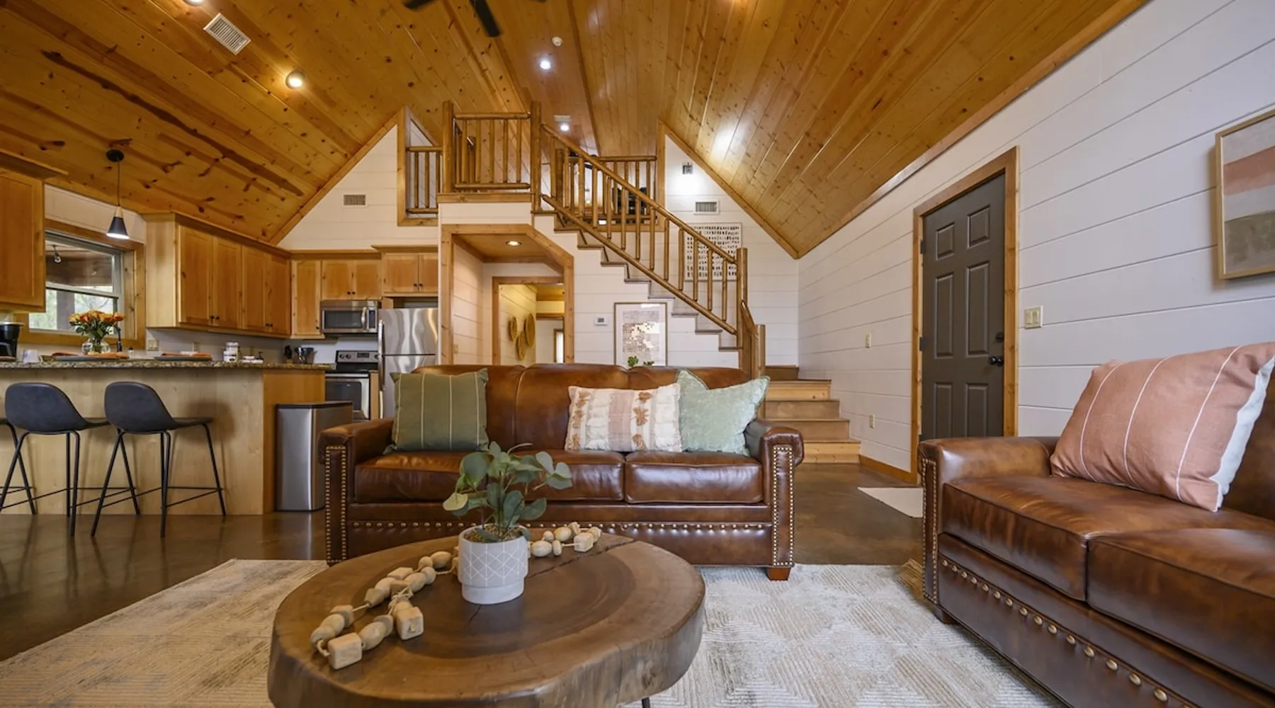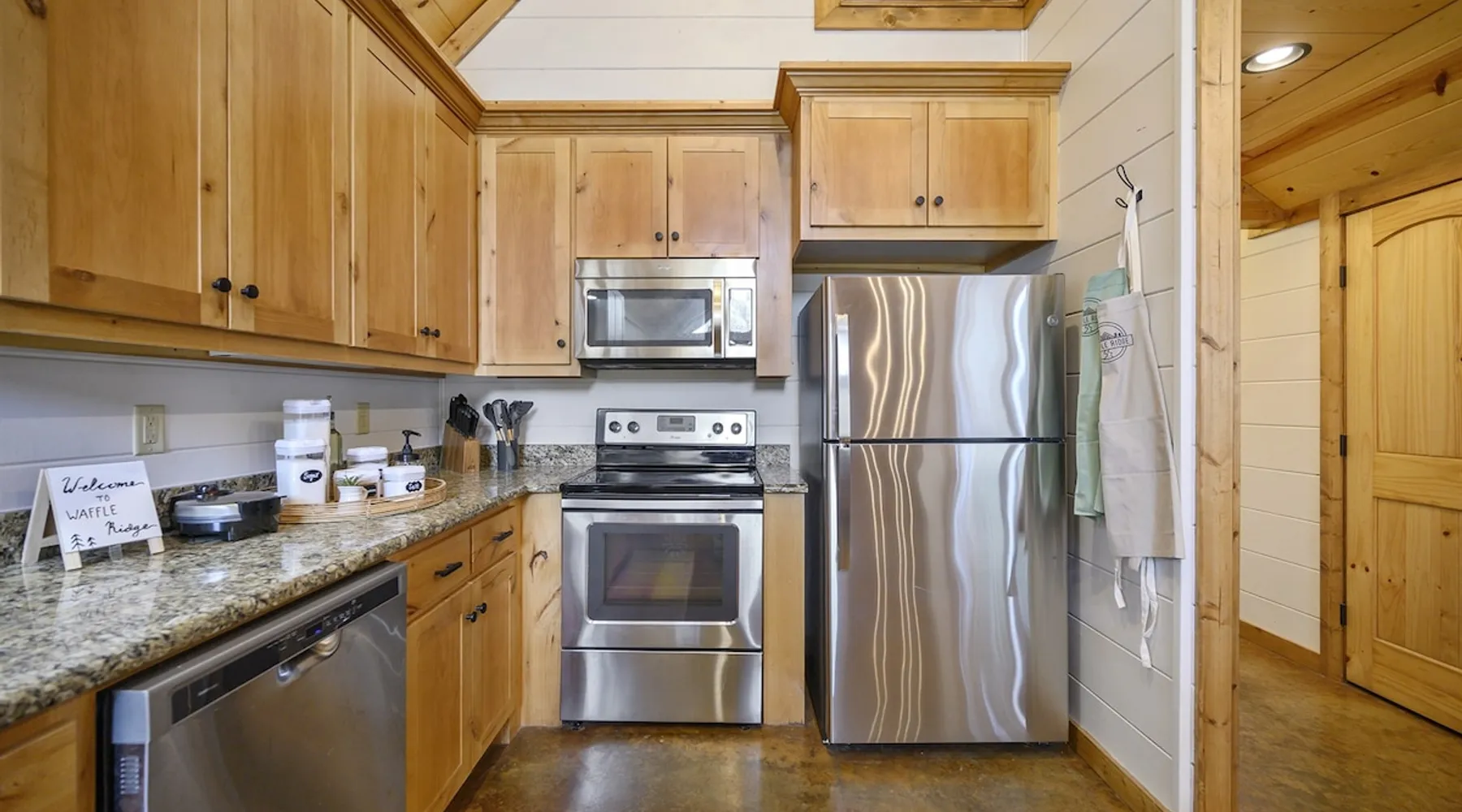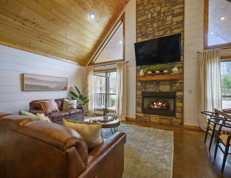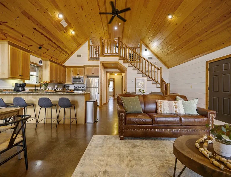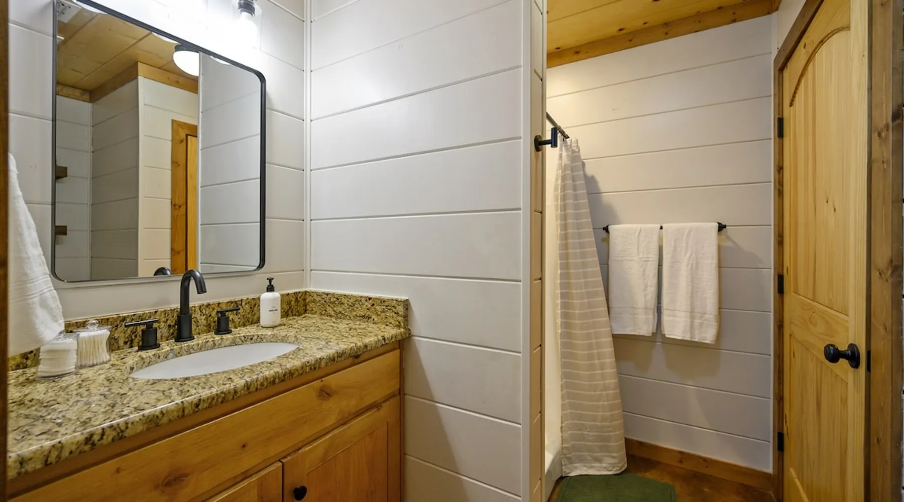 Escape to 🧇 Waffle Ridge (hosted by @pinpointstays), conveniently located right at the heart of Hochatown. With 1,800 square feet of spacious comfort, our cabin offers a delightful blend of tasteful modern finishes while keeping the personality of a cabin amongst nature. It serves as the perfect home base, no matter what you have planned during your stay here. Easy flat paved roads leading up to the cabin with a location that simply cannot be beaten! The space Don't forget to click the ❤️ in the upper right hand corner so you can easily refer back to this listing while you search for the perfect stay. As you step inside, you'll be greeted by a warm and inviting ambiance, where every detail has been carefully crafted to create an unforgettable experience. The cabin boasts two bedrooms, including a master en-suite full bathroom that provides a private sanctuary for relaxation. A spacious loft with 2 full sized beds adds an extra touch of versatility, ensuring ample space for everyone in your family or group. But it's not just the interior that will captivate your senses. Step outside, and you'll discover a world of outdoor wonders amongst our tall pine trees. Our cabin is a true haven for families, with a delightful child playground set, private hot tub, horseshoe pit, corn hole, hammocks, and a fire pit with swings. Embrace the spirit of fun and laughter as you indulge in these outdoor amenities, creating memories that will last a lifetime. Rainy days are no match for the excitement that awaits indoors. Challenge your friends and family to a thrilling game of foosball, load up a classic game in the arcade, or engage in friendly competition with an array of board games. There's never a dull moment here – the possibilities for entertainment are endless. Nestled in the heart of Hochatown, our cabin offers the perfect balance of tranquility and convenience. Whether you're seeking adventure or simply yearning for a peaceful getaway, you'll find it all within reach. Explore the natural wonders of the surrounding area, immerse yourself in the local culture, or savor the exquisite cuisine at nearby restaurants. All within minutes away! At our cabin, your comfort is our top priority. Unwind in the cozy living spaces, create culinary delights in the fully equipped kitchen, and relish in the joy of togetherness on the spacious deck. Our cabin effortlessly combines the comforts of home with the allure of an enchanting retreat. ❤️ FAMILY FRIENDLY ▪️ Crib/pack and play ▪️ Baby gate ▪️ Foosball table ▪️ Roku on all TVs 💤 SLEEPING ARRANGEMENT 🛏 Bedroom 1: King ensuite with full bathroom (sleeps 2) - main floor 🛏 Bedroom 2: King bed (sleeps 2) - main floor 🛏 Loft: 2 Full beds (sleeps 4) -upstairs 🚽 BATHROOMS 🚿 Bathroom 1: Full bathroom w/ stand-up shower. Located inside Bedroom 1 on main level 🚿 Bathroom 2: Full bathroom w/ stand-up shower and tub combination. Located in hallway on main level 🧑🍳 KITCHEN AND DINING ▪️ We welcome you to fully utilize all the stainless steel appliances (stove with oven, microwave, dishwasher, fridge) to fix yourself a meal ▪️ All types of cookware and utensils are thoughtfully provided to ensure you’re well prepared ahead for any recipes. Basic spices are also available ▪️ Wake up and start your morning the right way with a dedicated coffee bar with a Keurig duo (K-Cup pods, ground coffee, and tea provided) ▪️ Brand new granite countertops giving you enough space to stay in for the night to cook a family dinner ▪️ Spacious indoor and outdoor dining tables comfortably seats 6 each, so no one is left out! ▪️ Outdoor propane gas grill ✨ AMENITIES AND ENTERTAINMENT ▪️ Fast, reliable, and free wifi ▪️ We love providing all guests with paper towels, dish soap, dishwasher pods, trash bags, toilet paper, hand soap, laundry pods, and many more consumables ▪️ Washer & dryer with laundry pods provided ▪️ Feeling like you need a yoga session or want to do a quick workout? Get active with our yoga mats ▪️ Fresh bath and bed linens are provided (including hot tub towels) - save space in your luggage as you will not need to pack them! Beach towels also provided for the hot tub ▪️ A bit in the mood to be competitive? Start up a board game with the family! ▪️ Are you a fan of fireplaces? The fireplace can be enjoyed from Oct to Mar. Nothing beats getting toasty while relaxing with a bottle of wine and a good ole movie to unwind from a full day of fun 🚗 PARKING ▪️ Our lot is huge! It can fit more than 4+ passenger cars, RVs, ATVs, and even big trailer with boats Guest access ✨ You will have private use to the entire cabin and all its amenities during your stay ❤️ Other things to note The drive to this cabin is on all flat and paved roads. No hilly, windy, and curvy mountain roads! Please remember you're staying in a home, not a hotel. Please treat the space with respect. If any problems arise, we will do our best to take action as soon as possible. Guests are required to sign a Rental Agreement and upload a copy of their ID upon booking. (Airbnb policy: https://www.airbnb.com/help/article/465). In addition, a security deposit hold (not a charge) of $500 is required and will be automatically reserved for the booking. The automatic reserve is conducted by putting a hold on the Guest's credit card, exactly 2 day(s) prior to the arrival date. (Airbnb policy: https://www.airbnb.com/help/article/140)