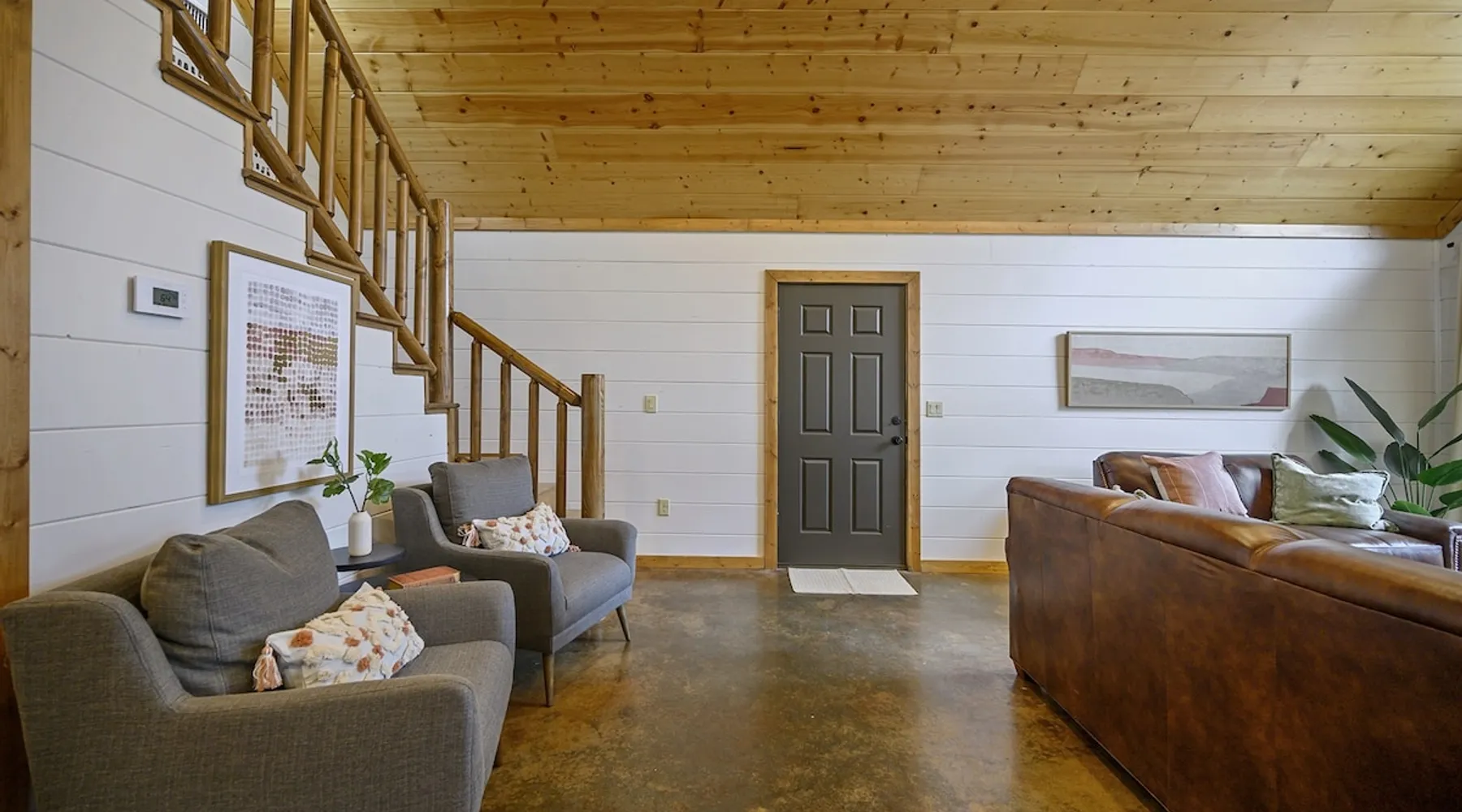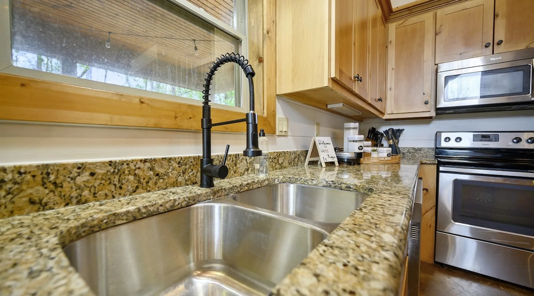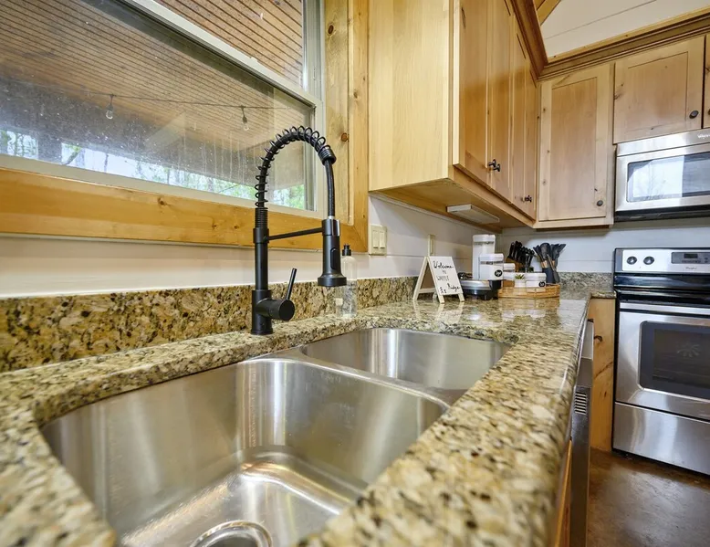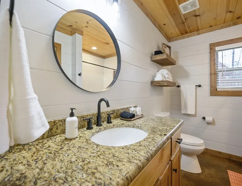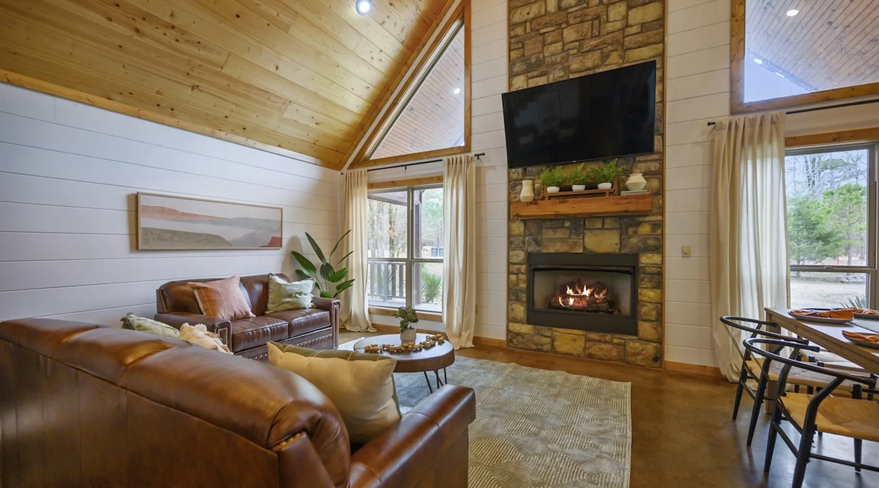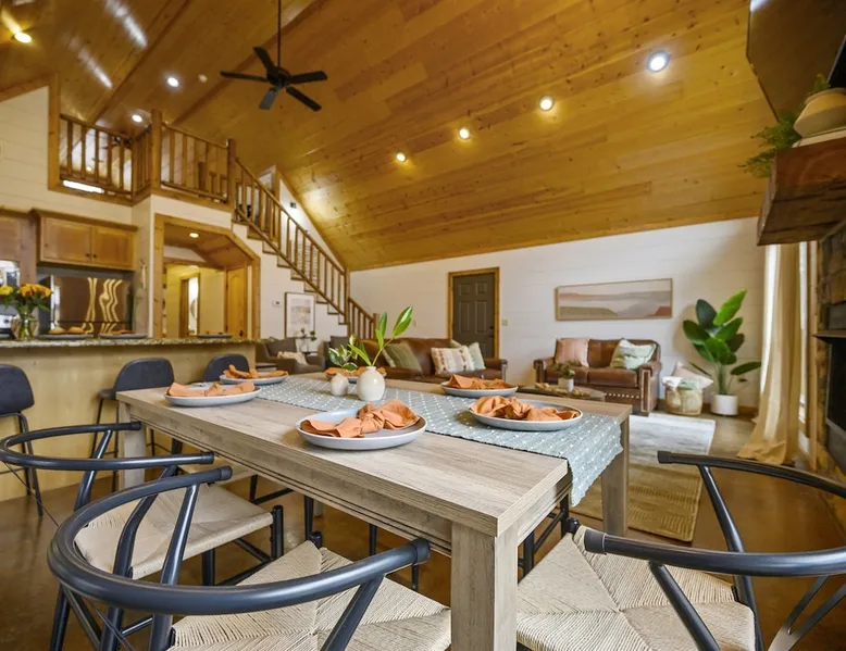 Escape to 🧇 Waffle Ridge (hosted by @pinpointstays), conveniently located right at the heart of Hochatown. With 1,800 square feet of spacious comfort, our cabin offers a delightful blend of tasteful modern finishes while keeping the personality of a cabin amongst nature. It serves as the perfect home base, no matter what you have planned during your stay here. Easy flat paved roads leading up to the cabin with a location that simply cannot be beaten! The space Don't forget to click the ❤️ in the upper right hand corner so you can easily refer back to this listing while you search for the perfect stay. As you step inside, you'll be greeted by a warm and inviting ambiance, where every detail has been carefully crafted to create an unforgettable experience. The cabin boasts two bedrooms, including a master en-suite full bathroom that provides a private sanctuary for relaxation. A spacious loft with 2 full sized beds adds an extra touch of versatility, ensuring ample space for everyone in your family or group. But it's not just the interior that will captivate your senses. Step outside, and you'll discover a world of outdoor wonders amongst our tall pine trees. Our cabin is a true haven for families, with a delightful child playground set, private hot tub, horseshoe pit, corn hole, hammocks, and a fire pit with swings. Embrace the spirit of fun and laughter as you indulge in these outdoor amenities, creating memories that will last a lifetime. Rainy days are no match for the excitement that awaits indoors. Challenge your friends and family to a thrilling game of foosball, load up a classic game in the arcade, or engage in friendly competition with an array of board games. There's never a dull moment here – the possibilities for entertainment are endless. Nestled in the heart of Hochatown, our cabin offers the perfect balance of tranquility and convenience. Whether you're seeking adventure or simply yearning for a peaceful getaway, you'll find it all within reach. Explore the natural wonders of the surrounding area, immerse yourself in the local culture, or savor the exquisite cuisine at nearby restaurants. All within minutes away! At our cabin, your comfort is our top priority. Unwind in the cozy living spaces, create culinary delights in the fully equipped kitchen, and relish in the joy of togetherness on the spacious deck. Our cabin effortlessly combines the comforts of home with the allure of an enchanting retreat. ❤️ FAMILY FRIENDLY ▪️ Crib/pack and play ▪️ Baby gate ▪️ Foosball table ▪️ Roku on all TVs 💤 SLEEPING ARRANGEMENT 🛏 Bedroom 1: King ensuite with full bathroom (sleeps 2) - main floor 🛏 Bedroom 2: King bed (sleeps 2) - main floor 🛏 Loft: 2 Full beds (sleeps 4) -upstairs 🚽 BATHROOMS 🚿 Bathroom 1: Full bathroom w/ stand-up shower. Located inside Bedroom 1 on main level 🚿 Bathroom 2: Full bathroom w/ stand-up shower and tub combination. Located in hallway on main level 🧑🍳 KITCHEN AND DINING ▪️ We welcome you to fully utilize all the stainless steel appliances (stove with oven, microwave, dishwasher, fridge) to fix yourself a meal ▪️ All types of cookware and utensils are thoughtfully provided to ensure you’re well prepared ahead for any recipes. Basic spices are also available ▪️ Wake up and start your morning the right way with a dedicated coffee bar with a Keurig duo (K-Cup pods, ground coffee, and tea provided) ▪️ Brand new granite countertops giving you enough space to stay in for the night to cook a family dinner ▪️ Spacious indoor and outdoor dining tables comfortably seats 6 each, so no one is left out! ▪️ Outdoor propane gas grill ✨ AMENITIES AND ENTERTAINMENT ▪️ Fast, reliable, and free wifi ▪️ We love providing all guests with paper towels, dish soap, dishwasher pods, trash bags, toilet paper, hand soap, laundry pods, and many more consumables ▪️ Washer & dryer with laundry pods provided ▪️ Feeling like you need a yoga session or want to do a quick workout? Get active with our yoga mats ▪️ Fresh bath and bed linens are provided (including hot tub towels) - save space in your luggage as you will not need to pack them! Beach towels also provided for the hot tub ▪️ A bit in the mood to be competitive? Start up a board game with the family! ▪️ Are you a fan of fireplaces? The fireplace can be enjoyed from Oct to Mar. Nothing beats getting toasty while relaxing with a bottle of wine and a good ole movie to unwind from a full day of fun 🚗 PARKING ▪️ Our lot is huge! It can fit more than 4+ passenger cars, RVs, ATVs, and even big trailer with boats Guest access ✨ You will have private use to the entire cabin and all its amenities during your stay ❤️ Other things to note The drive to this cabin is on all flat and paved roads. No hilly, windy, and curvy mountain roads! Please remember you're staying in a home, not a hotel. Please treat the space with respect. If any problems arise, we will do our best to take action as soon as possible. Guests are required to sign a Rental Agreement and upload a copy of their ID upon booking. (Airbnb policy: https://www.airbnb.com/help/article/465). In addition, a security deposit hold (not a charge) of $500 is required and will be automatically reserved for the booking. The automatic reserve is conducted by putting a hold on the Guest's credit card, exactly 2 day(s) prior to the arrival date. (Airbnb policy: https://www.airbnb.com/help/article/140)