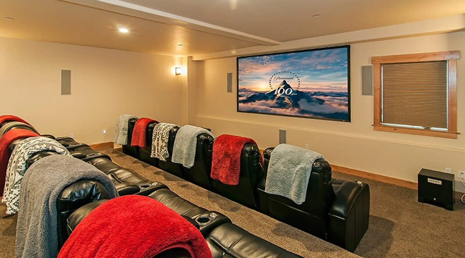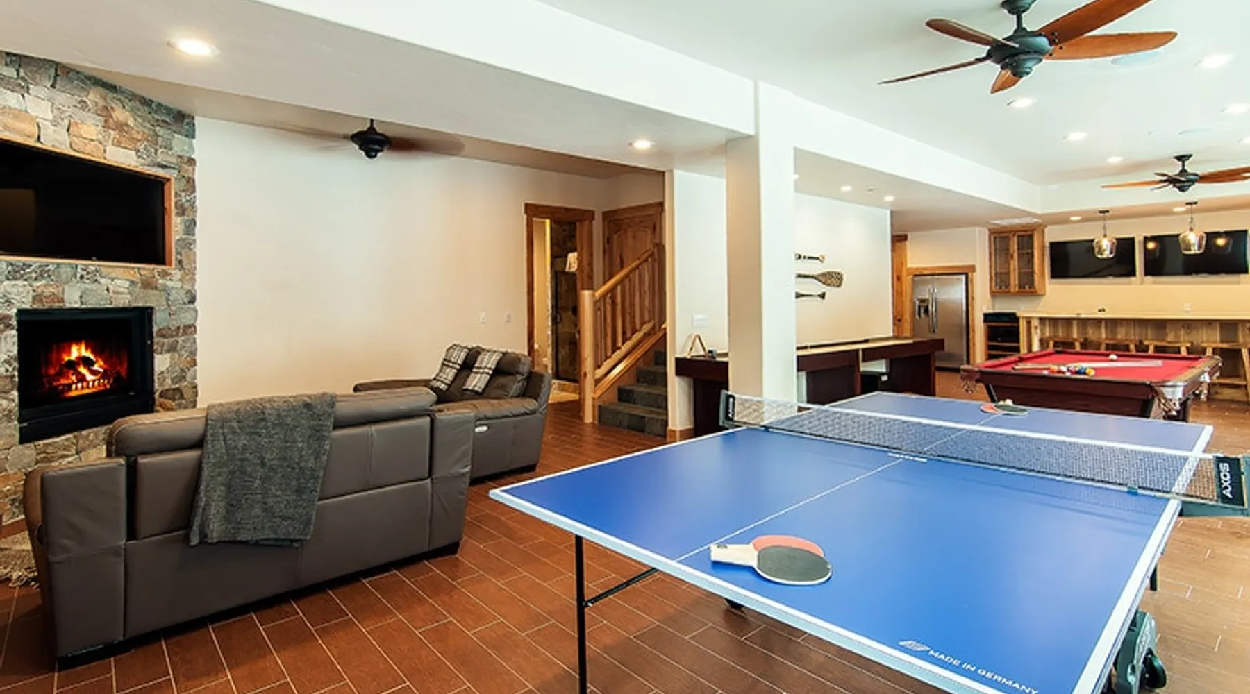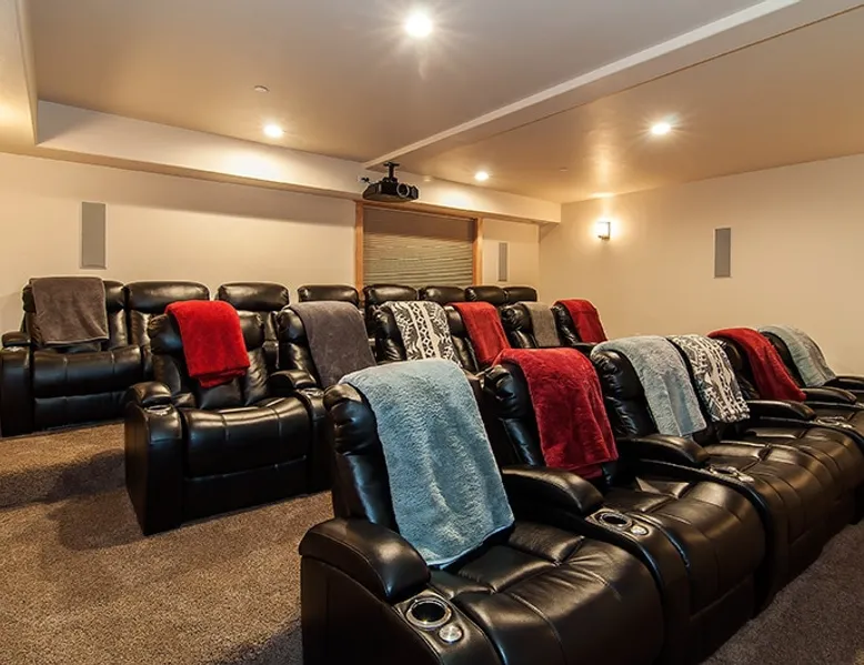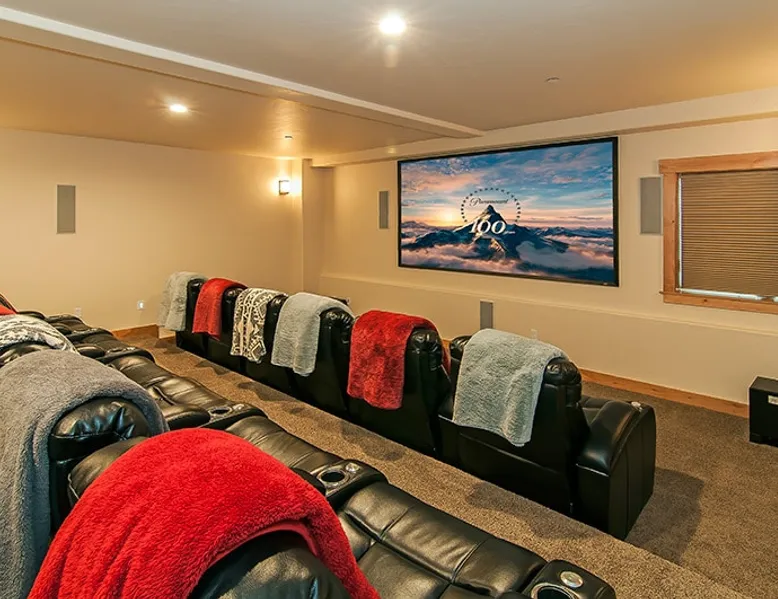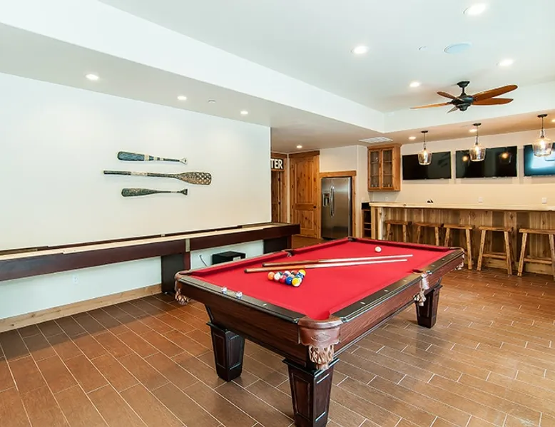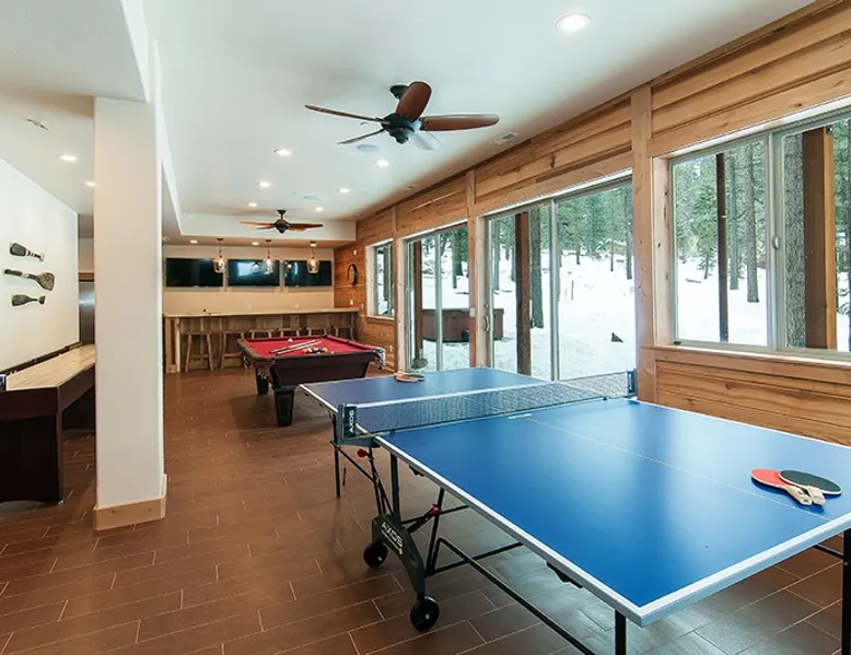Permit #332882...14 adults allowed but kids under 13 do not count Brand new Luxury Estate a short walk to the Heavenly CA Ski Lodge. Top of the line everything throughout. Rooftop deck, Huge living room with open floor plan. Large game room with Ping pong, Pool table, Shuffleboard, Foosball, bar. Movie Theater.. The space Permit #332882... 7 bedroom/6.5 bath Heavenly Estate a short couple blocks from Heavenly California Ski Lodge. This large 5700 sq. ft Estate features a huge game room with Ping pong, Foosball, Pool Table, Shuffleboard. Large Flat Screen TV above Fireplace with comfortable sofas. Bar with bar chairs, two large Flat Screen TVs. Game room connects to Movie Theater with 120 inch HD Screen and 12 personal Theater seats. Main living room has huge vaulted ceilings with forest and Heavenly Slope views. Sectional sofa in front of oversized rock wall fireplace, large TV set above Fireplace. Huge dining table from Restoration Hardware with comfortable chairs. Bar stools surround large kitchen island with all top of the line appliances, granite, alder cabinetry. This main living room connects to a covered outdoor area with dining table, bar stools, Fireplace. This outdoor deck has an additional staircase that takes you to a huge outdoor rooftop deck with modern wicker outdoor furniture, dining table, all set in front of a fireplace. 360 degree views, half of the view looks at the lake and the other half looks directly at the face of the slopes its so close you can see the Gondolas going up the mountain. Bedrooms are spread out on the main entry level and top floor. Bottom floor is the game room/movie theater. All bedrooms comfortably furnished with top of the line bedding. All bathrooms have high end finishes, granite, marble and tile. House is perfectly located within a short walk of the Heavenly California Ski Lodge and less than 1 miles to the downtown casinos. BEDROOM LAYOUT: 2nd Floor - (MAIN entrance level). Bedroom 1 - King Bedroom 2 - King Bedroom 3 - 2 Queens 3rd Floor (Connected to Main living room/Kitchen) Bedroom 4 - King Bedroom 5 - King Bedroom 6 - 2 Queens Bedroom 7 - Queen and Full Guest access All areas accessible in house. Registration Details 332882