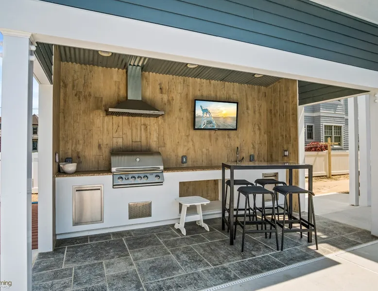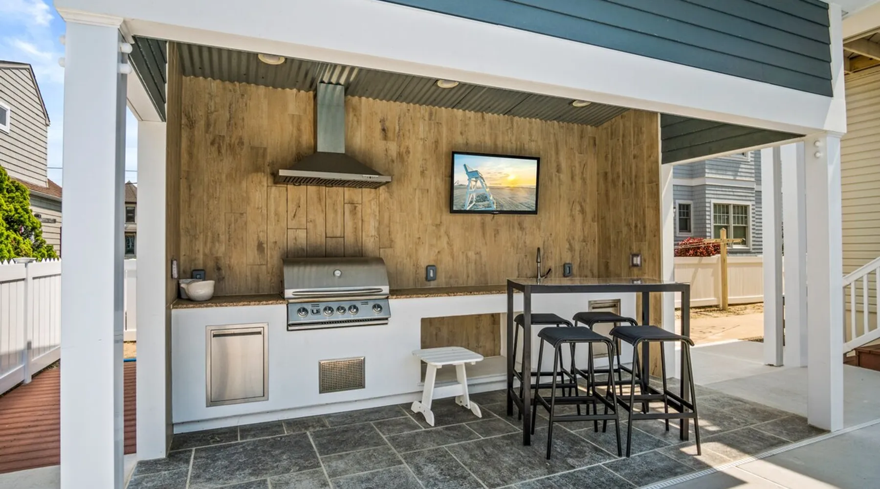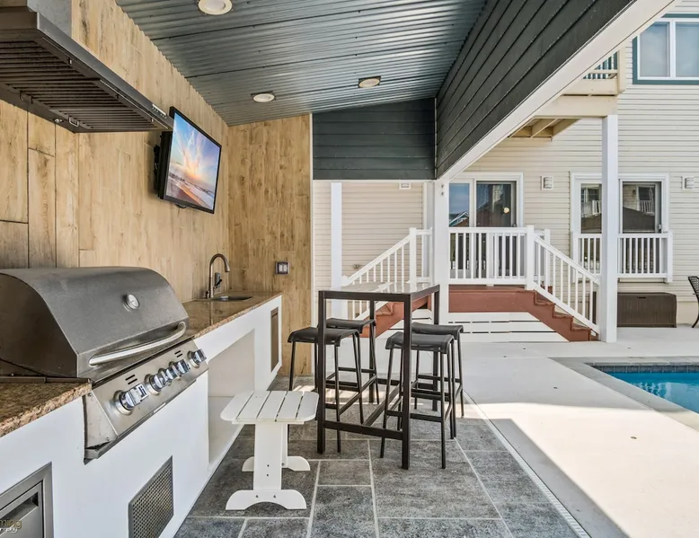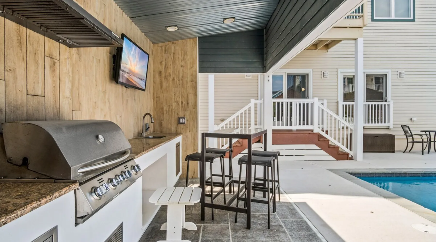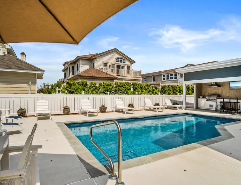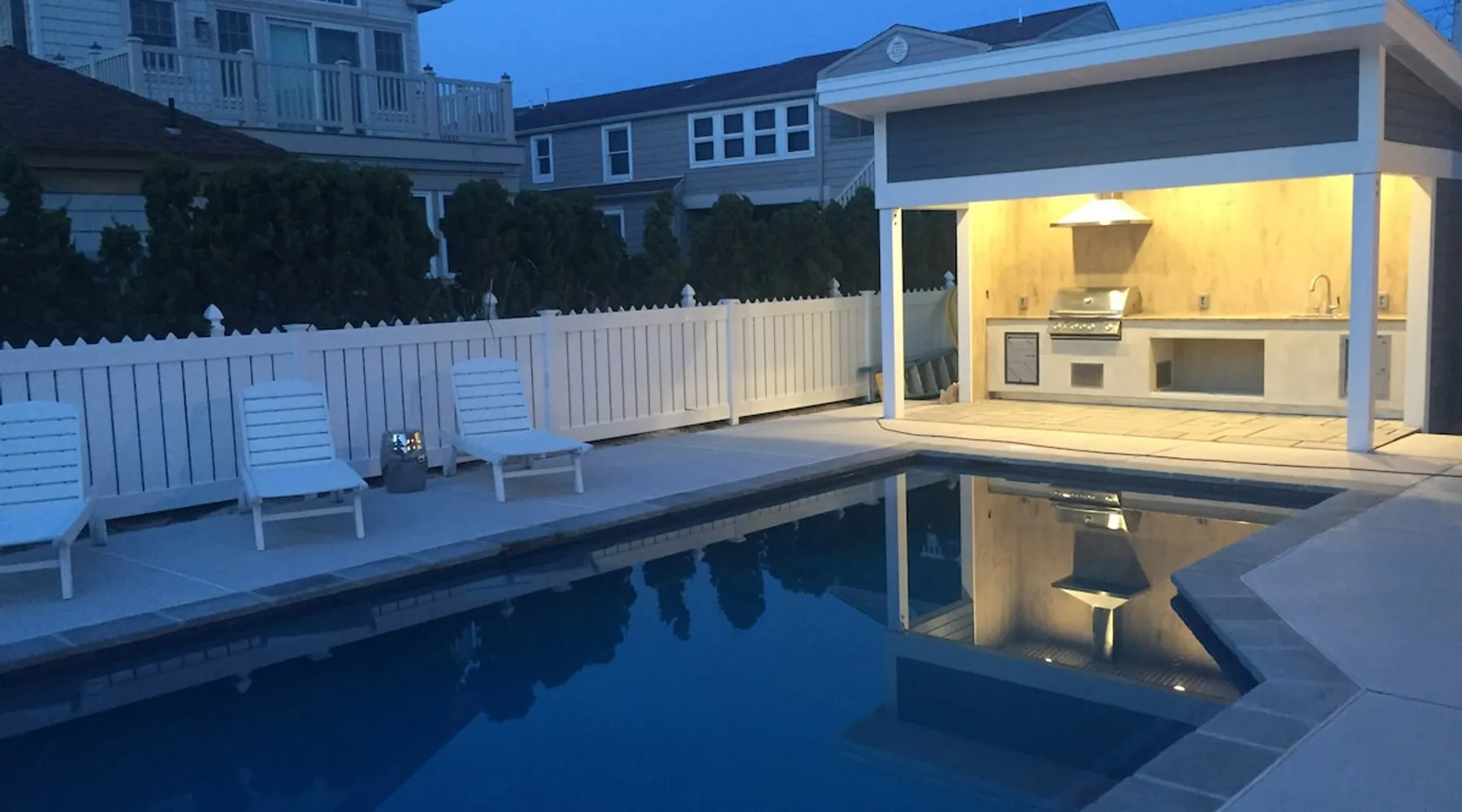 5th house from the finest beach in Stone Harbor, this lovely 5 bedroom, 3.5 bath home ("Villa Char Stone Harbor") is a short stroll to downtown. We added a cabana with outdoor TV & grill as well as a fabulous heated pool in May 2017. Walk to the beach, walk to town, you'll love it ! Other things to note Between Memorial Day Weekend and Labor Day Weekend we require a 7 night minimum (weekly rental).