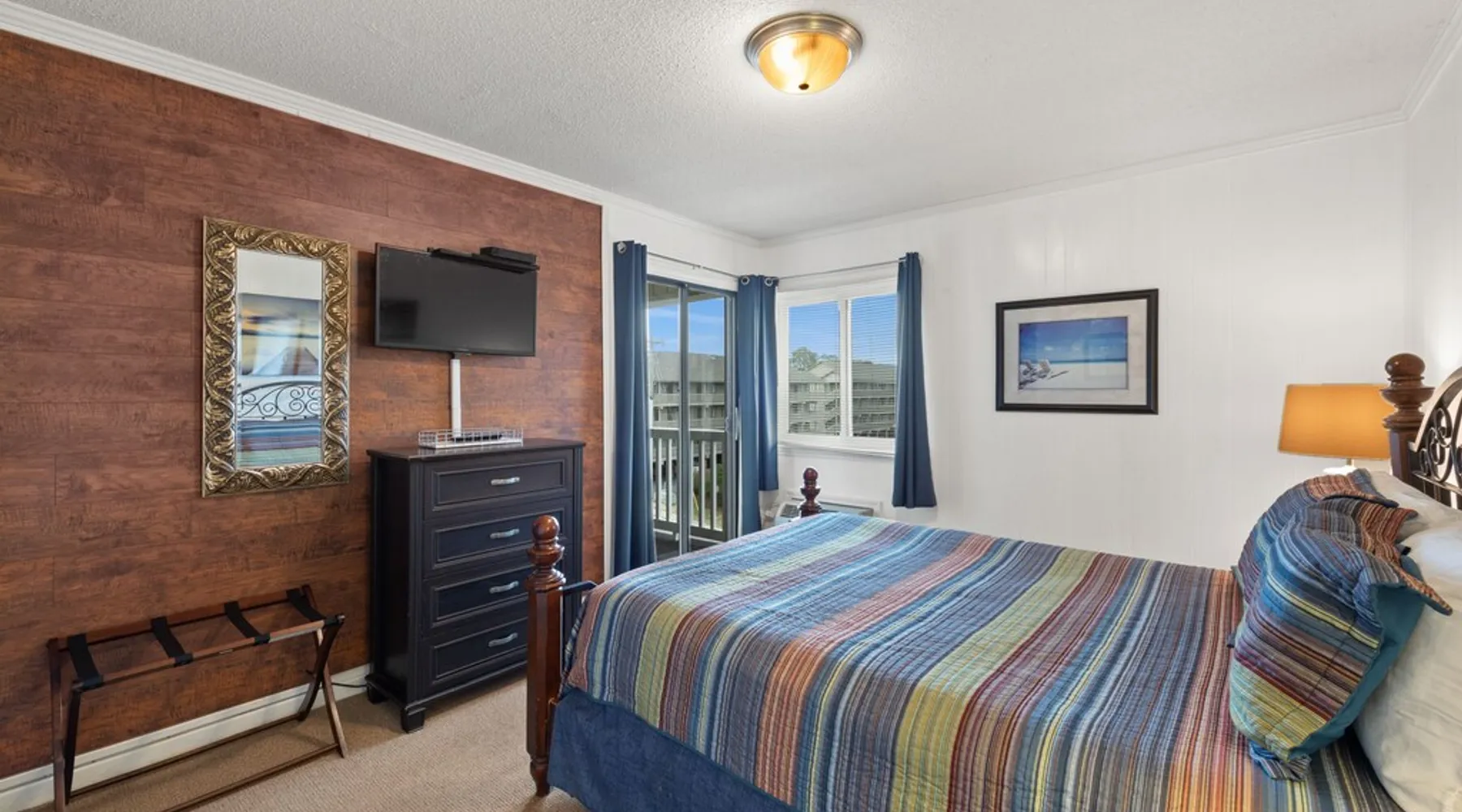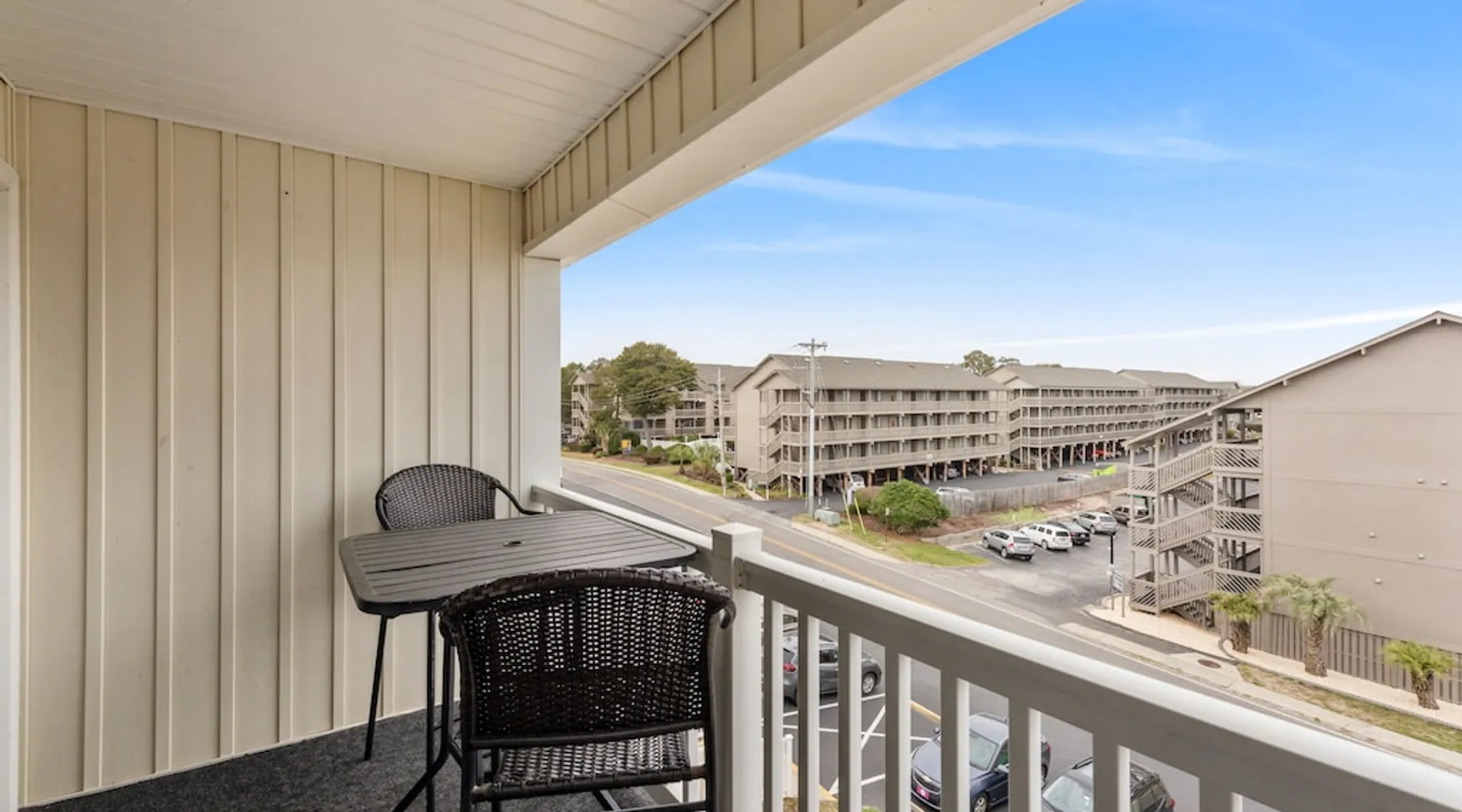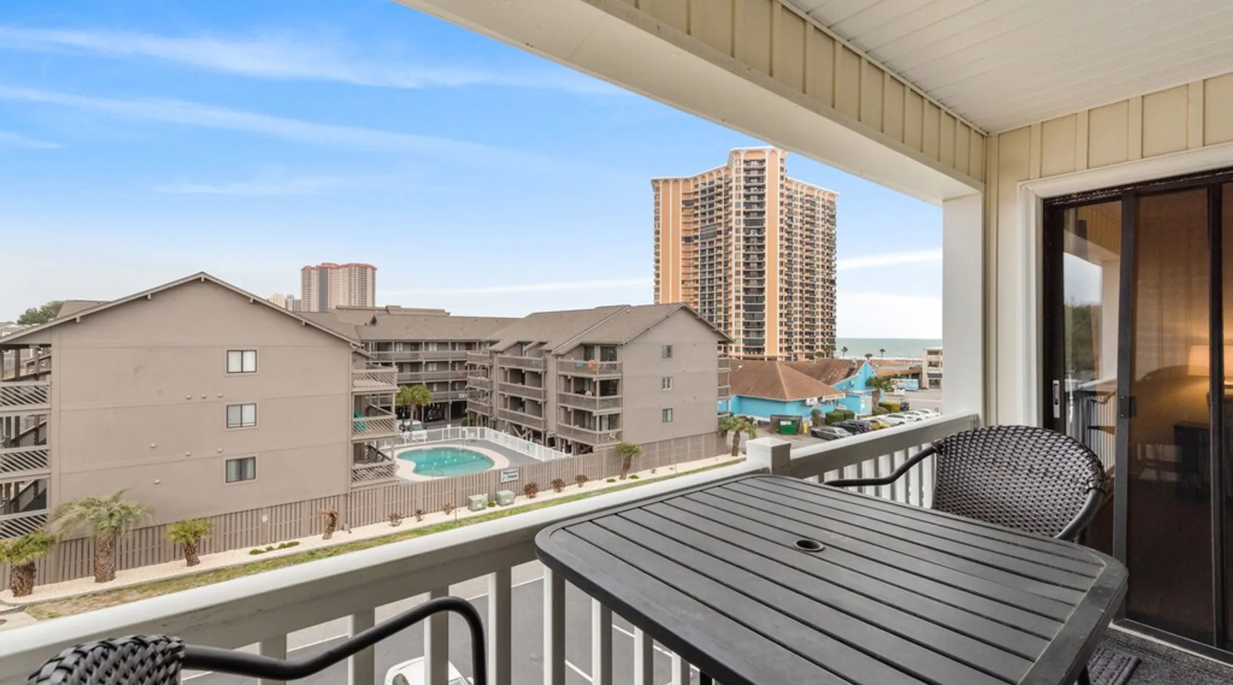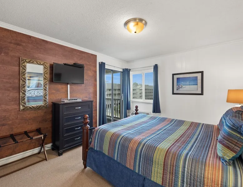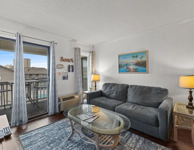 This 2bd/2ba 3rd floor condo (no elevator) is conveniently located directly across the street from the beach and can accommodate 8 with 1 queen in the master bedroom, 2 sets of twin bunk beds in the 2nd bedroom and a sleeper sofa in the living room. This adorable beach condo has everything you need for a great, affordable, beach vacation. There is a fully equipped kitchen, tv's in both bedrooms as well as the living room, private balcony with ocean view and coin operated laundry onsite. You will have all the luxuries of home while on vacation at the beach. Unit also comes with 2 parking passes and free Wi-Fi! A Place At The Beach V is located on Shore Drive on the north end of Myrtle Beach and is your home away from home. The condominium building is just a short walk to the beach, Apache Pier and Ocean Annie's. The community features an outdoor, BBQ Area w/ charcoal grills and picnic tables and is within close proximity to all the attractions, dining & shopping that North Myrtle Beach and Myrtle Beach have to offer. Free Fun Included Every Day! To enhance your vacation experience, North Beach Realty includes Xplorie, which means you get free admissions to some of the most popular attractions everyday of your stay!! NO MOTORCYCLES, BOATS, RV'S, GOLF CARTS OR TRAILERS ALLOWED ONSITE! WE DO OFFER FREE PARKING AT OUR LOCAL RENTAL OFFICE IF YOU PLAN TO BRING A MOTORCYCLES, BOAT, RV, GOLF CART, TRAILER AND/OR EXCEED THE NUMBER OF VEHICLES PERMITTED PER UNIT. PARK AT YOUR OWN RISK. NO SMOKING IN UNIT OR ON BALCONY! NO PETS! 25 YEAR AGE REQUIRMENT! FOR ALL NON-FAMILY GROUPS, EVERYONE MUST MEET THIS AGE REQUIRMENT AT THE TIME OF CHECK-IN!