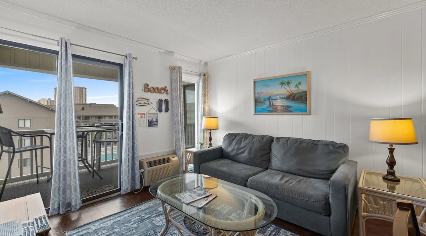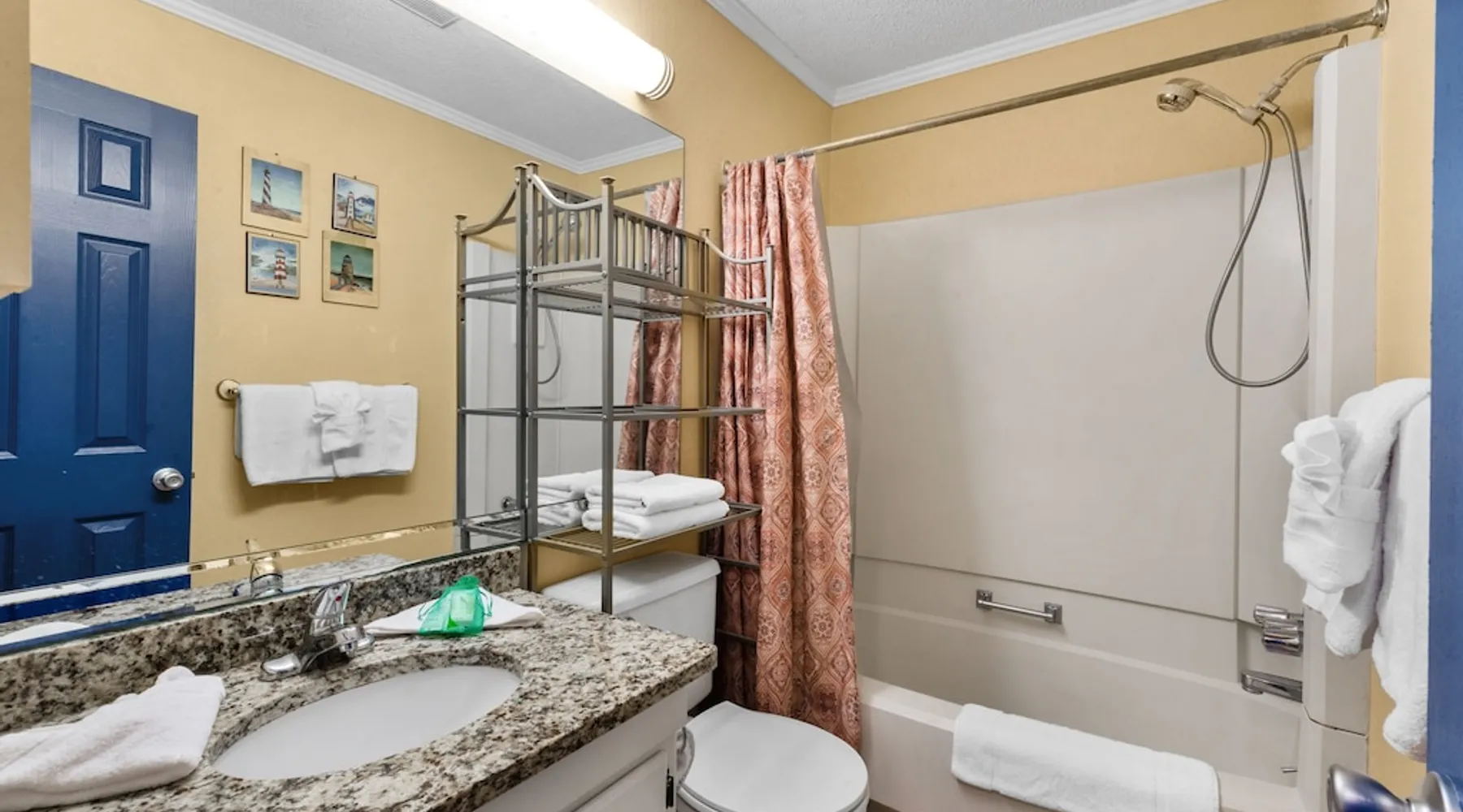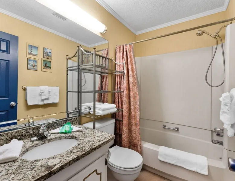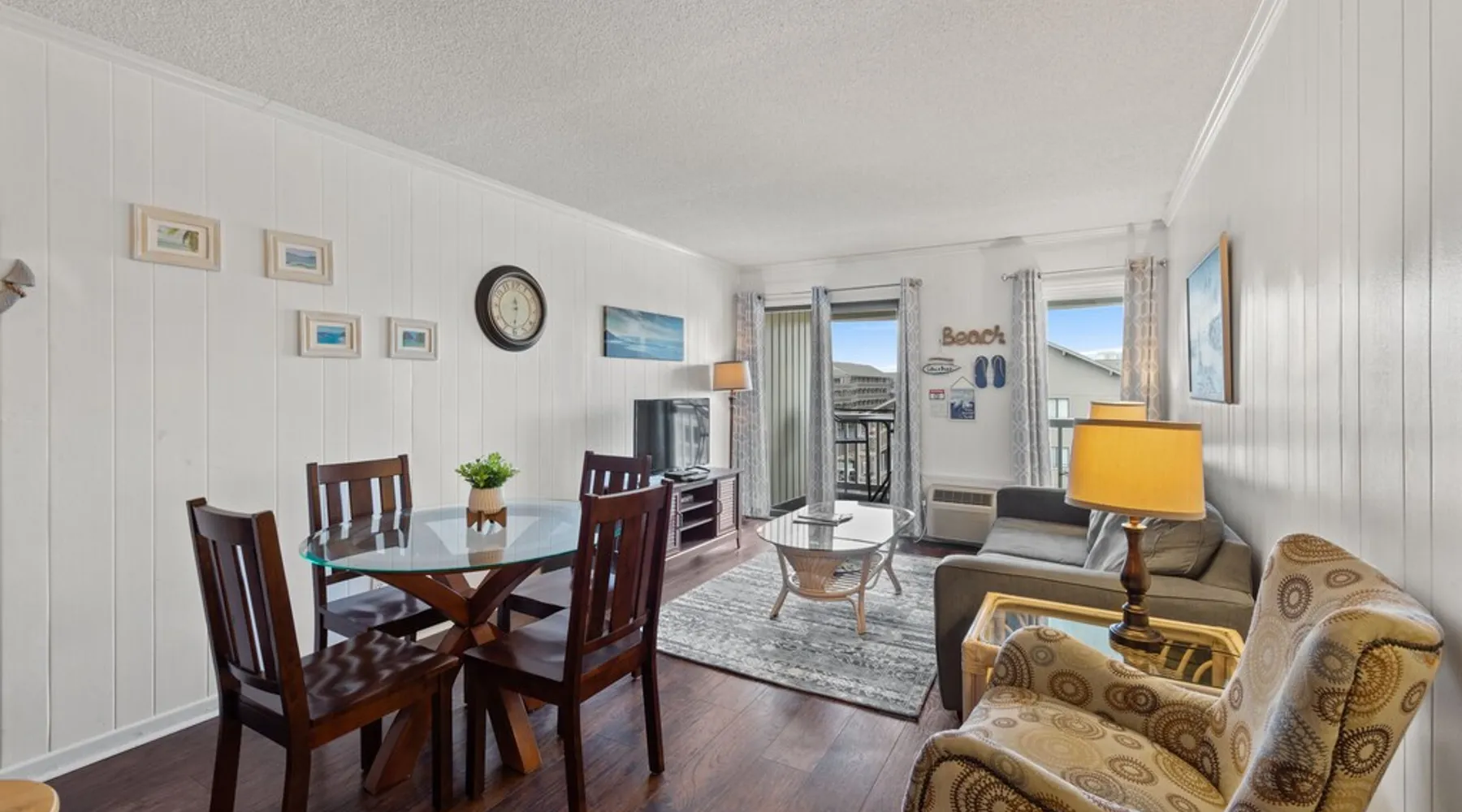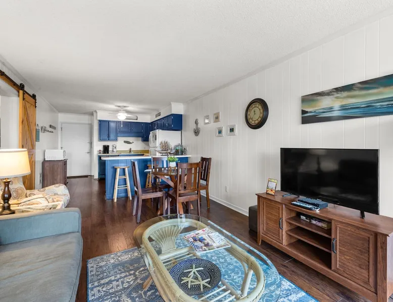 This 2bd/2ba 3rd floor condo (no elevator) is conveniently located directly across the street from the beach and can accommodate 8 with 1 queen in the master bedroom, 2 sets of twin bunk beds in the 2nd bedroom and a sleeper sofa in the living room. This adorable beach condo has everything you need for a great, affordable, beach vacation. There is a fully equipped kitchen, tv's in both bedrooms as well as the living room, private balcony with ocean view and coin operated laundry onsite. You will have all the luxuries of home while on vacation at the beach. Unit also comes with 2 parking passes and free Wi-Fi! A Place At The Beach V is located on Shore Drive on the north end of Myrtle Beach and is your home away from home. The condominium building is just a short walk to the beach, Apache Pier and Ocean Annie's. The community features an outdoor, BBQ Area w/ charcoal grills and picnic tables and is within close proximity to all the attractions, dining & shopping that North Myrtle Beach and Myrtle Beach have to offer. Free Fun Included Every Day! To enhance your vacation experience, North Beach Realty includes Xplorie, which means you get free admissions to some of the most popular attractions everyday of your stay!! NO MOTORCYCLES, BOATS, RV'S, GOLF CARTS OR TRAILERS ALLOWED ONSITE! WE DO OFFER FREE PARKING AT OUR LOCAL RENTAL OFFICE IF YOU PLAN TO BRING A MOTORCYCLES, BOAT, RV, GOLF CART, TRAILER AND/OR EXCEED THE NUMBER OF VEHICLES PERMITTED PER UNIT. PARK AT YOUR OWN RISK. NO SMOKING IN UNIT OR ON BALCONY! NO PETS! 25 YEAR AGE REQUIRMENT! FOR ALL NON-FAMILY GROUPS, EVERYONE MUST MEET THIS AGE REQUIRMENT AT THE TIME OF CHECK-IN!