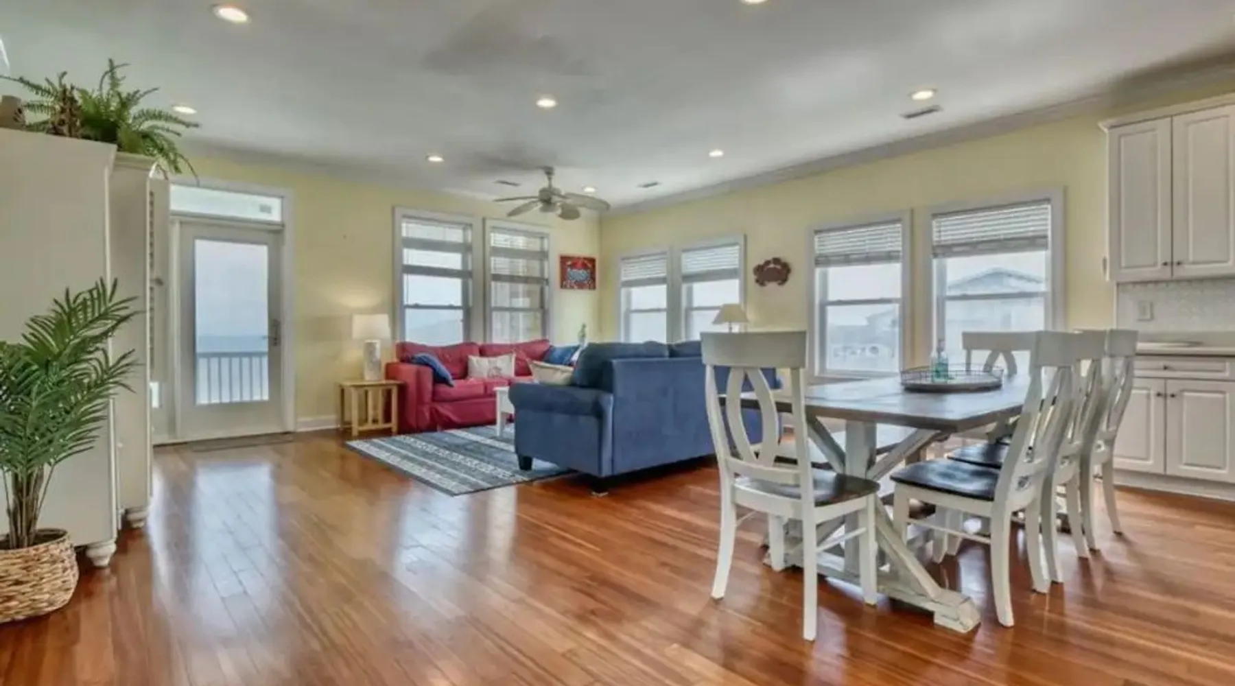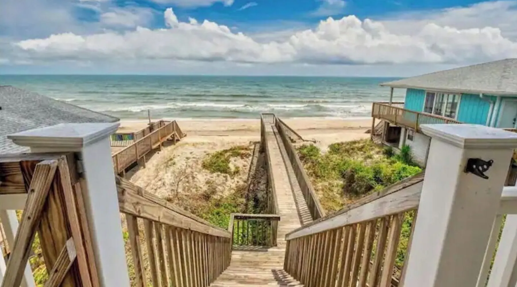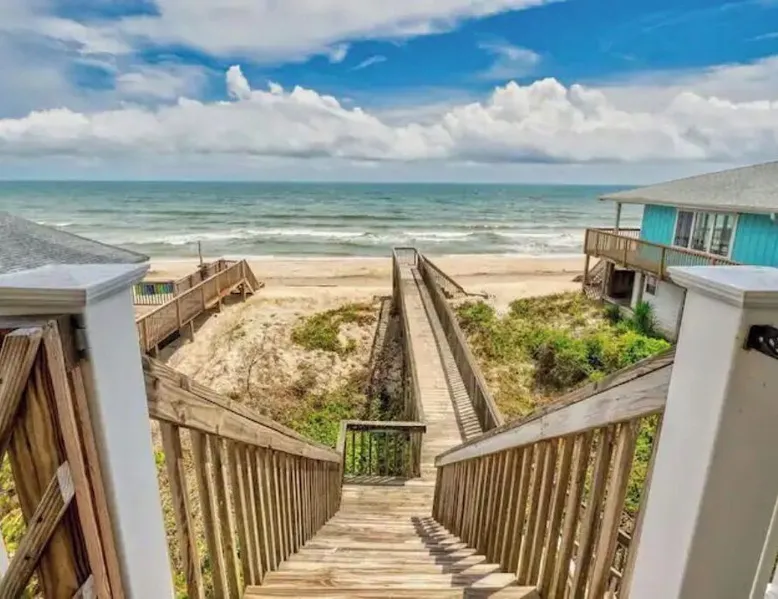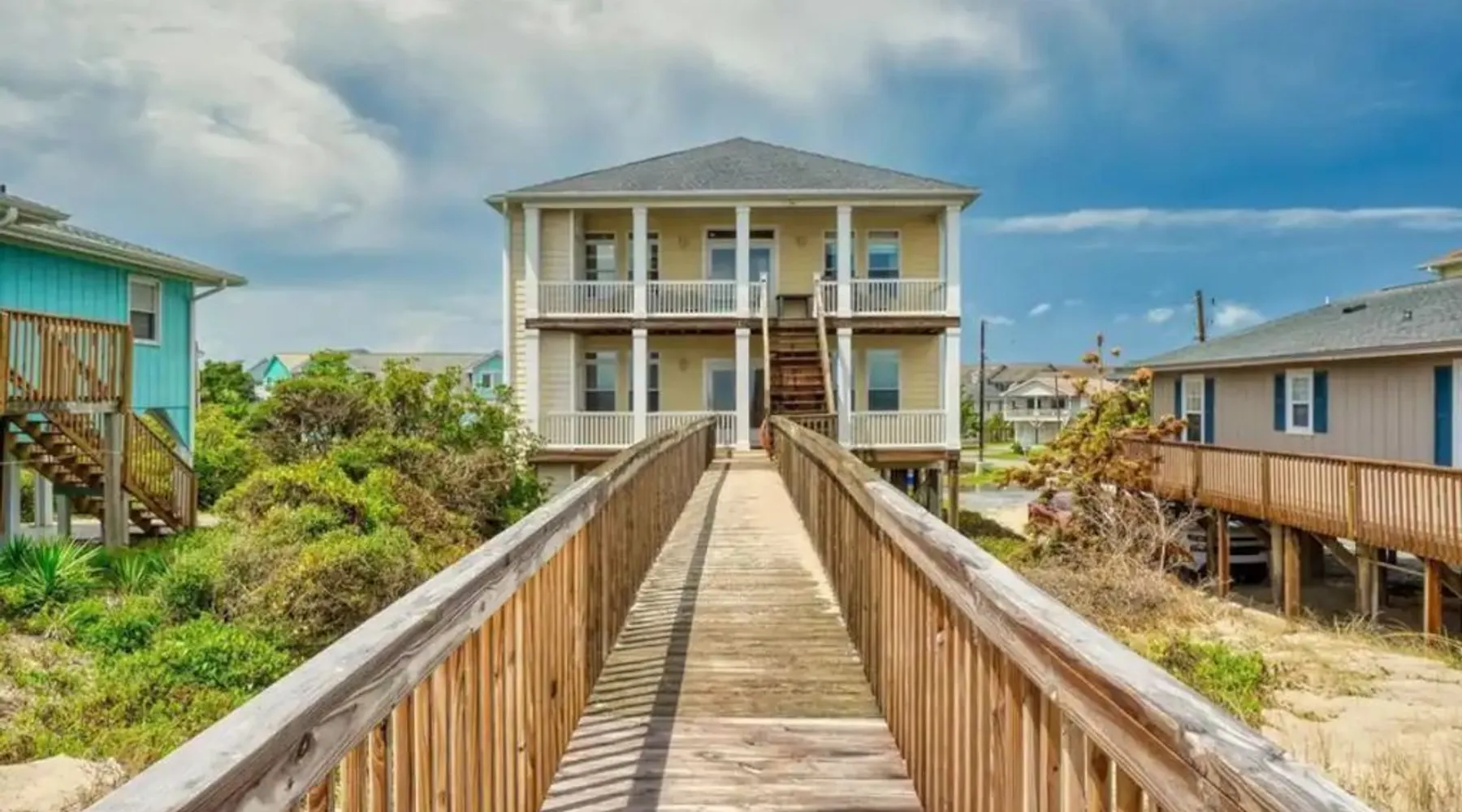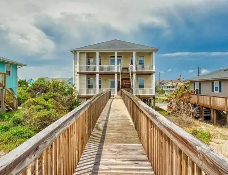 Ocean Front Family Beach Home. Start your day with a heavenly sun rise. Watch for dolphins as you build your sand castle out your back door. Located on a quite street off the main road. Walk the beach or quite street to surf city restaurants.