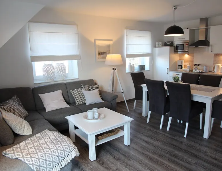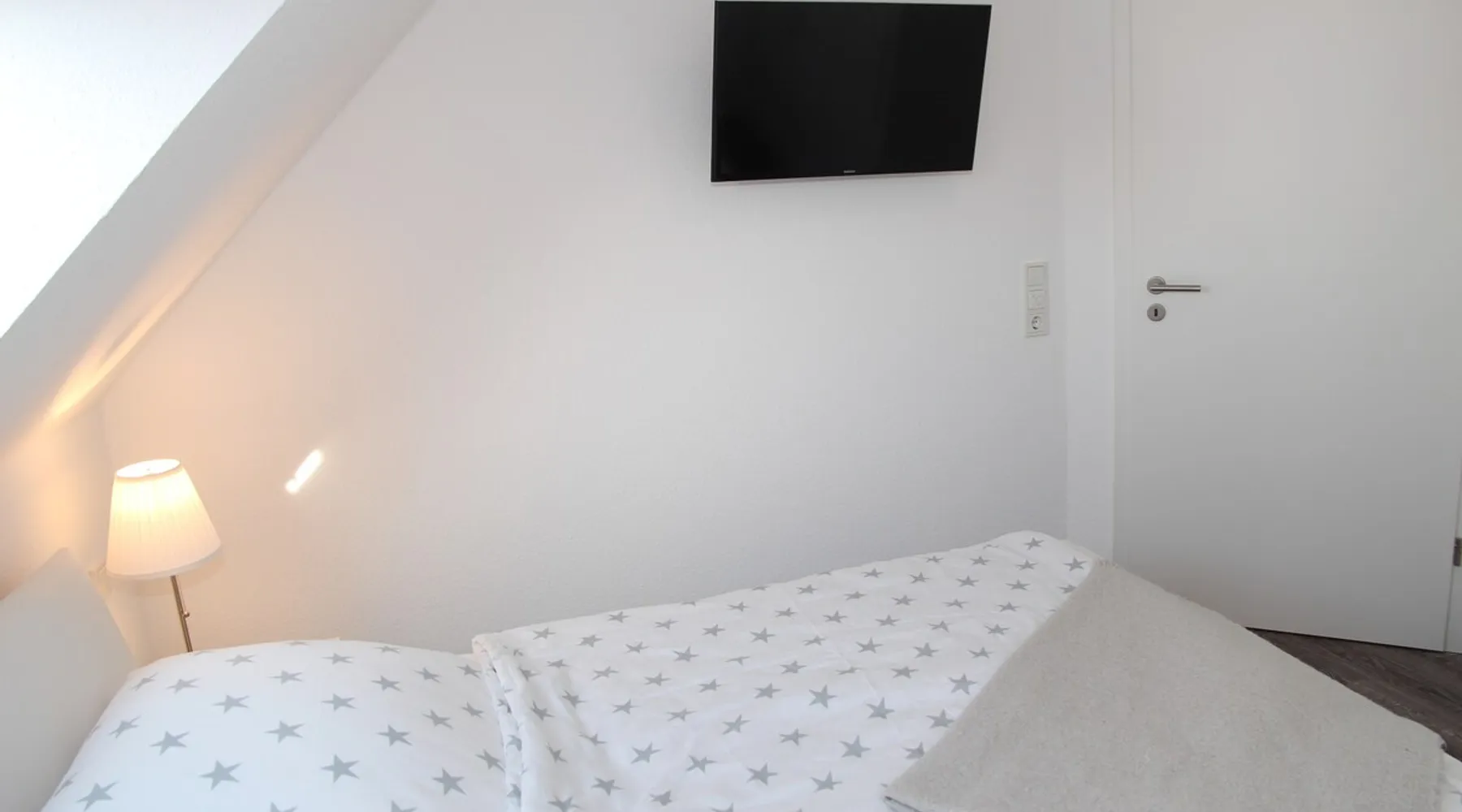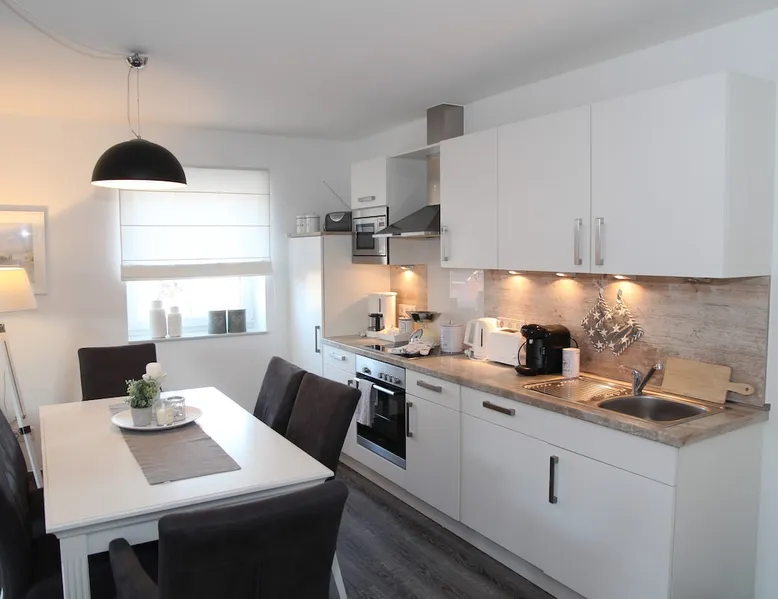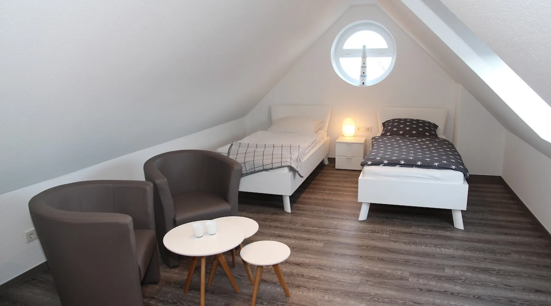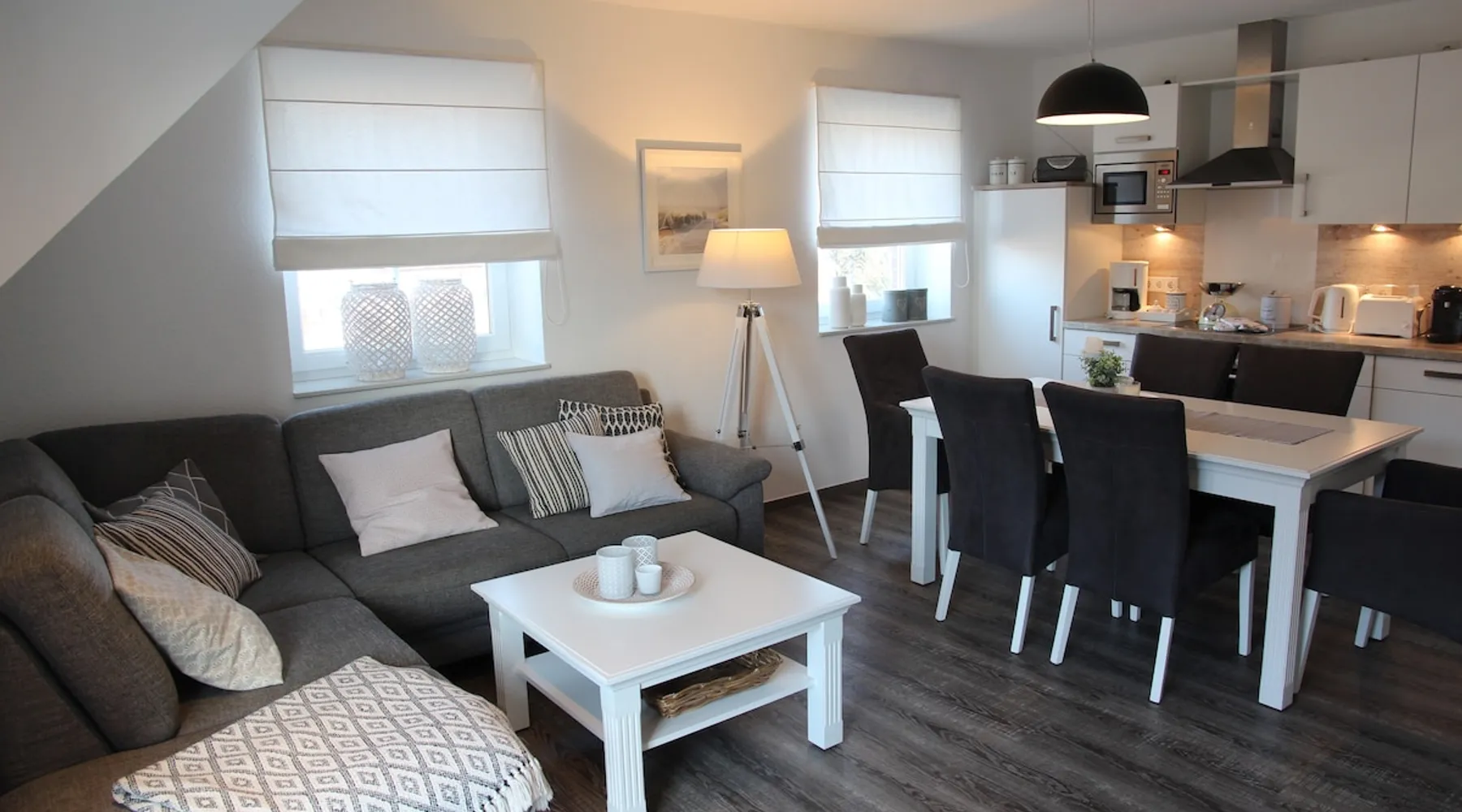 Our "Deichbude" is a great, modern vacation rental for your relaxing Greetsiel vacation. Other things to note Newly renovated in early February 2024! The dyke is equipped with every comfort, there are no wishes left unfulfilled. It has a total of 3 bedrooms, one of which is located on the upper gallery. One bedroom on the 1st floor is equipped with a double bed, the other two with two single beds each, which can also be put together. The floors are equipped with wood-look vinyl flooring, with pleasant underfloor heating. The windows can all be darkened. Each bedroom has a smart TV. The kitchen is equipped with everything you don't want to do without even on vacation (fridge with freezer, dishwasher, ceramic hob, oven, coffee machine, Tassimo coffee pod machine, microwave and much more). The living area with its comfortable corner sofa and armchair invites for cozy game evenings. Here, too, a smart TV provides the best entertainment. The bathroom with walk-in shower, sink, towel dryer and hair dryer is fully equipped. A washing machine is available to you in the storage room. The sunny balcony is furnished and has plenty of room for min. 4 people. A parasol is there. A private car parking space is right in front of the house. There is also a storage shed with electricity connection, e.g. for bicycles brought with you. A dog is "welcome" on request The village center with its harbor, restaurants and shops is within walking distance. For long walks by the sea or bike rides along the coast, there are many beautiful routes to discover. Greetsiel with his special flair is always worth a trip and those who have ever been here want to come back again and again.