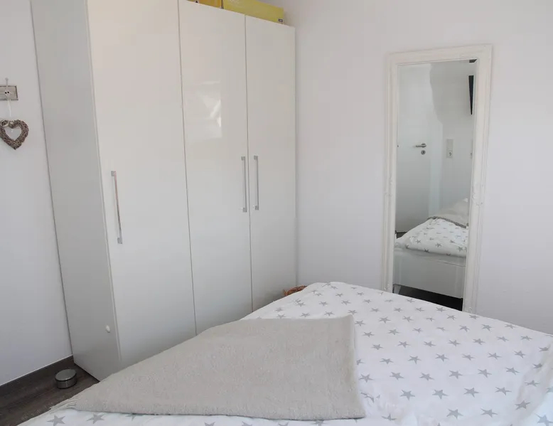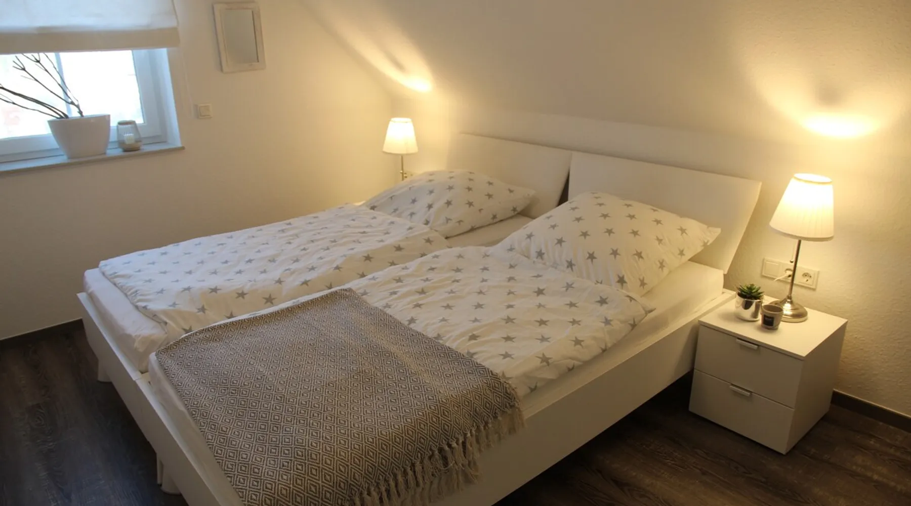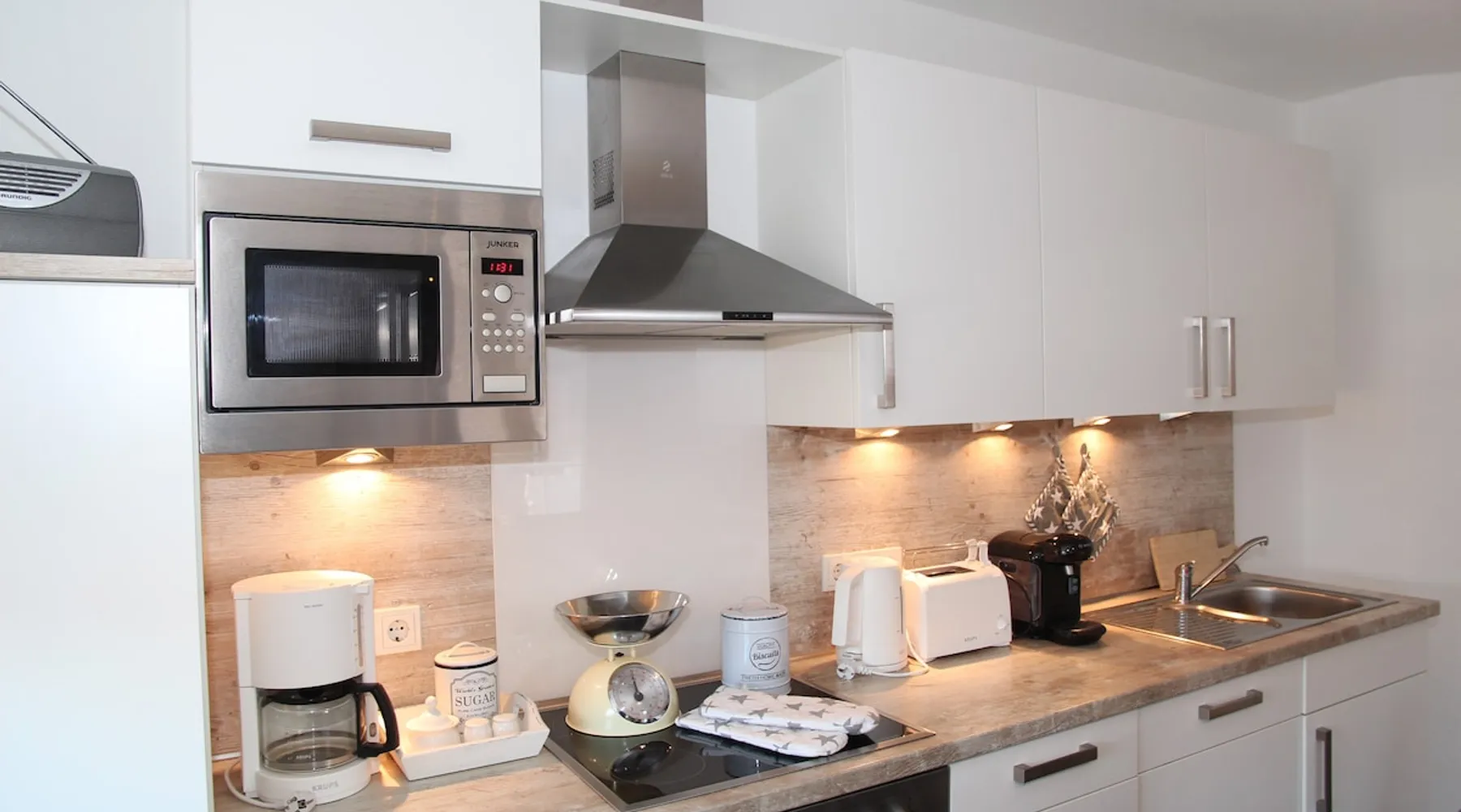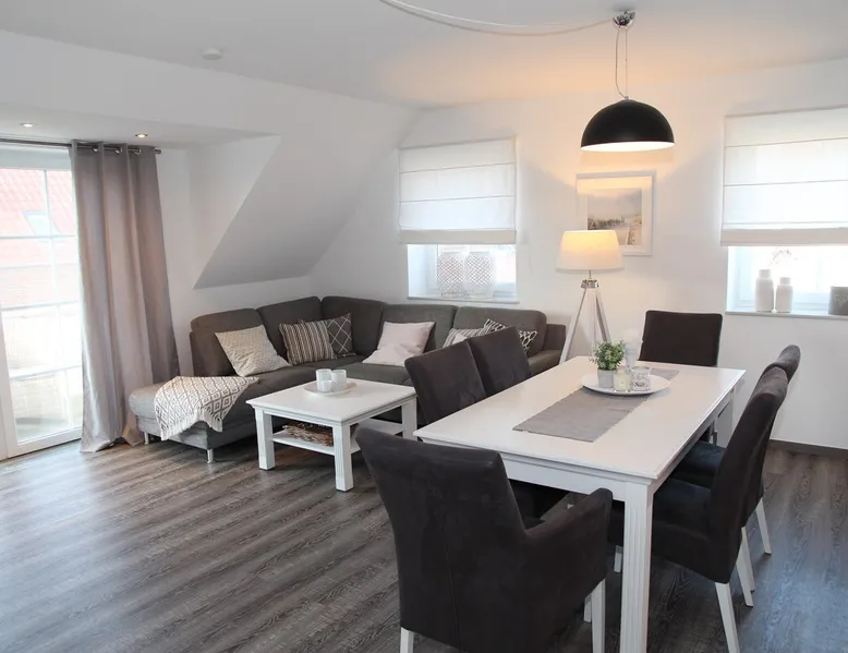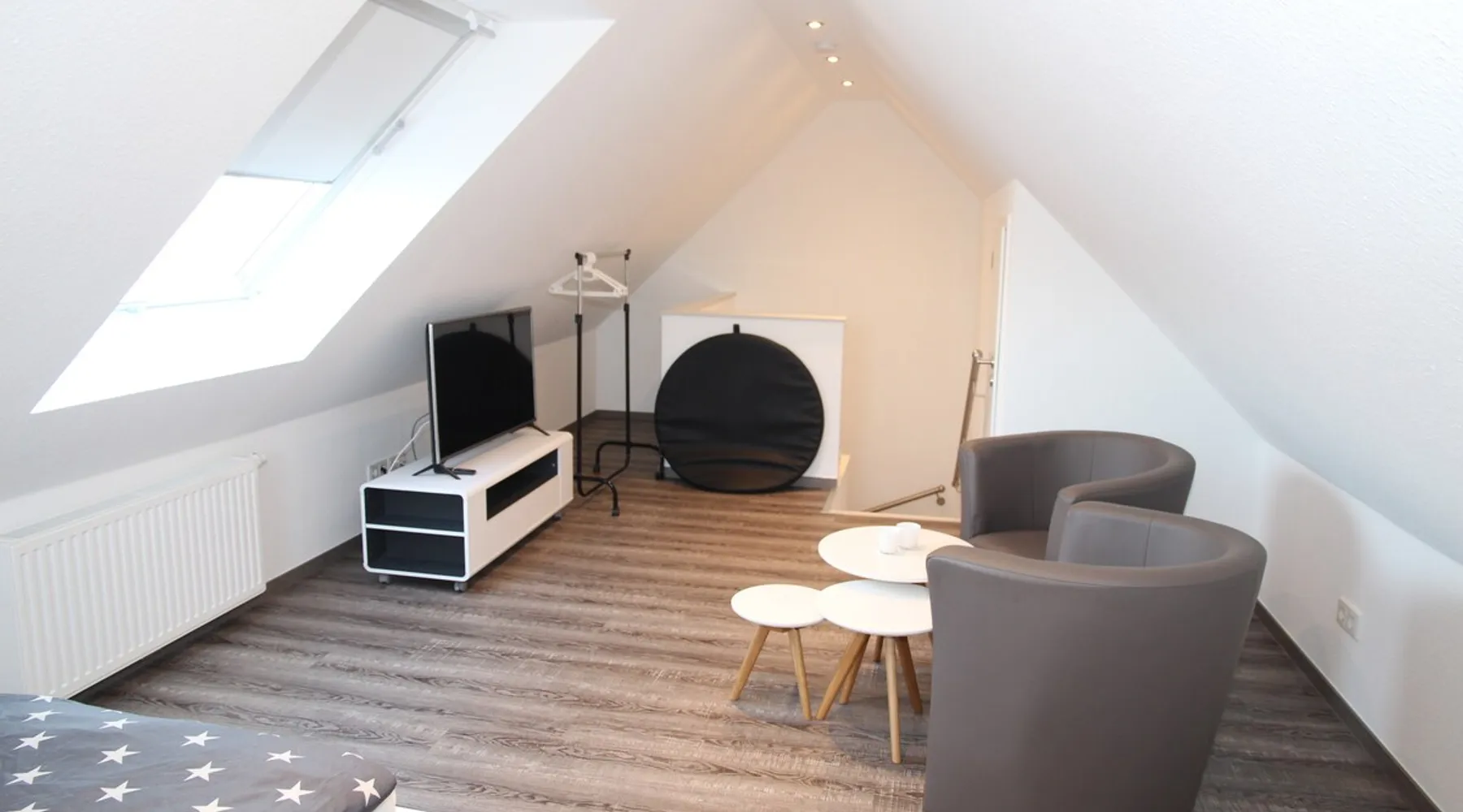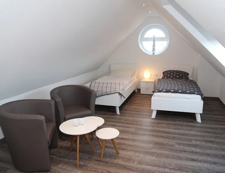 Our "Deichbude" is a great, modern vacation rental for your relaxing Greetsiel vacation. Other things to note Newly renovated in early February 2024! The dyke is equipped with every comfort, there are no wishes left unfulfilled. It has a total of 3 bedrooms, one of which is located on the upper gallery. One bedroom on the 1st floor is equipped with a double bed, the other two with two single beds each, which can also be put together. The floors are equipped with wood-look vinyl flooring, with pleasant underfloor heating. The windows can all be darkened. Each bedroom has a smart TV. The kitchen is equipped with everything you don't want to do without even on vacation (fridge with freezer, dishwasher, ceramic hob, oven, coffee machine, Tassimo coffee pod machine, microwave and much more). The living area with its comfortable corner sofa and armchair invites for cozy game evenings. Here, too, a smart TV provides the best entertainment. The bathroom with walk-in shower, sink, towel dryer and hair dryer is fully equipped. A washing machine is available to you in the storage room. The sunny balcony is furnished and has plenty of room for min. 4 people. A parasol is there. A private car parking space is right in front of the house. There is also a storage shed with electricity connection, e.g. for bicycles brought with you. A dog is "welcome" on request The village center with its harbor, restaurants and shops is within walking distance. For long walks by the sea or bike rides along the coast, there are many beautiful routes to discover. Greetsiel with his special flair is always worth a trip and those who have ever been here want to come back again and again.