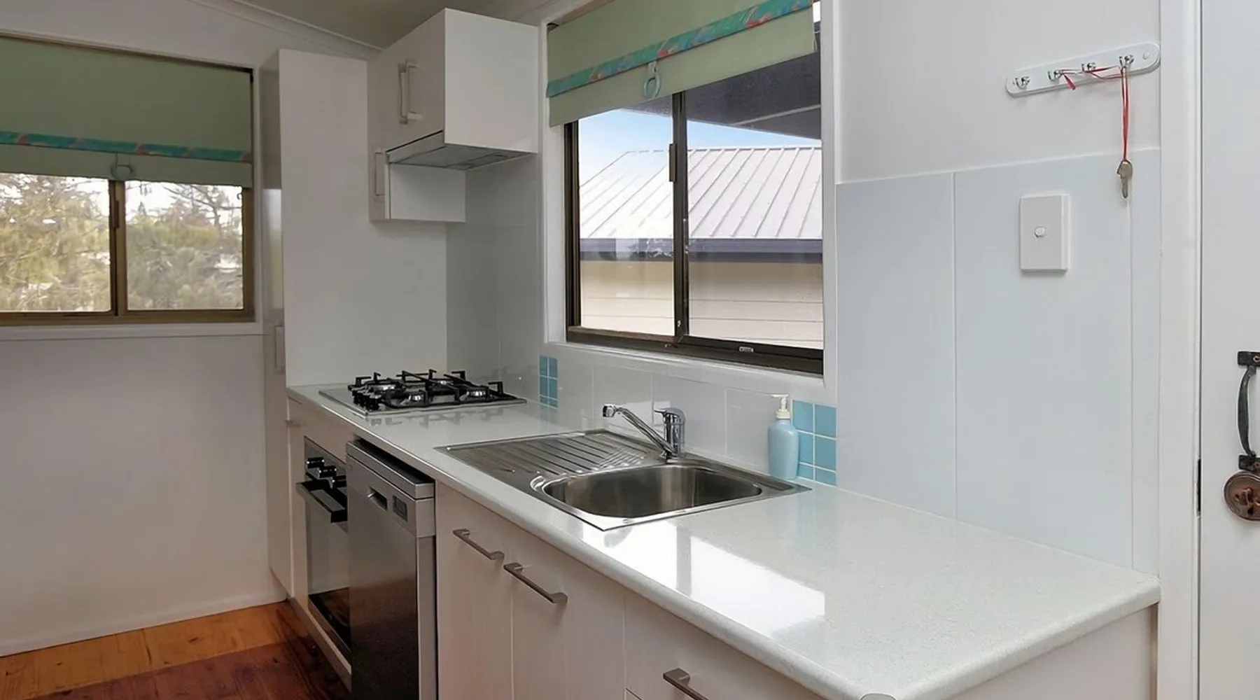 This freshly renovated 1 bedroom, 1 bathroom cottage is perfect if you are looking for a relaxing beach getaway with the family The space This freshly renovated 1 bedroom, 1 bathroom cottage is perfect if you are looking for a relaxing beach getaway with the family. This quaint cottage style home can accommodate up to 5 guests, offering 1 x Queen size bed and a Double and Single bunk. The lounge/ dinning room has a split system air conditioner for extra comfort during the warmer summer months and ceiling fans through out the property. The kitchen has been beautifully renovated offering a stainless steel gas cook top and oven, stainless steel dishwasher, stainless steel fridge, and a coffee machine, cooking in this kitchen will be an absolute treat for the family chef. Elliott Heads boat ramp, patrolled beach, kiosk, playground and BBQ is all within 5 minutes walking distance this property is truly in a perfect position for all ages to be able to enjoy a relaxing getaway. Free WiFi included. Ask about our discounted weekly rates
