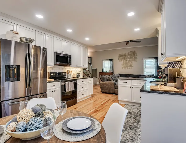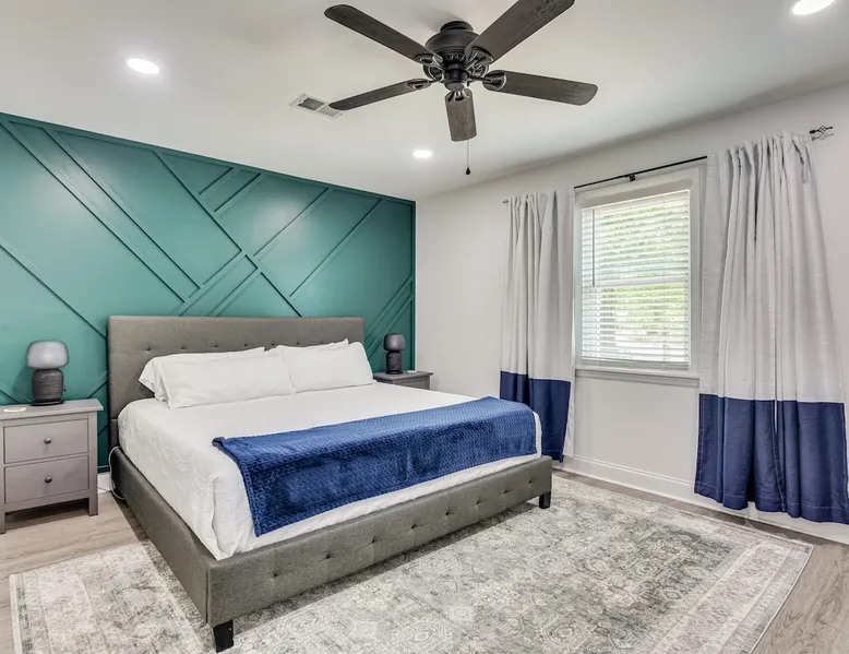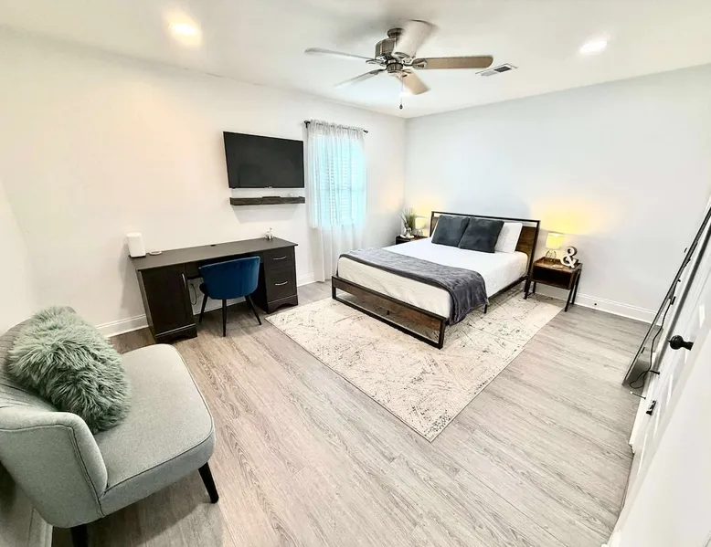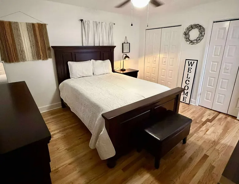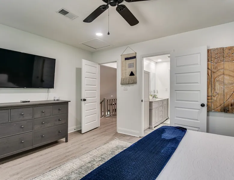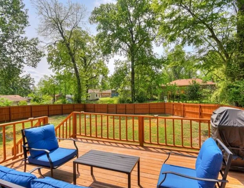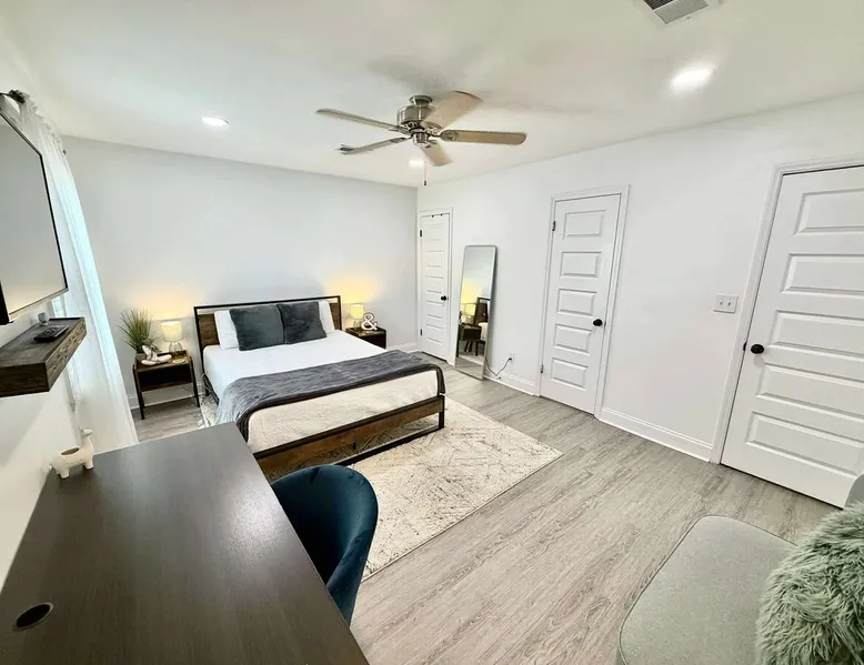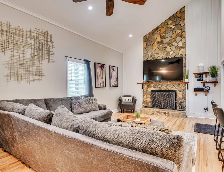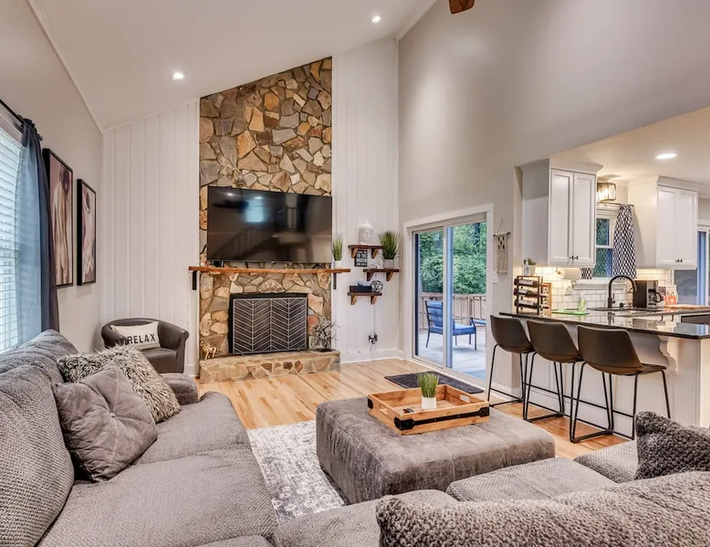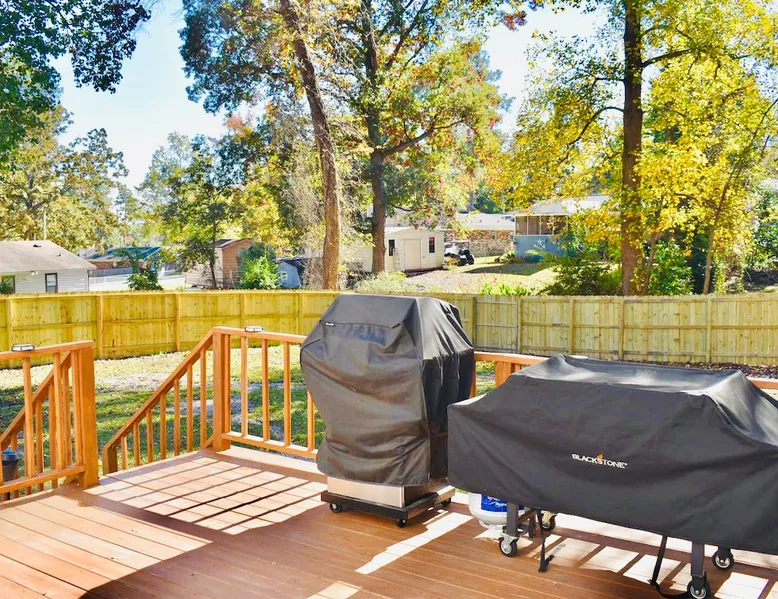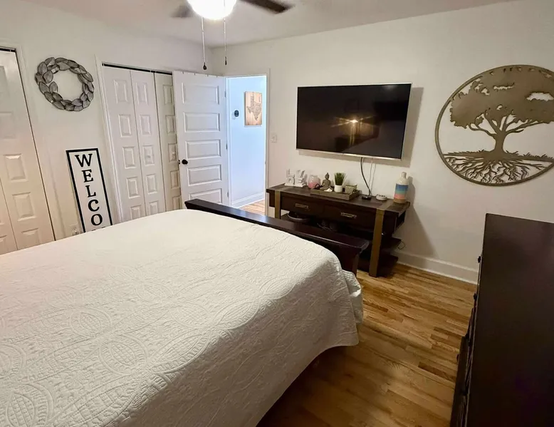 This beautifully updated 3BD/2BA home will be perfect for Masters! Only 2.9 miles (6 min) from the North gate of the Augusta National Golf Course and Washington Rd shopping/restaurants. Conveniently located to I-20. Features wood floors, open concept kitchen, large living room, flat screen TVs throughout the home, spacious deck, grill, and private backyard. Please message us with any questions about Augusta, the home, or if you require additional accommodations for your group :) The space Kitchen: Stainless steel appliances, bar counter Dining area: Seating for 4 within kitchen space Living room: 75" flat screen TV and large new sectional Bedroom 1 (Upstairs): Master suite with King bed, dresser, closet, 55" flat screen TV, jack n' jill bathroom that connects to Bedroom 2 Bedroom 2 (Upstairs): Queen bed, desk, chair, closet, 55" flat screen TV, jack n' jill bathroom that connects to Master Bedroom Bedroom 3 (Downstairs): Queen bed, dresser, closet, 55" flat screen TV Deck: Large deck with 2 burner propane gas grill and a 36” propane flat top griddle. Guest access Access is a breeze with keyless entry front door code. Parking on the property for up to 4 vehicles (2 side by side next to the house and then 2 in the driveway). Free street parking available if needed. Other things to note Garden City Hosts is a professional and local short term rental hosting company in Augusta, GA. We will be nearby and available to assist with any needs you may have during your stay :) We take pride in making sure our guests feel at home. Check out our review history in the Augusta area!