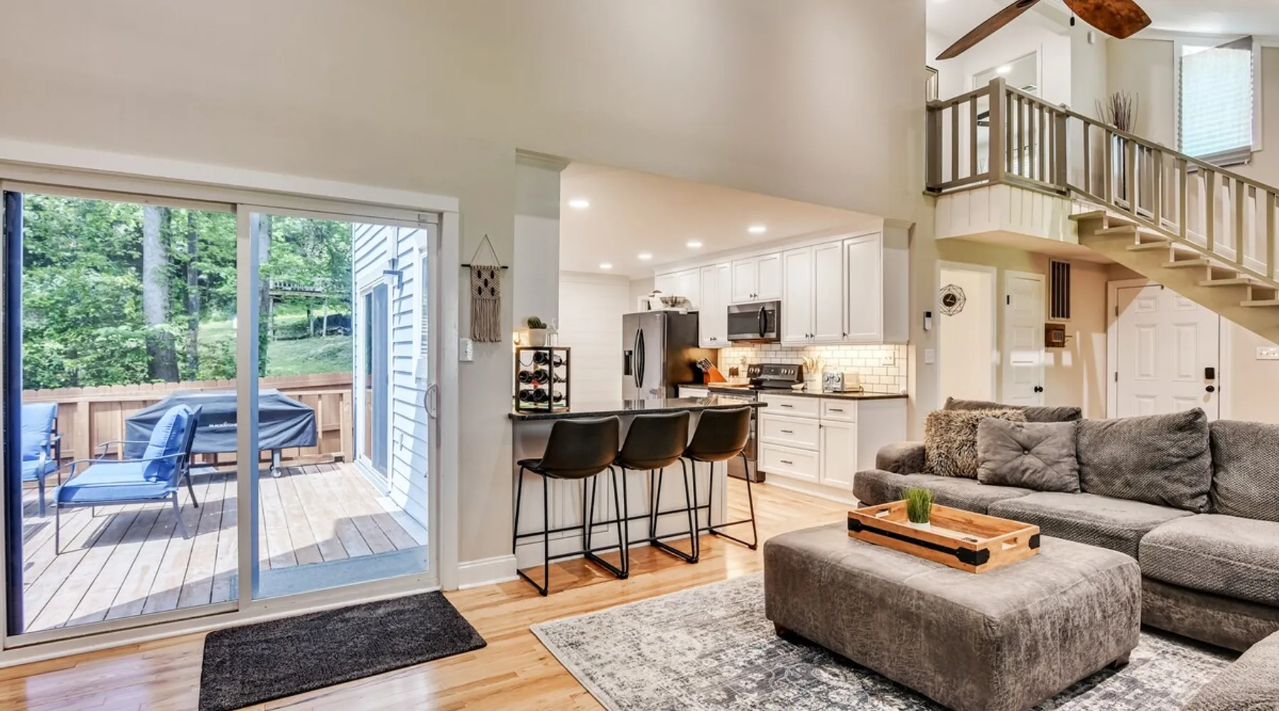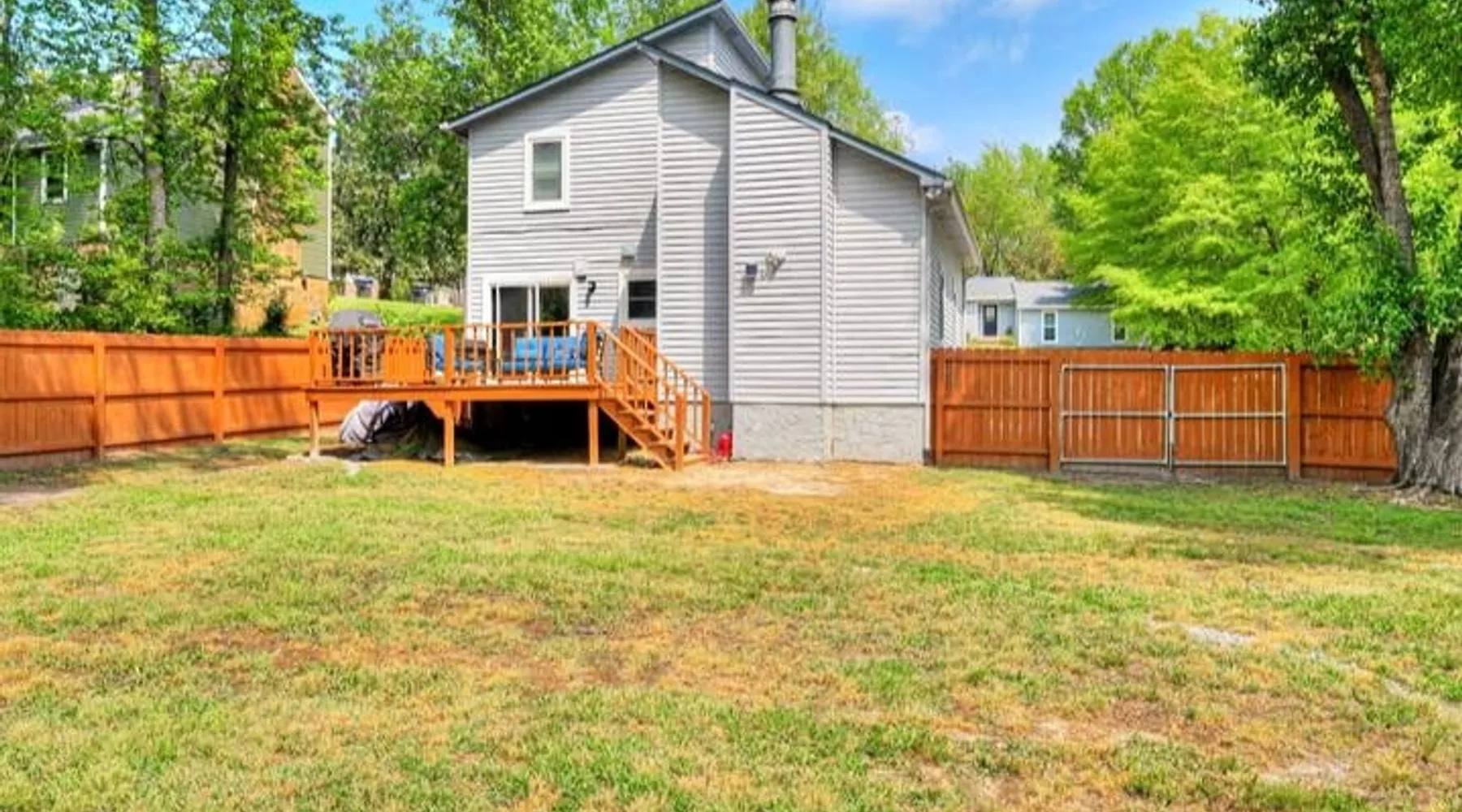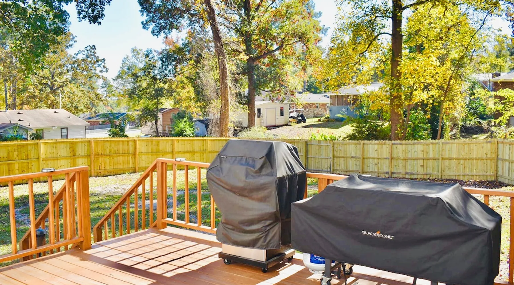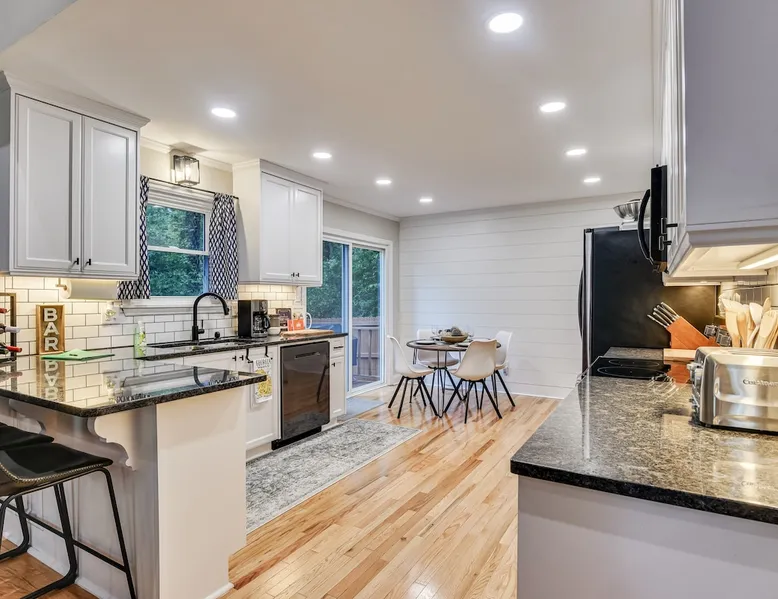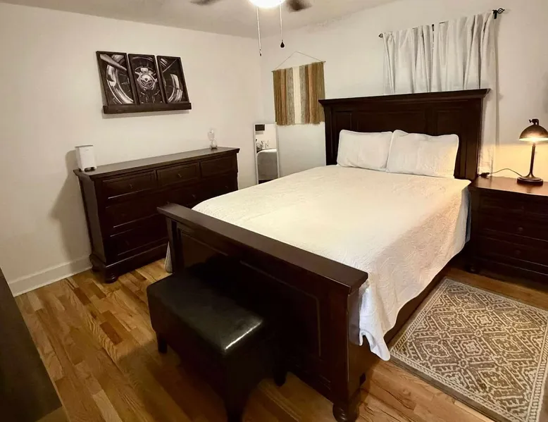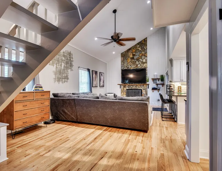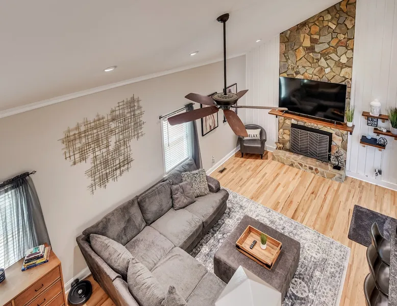 This beautifully updated 3BD/2BA home will be perfect for Masters! Only 2.9 miles (6 min) from the North gate of the Augusta National Golf Course and Washington Rd shopping/restaurants. Conveniently located to I-20. Features wood floors, open concept kitchen, large living room, flat screen TVs throughout the home, spacious deck, grill, and private backyard. Please message us with any questions about Augusta, the home, or if you require additional accommodations for your group :) The space Kitchen: Stainless steel appliances, bar counter Dining area: Seating for 4 within kitchen space Living room: 75" flat screen TV and large new sectional Bedroom 1 (Upstairs): Master suite with King bed, dresser, closet, 55" flat screen TV, jack n' jill bathroom that connects to Bedroom 2 Bedroom 2 (Upstairs): Queen bed, desk, chair, closet, 55" flat screen TV, jack n' jill bathroom that connects to Master Bedroom Bedroom 3 (Downstairs): Queen bed, dresser, closet, 55" flat screen TV Deck: Large deck with 2 burner propane gas grill and a 36” propane flat top griddle. Guest access Access is a breeze with keyless entry front door code. Parking on the property for up to 4 vehicles (2 side by side next to the house and then 2 in the driveway). Free street parking available if needed. Other things to note Garden City Hosts is a professional and local short term rental hosting company in Augusta, GA. We will be nearby and available to assist with any needs you may have during your stay :) We take pride in making sure our guests feel at home. Check out our review history in the Augusta area!