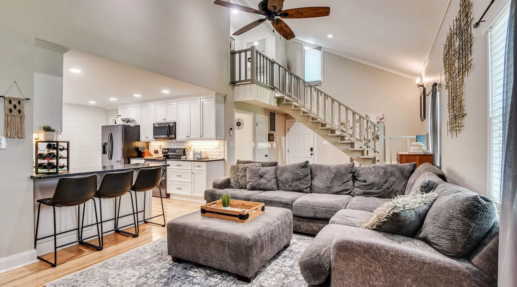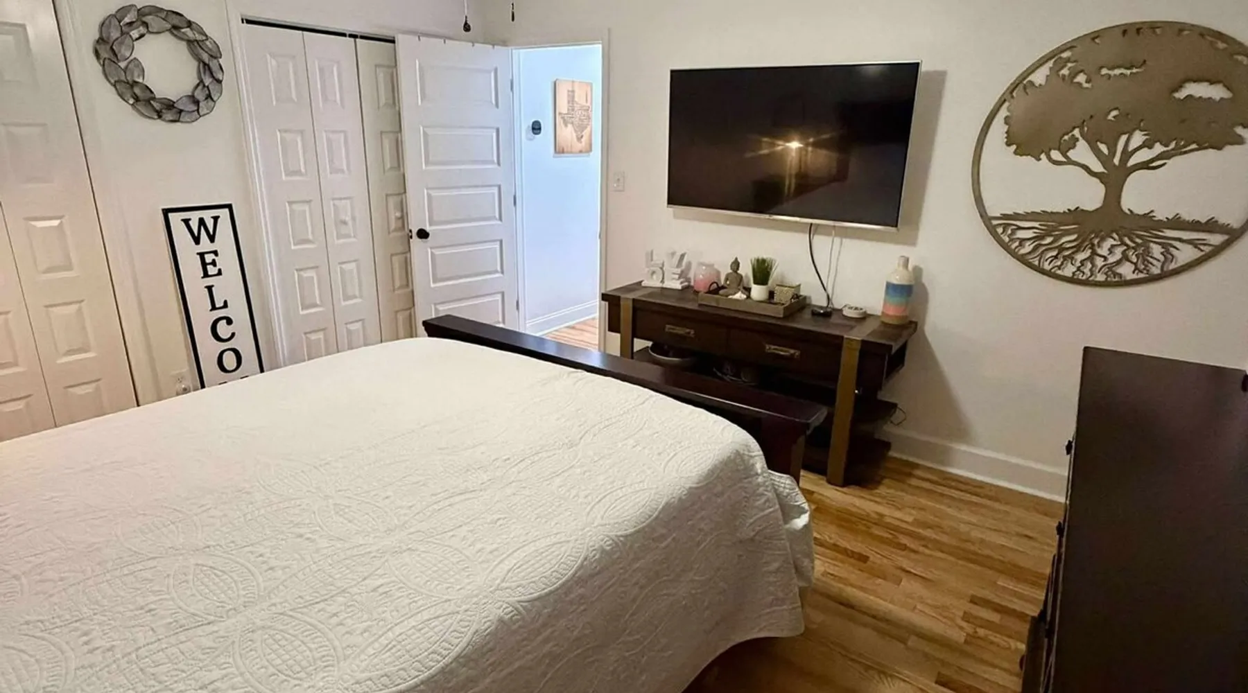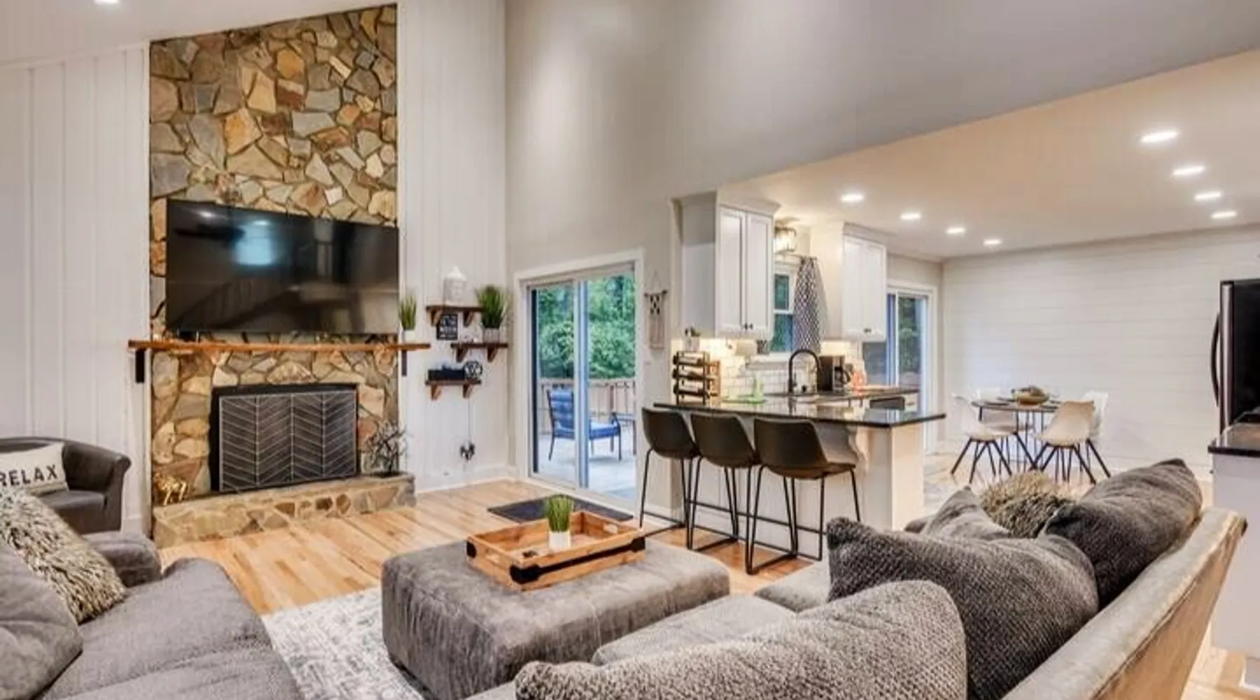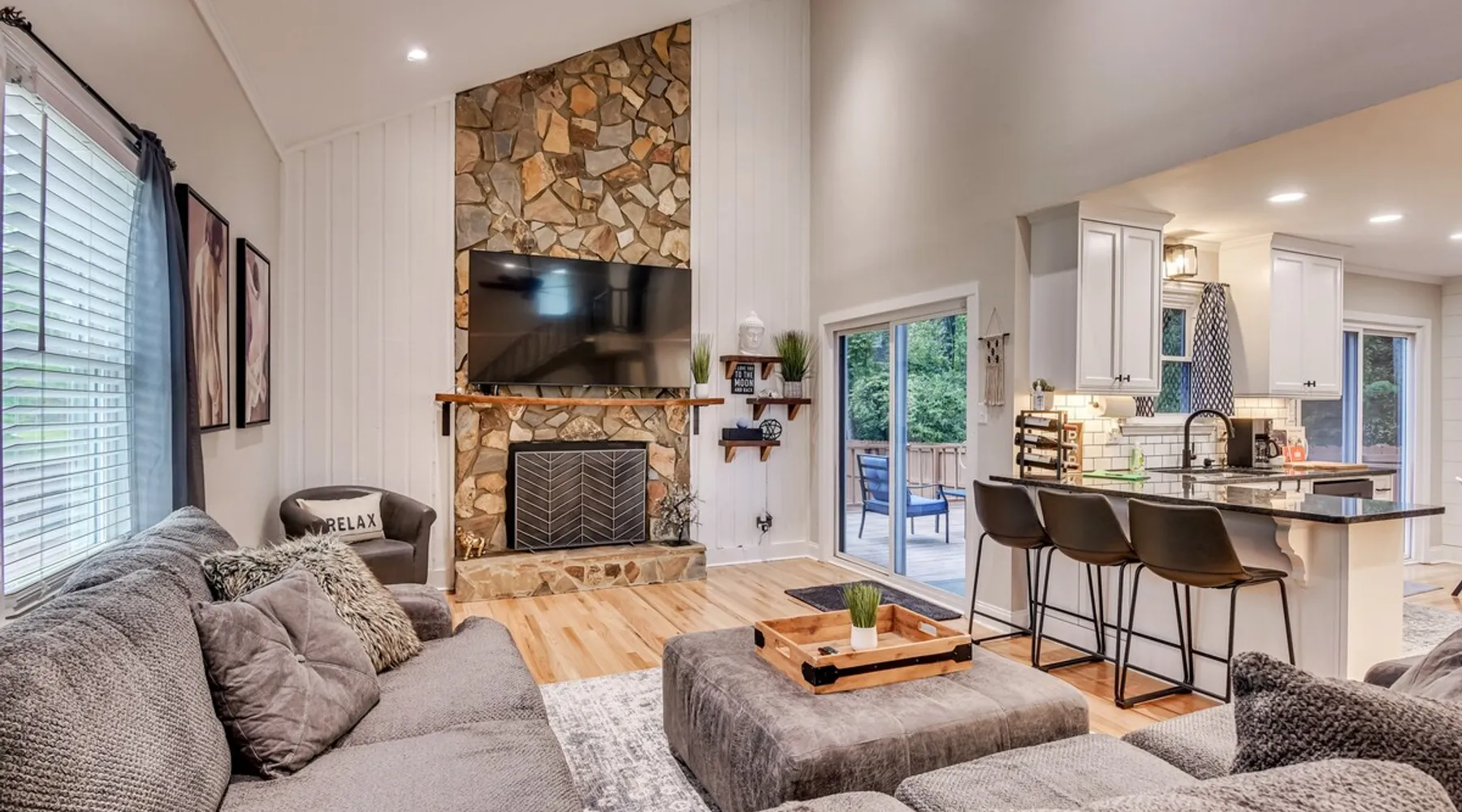 This beautifully updated 3BD/2BA home will be perfect for Masters! Only 2.9 miles (6 min) from the North gate of the Augusta National Golf Course and Washington Rd shopping/restaurants. Conveniently located to I-20. Features wood floors, open concept kitchen, large living room, flat screen TVs throughout the home, spacious deck, grill, and private backyard. Please message us with any questions about Augusta, the home, or if you require additional accommodations for your group :) The space Kitchen: Stainless steel appliances, bar counter Dining area: Seating for 4 within kitchen space Living room: 75" flat screen TV and large new sectional Bedroom 1 (Upstairs): Master suite with King bed, dresser, closet, 55" flat screen TV, jack n' jill bathroom that connects to Bedroom 2 Bedroom 2 (Upstairs): Queen bed, desk, chair, closet, 55" flat screen TV, jack n' jill bathroom that connects to Master Bedroom Bedroom 3 (Downstairs): Queen bed, dresser, closet, 55" flat screen TV Deck: Large deck with 2 burner propane gas grill and a 36” propane flat top griddle. Guest access Access is a breeze with keyless entry front door code. Parking on the property for up to 4 vehicles (2 side by side next to the house and then 2 in the driveway). Free street parking available if needed. Other things to note Garden City Hosts is a professional and local short term rental hosting company in Augusta, GA. We will be nearby and available to assist with any needs you may have during your stay :) We take pride in making sure our guests feel at home. Check out our review history in the Augusta area!