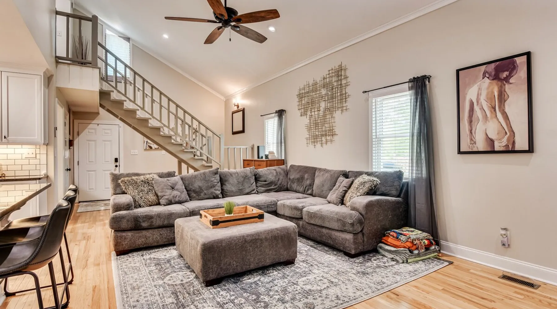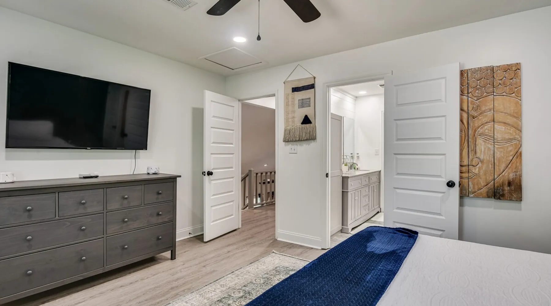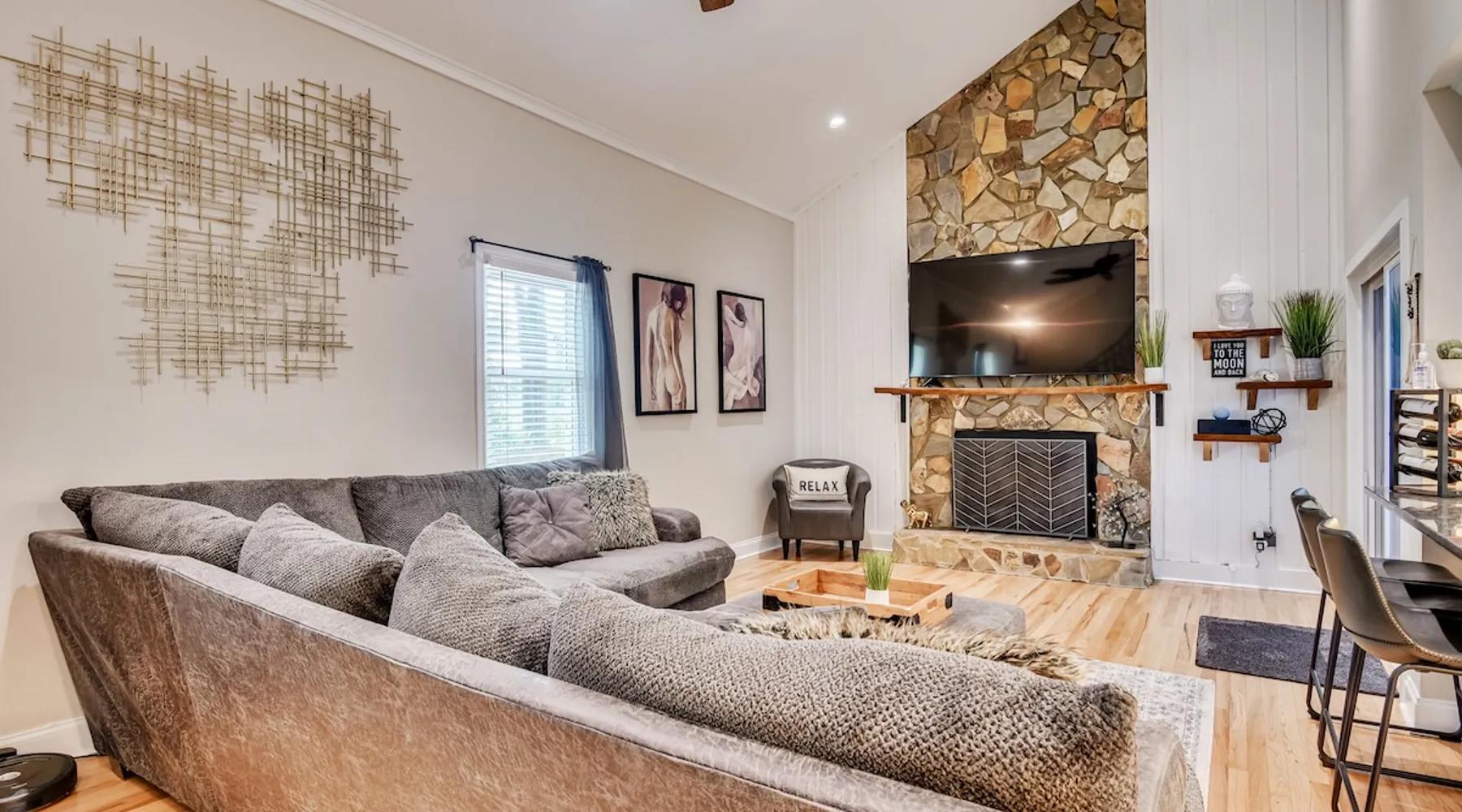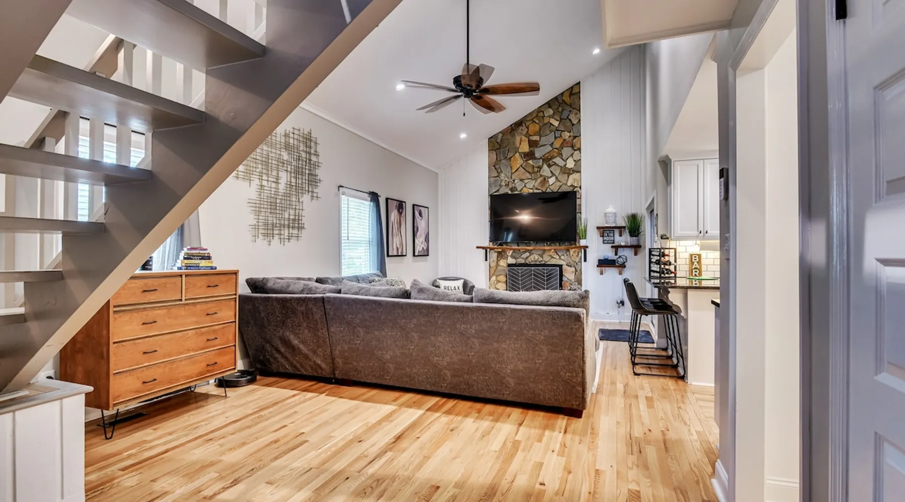 This beautifully updated 3BD/2BA home will be perfect for Masters! Only 2.9 miles (6 min) from the North gate of the Augusta National Golf Course and Washington Rd shopping/restaurants. Conveniently located to I-20. Features wood floors, open concept kitchen, large living room, flat screen TVs throughout the home, spacious deck, grill, and private backyard. Please message us with any questions about Augusta, the home, or if you require additional accommodations for your group :) The space Kitchen: Stainless steel appliances, bar counter Dining area: Seating for 4 within kitchen space Living room: 75" flat screen TV and large new sectional Bedroom 1 (Upstairs): Master suite with King bed, dresser, closet, 55" flat screen TV, jack n' jill bathroom that connects to Bedroom 2 Bedroom 2 (Upstairs): Queen bed, desk, chair, closet, 55" flat screen TV, jack n' jill bathroom that connects to Master Bedroom Bedroom 3 (Downstairs): Queen bed, dresser, closet, 55" flat screen TV Deck: Large deck with 2 burner propane gas grill and a 36” propane flat top griddle. Guest access Access is a breeze with keyless entry front door code. Parking on the property for up to 4 vehicles (2 side by side next to the house and then 2 in the driveway). Free street parking available if needed. Other things to note Garden City Hosts is a professional and local short term rental hosting company in Augusta, GA. We will be nearby and available to assist with any needs you may have during your stay :) We take pride in making sure our guests feel at home. Check out our review history in the Augusta area!