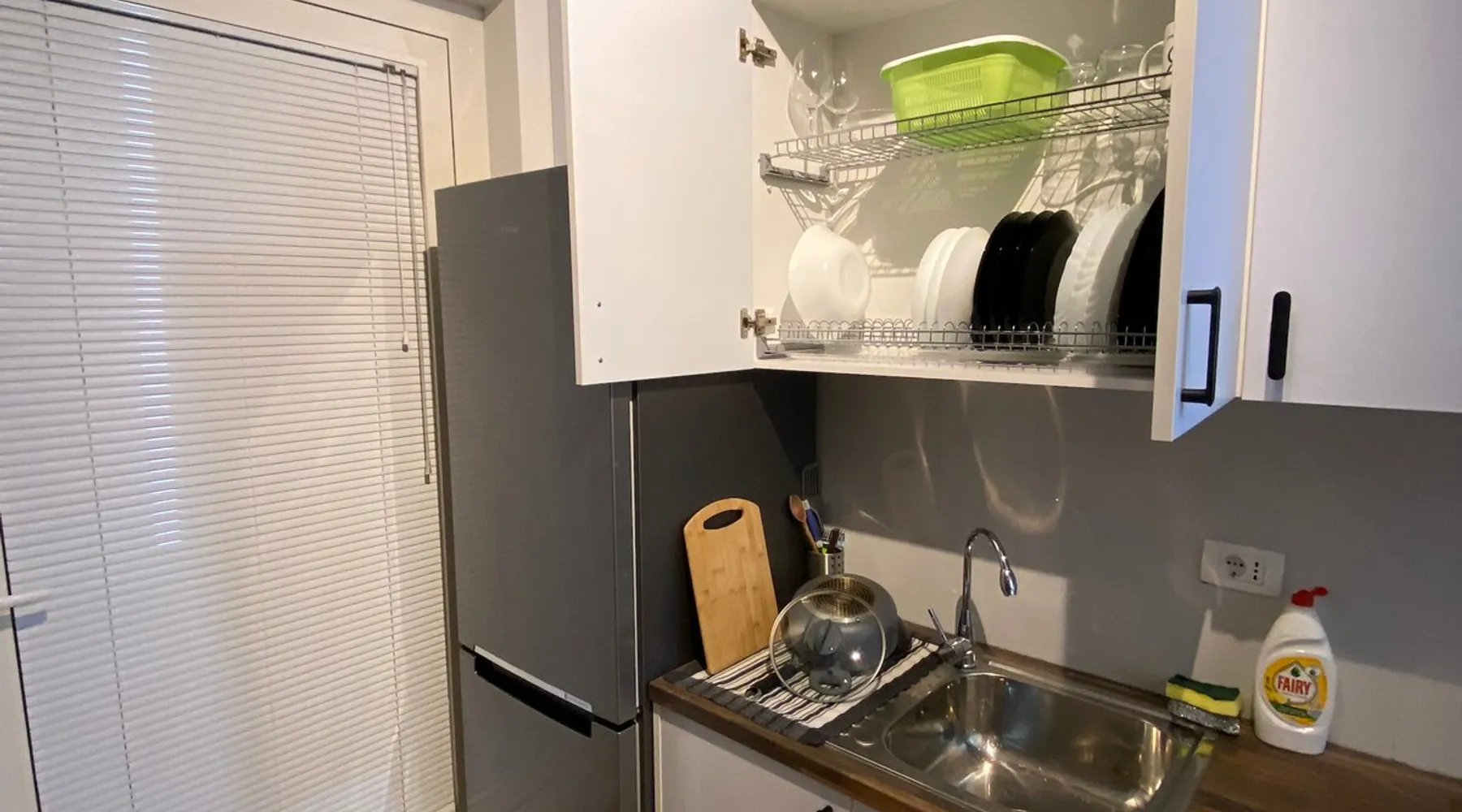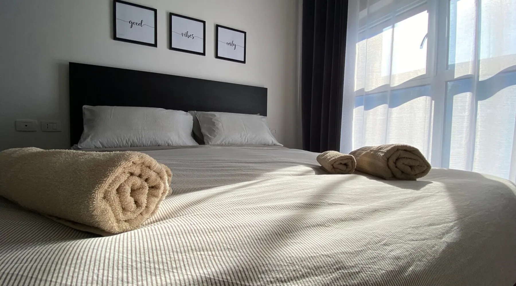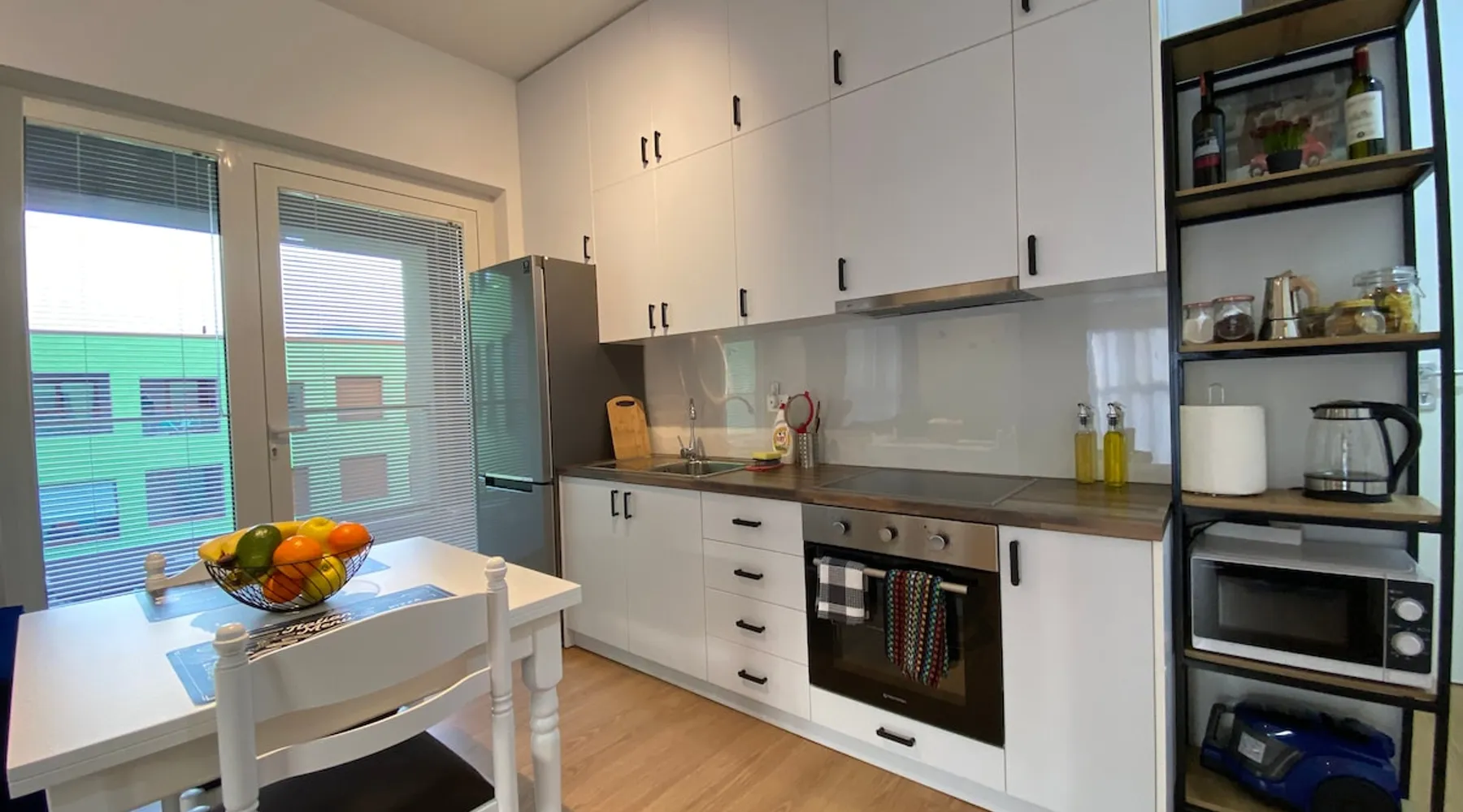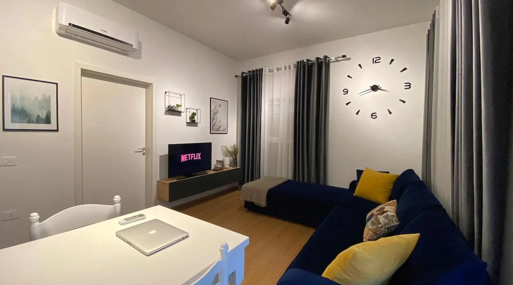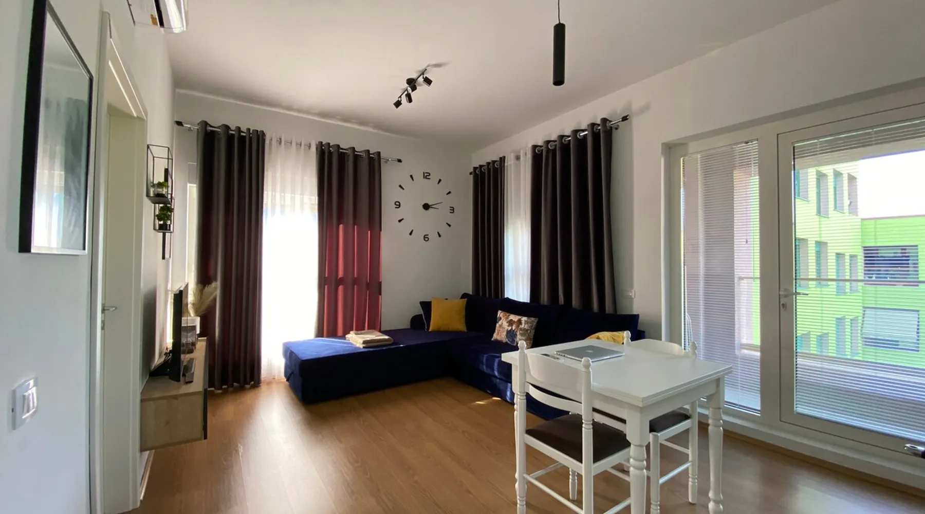 A brand new cozy apartement(a bedroom and a living room+kitchen area) on the 4th floor of a new building in the latest and coolest neighborhood of Tirana. The space It’s a comfy and very well used space, with big windows. It has all you need for your stay, be it for a few days or several weeks. The apartment has a big bathroom with spacious shower, a well equipped kitchen and charming living room with a spacious sofa. The bedroom has a double bed and wardrobe. A cute balcony with a very nice view of the Dajti mountains is accessible from the living room. Also included are sheets&towels. Smart Tv, wifi, washing machine, ironing board, hair dryer, microwave, toaster and a full-equipped kitchen with all the amenities that a family may need. Guest access You will be provided with a map and instructions how to get around. Other things to note The appartment can host two guests in the bedroom and an extra one(even two if needed) on the big sofa in the living room.