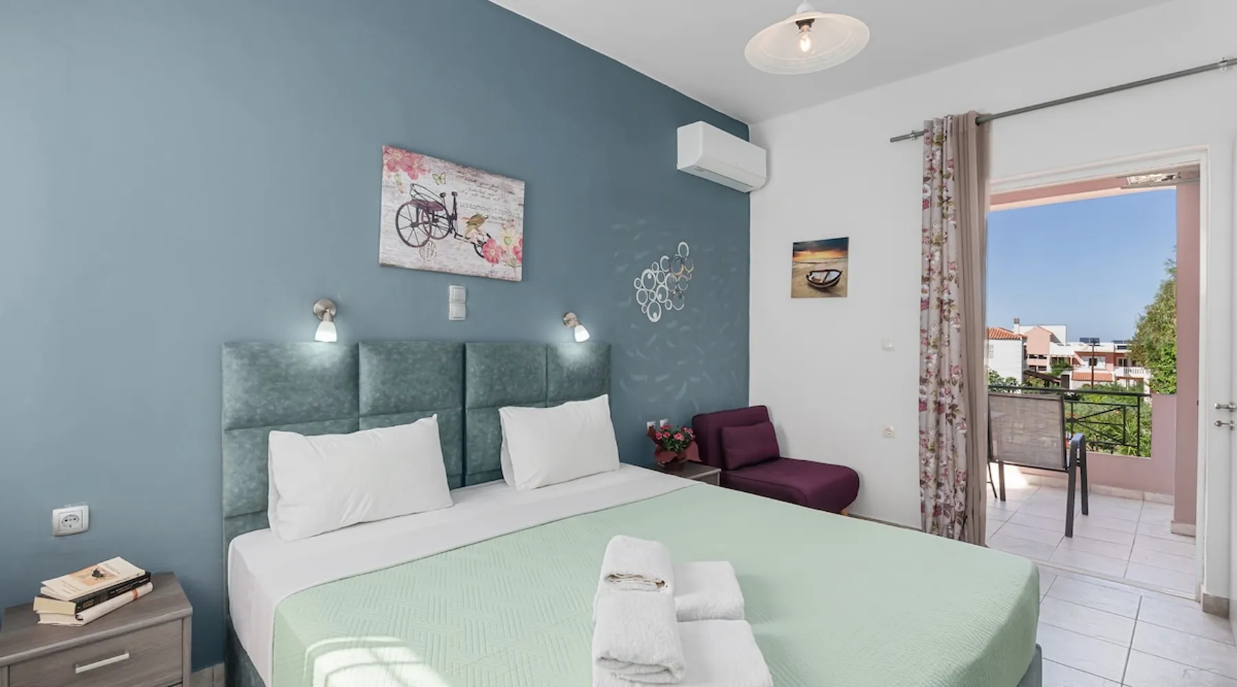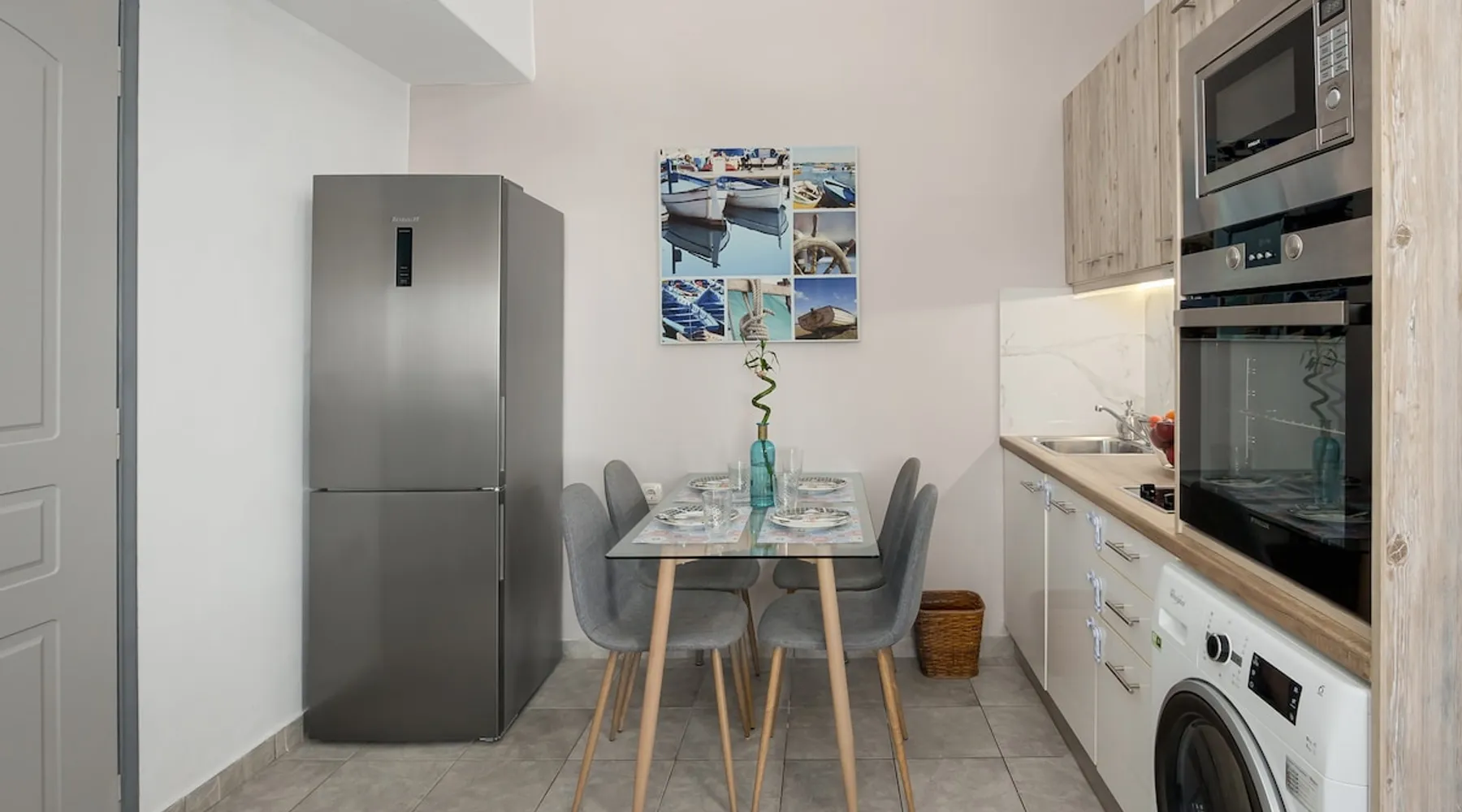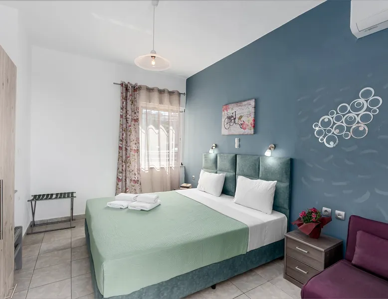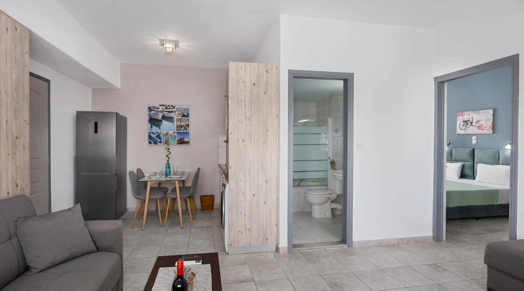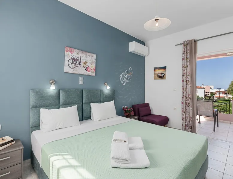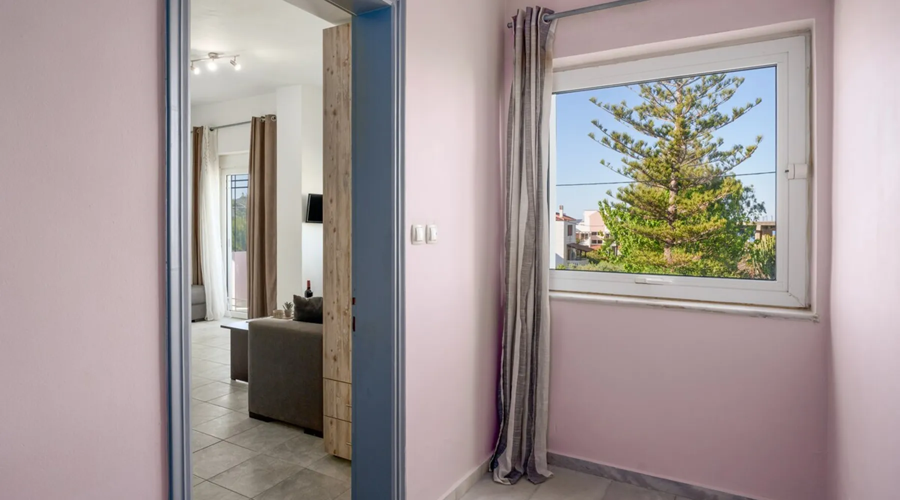 Cozy apartment up to 4 persons close to the beach. It is equipped with kitchen, private bathroom, balcony, and air conditioning. The apartment is just 50 meters from the beach. It is located in the beautiful village of Agia Marina close to Chania (8km) and Chania airport (23km). From the apartment you can easily reach by car the famous sight seeings of west Chania e.g. Mpalos, Falassarna, Elafonisi, when you aren't enjoying the beautiful sandy beach or relaxing on the balcony... The space This cozy apartment is equipted with a kitchen, balcony and airconditioning and can host up to 4 persons. It has a bedroom with a double bed, and a big living room with a sofa bed and the possibility of an extra single bed. Many shops, beach bars, cafes, and supermarkets close by. Registration Details 00000104429