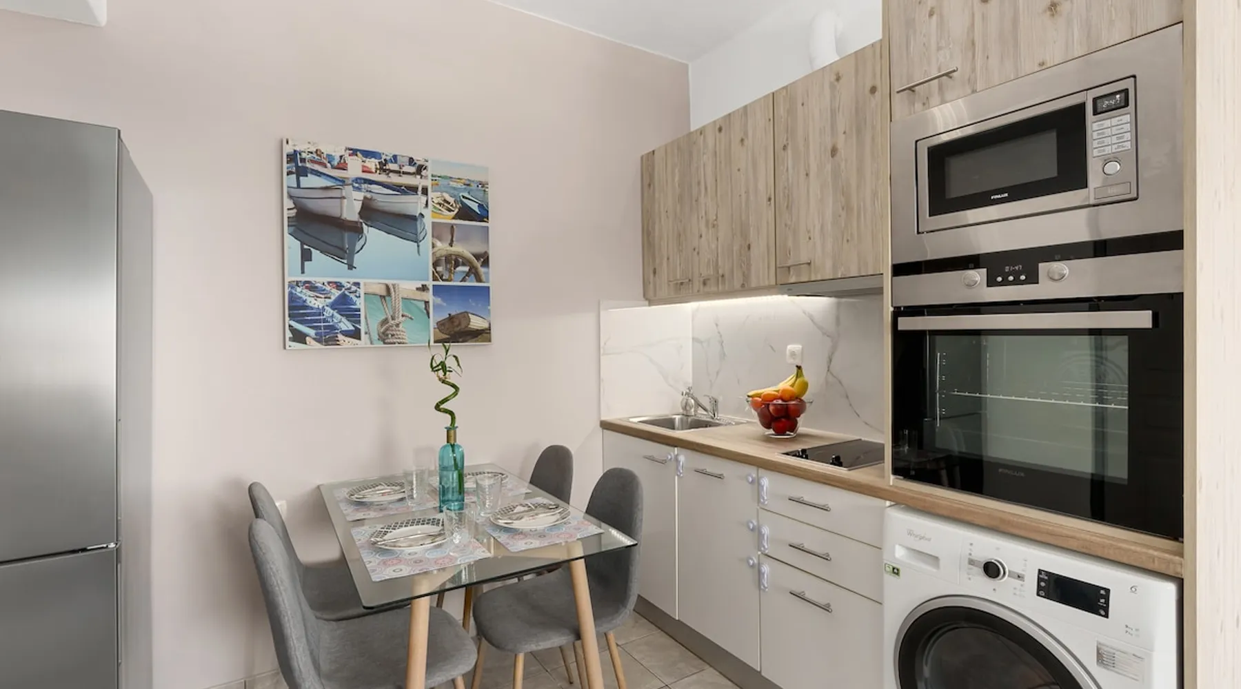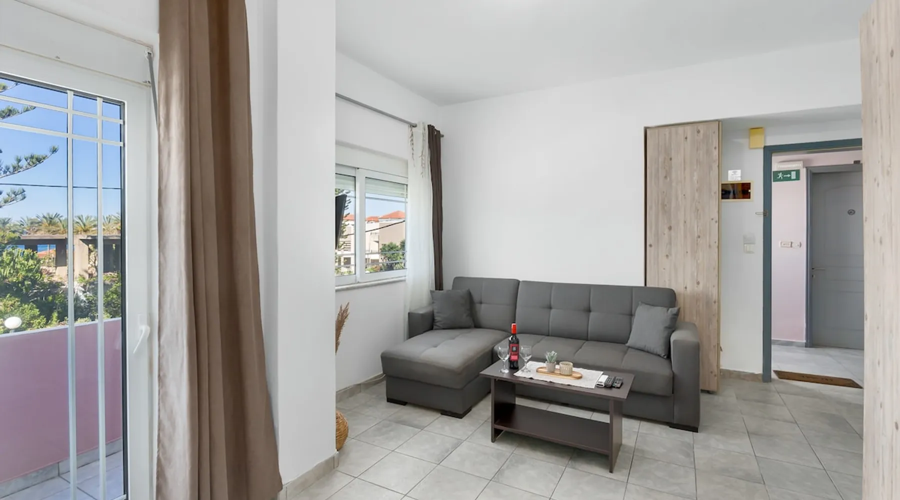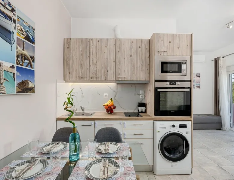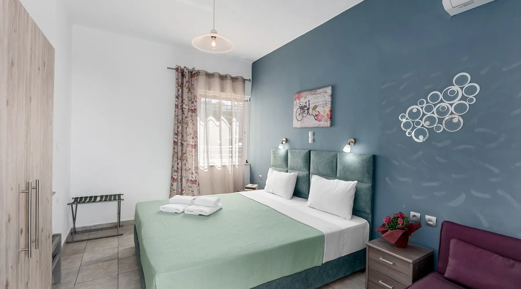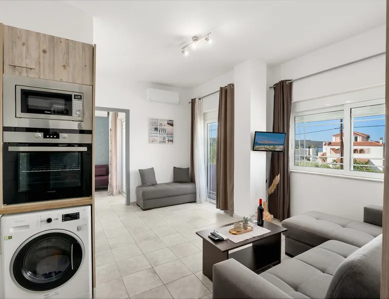 Cozy apartment up to 4 persons close to the beach. It is equipped with kitchen, private bathroom, balcony, and air conditioning. The apartment is just 50 meters from the beach. It is located in the beautiful village of Agia Marina close to Chania (8km) and Chania airport (23km). From the apartment you can easily reach by car the famous sight seeings of west Chania e.g. Mpalos, Falassarna, Elafonisi, when you aren't enjoying the beautiful sandy beach or relaxing on the balcony... The space This cozy apartment is equipted with a kitchen, balcony and airconditioning and can host up to 4 persons. It has a bedroom with a double bed, and a big living room with a sofa bed and the possibility of an extra single bed. Many shops, beach bars, cafes, and supermarkets close by. Registration Details 00000104429
