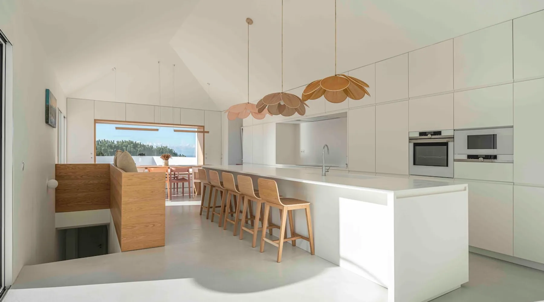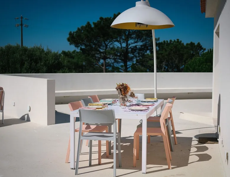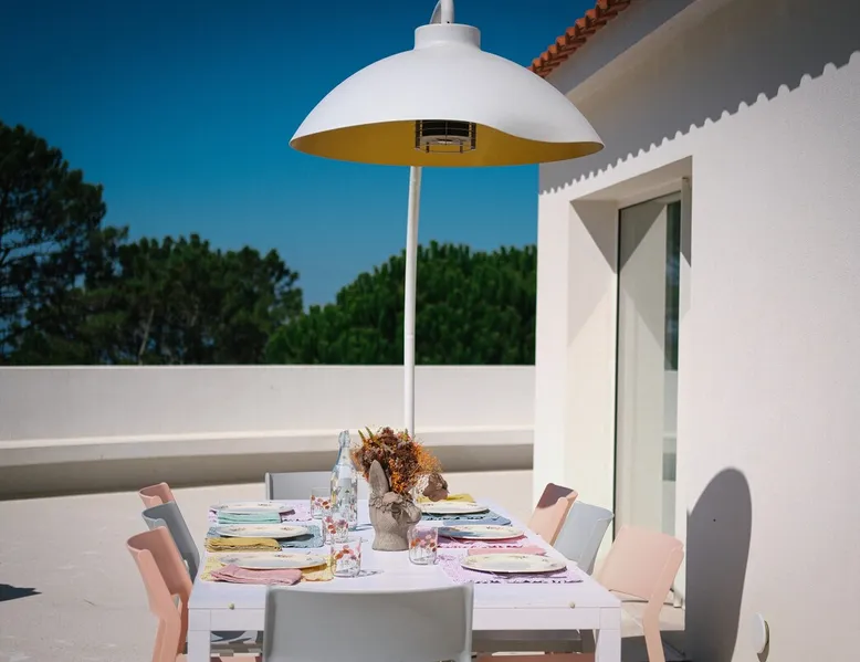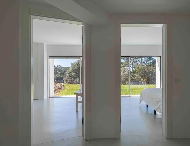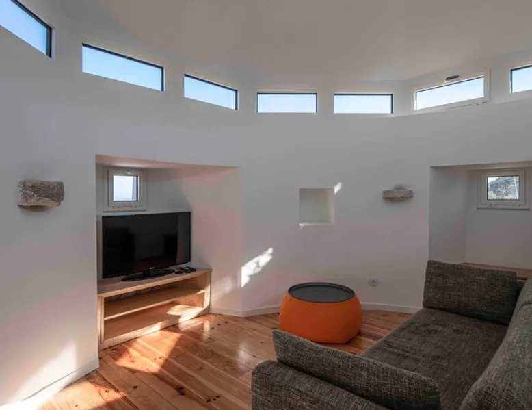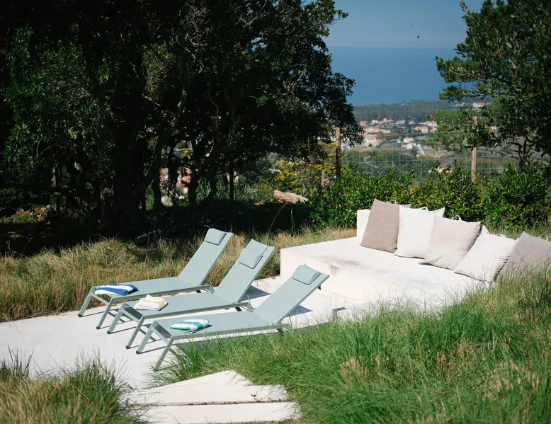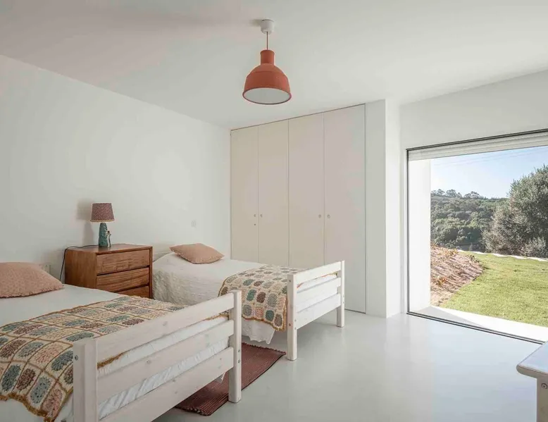 Unique and family-friendly cottage in Sintra natural park within the Penedo UNESCO rated village. Secluded windmill cottage with 1.5ha of space to enjoy relaxing by the swimming pool, in the terrace or gardens or from one of the open spaces in the house always with a view of the sea or mountain. Fully renovated 5 bedroom house w/ high speed wifi, floor heating, design furniture, fully equiped kitch and living room. The space The building has been developed around an original windmill by a renowned Portuguese architect. Set in a plot of 1.5 hectares of forest, the property has been designed with simple clean lines and large angled windows which allow floods of light into the rooms. The overall feel is minimalist and uncluttered, with a sleek integrated kitchen and tactile polished concrete floors. The hosts have chosen to mix elegant and design-led pieces with relaxed oak furniture to create an inviting family space. We love the high-back dining bench in the kitchen, the terracotta and peach dining chairs and the unique curved staircase, marking out the original structure of the property. Private swimming pool, spectacular views and stunning minimalist interiors. It sleeps 12. The kitchen is a hero space here, with a large dining area, additional breakfast bar and open plan layout to allow for parents to interact with the family while cooking. There’s space for everyone to relax here, whether in the living areas, on the terraces or on the lawn - plus plenty of bedrooms for those traveling with a nanny or an au pair. Adventurous parents can access walking or biking trails in the mountains nearby, while sun-worshippers will love the sun-drenched private pool and the nearby sandy beaches which run along Portugal’s picturesque west coast. Fully renovated in 2021, the villa has 5 bedrooms and 4 bathrooms set on 2 levels. On the lower level, there’s 2 bathrooms and 4 of the bedrooms: 2 double twins (one can be used as a king), a bunk room with another twin, and a single-over-double bunk room. On the upper level, there’s an open plan eat-in kitchen/dining space, a large spacious hall connecting to a living room, the windmill space and a mezzanine with another living room. This floor also has a primary bedroom, with a kingsize bed and a dedicated bathroom and a separate family bathroom. Outside, a large terrace connects the kitchen, hall and living room with an outdoor dining area to make the most of those beautiful views. The large grassy garden connects the 2 levels, with a scenic swimming pool and another separate outside living space. The residence has plenty of entertainment for children under 10 - they’ll love the quirky windmill space which is filled with games, books and toys. The large outdoor space is big enough for wheeled toys and the swimming pool is a lovely playground on hot days (and not-so-hot days as well!). A crib, high chair, baby toys and a baby bath can be provided on request. It’s a short walk from the forest and a short drive from the beach, where older kids and teens can try water sports. For cultural days out, Sintra has a natural history museum, botanical gardens and playgrounds, or visit the fortresses and castles of historic Cascais (both 20 minutes’ drive). Guest access Full access Other things to note There are stairs indoors and outdoors (with no stair gates) and the swimming pool is not gated, so non-swimmers should be supervised at all times. Two of the bedrooms are connected to the garden. There is ample parking space around the house, car rental is recommended. 500 mbps Wi-Fi coverage across the entire house, underfloor heating and Apple TV with the most complete Portuguese IPTV services. Outside there’s a heat lamp for cooler days, as well as a sun umbrella, dining table and sofa for warmer weather. Registration Details 1273006