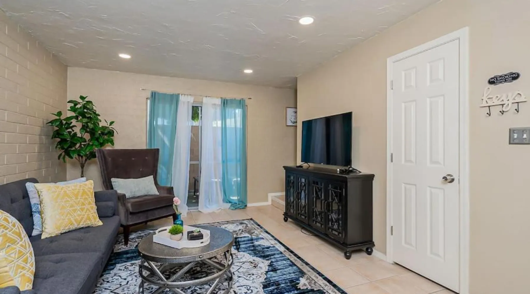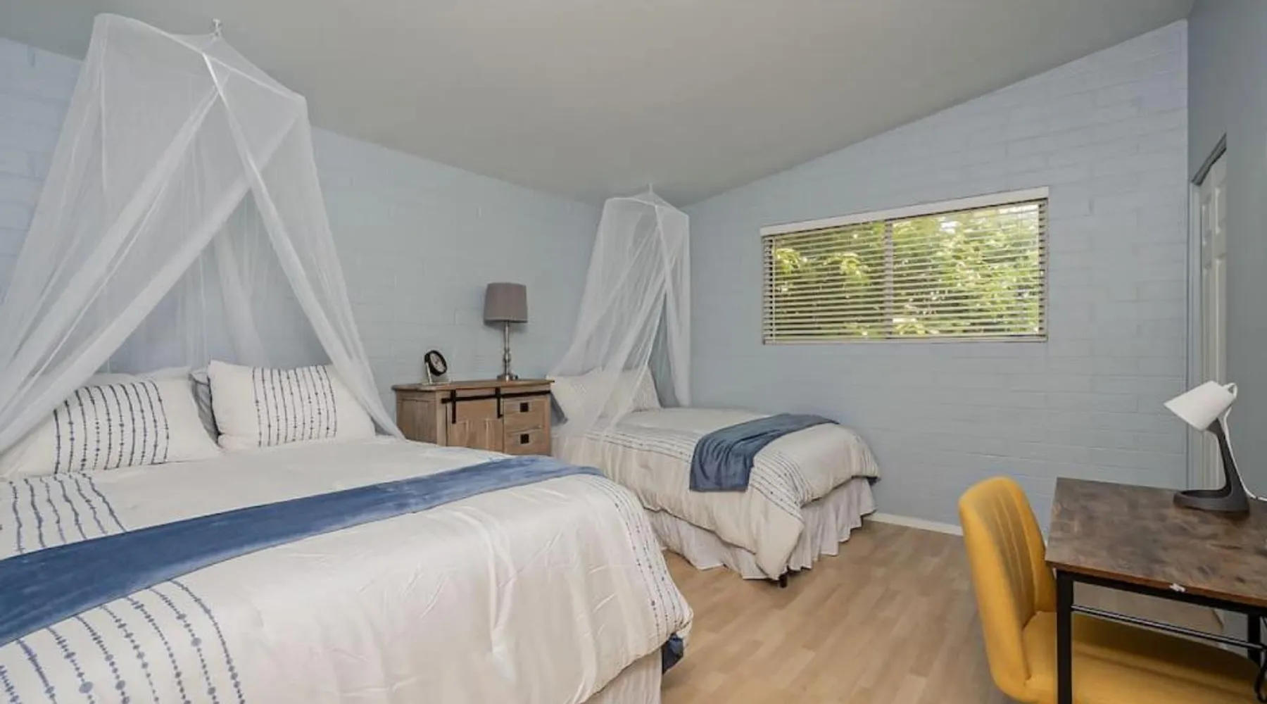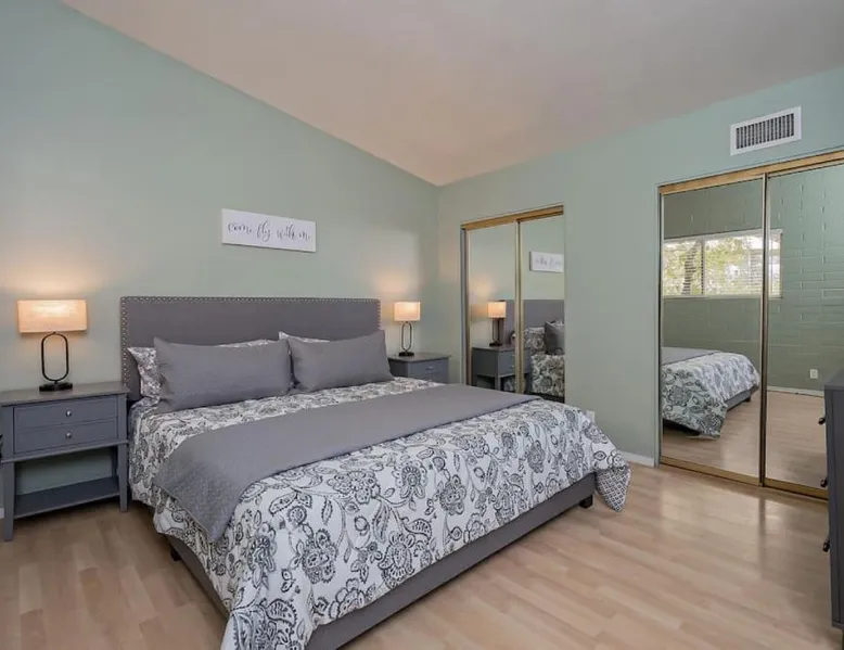 Spacious Accommodations: Charming Condo in the Heart of Scottsdale offers a spacious holiday home in Scottsdale. The property features two bedrooms and one bathroom, providing ample space for guests. Modern Amenities: Guests enjoy free WiFi, ensuring connectivity throughout their stay. The condo is equipped with a fully fitted kitchen and comfortable living areas, catering to all needs. Convenient Location: Located 7.5 mi from Scottsdale Airport, the property is also close to attractions such as Desert Botanical Gardens (5 mi) and Phenix Zoo (5.6 mi). Reception staff speak English, assisting guests with their needs. The unit offers 6 beds.