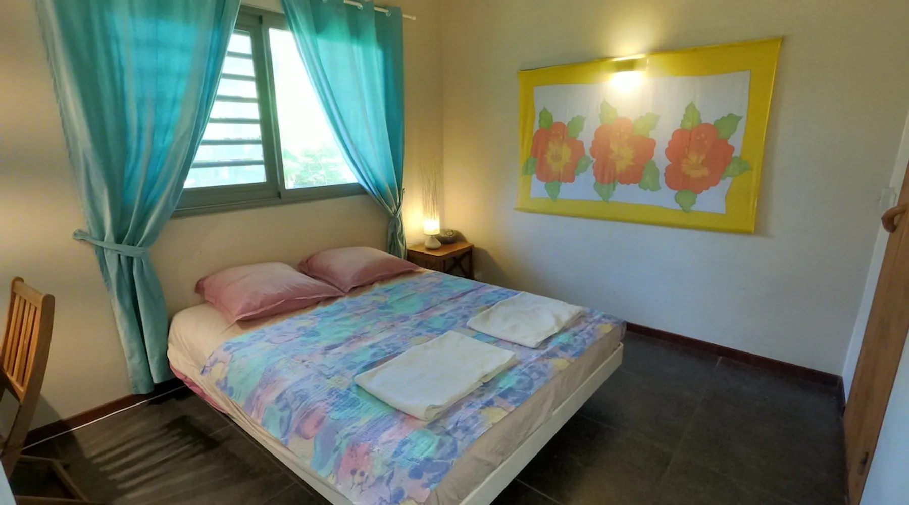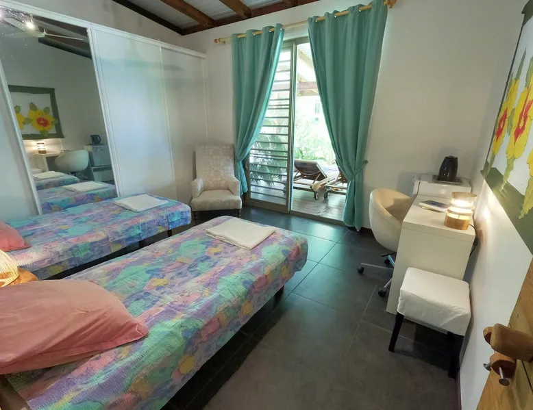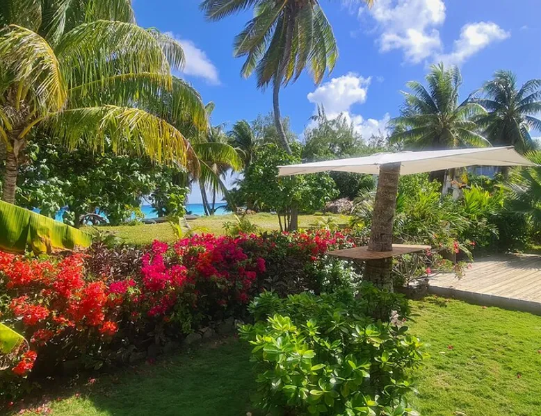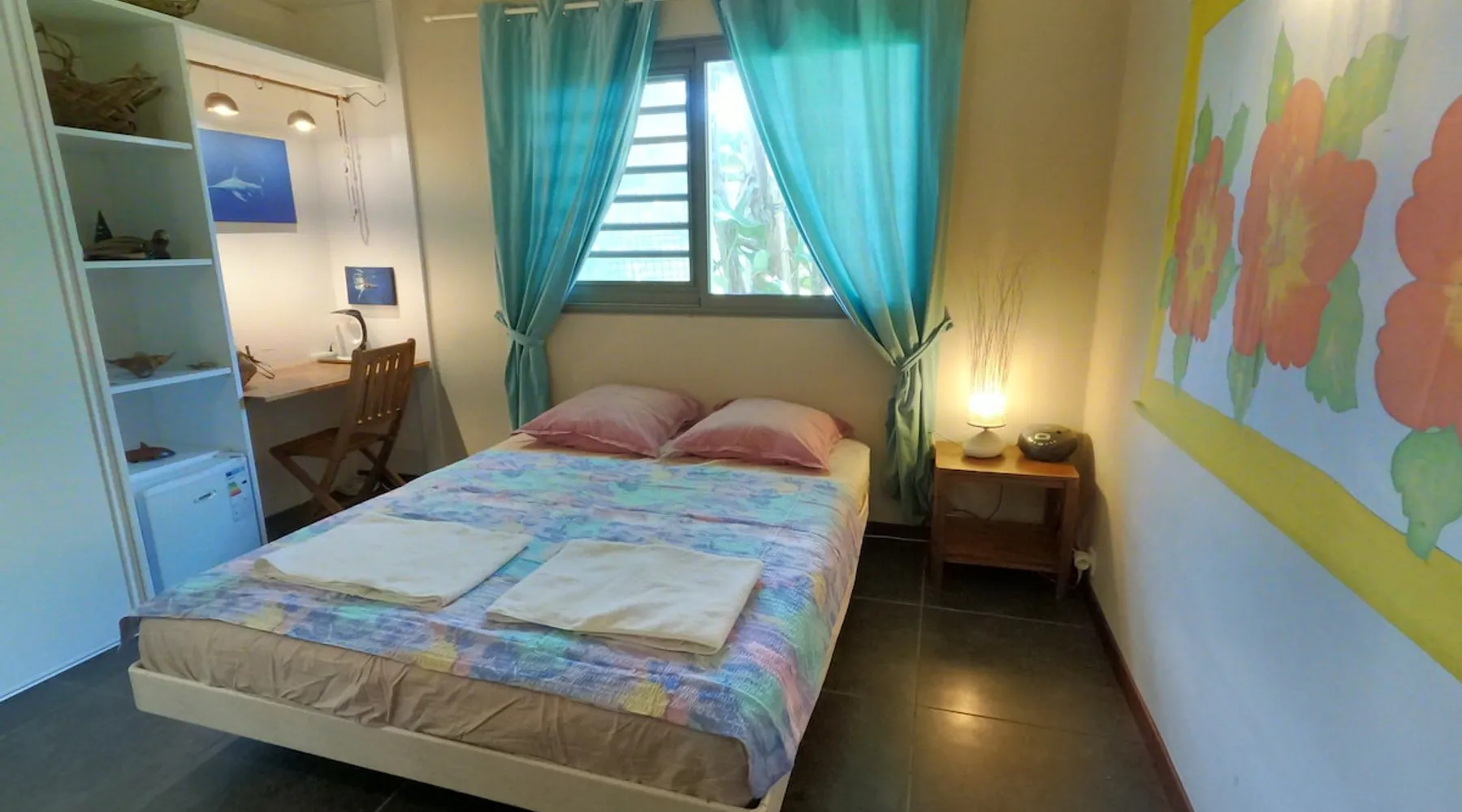 Our charming fare will seduce you with its flower garden close to the lagoon and its beach. We are located 5-10 minutes by bike from the Tiputa pass, where you will find snacks and shops. In order to discover the island, we lend you bicycles for free. We can also help you organize your stay by contacting service providers (diving clubs, excursionists). It is really with great pleasure that we will help you. The space 1 bedroom on the lagoon side (2 single beds) and 1 bedroom on the garden side (1 double bed) with independent entrance. Accommodation overlooking the lagoon. Mini-fridge and electric kettle in each room. Microwave and crockery available. We do not do half board, but breakfast is possible (with extra) on request when booking. In order to reduce plastic waste, we offer you unlimited drinking water for free. Guest access Deck and garden to share with us and our 6 adorable cats. Other things to note Non-smoking house. We will pick you up at the airport, for this, let us know your time and flight number. Registration Details Exempt